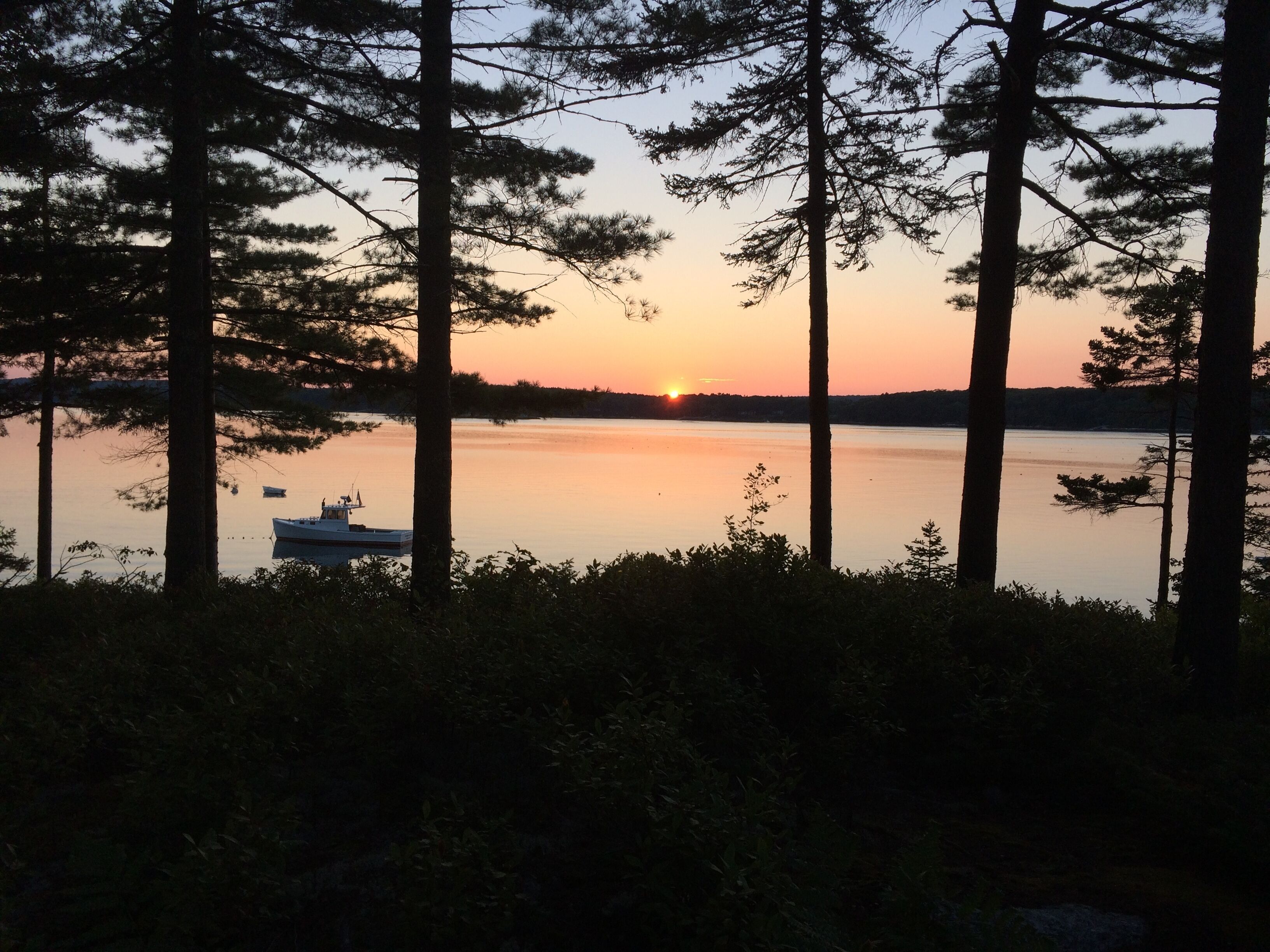 Wonderful Cape with Stunning Waterviews and Sunsets Waterviews from almost every room! Located on the water's edge, this property surrounded by tall pines is on 3 acres. A screened- in porch lends itself to eating while watching stupendous sunsets. The accessibilty to the community dock is right off our property and allows for boating and kayak launching. A mooring is a possibilty for rent. The first floor has an open concept where the kitchen and living area are not separated. It also has a master bedroom with a queen and a full bathroom with a claw foot bathtub. The den with TV and sleeper sofa, foyer/ dining room and mud room finish off the ground floor. The 2nd floor has 2 bedrooms, one which is also a master with queen and one with twin beds. A bathroom and sitting area with Futon can also be found on this level.Play tennis on the court, swim in the pond, bike along the water's edge or kayak to your heart's content! If you just want to read, then settle into the yellow Adirondack chairs at the water's edge. Order lobsters from Harlan, our lobsterman, and have him drop them off at the dock! Keywords: house on the water, serene, quiet, tennis, available mooring, kayak haven,