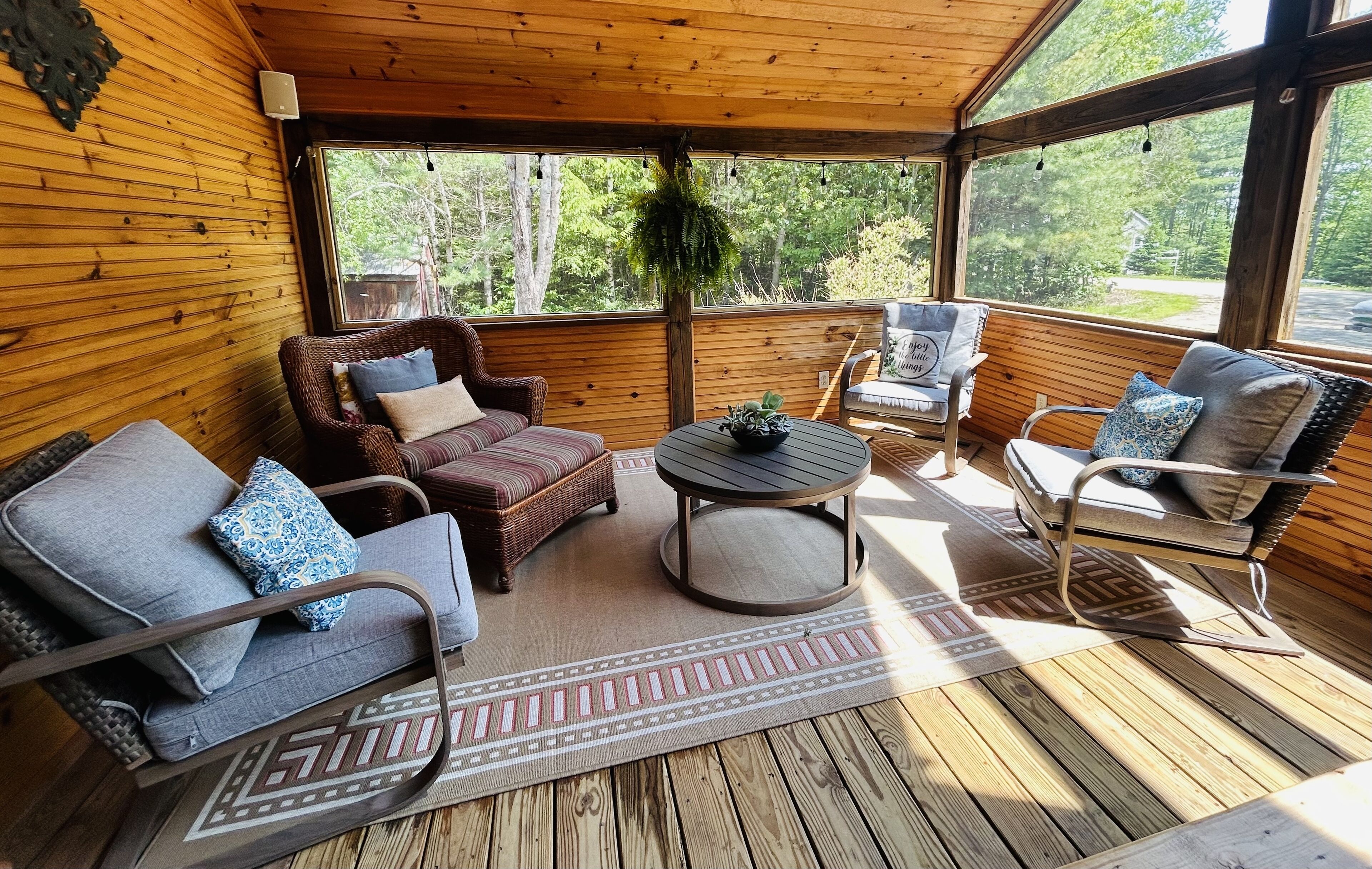 Cozy Chalet, Hot Tub, <30min to N. Conway, Pets ok Cozy Fryeburg, Maine Chalet in the quaint & rural community of Kimball Lake Shores. Just a short drive to North Conway. Perfect for families to relax & spend quality time together. In the Summer, enjoy access to Lower Kimball Lake with beach & boat launch. Nearby year round hiking trails in the area as well. In the winter, the Chalet is situated between ski mountains: Cranmore Mountain & Pleasant Mountain. Close access to Snowmobile trails. Enjoy relaxing in the hot tub after a day of exploring the area! Whatever your vacation interests are; the area boasts it all!The Chalet includes two bedrooms downstairs, each with queen beds. Upstairs is a loft with four twin beds. One bathroom downstairs, full kitchen, living space with t.v. & Roku tv included w/ dvd player. Satellite Wifi is also available. There is a three season screened porch with a new 6 person hot tub, 8ft picnic table, and comfortable seating area. We have a selection of DVD’s, board games, and playing cards. Outside is a fire pit, bring firewood. Outdoor gas grill w/ propane provided. This Cabin is in a RURAL area. It’s a place to escape and unwind. In the event of a storm; you could experience a power outage. Please note: The rate is based on a 4 person occupancy. Additional guests: $25 per night/per person. Pet fee $25 per pet. Quiet hours are to be observed between 9:30pm-8am. Thank you!NO SMOKING INSIDEPlease read our policies carefully:-Due to local laws or H.O.A. requirements, guests must be at least 25 years of age to book. Guests under 25 must be accompanied by a parent or legal guardian for the duration of the reservation.-No smoking allowed inside the cabin. If evidence of smoking inside, renter will be charged an additional $100 cleaning fee.. If found littered on the property an additional $50 fee will be charged.-The property shall not be used by more than the number of adults and children listed in your reservation. An additional $25 will be charged per person per night.-All guests shall abide by Kimball Lake Shores Association's Good Neighbor Policy (see below) and shall not engage in illegal activity. Quiet hours are from 9:30 p.m. to 8 a.m.-If early check-in is available for your reservation, you will be notified on the morning of your arrival. At this time, we cannot offer late check-outs.-Due to Association guidelines no tents or other structures may not be erected.-Due to Association guidelines no R.V.s or Campers are permitted on the property.-Renter is liable for any damage to the property and agrees to accept charges to the card on file should damage occur during occupancy.-The lake is a ten-minute walk from the cabin or there is a grassy parking area on the right before the lake. Across from the large grassy field. If launching a boat or jet ski, do not leave trailer on the beach! You must park it in the grassy area on the right before the lake. Or at the Cabin. If this rule is violated, you may be asked to leave.-We are not responsible for inclement weather. Check the weather before your trip. If you decide to continue with your travel plans; BRING SUPPLIES! We provide a power outage kit with flashlights, batteries, and candles. It's located in the storage room in the Cabin (labeled "power outage kit"). Note: We do not offer refunds for inclement weather.Good Neighbor Policy:Because the property is a privately owned home, all occupants must comply with the good neighbor policy.-Please treat the property with the same care you would use with your own residence and leave it in the same condition as it was in when you arrived.-To prevent theft of or damage to furnishings or your personal property, you agree to close and lock door and windows when you are not present at the property and upon check-out.-You and other Occupants agree to conduct yourselves throughout your stay in a manner that is respectful of and not disruptive to neighbors, traffic flow, or the community and that will not prompt complaints to the owners from police, neighbors, or neighborhood or homeowner associations.-Noise audible outside the property is prohibited between 9:30 p.m. and 8 a.m.If these rules are not complied with, you may be asked to leave without a refund.-Damages to linens, towels, kitchenware (including but not limited to appliances, glasses, mugs, cookware, etc.), furniture, t.v., rug, mattresses, lamps, comforters, hot tub, flooring, and custom ladder are all subject to inspection upon check out. One item damaged to a set, will be charged as a complete set.If you made it this far, congratulations and thank you for reading all of our house rules!When requesting to book, please use the quote: "I solemnly swear I am up to no good." ― Harry PotterHide
