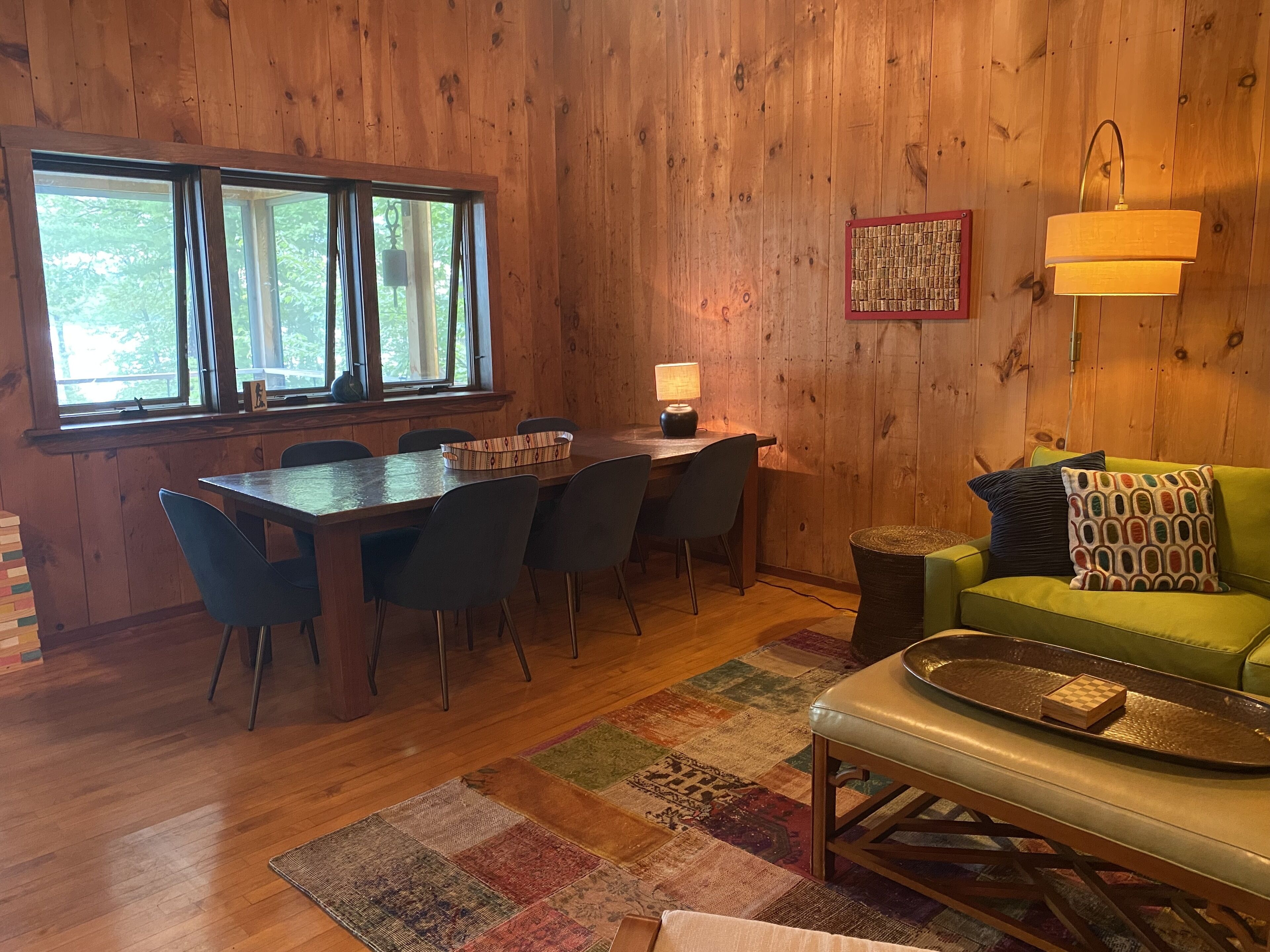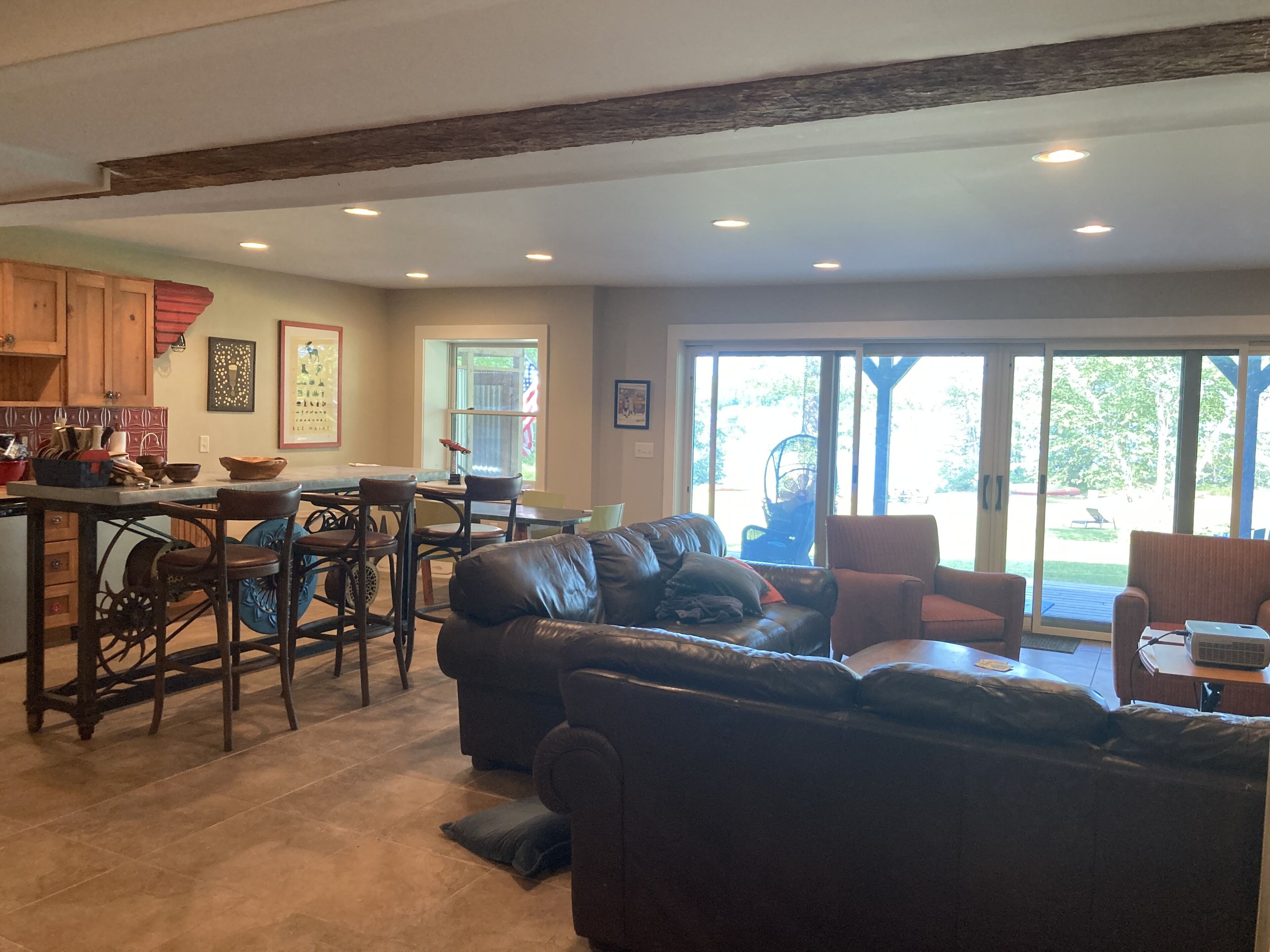 5 Bedrooms, Lake Living at its best! Your perfect family vacation awaits! Wit's End has been our family's second home for 15 years, and now with grown kids, we want to share it with others to enjoy. Come make your own memories in this unique and fun property at the end of the road, offering open concept living on the main floor, a ground level game room and two floors of bedrooms and stunning lake views. The main floor has a well-equipped kitchen, comfortable living room and dining areas with one bedroom, bathroom and laundry. Ground level has a ping pong table, bar and living area that open up to a large patio with an outdoor shower. There is a huge, level yard and spectacular views across the lake. Bedrooms: main floor has one bedroom with a queen bed and one bathroom. The second floor has two bunk rooms and a bedroom with a queen bed that all share a bathroom. The third floor is the master suite with a king bed, bathroom, and small porch. The house is well-stocked with all the games and toys you need for a lake retreat. - kayaks, canoes, paddle boards, floats, lawn games and more! Near North Conway, great hiking in the beautiful White Mountains. During the summer we require a six night minimum preference for Sat/Sun to Fri/Sat.