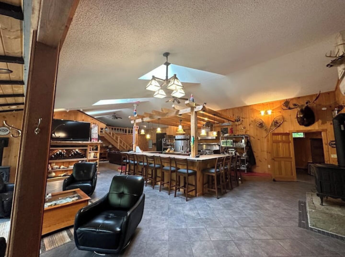 Luxury Embden Lodge Located on pristine Embden Pond, this home is perfect for your whole family (or two). The home has 4 bedrooms plus a loft and three season porch which sleeps up to 14 people. The chef's kitchen is the focal point of the home with seating for 10 around the counter plus two dining tables. There are two sitting areas in the home with large screen TVs and a large porch. Outdoors...