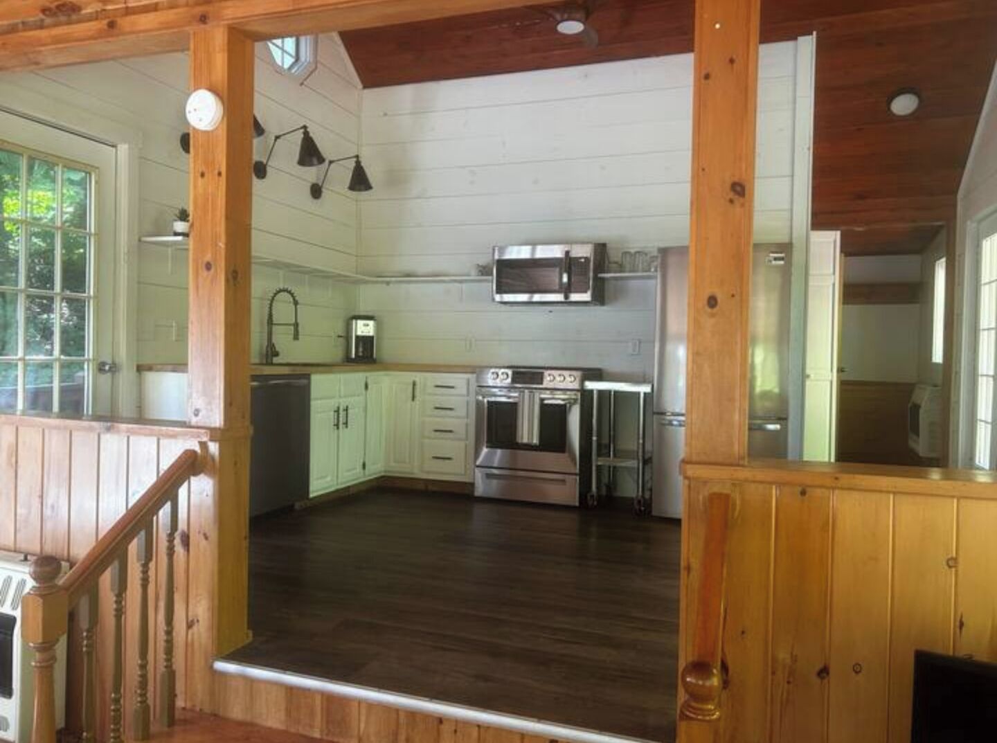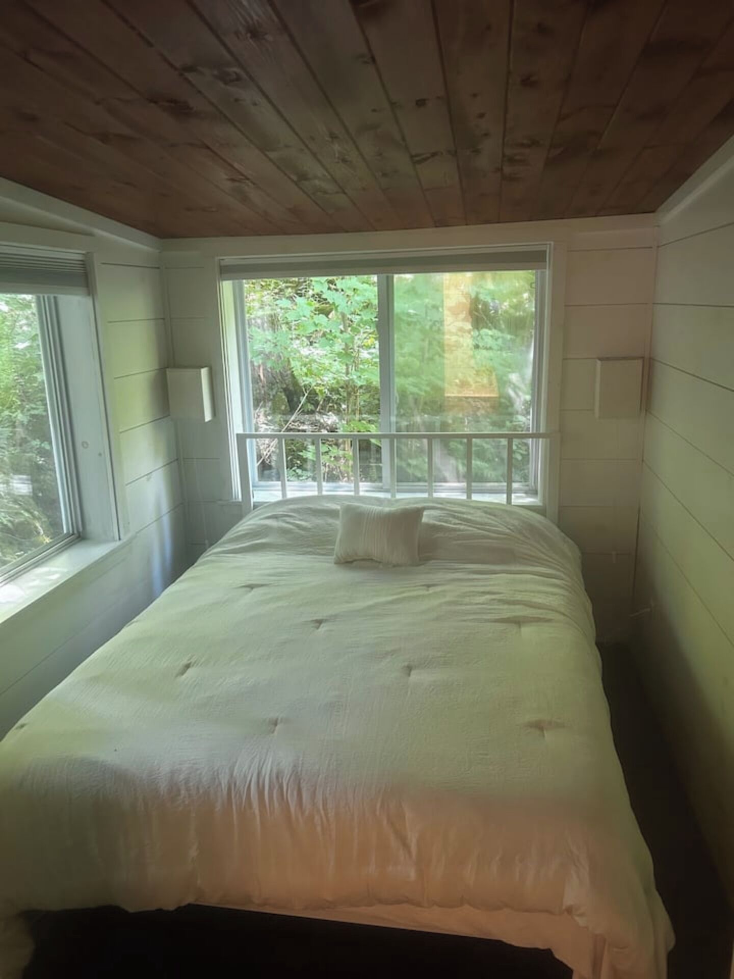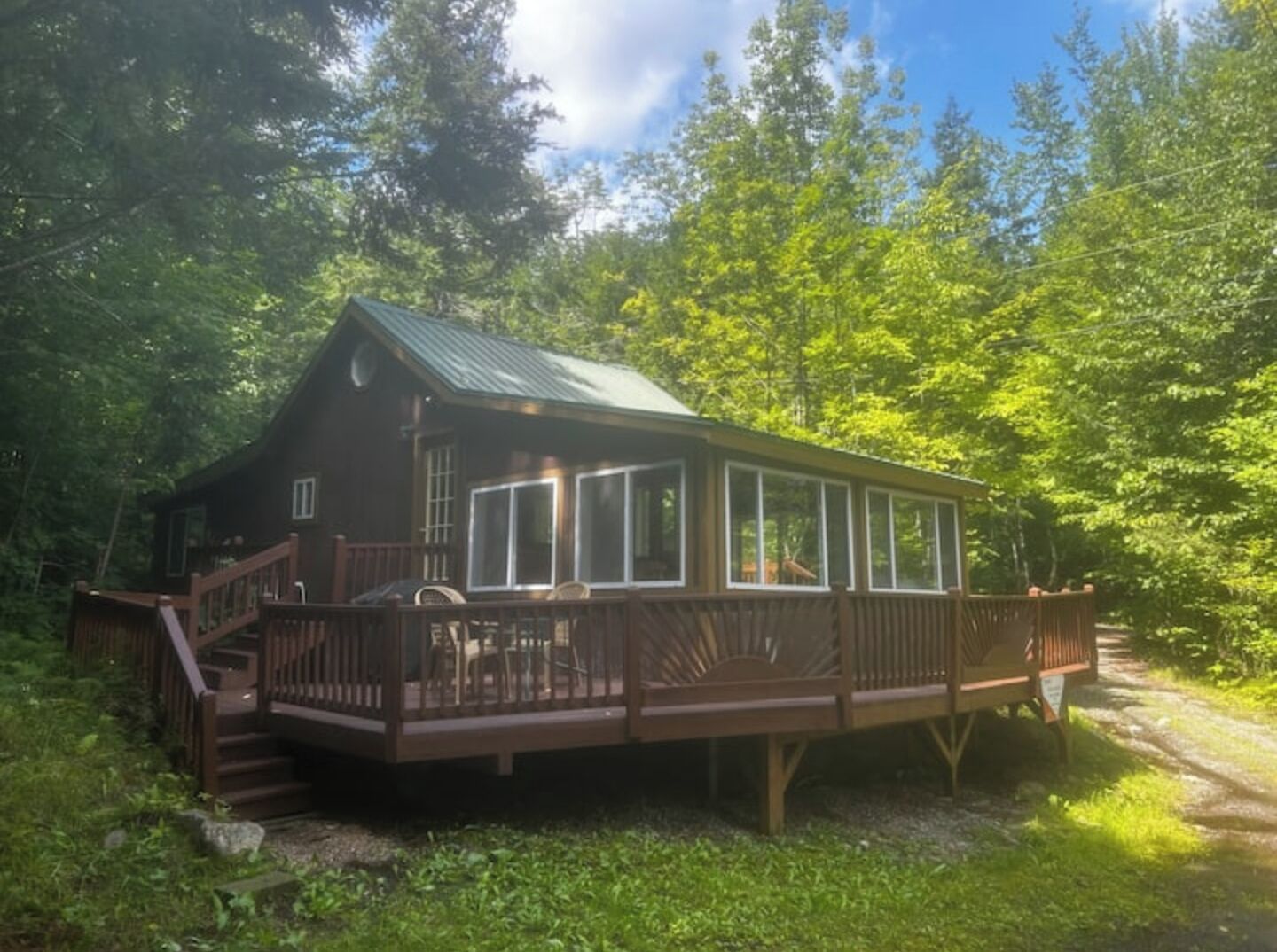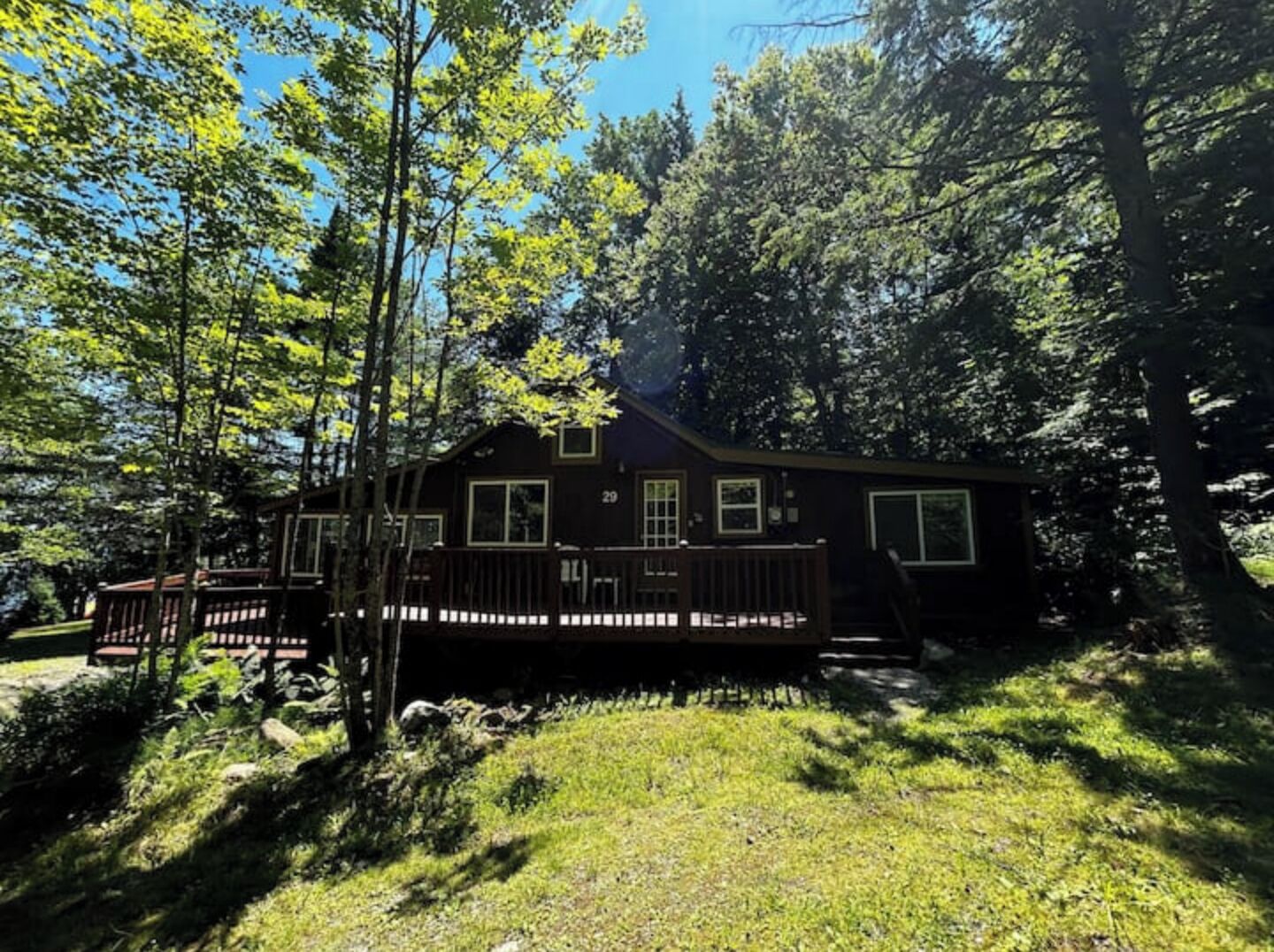 Ultimate Relaxation on Embden Pond Welcome to Embden Cottage! The cottage offers a peaceful stay for up to 6 people. The updated open concept kitchen and living room has plenty of room to hang out. The living room offers a queen sofa bed. There is a large wrap around deck which provides additional living space in the summer time. Grill on the deck while taking in the waterviews. The two bedrooms are ultra private and are surrounded by greenery. It feels like you are in nature while still in the luxury of a fully equipped home. There is a spacious bathroom with tub and shower and in-unit laundry. By day, enjoy the 1700 feet of shared waterfront with two small beaches and a swimming dock. The home also has a boat slip available. By night, enjoy the firepit while listening to the loons or enjoy the games available at the cabin. Please note the property is part of an association but in a private setting.