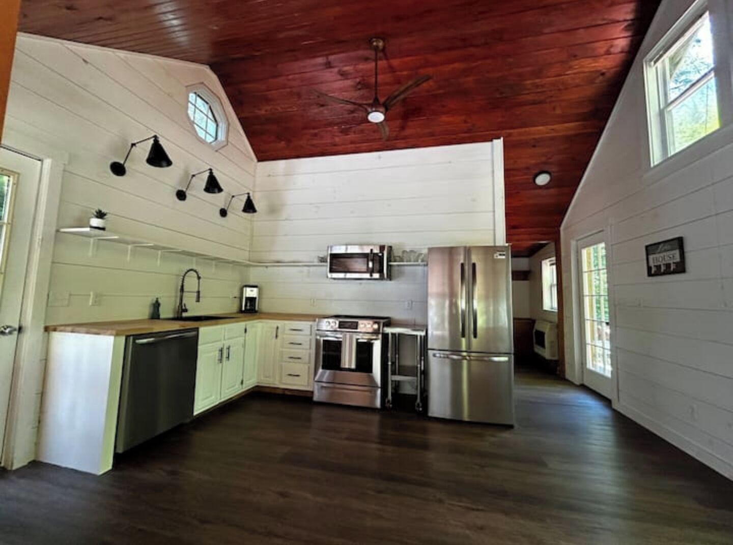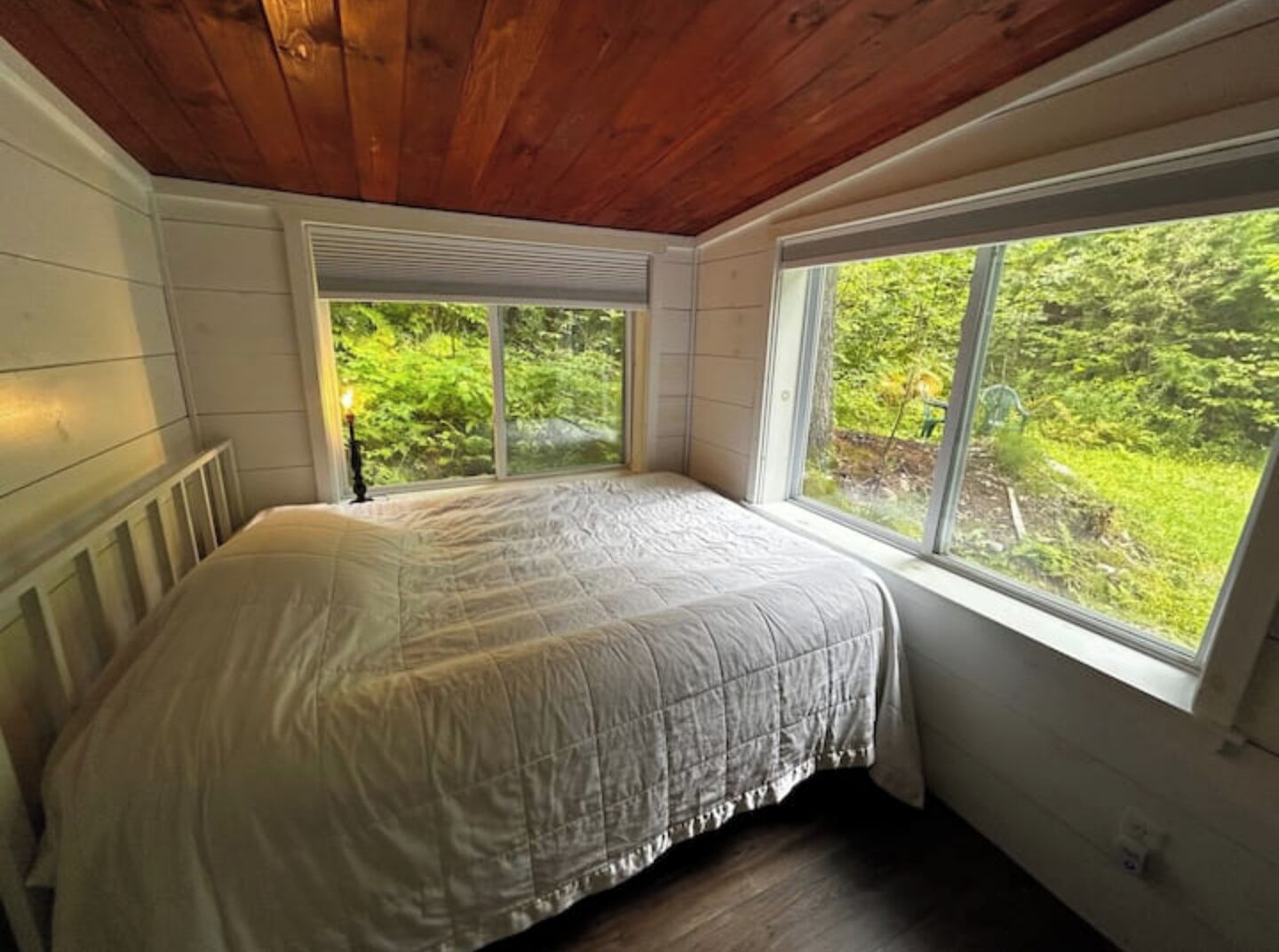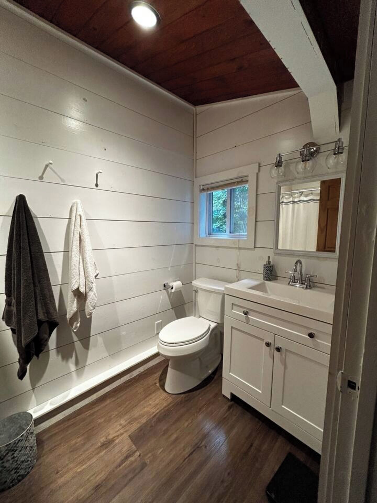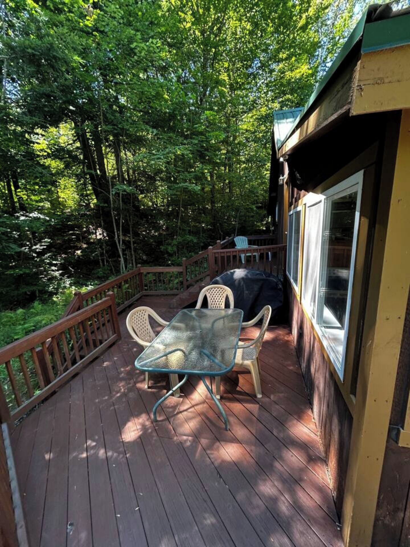 Ultimate Relaxation on Embden Pond Welcome to Embden Cottage! The cottage offers a peaceful stay for up to 6 people. The updated open concept kitchen and living room has plenty of room to hang out. The living room offers a queen sofa bed. There is a large wrap around deck which provides additional living space in the summer time. Grill on the deck while taking in the waterviews. The two bedrooms are ultra private and are surrounded by greenery. It feels like you are in nature while still in the luxury of a fully equipped home. There is a spacious bathroom with tub and shower and in-unit laundry. By day, enjoy the 1700 feet of shared waterfront with two small beaches and a swimming dock. The home also has a boat slip available. By night, enjoy the firepit while listening to the loons or enjoy the games available at the cabin. Please note the property is part of an association but in a private setting.