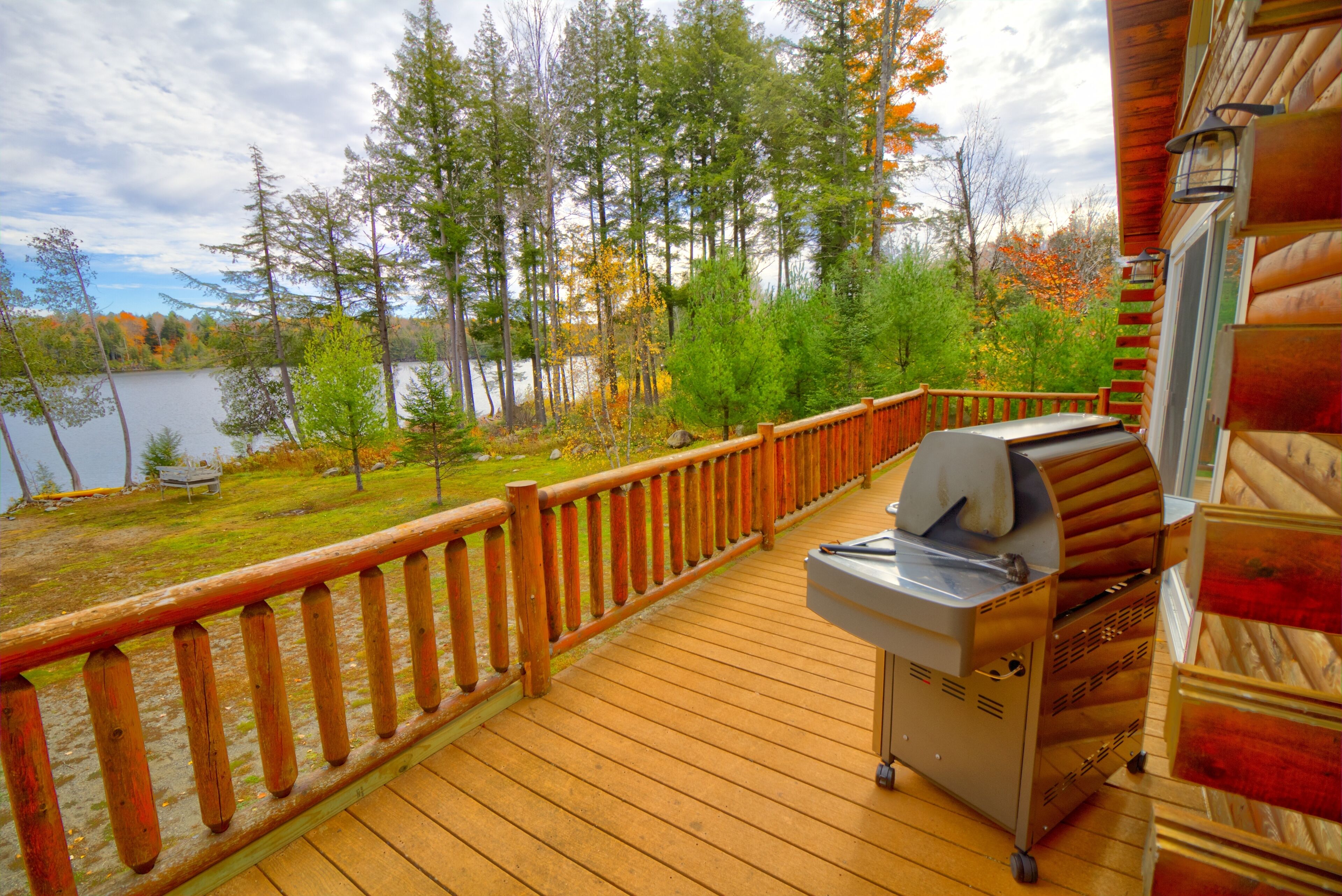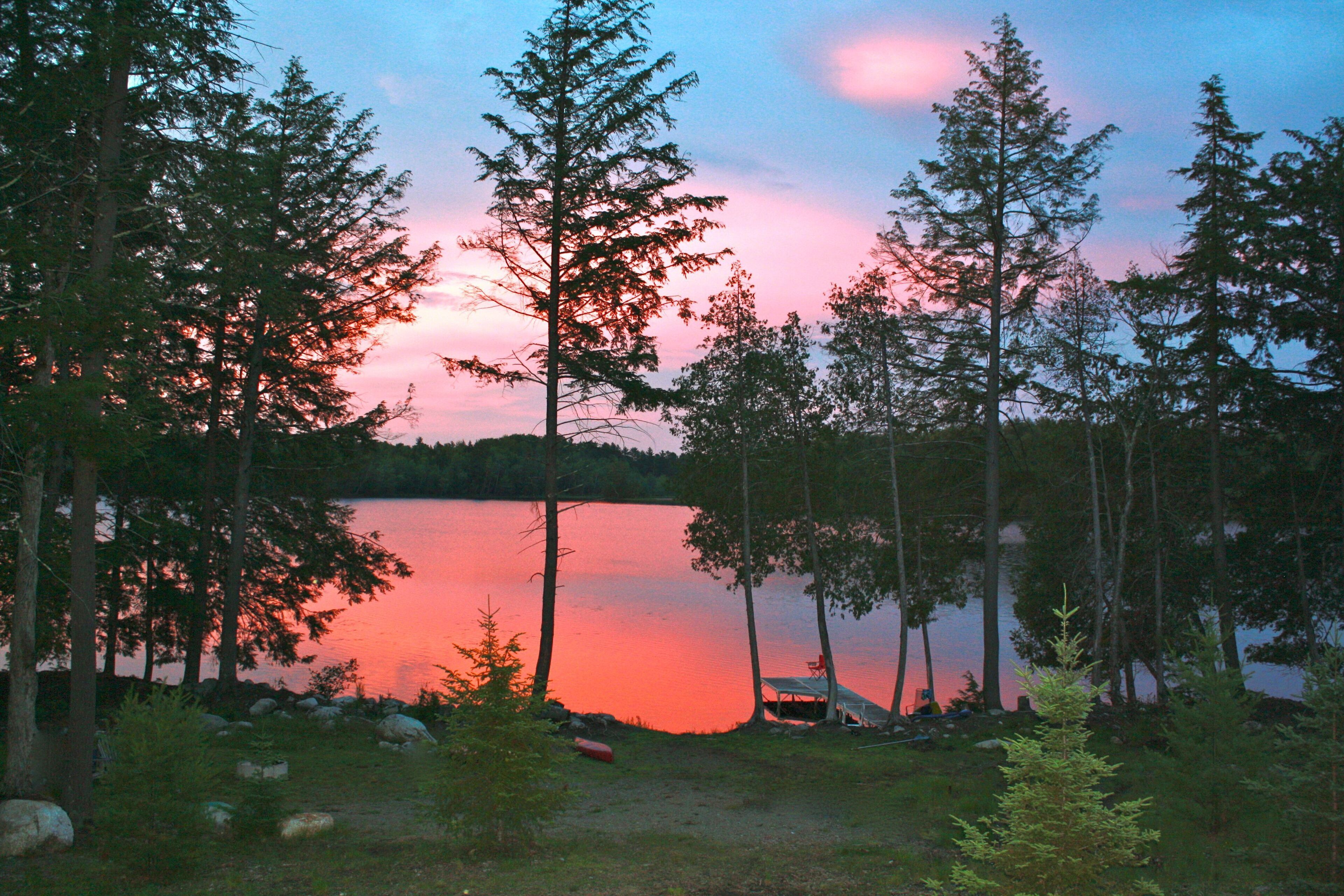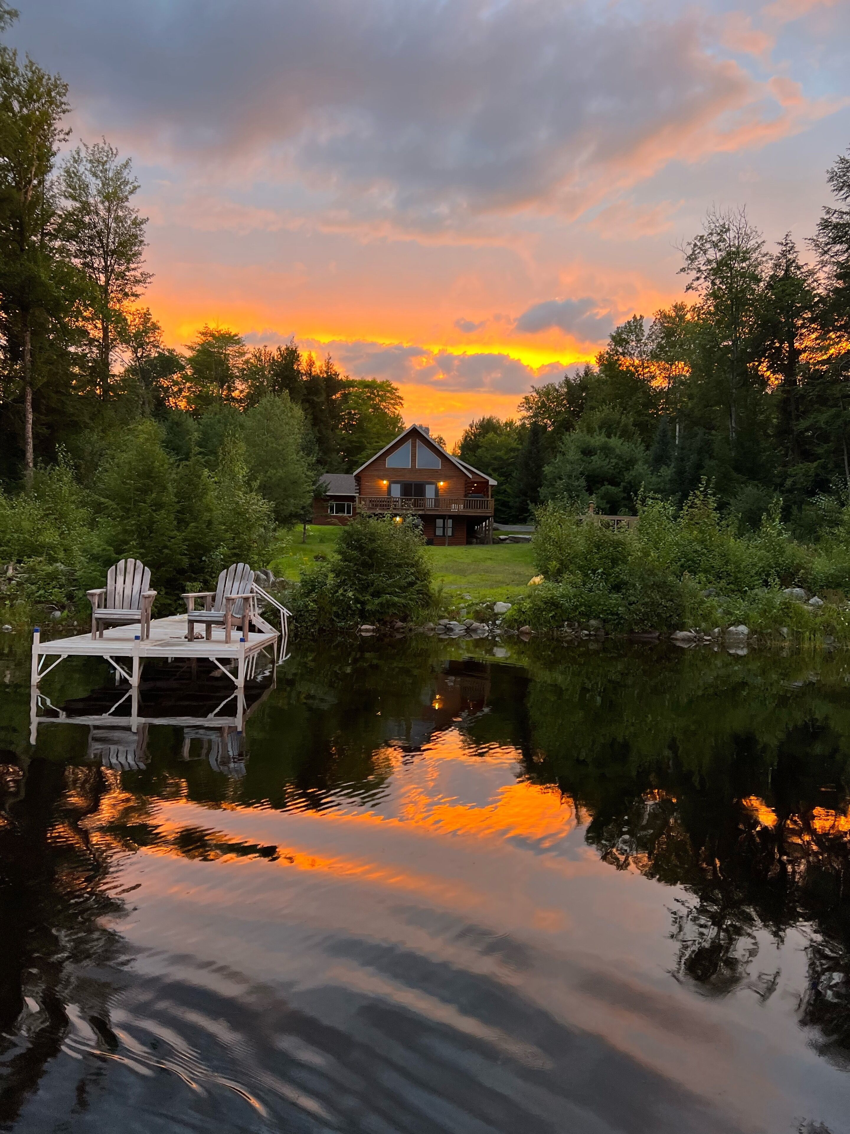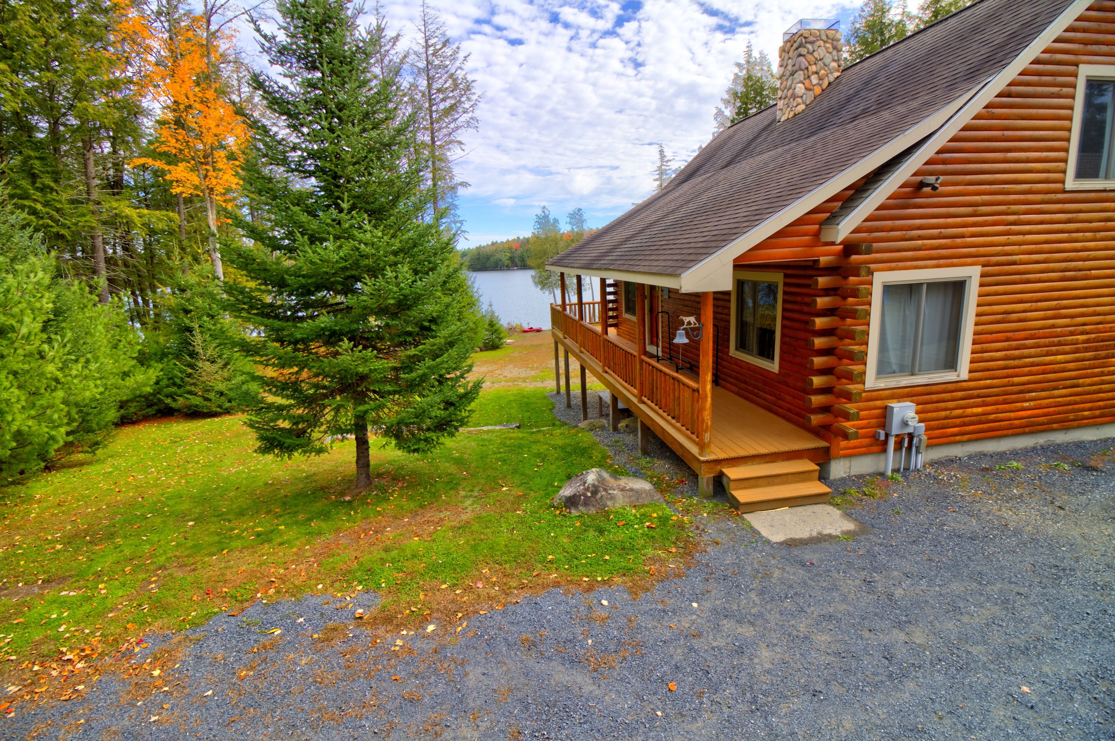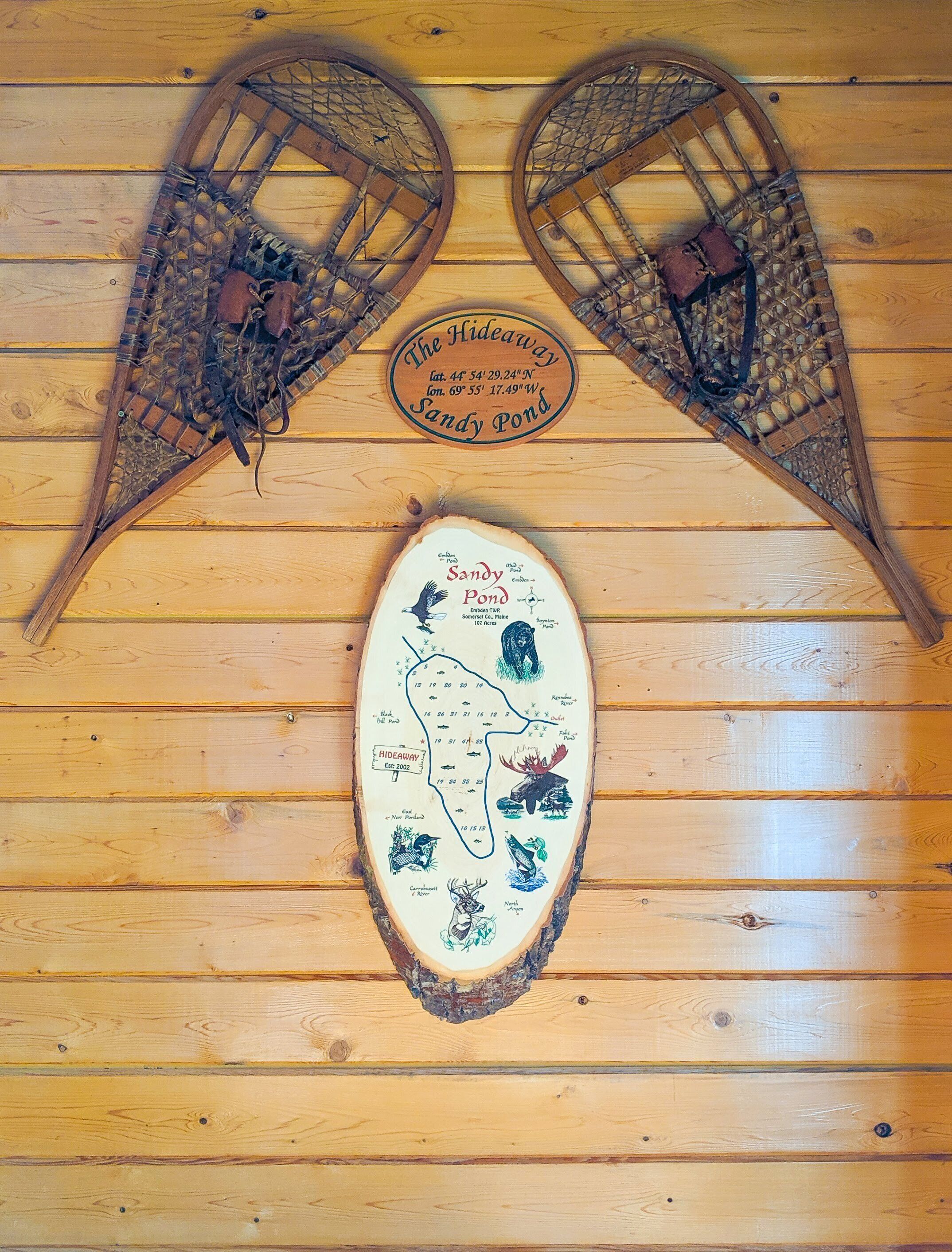Quintessential Maine Log Home with Private Shore. Stone Fireplace.Pet Friendly! Enjoy our charming log home hide-away on the shore of pristine Sandy Pond. Tranquility awaits you on this secluded 107 acre pond in the Central Maine Highlands. Our home is complete with 3 bedrooms, two bathrooms and plenty of space to relax with family and friends. Sandy Pond is a hidden gem, one mile by 3/4 miles in area, it is stocked annually with brown trout by the State of Maine and also boasts many other species for your fishing adventures. Sandy Pond has a 10 horse restriction on boat motors making it peaceful even in the height of the summer season. We provide 3 kayaks for your paddling adventures around the lake. Enjoy your morning coffee on our private dock or spacious deck with spectacular sunrise views accompanied by the cry of our nesting loons. Swimming is safe and enjoyable for all ages as the water warms up nicely in the summer. We have 133’ of private waterfront and the shore is located 130' from the house. In the evenings enjoy conversation by a campfire in the fire pit. Or listen to your favorite tunes at our private bar. Culinary enthusiasts will love our professional series appliances in our well appointed kitchen. Grill masters will enjoy our 4 burner Weber Summit grill with views of the pond. Property highlights:*Stunning views of our private shorefront*Comfortable beds with high quality linens*Stone fireplace with wood included (seasonal)*Professional series appliances*Keurig and espresso maker*Washer/Dryer*Rustic charm yet luxurious *Pet friendly (maximum of 2 pets for a fee $50 per night) Please note during peak summer season we require a minimum 7 night stay with check in and check out on Saturday.