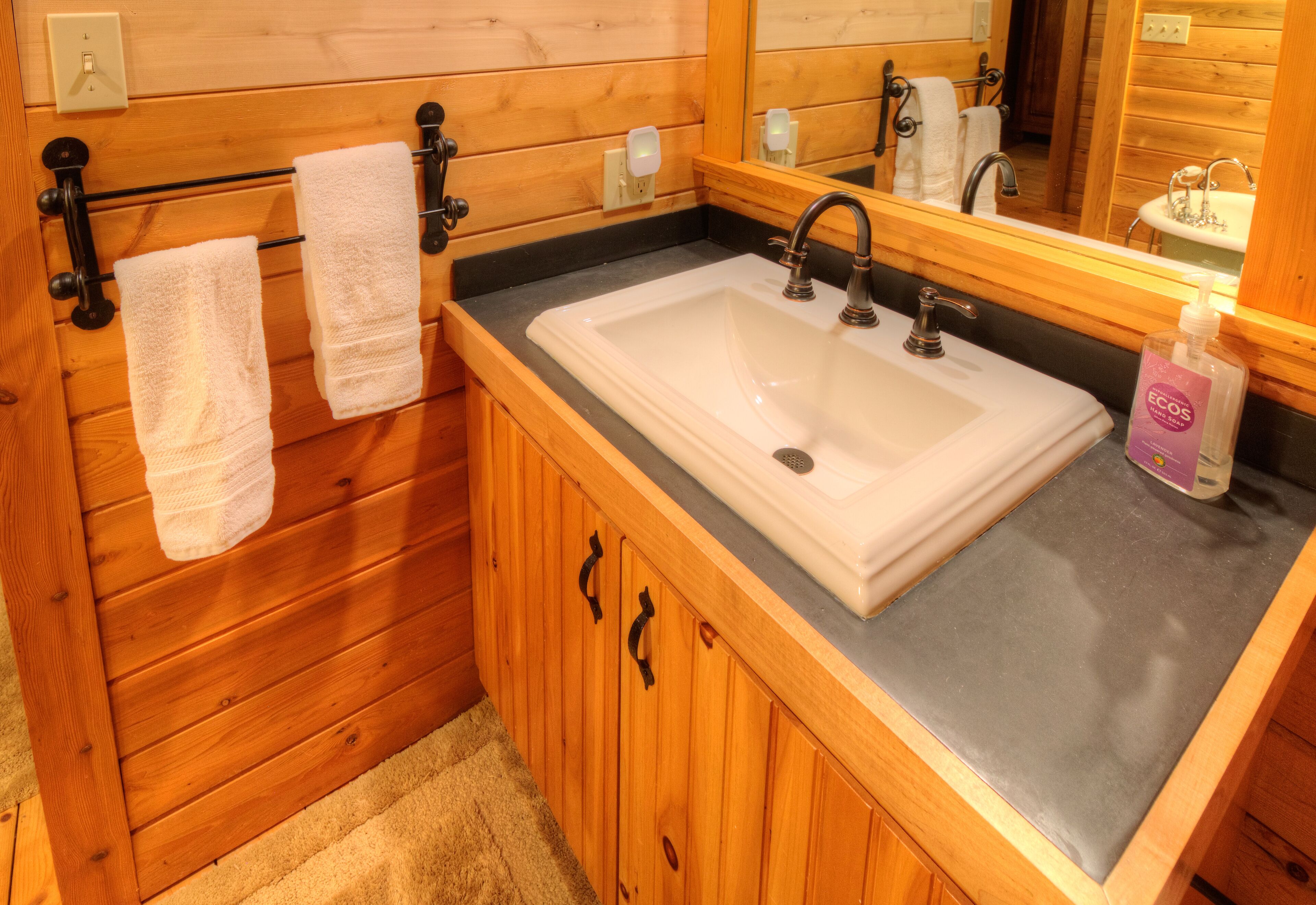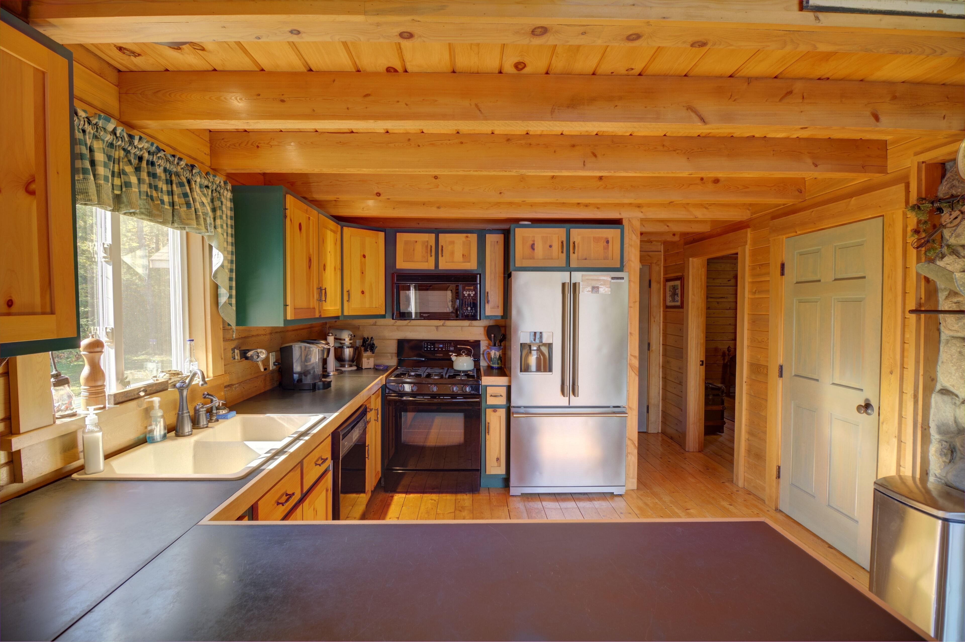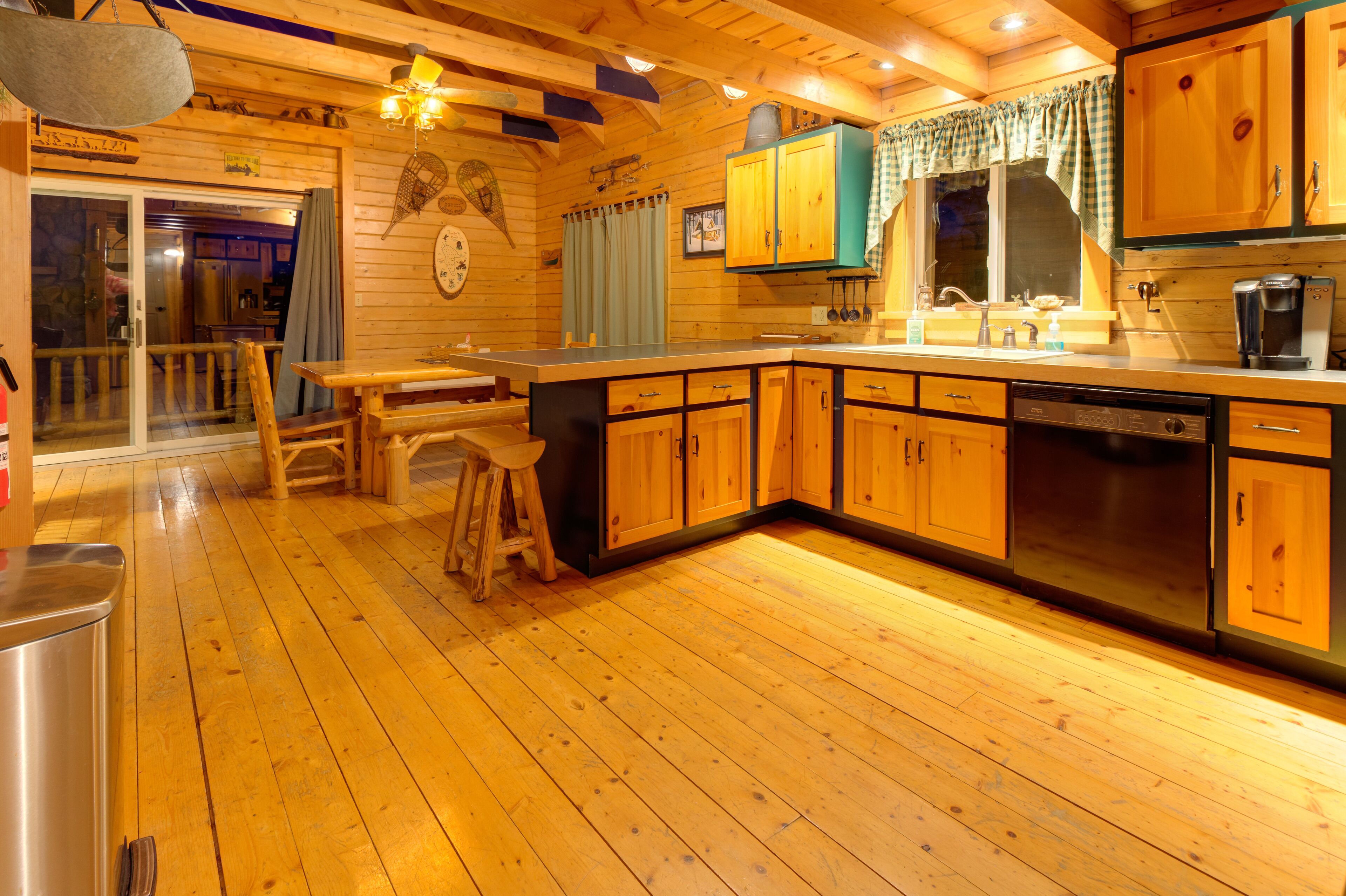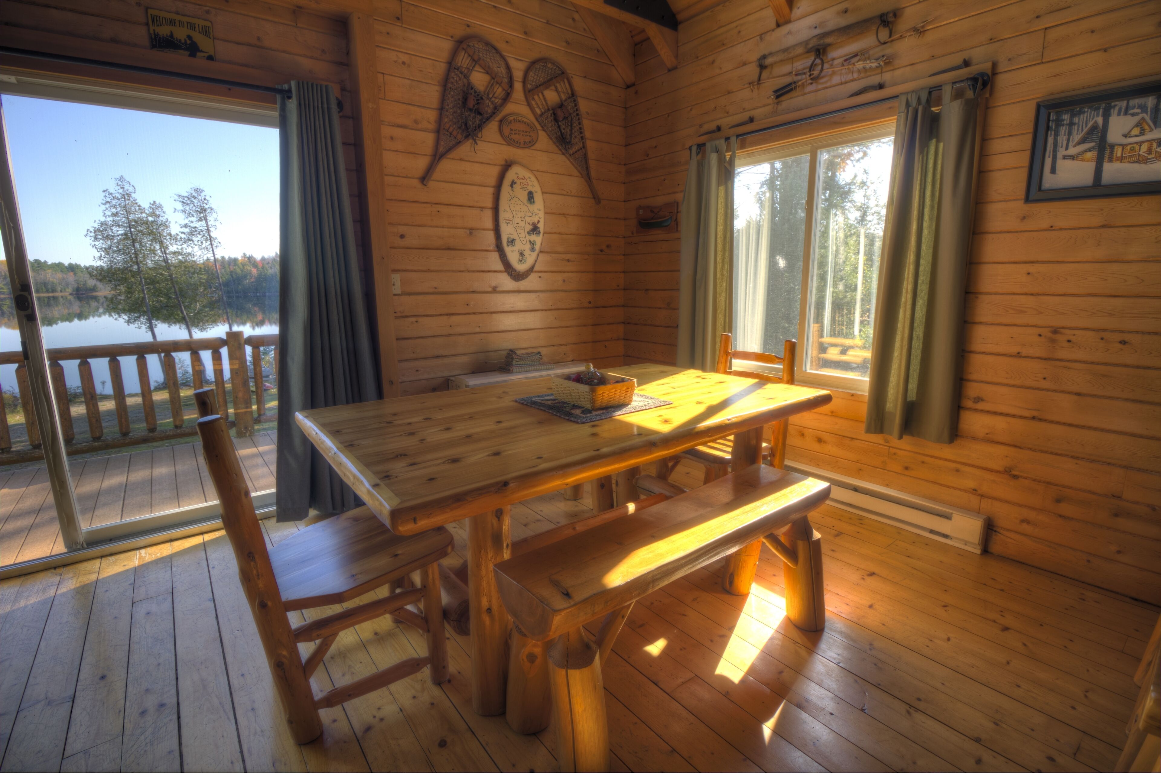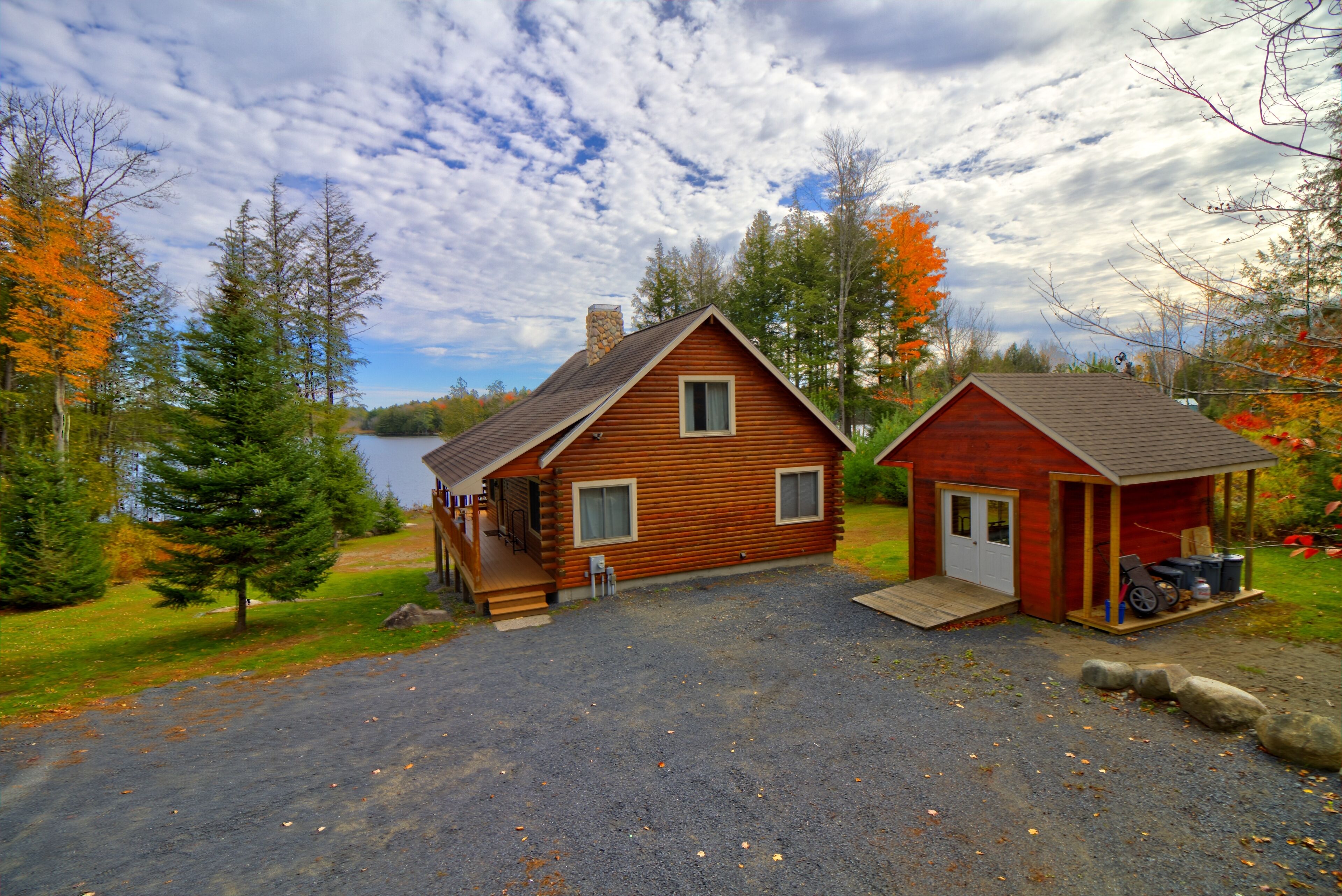 Quintessential Maine Log Home with Private Shore. Stone Fireplace.Pet Friendly! Enjoy our charming log home hide-away on the shore of pristine Sandy Pond. Tranquility awaits you on this secluded 107 acre pond in the Central Maine Highlands. Our home is complete with 3 bedrooms, two bathrooms and plenty of space to relax with family and friends. Sandy Pond is a hidden gem, one mile by 3/4 miles in area, it is stocked annually with brown trout by the State of Maine and also boasts many other species for your fishing adventures. Sandy Pond has a 10 horse restriction on boat motors making it peaceful even in the height of the summer season. We provide 3 kayaks for your paddling adventures around the lake. Enjoy your morning coffee on our private dock or spacious deck with spectacular sunrise views accompanied by the cry of our nesting loons. Swimming is safe and enjoyable for all ages as the water warms up nicely in the summer. We have 133’ of private waterfront and the shore is located 130' from the house. In the evenings enjoy conversation by a campfire in the fire pit. Or listen to your favorite tunes at our private bar. Culinary enthusiasts will love our professional series appliances in our well appointed kitchen. Grill masters will enjoy our 4 burner Weber Summit grill with views of the pond. Property highlights:*Stunning views of our private shorefront*Comfortable beds with high quality linens*Stone fireplace with wood included (seasonal)*Professional series appliances*Keurig and espresso maker*Washer/Dryer*Rustic charm yet luxurious *Pet friendly (maximum of 2 pets for a fee $50 per night) Please note during peak summer season we require a minimum 7 night stay with check in and check out on Saturday.