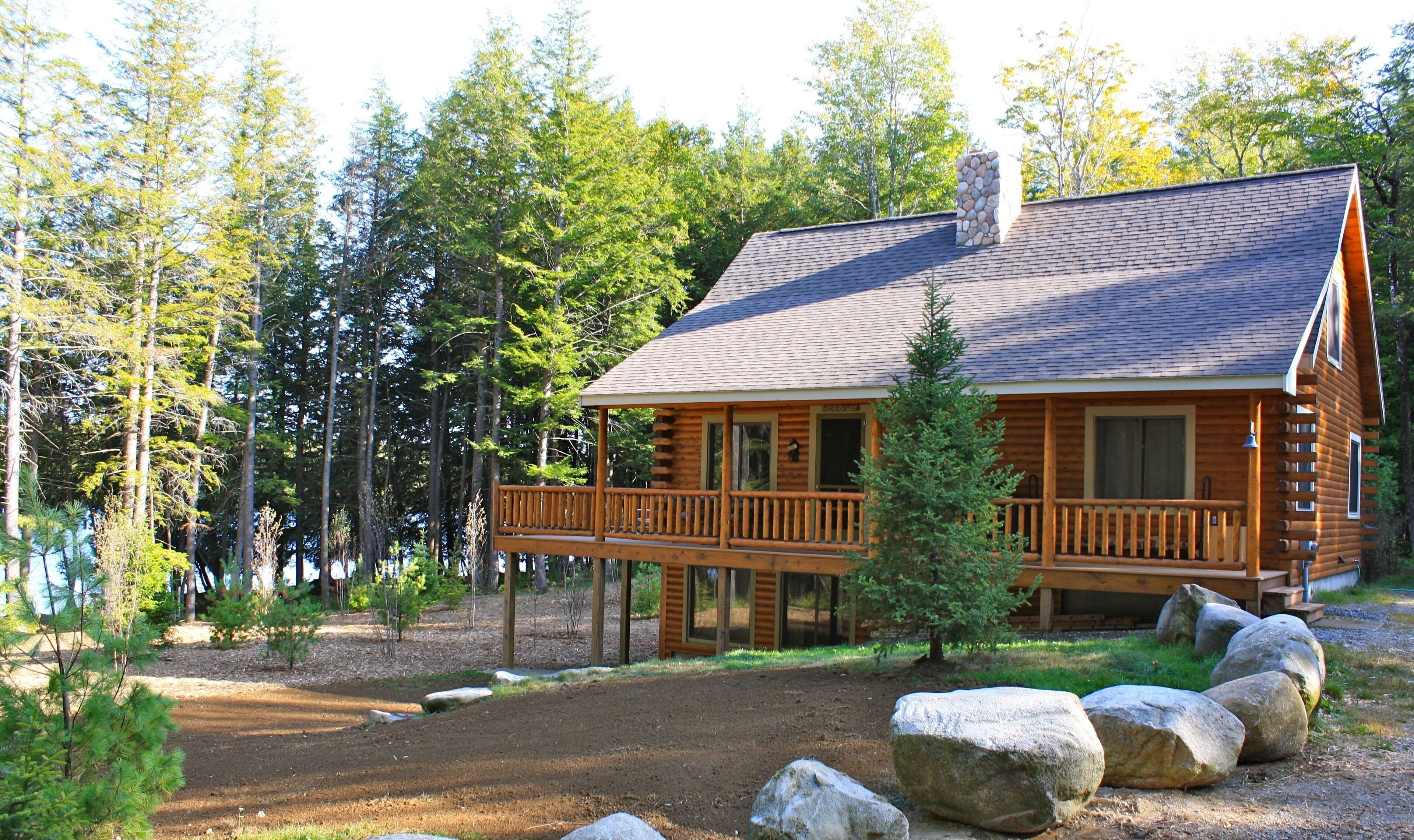 Quintessential Maine Log Home with Private Shore. Stone Fireplace.Pet Friendly!