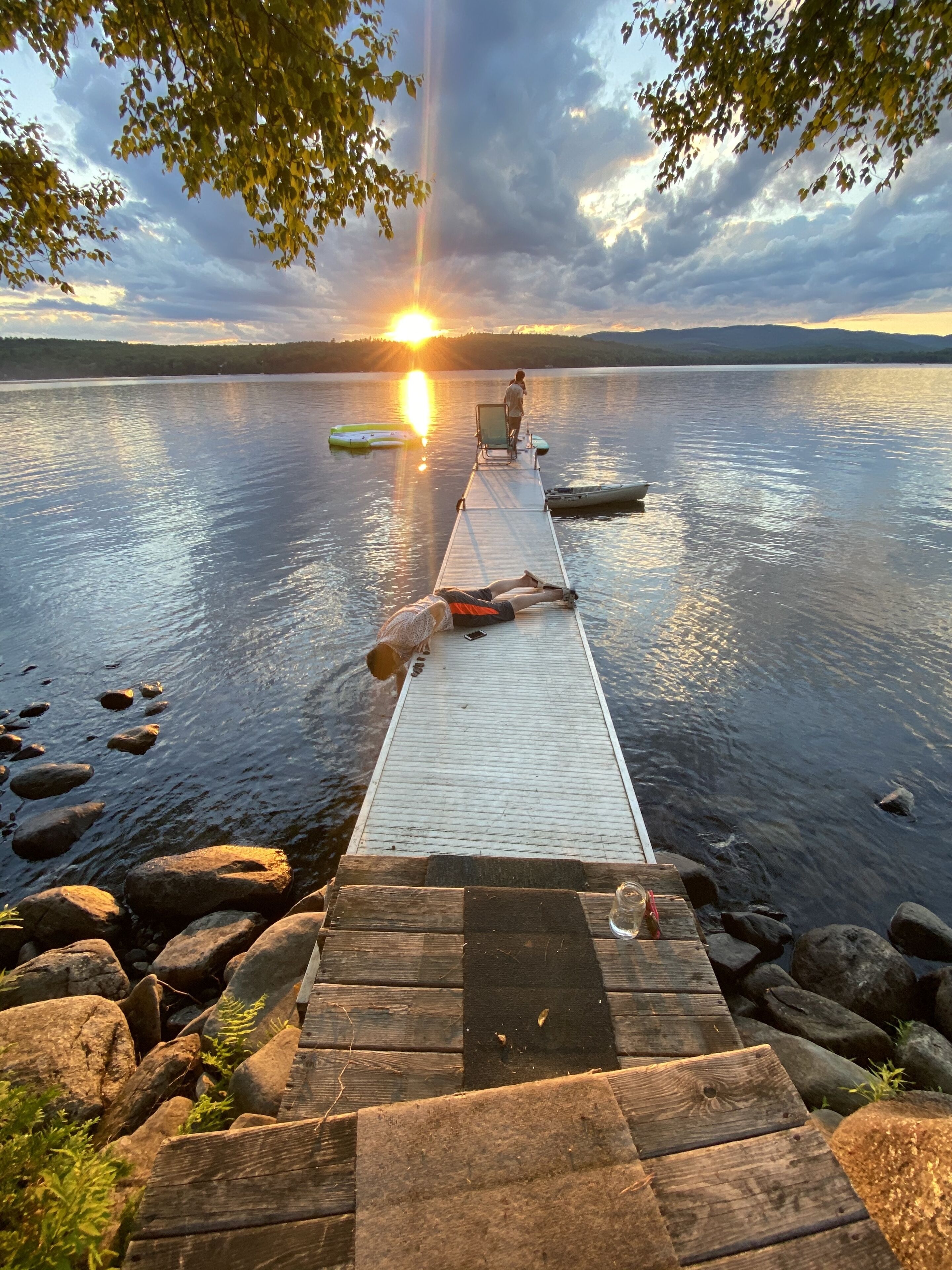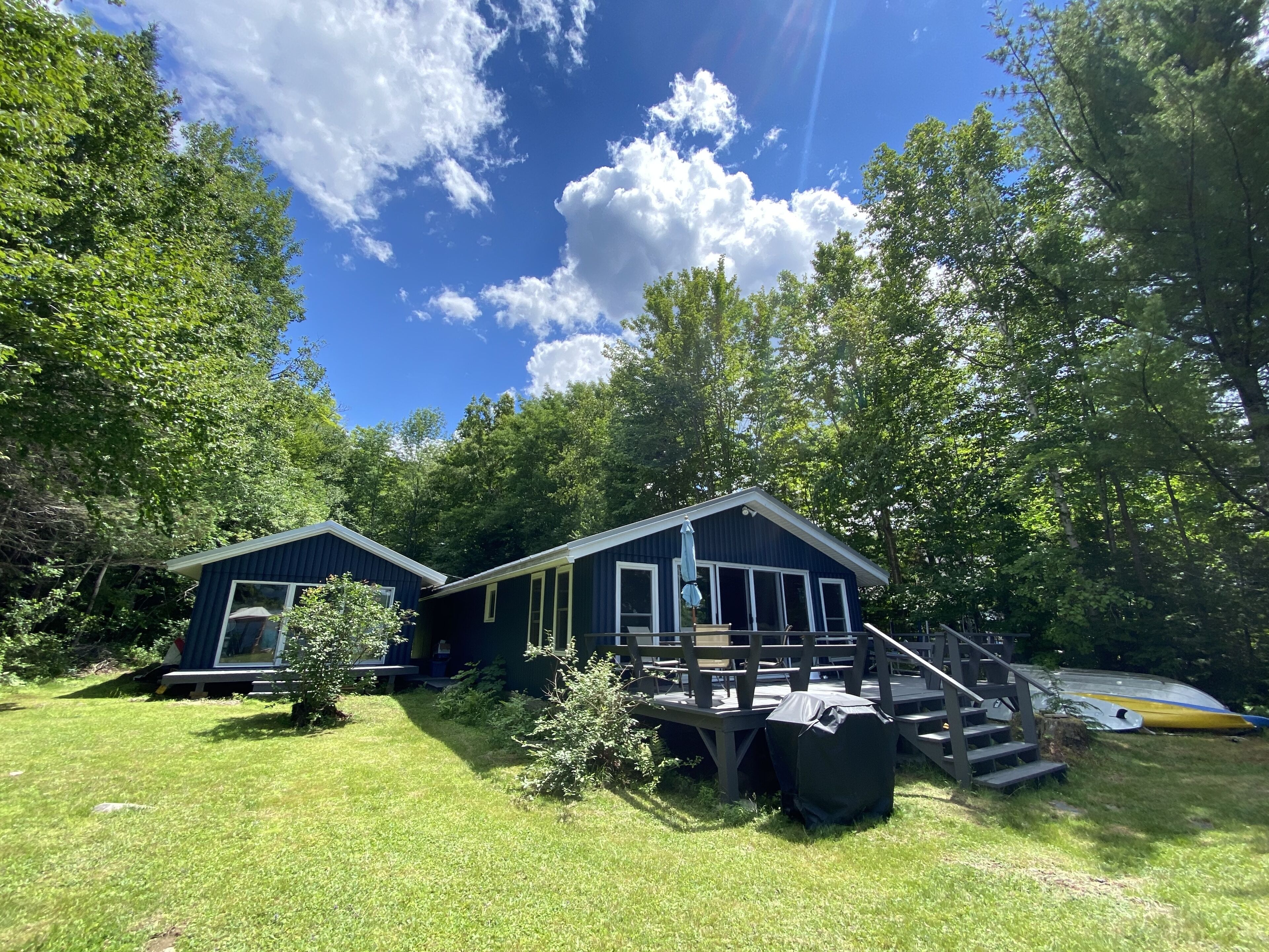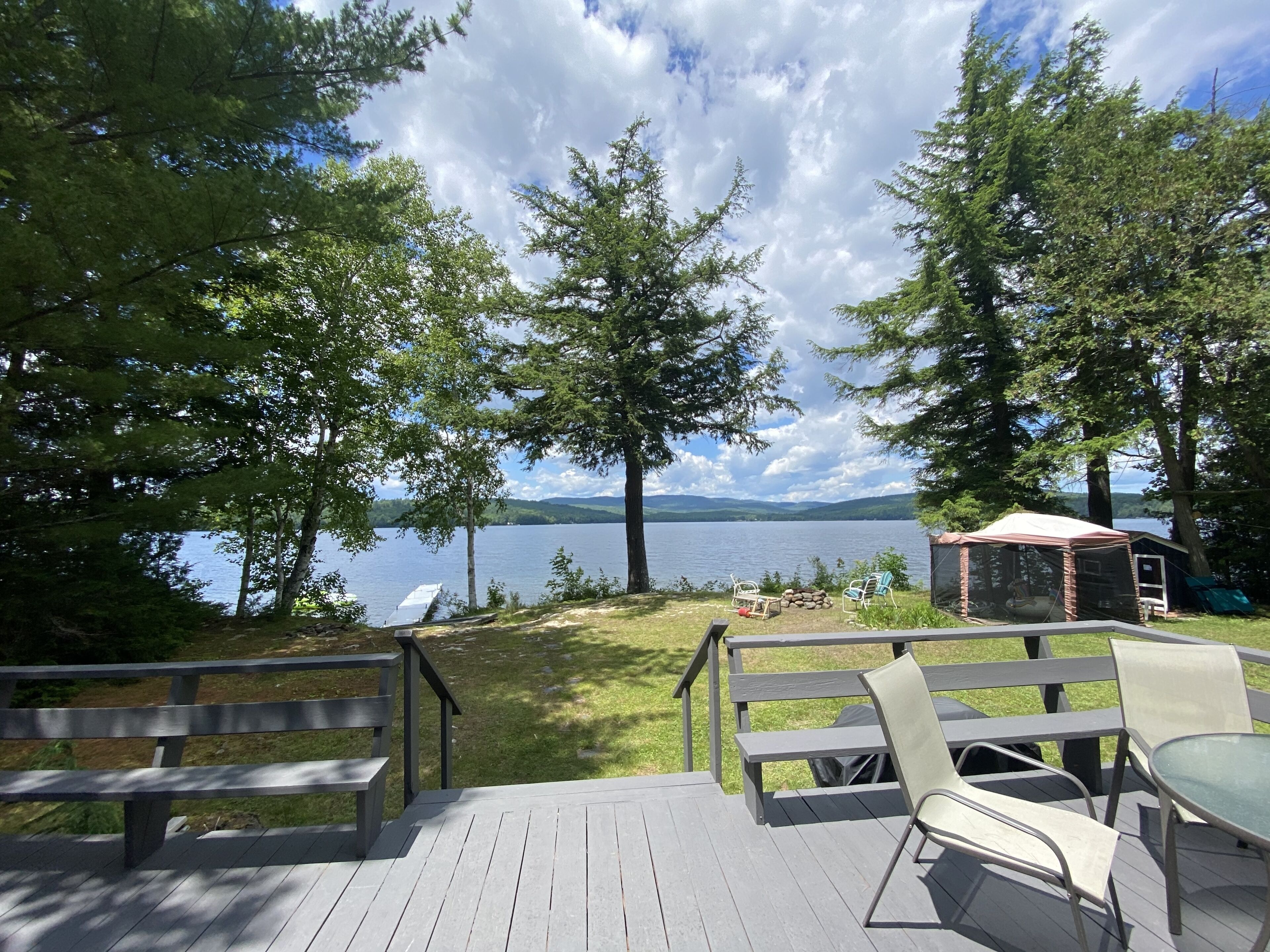 Gorgeous lakefront cottage with beautiful sunset views! Beautifully renovated last year, the main house is 40 feet from crystal clear water. Embden Pond is one of the cleanest lakes in Maine. Sit on the deck or dock and watch the breathtaking sunsets across the mountain range while you listen to the loons. This spot is wooded on both sides to create nice privacy. We have a fire pit and hammock at the water's edge.