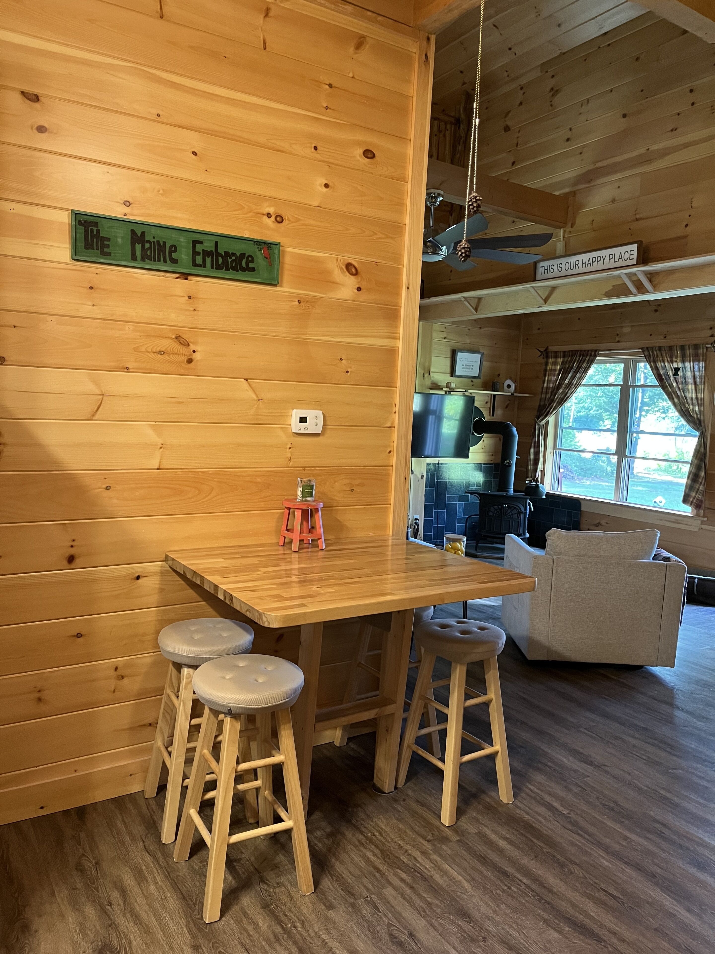 Cozy, NEW log cabin on Fahi Pond! Right on ATV trail through Kennebec Valley. Welcome to The Maine Embrace. Our Cozy lakeside home is a little slice of heaven! Situated on 1.5 acres with no neighbors for the ultimate in privacy. A wooden boardwalk takes you from the house to the dock & pond. Beautiful mountain views and crystal, clear water. Two Kayaks are available for your enjoyment as well as a large floating mat for some sun tanning! Boat launch is just steps away. Speedboats are prohibited so the lake is super quiet and peaceful. Want to Hike, ATV or snowmobile? Trails are right outside the front door! If skiing is calling you, it’s only a 40 minute drive to Sugarloaf Ski Resort and many others in the surrounding area. Just bring yourselves, beach towels and floats and some groceries! We have the rest covered.