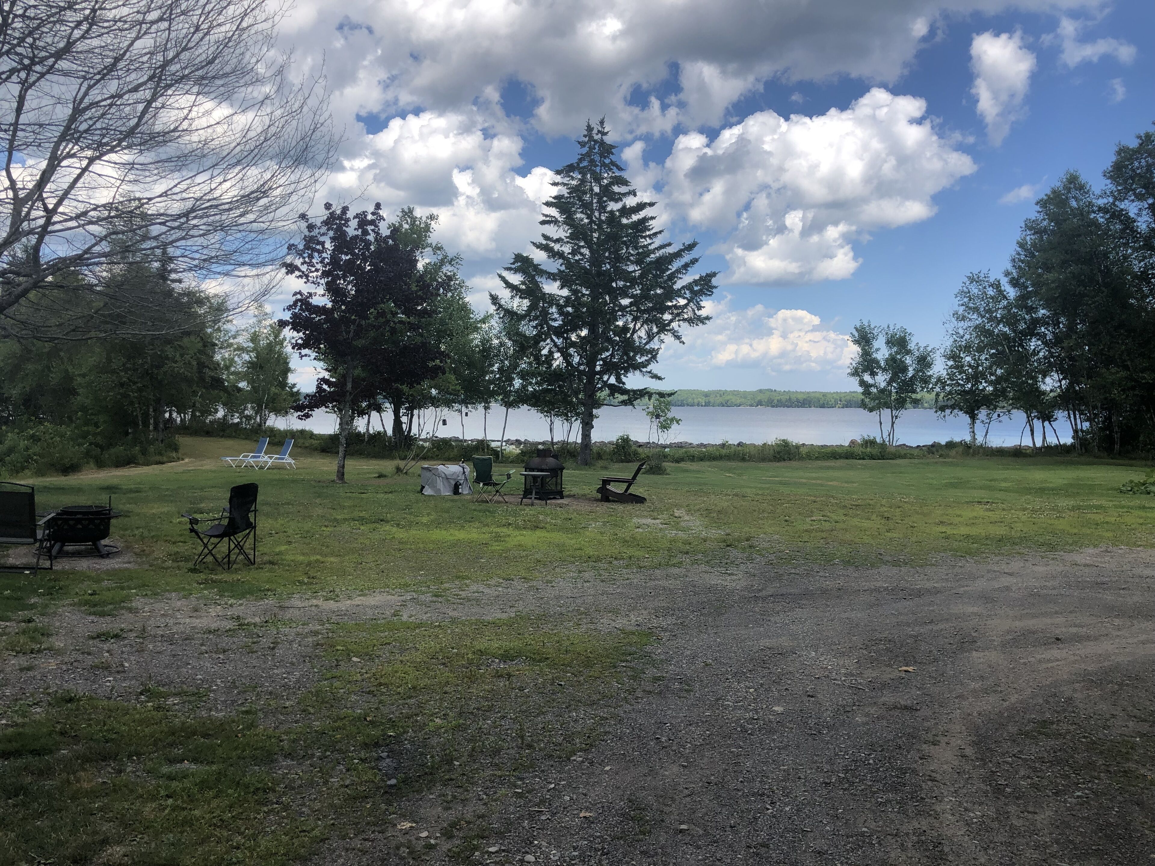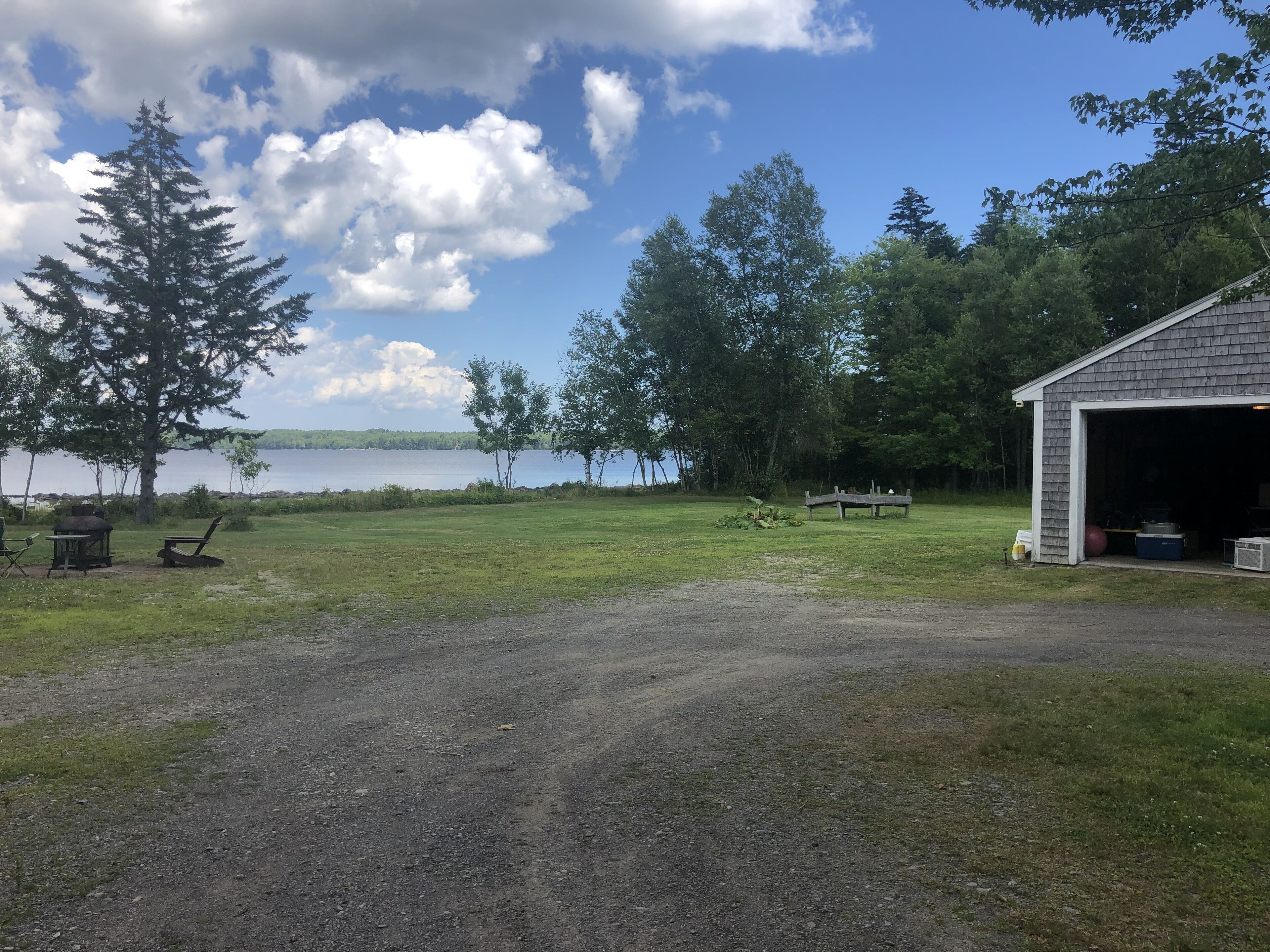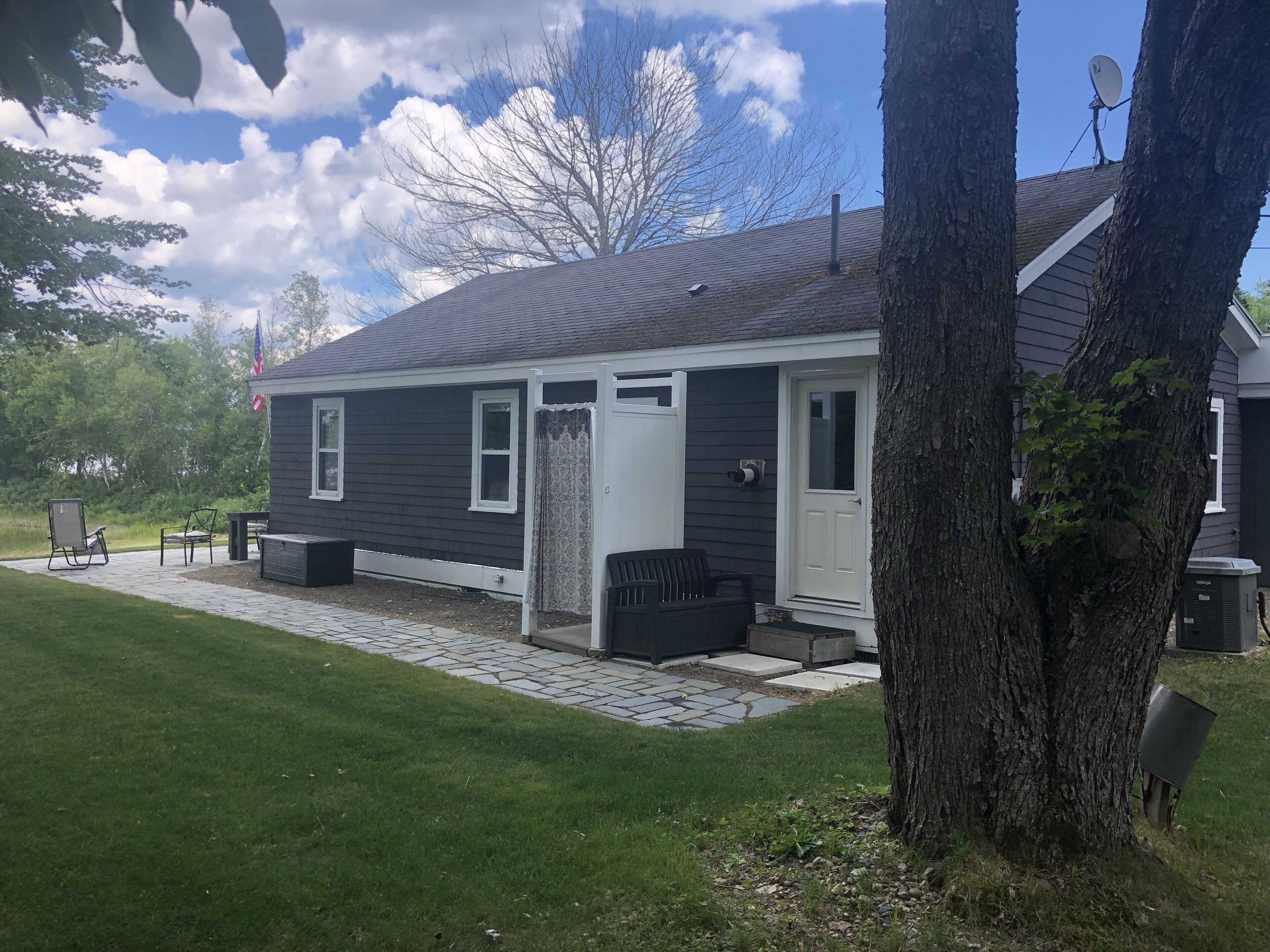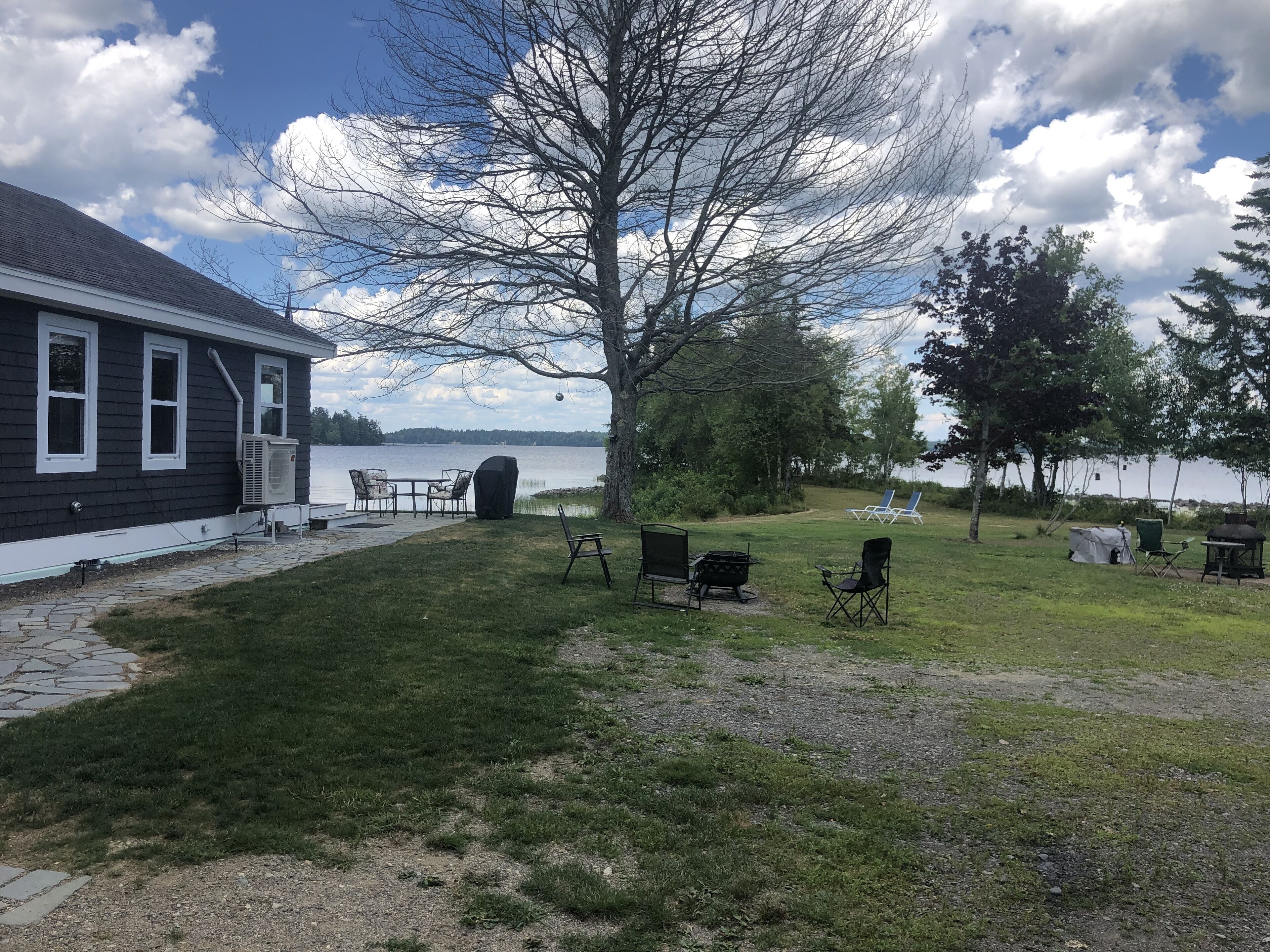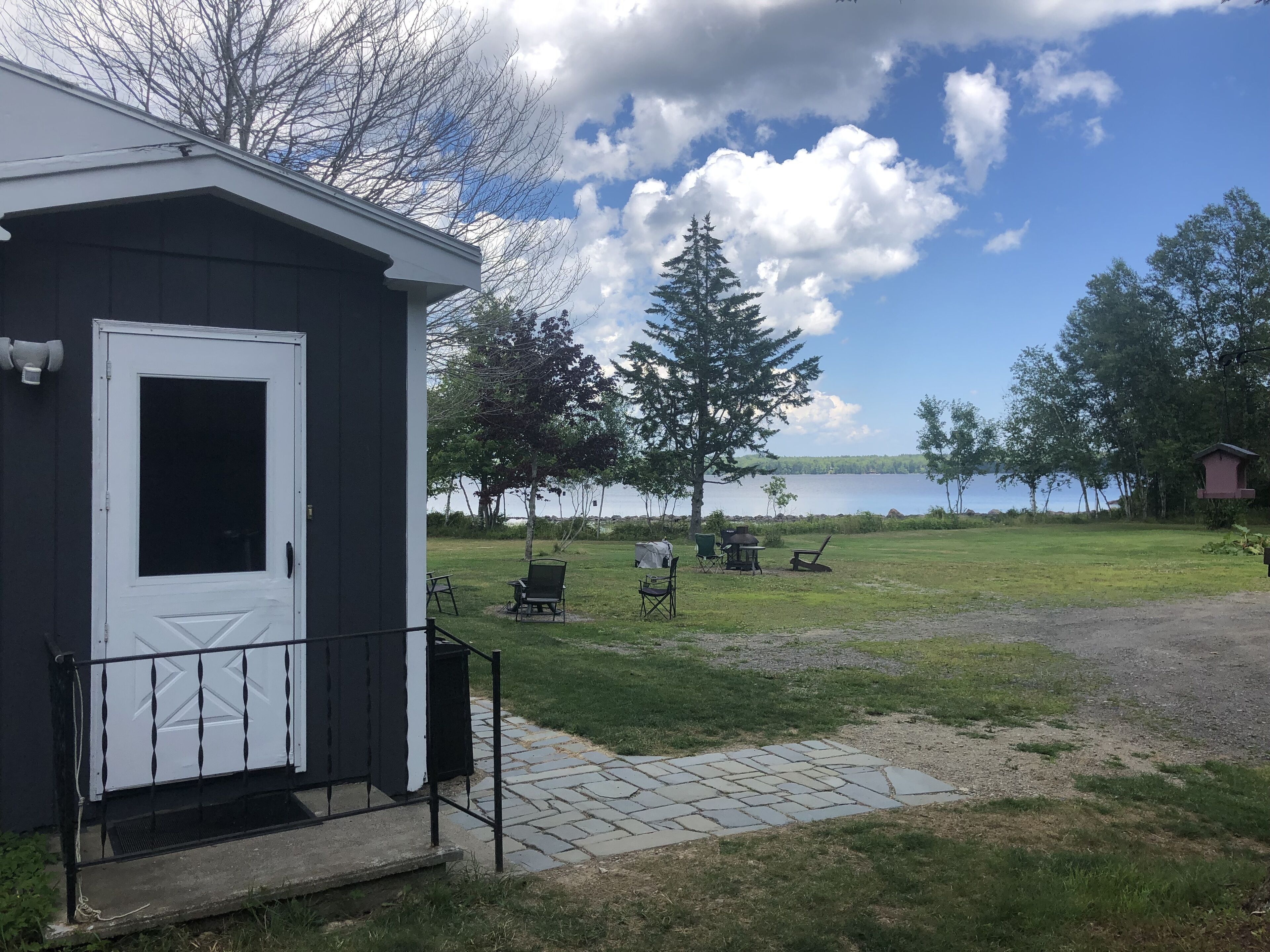 Down East Maine: Gardner Lake Living - Sunshine Lane Charming renovated four season camp a stones throw away from the water. Private peninsula and a sandy beach with lots of frontage. Outdoor shower, patio area, and large lawn. Large open living space, new bathroom, new flooring, kitchen island. Enjoy view from living room through oversized window and sliding glass door overlooking the water and patio area. Take in the sunrise or watch the numerous wildlife in the area (Loons, Eagles, Osprey to name a few) with a fresh cup of coffee from the cabin kitchen, living room or patio area. Camp is close to Route 1 and is close to town but offers privacy on over 2 acres. Supplemental RV utilities (50 Amp service) is available for an extra fee. 2 Bedrooms, one with full sized bed and second bedroom with two twin beds, and a couch with pull out bed to accommodate occupants.