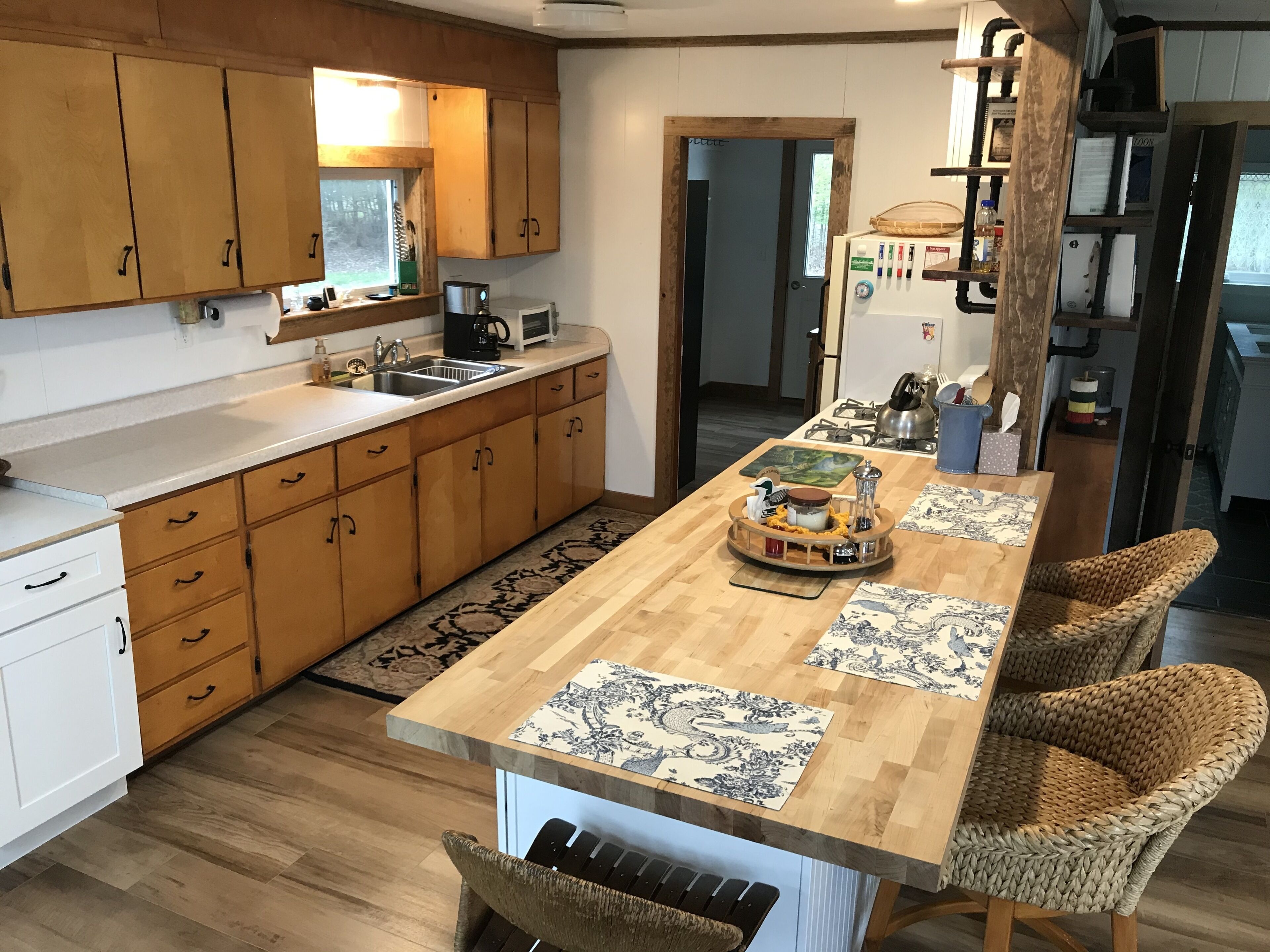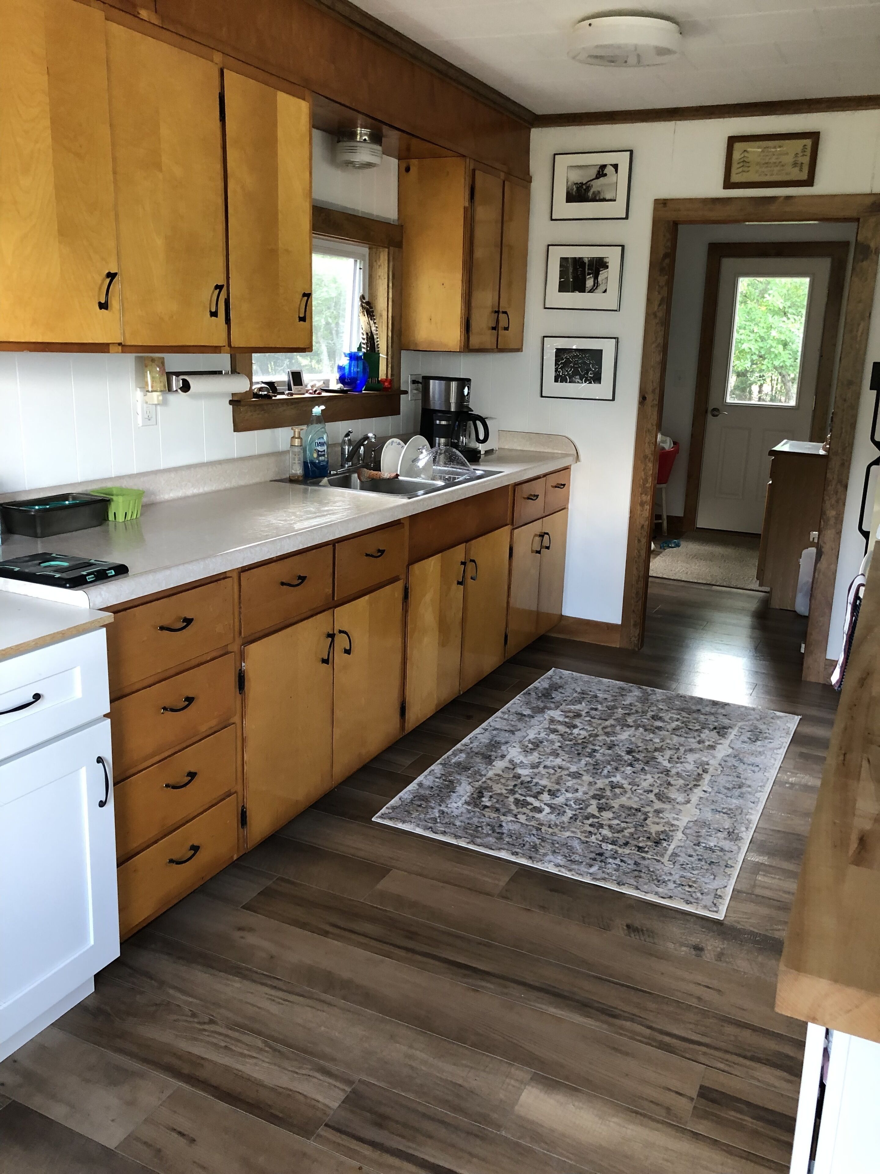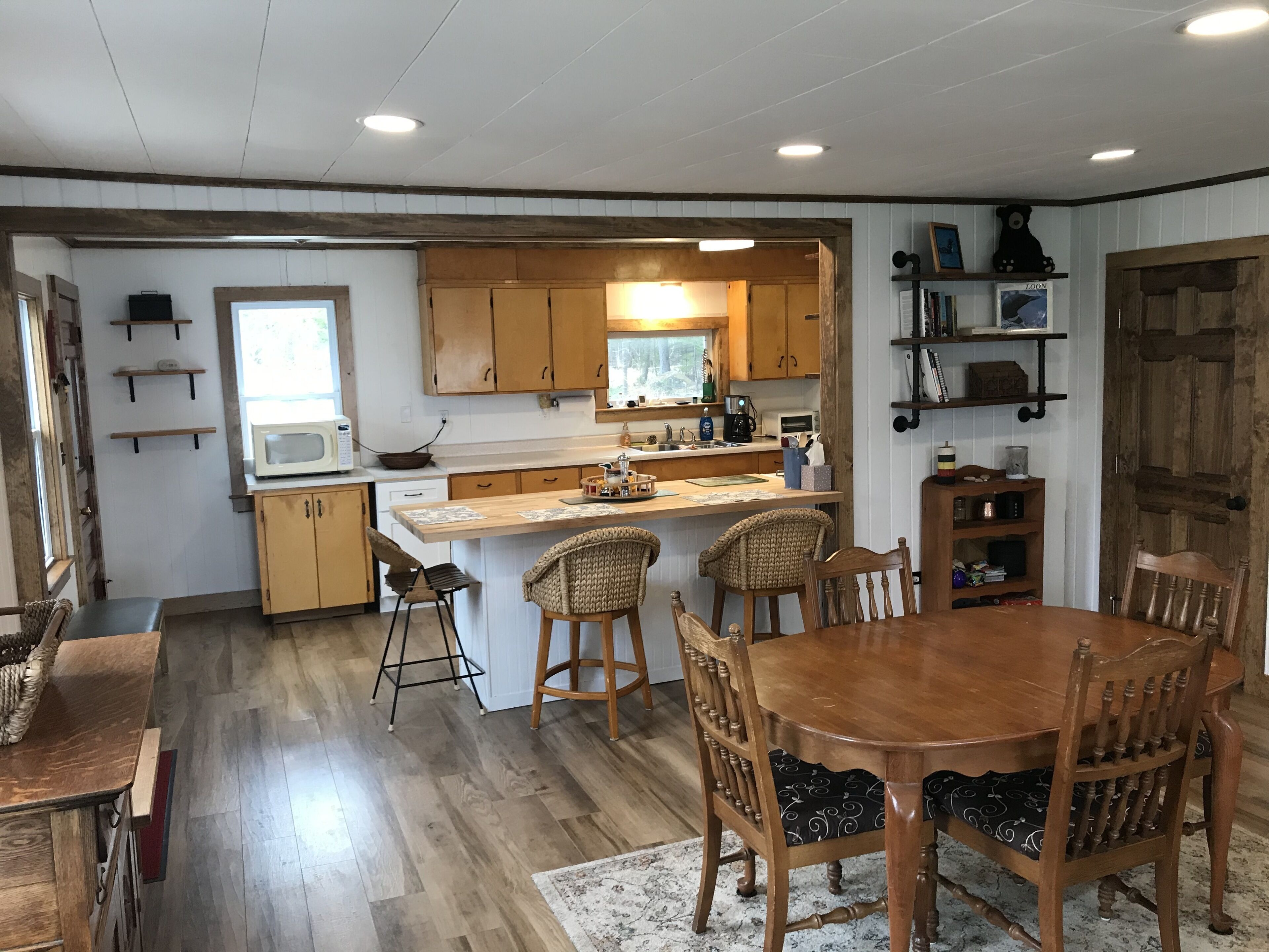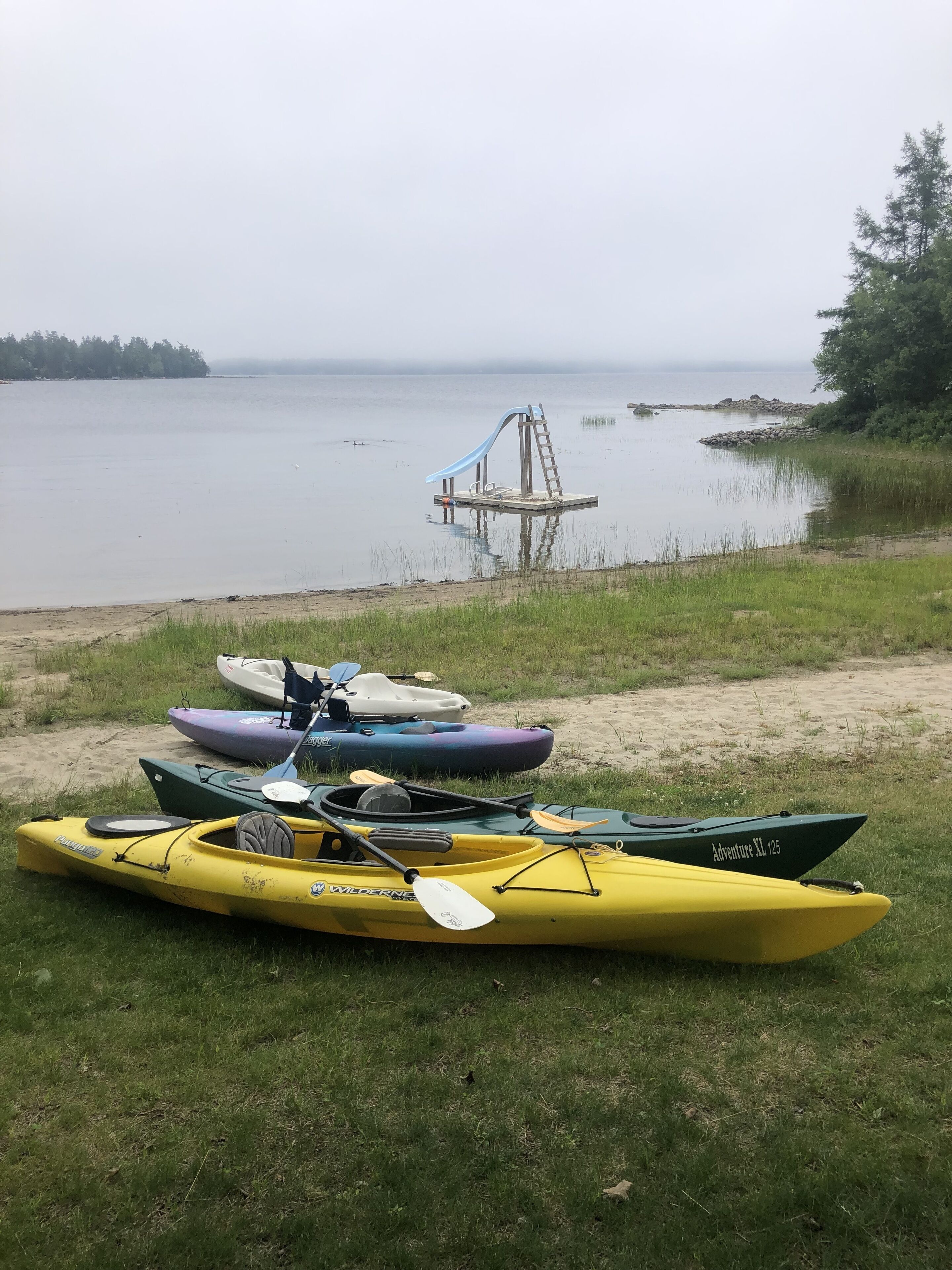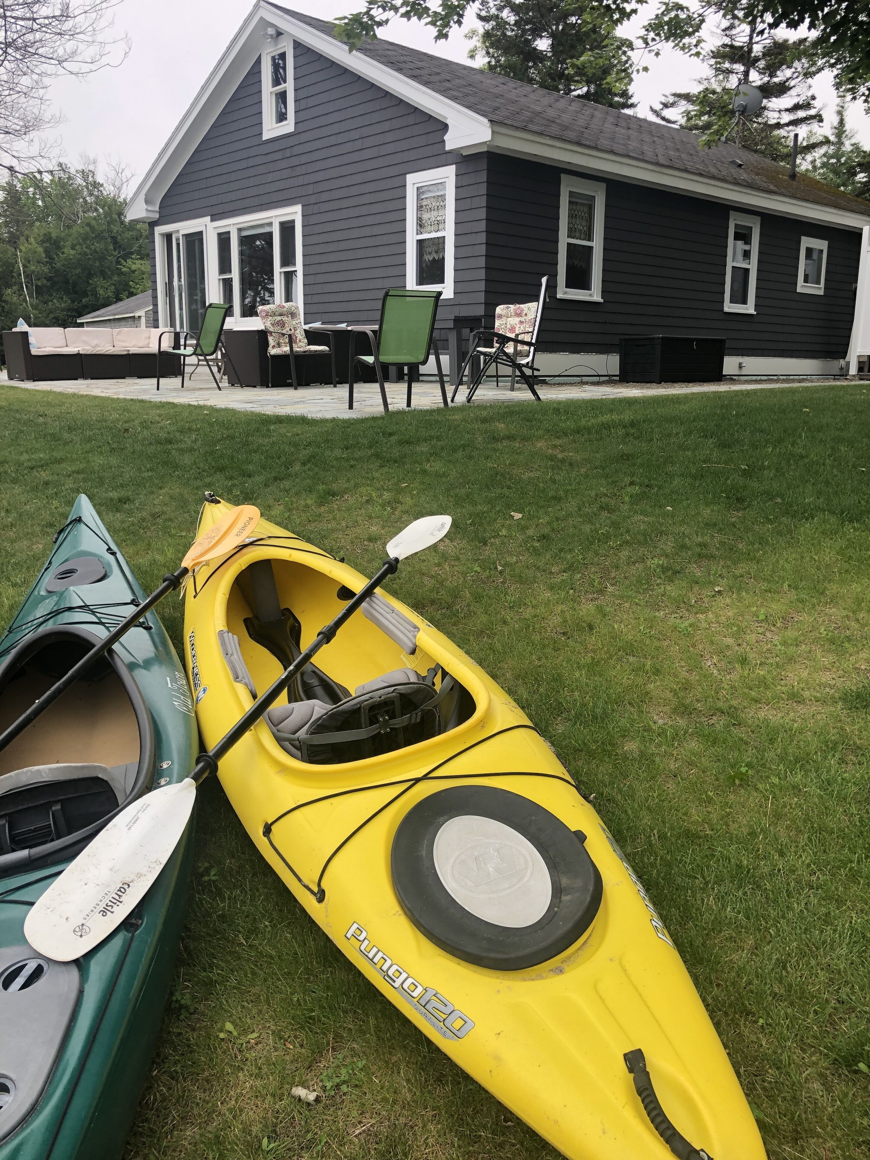 Down East Maine: Gardner Lake Living - Sunshine Lane Charming renovated four season camp a stones throw away from the water. Private peninsula and a sandy beach with lots of frontage. Outdoor shower, patio area, and large lawn. Large open living space, new bathroom, new flooring, kitchen island. Enjoy view from living room through oversized window and sliding glass door overlooking the water and patio area. Take in the sunrise or watch the numerous wildlife in the area (Loons, Eagles, Osprey to name a few) with a fresh cup of coffee from the cabin kitchen, living room or patio area. Camp is close to Route 1 and is close to town but offers privacy on over 2 acres. Supplemental RV utilities (50 Amp service) is available for an extra fee. 2 Bedrooms, one with full sized bed and second bedroom with two twin beds, and a couch with pull out bed to accommodate occupants.