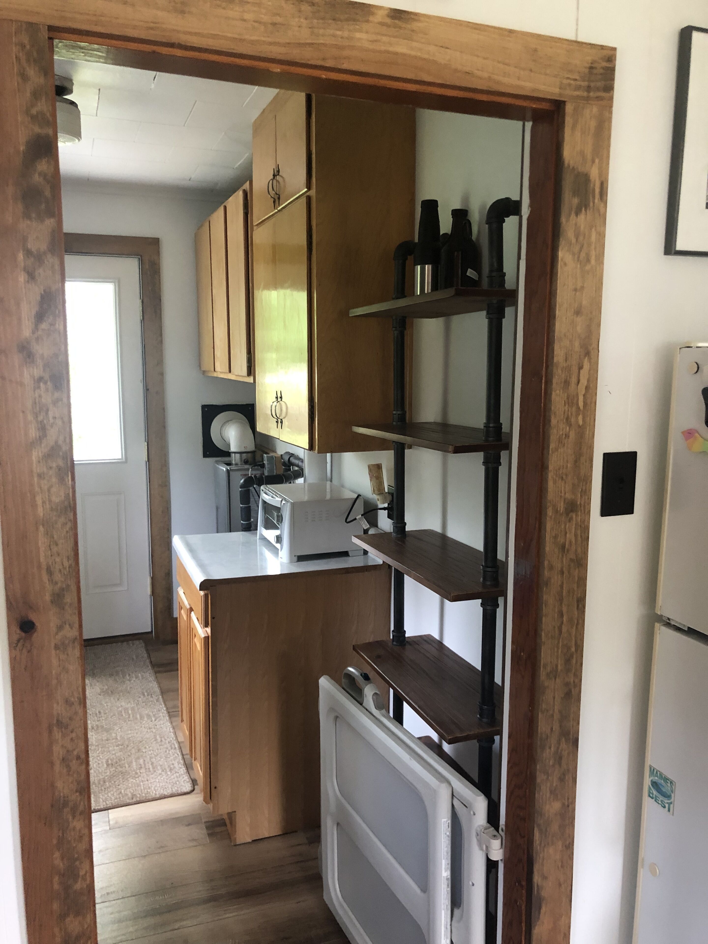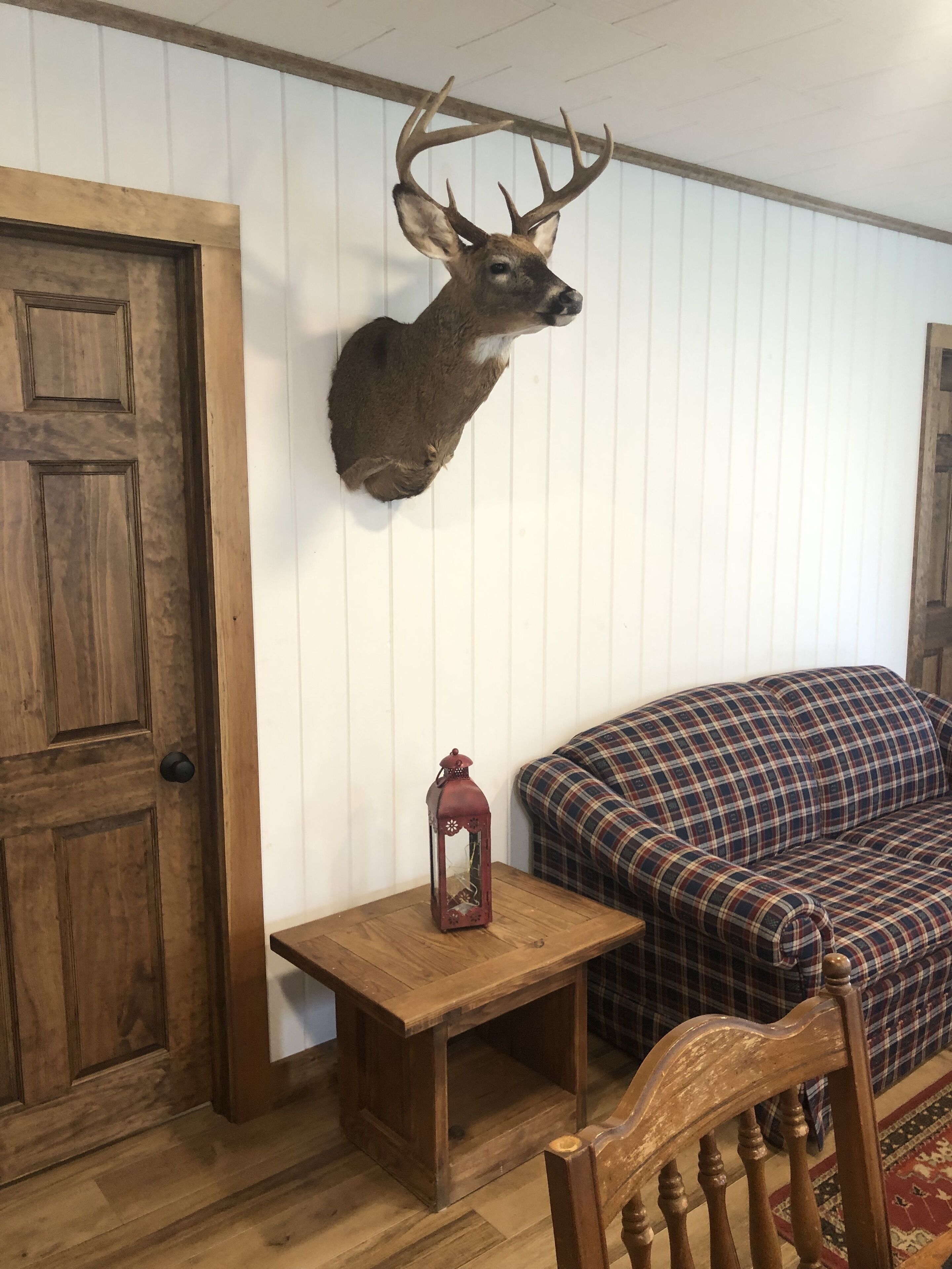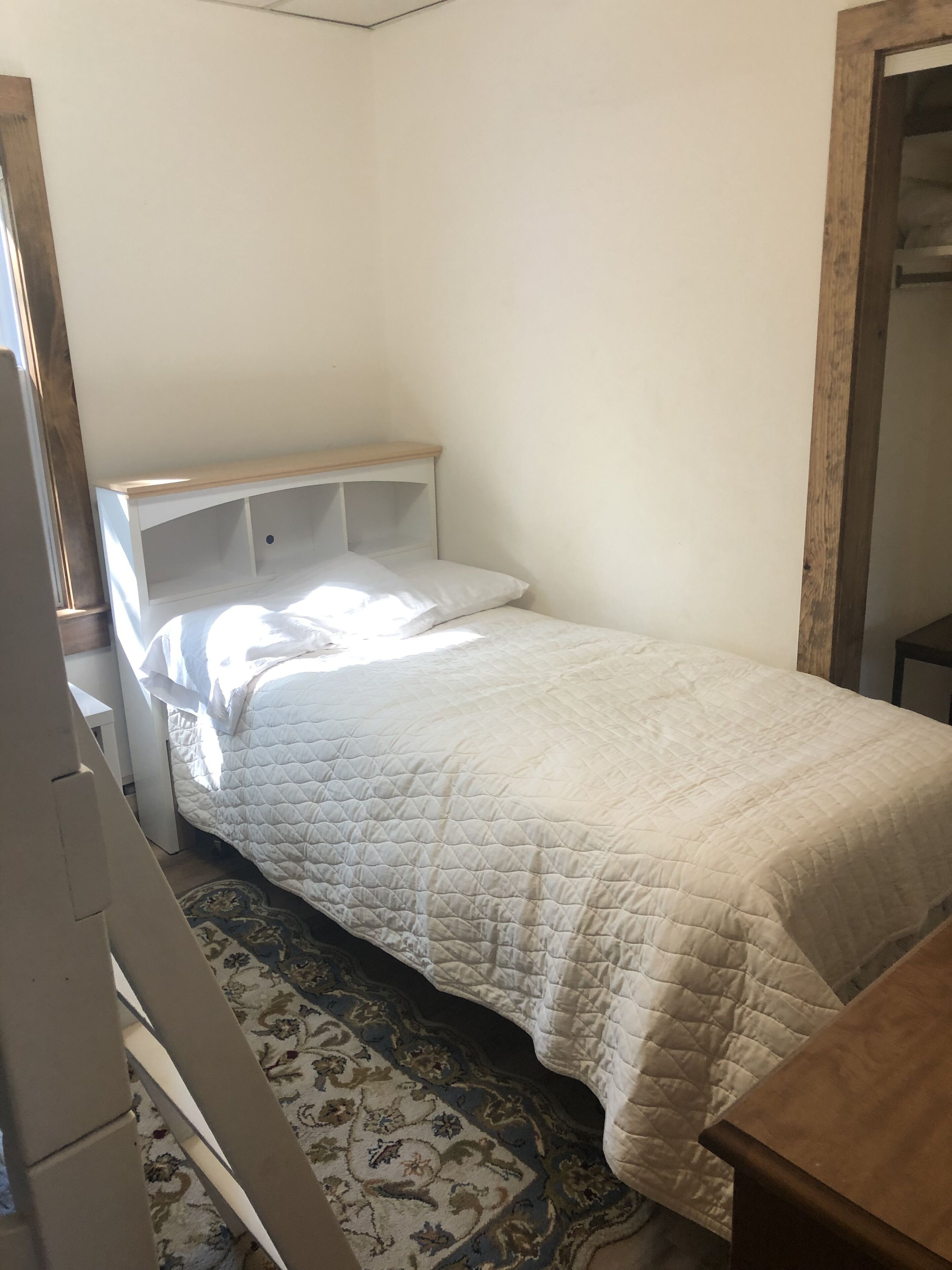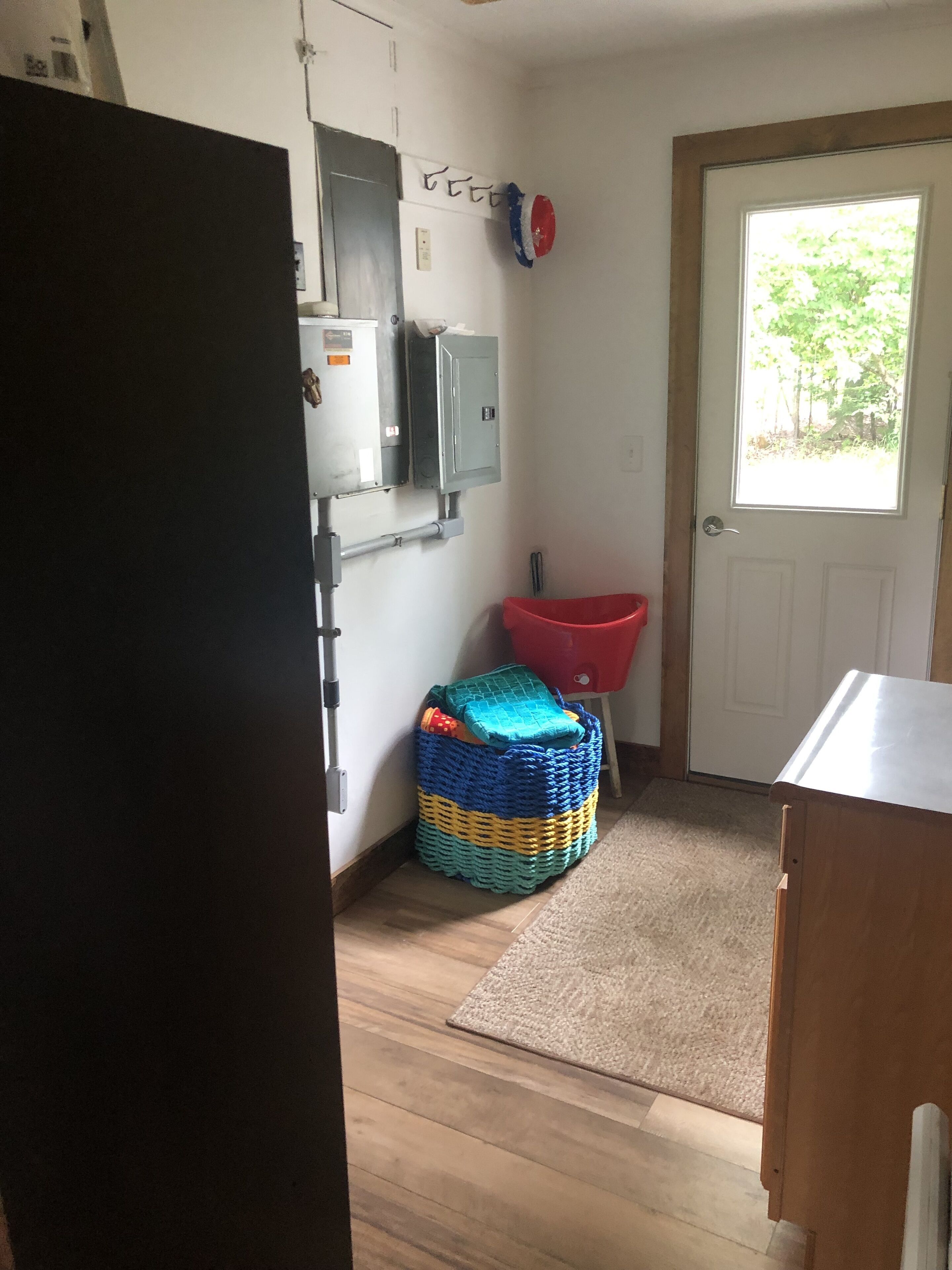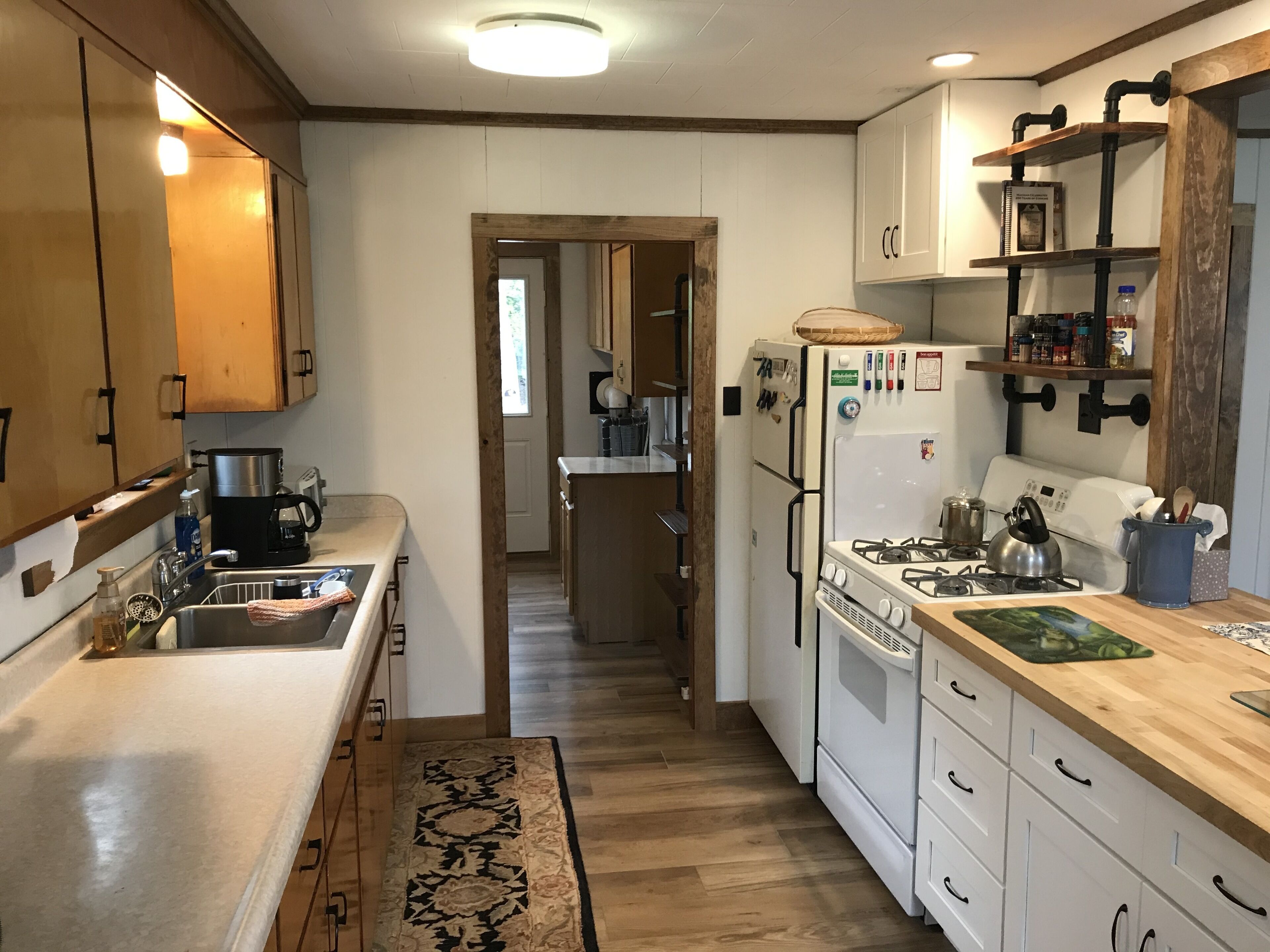 Down East Maine: Gardner Lake Living - Sunshine Lane Charming renovated four season camp a stones throw away from the water. Private peninsula and a sandy beach with lots of frontage. Outdoor shower, patio area, and large lawn. Large open living space, new bathroom, new flooring, kitchen island. Enjoy view from living room through oversized window and sliding glass door overlooking the water and patio area. Take in the sunrise or watch the numerous wildlife in the area (Loons, Eagles, Osprey to name a few) with a fresh cup of coffee from the cabin kitchen, living room or patio area. Camp is close to Route 1 and is close to town but offers privacy on over 2 acres. Supplemental RV utilities (50 Amp service) is available for an extra fee. 2 Bedrooms, one with full sized bed and second bedroom with two twin beds, and a couch with pull out bed to accommodate occupants.