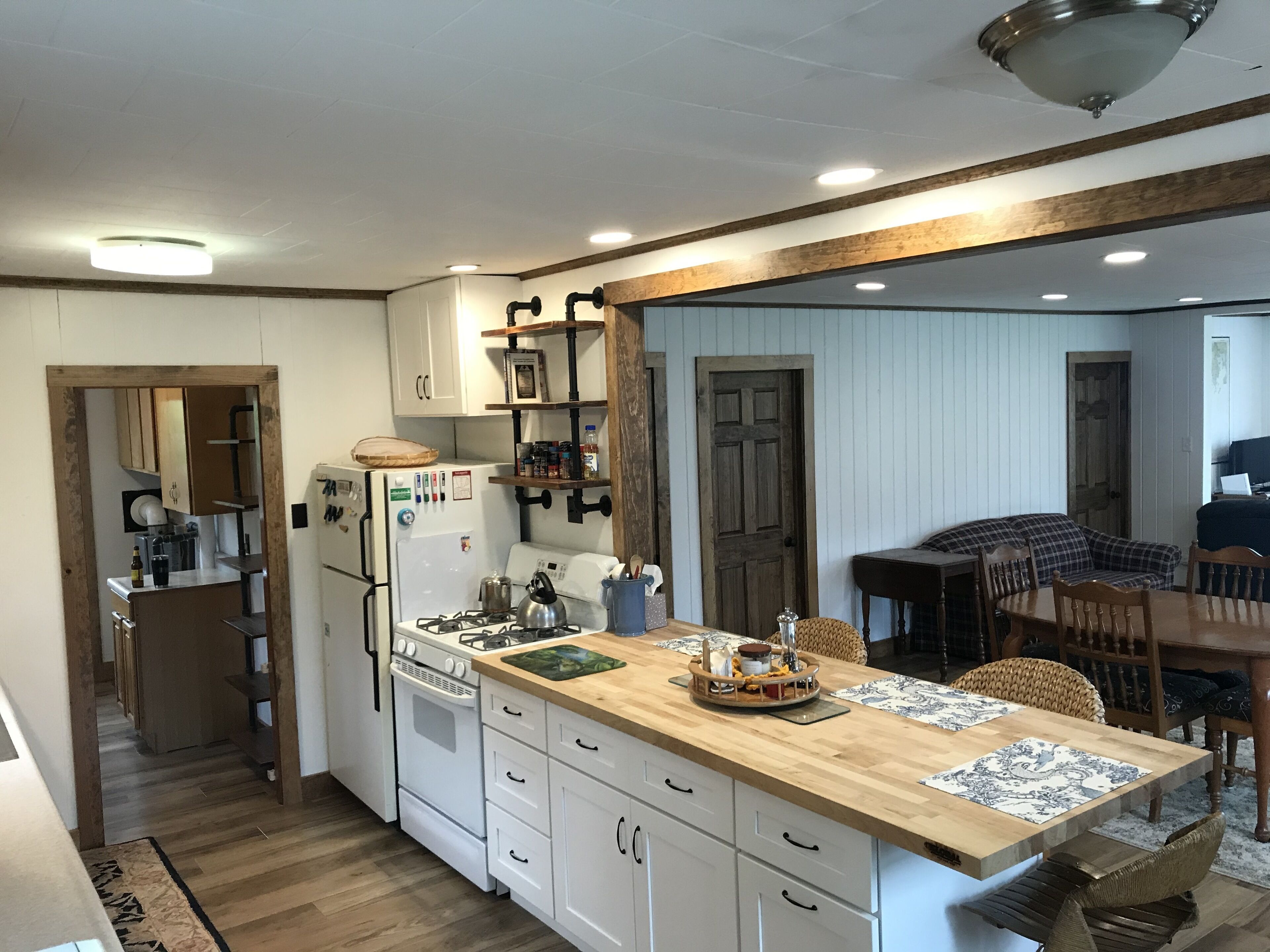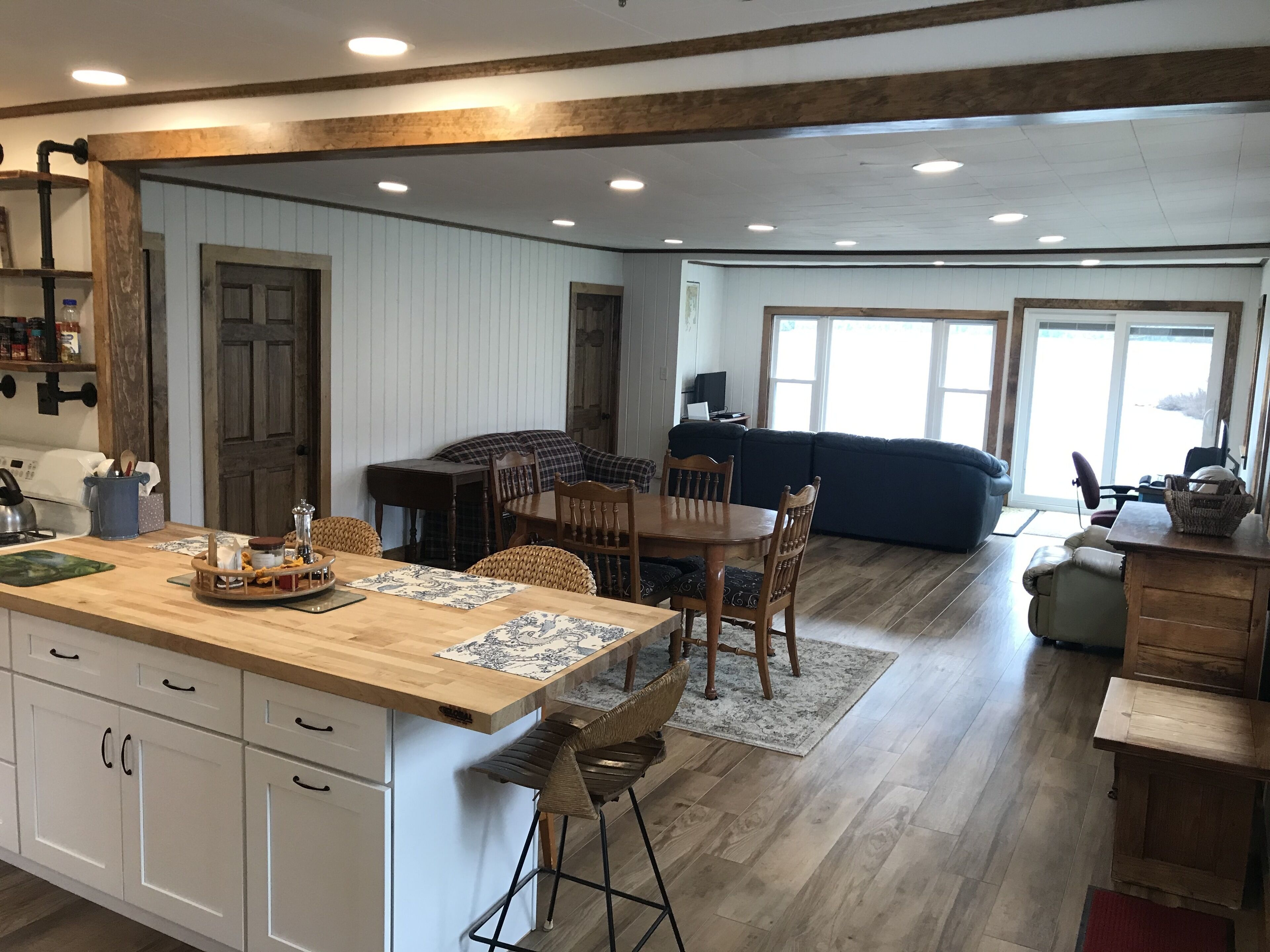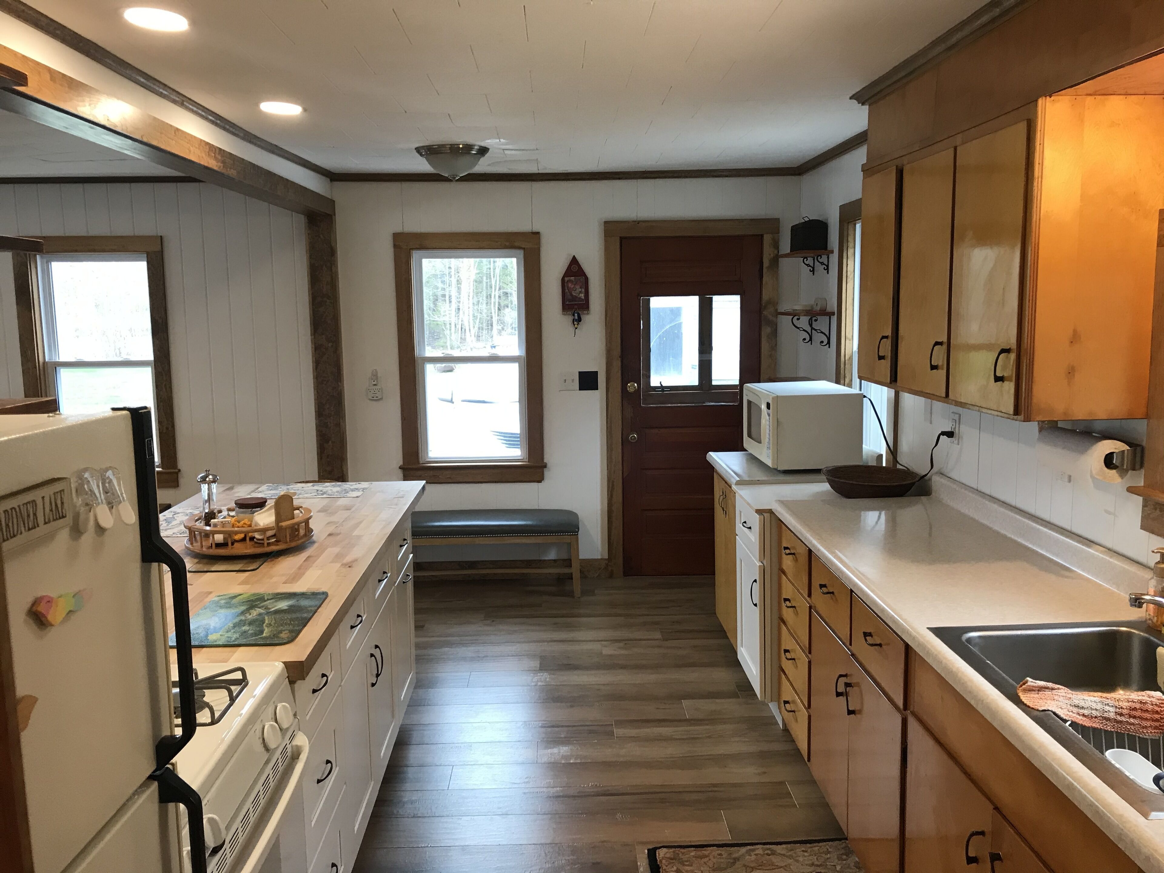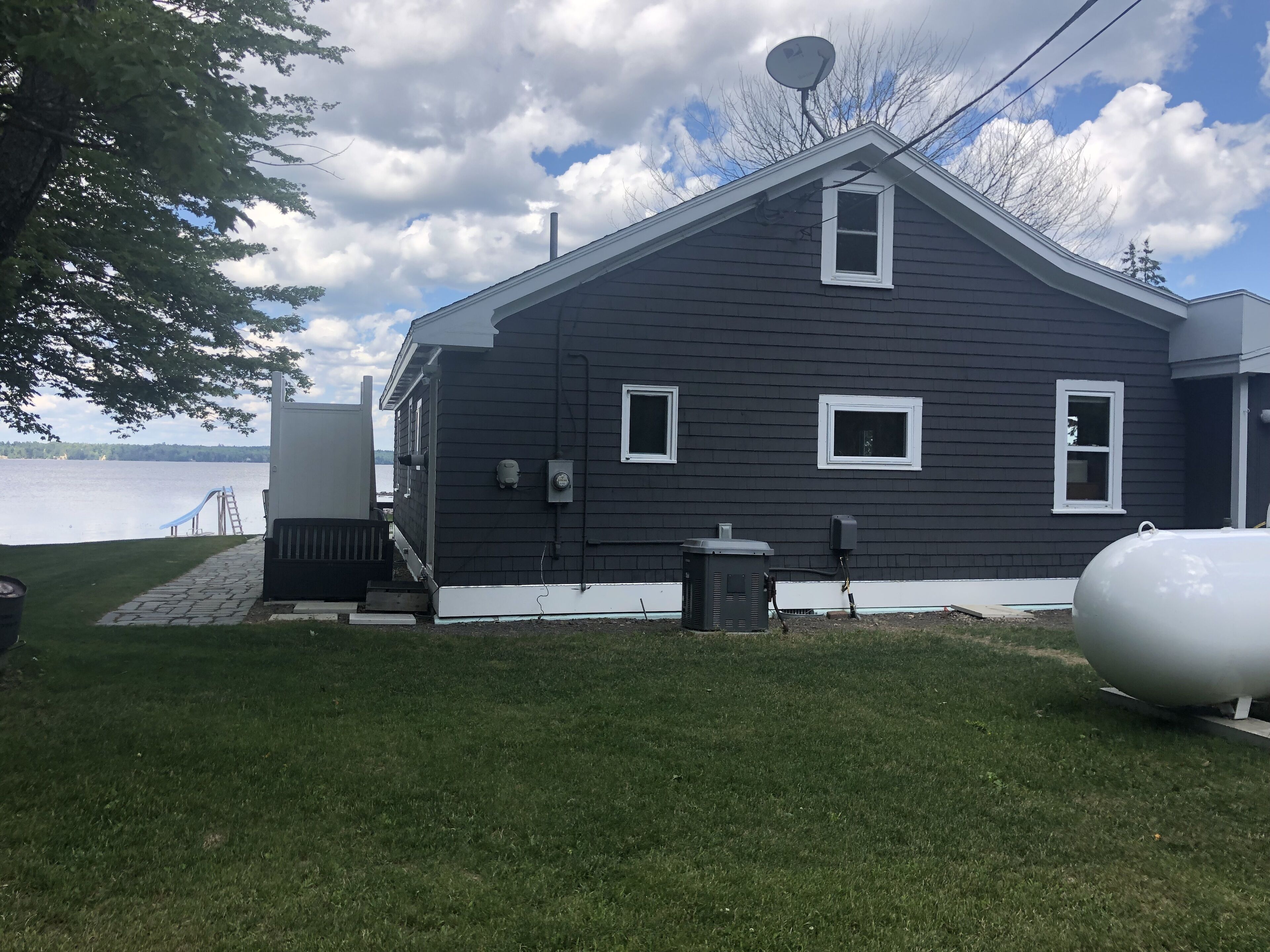 Down East Maine: Gardner Lake Living - Sunshine Lane Charming renovated four season camp a stones throw away from the water. Private peninsula and a sandy beach with lots of frontage. Outdoor shower, patio area, and large lawn. Large open living space, new bathroom, new flooring, kitchen island. Enjoy view from living room through oversized window and sliding glass door overlooking the water and...