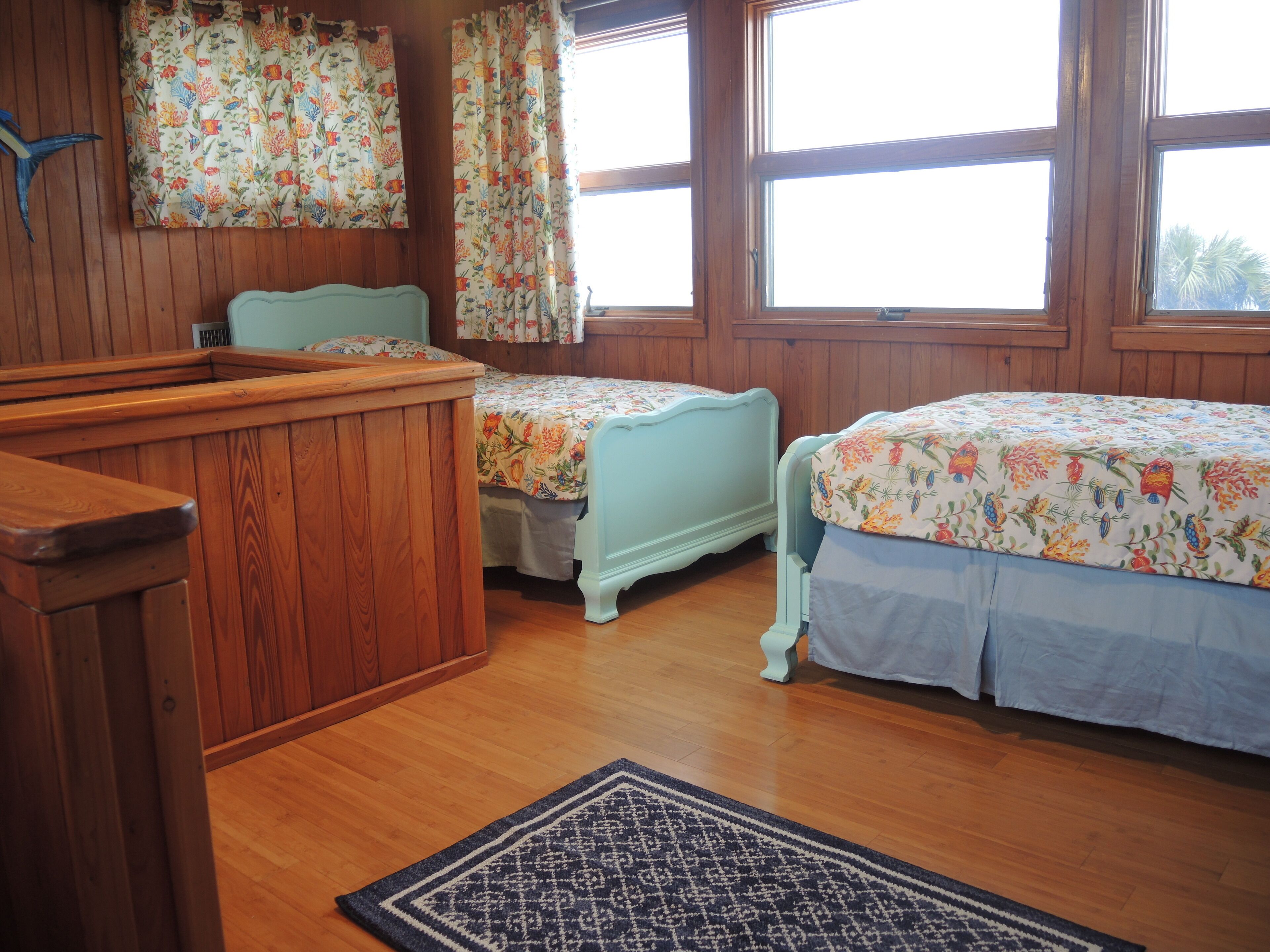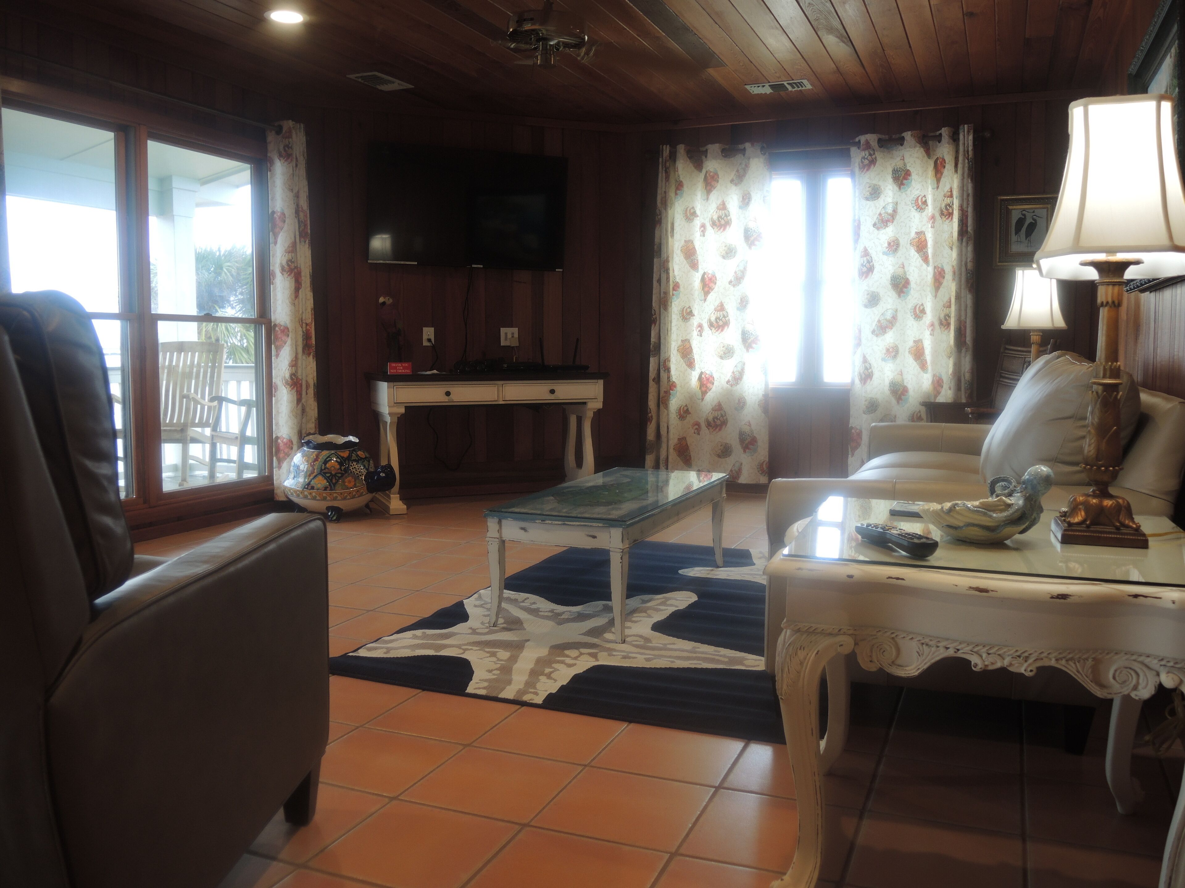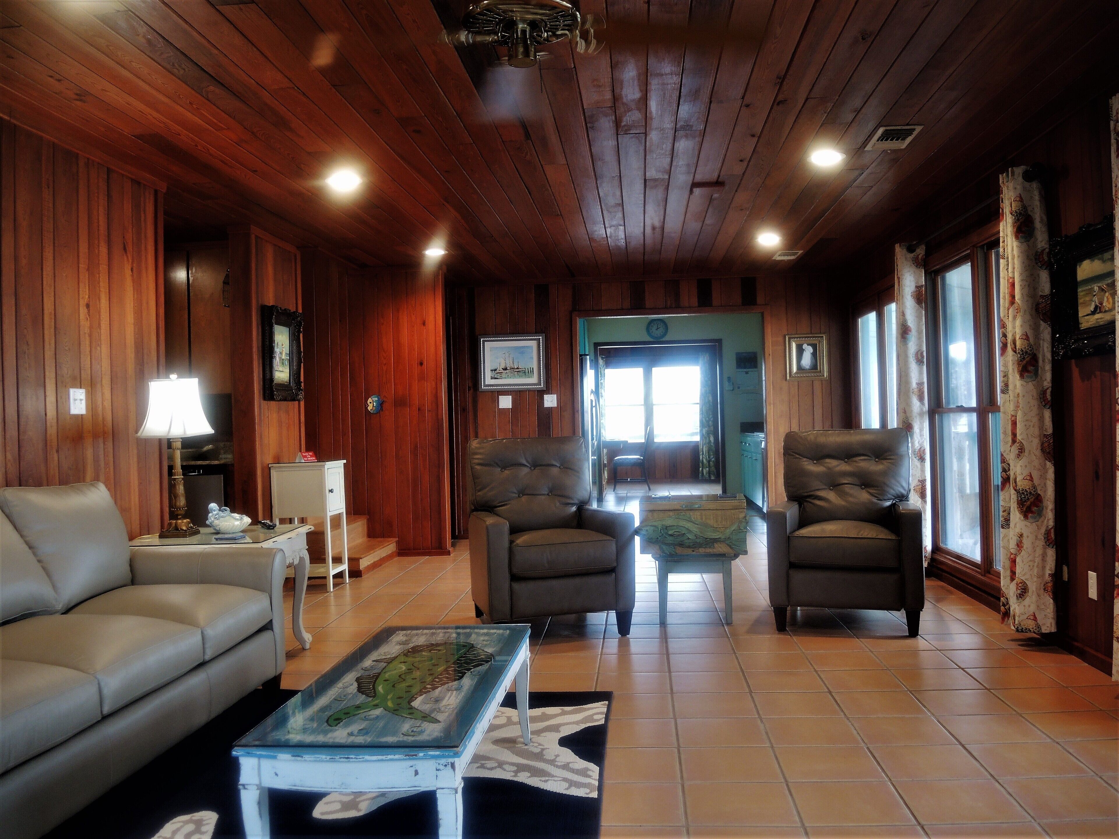 My Point of View Bayfront home with community pool Sleeps 8 My Point of View is a bay front home with beautiful views of the bay. Talk about gorgeous sunsets! This is a 4 bedroom/3 bathroom home that has been completely renovated. This home features 2 king beds, 1 queen bed and 2 twins. Maximum occupancy is 8. The twin beds are located upstairs in the loft with panoramic views of the bay. It has 3 full bathrooms, 2 bathrooms are tub/shower combo, and one bathroom is a shower with a toilet. The washer and dryer are also located in this bathroom. Every bedroom has a smart TV. There is a view of the bay from every room in this home. The kitchen comes well stocked with pots and pans for all of your cooking needs It has a keurig coffee maker, all you need to do is bring your food, condiments and coffee and your are set to go. The living room features a large Smart TV. This home is 2165 sq feet and is large enough for the whole family. You can sit on the porch and enjoy the bay breeze while you watch the bald eagle at the empty lot next door. You will also see plenty of mullet jumping out of the water. There are two docks. The deep water dock is shared with the home next door. The deep water dock is 155 feet long. All you have to do is drive your boat over from the pier and you are ready to go out fishing. The smaller dock/boathouse is for kayaks only. Bring your kayaks or rent one on the island to kayak in the bay. This home is a fisherman's dream He can go out and catch dinner while the wife and kids play in the pool or take a short golf cart or car ride to the beach. Golf carts can also be rented on the island. There is a stainless steel park style grill, all you need to bring is your charcoal. The pool is located so that you have views of the bay as well. The pool is shared with the home next door. The home next door has an occupancy of 6. The pool can be heated in the fall for an additional fee. The pool is heated in the Spring at no additional charge. The Pool is NOT heated in November, December, January and February., Sorry no smoking, no pets allowed. Smart TV's and internet is provided for all of your streaming needs. You need your own streaming account. Cable TV is no longer provided.