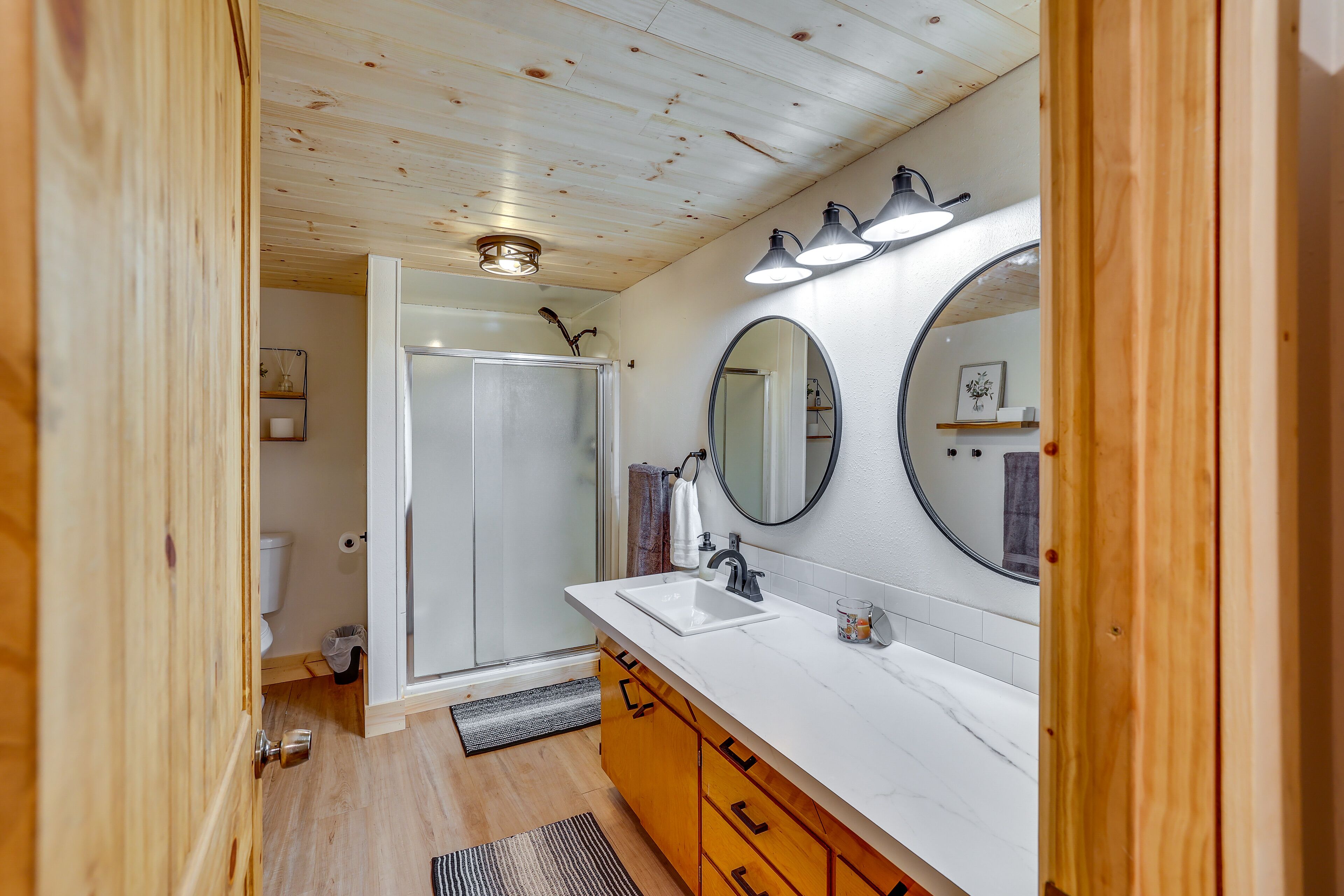 Avery Creek Cabins: Hike, Bike, Fish + More! Nestled in a canyon, surrounded by nature-filled views, this Avery, ID, cabin offers a delightful getaway. With 3 bedrooms, 1 bathroom, and a well-equipped kitchen, this remote vacation rental offers a cozy home base for outdoor enthusiasts! Immerse yourself in the property’s peaceful surroundings, explore miles of local hiking and ORV trails, tour downtown, or bike on the legendary Hiawatha Trail. After your excursions, relax by the fireplace or make a homemade meal. An adventurous trip awaits!-- THE PROPERTY --Pets Welcome w/ Fee | Electric Fireplace | 1,750 Sq Ft | Close to Downtown Avery | Near ATV/UTV TrailsBedroom 1: Queen Bed | Bedroom 2: Queen Bed | Bedroom 3: Twin Bunk BedCABIN AMENITIES: Smart TV, breakfast barKITCHEN: Stove/oven, fridge, coffee maker, microwave, toaster, blender, tea kettle, dishware/flatware, basic cooking essentialsGENERAL: Free WiFi, keyless entry, window A/C units, electric heating, washer/dryer, towels/linens, hair dryer, complimentary toiletries, trash bags/paper towelsFAQ: Pet fee (paid pre-trip)ACCESSIBILITY: 2-story cabin, 1 step to enter, interior staircase required to access bedrooms on 2nd floorPARKING: Driveway (6 vehicles), trailer parking allowed nearby-- THE LOCATION --HIKE + BIKE: Kelly Creek Trail - St. Joe National Forest (1 mile), Arid Peak Lookout Trailhead (8 miles), Pearson Trailhead, Hiawatha Trail (11 miles), Pulaski Tunnel Trail (28 miles), Hobo Historical Trail (30 miles), Trail of the Coeur d'Alenes Mullan Trailhead (36 miles)OPT OUTSIDE: Lookout Pass Ski & Recreation Area (30 miles), St Maries Golf Course (48 miles), Silver Mountain Resort (94 miles)THINGS TO DO: Downtown Avery (0.4 miles), Sierra Silver Mine Tour (30 miles), Mullan Athletic Pavilion (36 miles), Silver Rapids Waterpark (94 miles)AIRPORT: Spokane International Airport (115 miles)-- REST EASY WITH US --Evolve makes it easy to find and book properties you’ll never want to leave. You can relax knowing that our properties will always be ready for you and that we’ll answer the phone 24/7. Even better, if anything is off about your stay, we’ll make it right. You can count on our homes and our people to make you feel welcome--because we know what vacation means to you.-- POLICIES --- No smoking- Pet friendly w/ $50 fee (+ fees & taxes, 2 pets max)- No events, parties, or large gatherings- Must be at least 25 years old to book- Additional fees and taxes may apply- Photo ID may be required upon check-in- NOTE: This 2-story cabin requires 1 step to enter and an additional interior staircase is required to access all of the bedrooms located on the 2nd floor