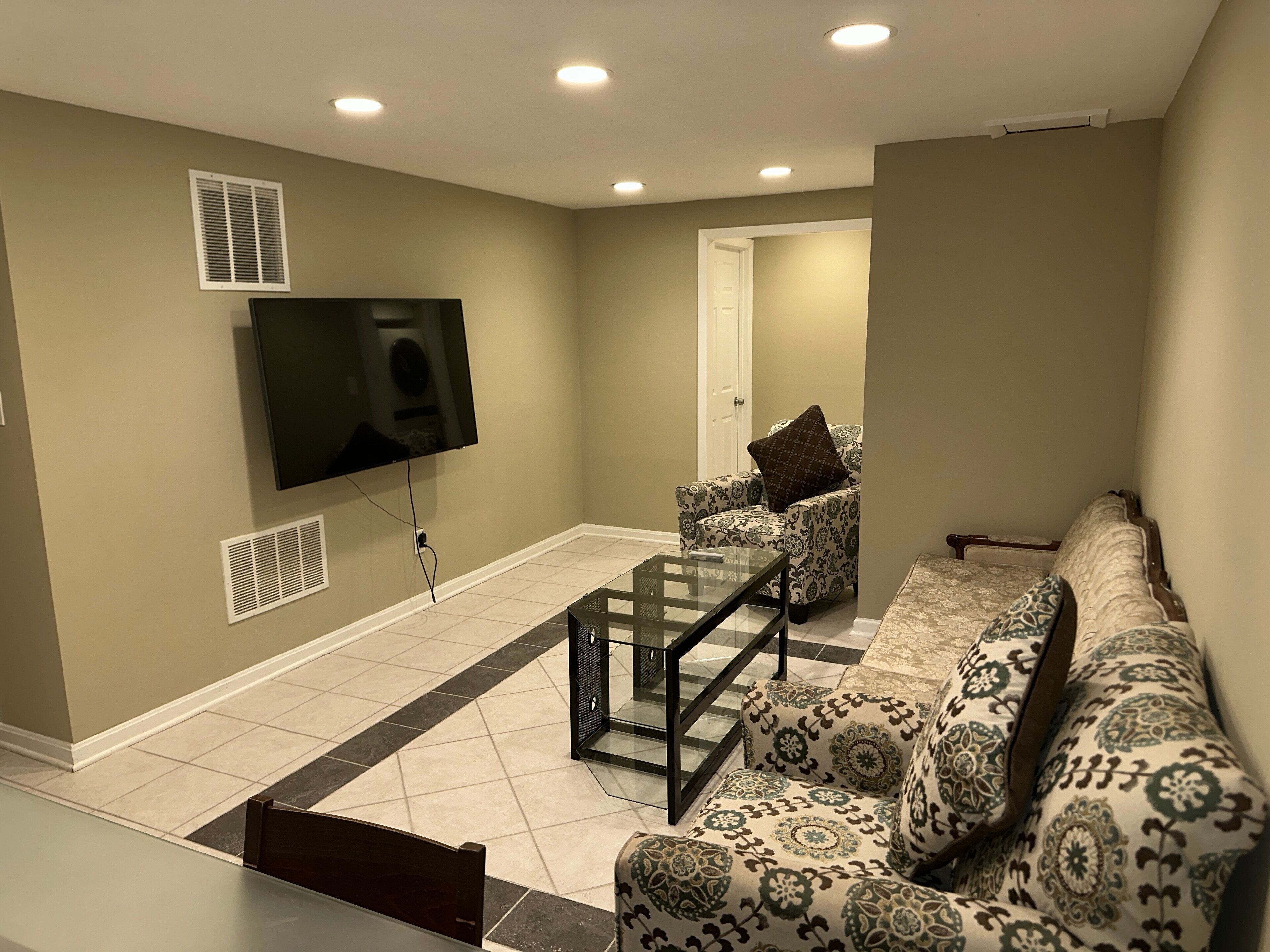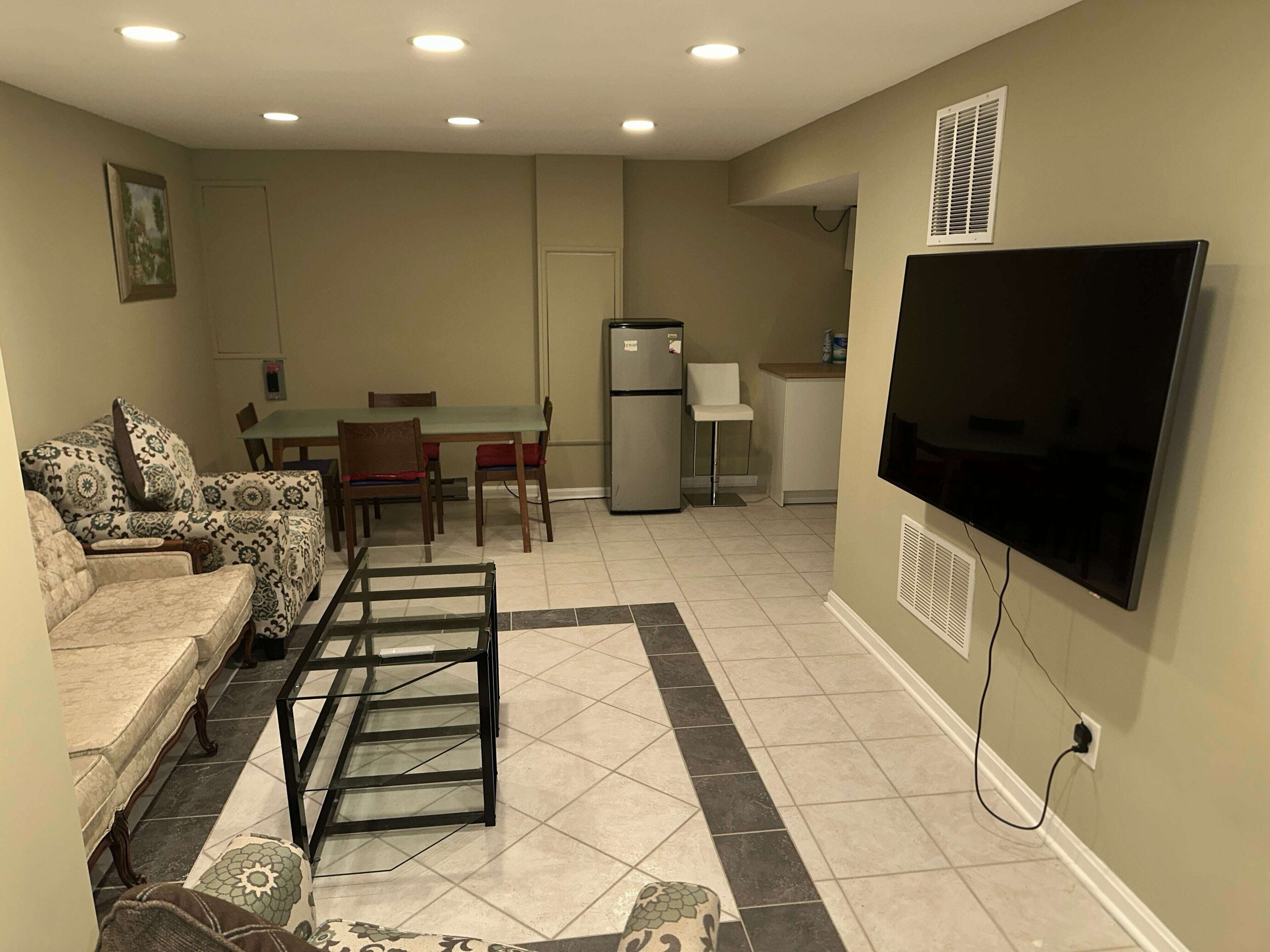 Hidden GEM-Perfect Cozy Retreat Welcome to our cozy basement rental, designed for comfort and convenience. This inviting space features a separate entrance, ensuring complete privacy during your stay. The living room is perfect for relaxation, boasting a huge 65" TV. The spacious bedroom includes a comfortable bed and ample storage, with an attached full bathroom. Additionally, you'll have access...