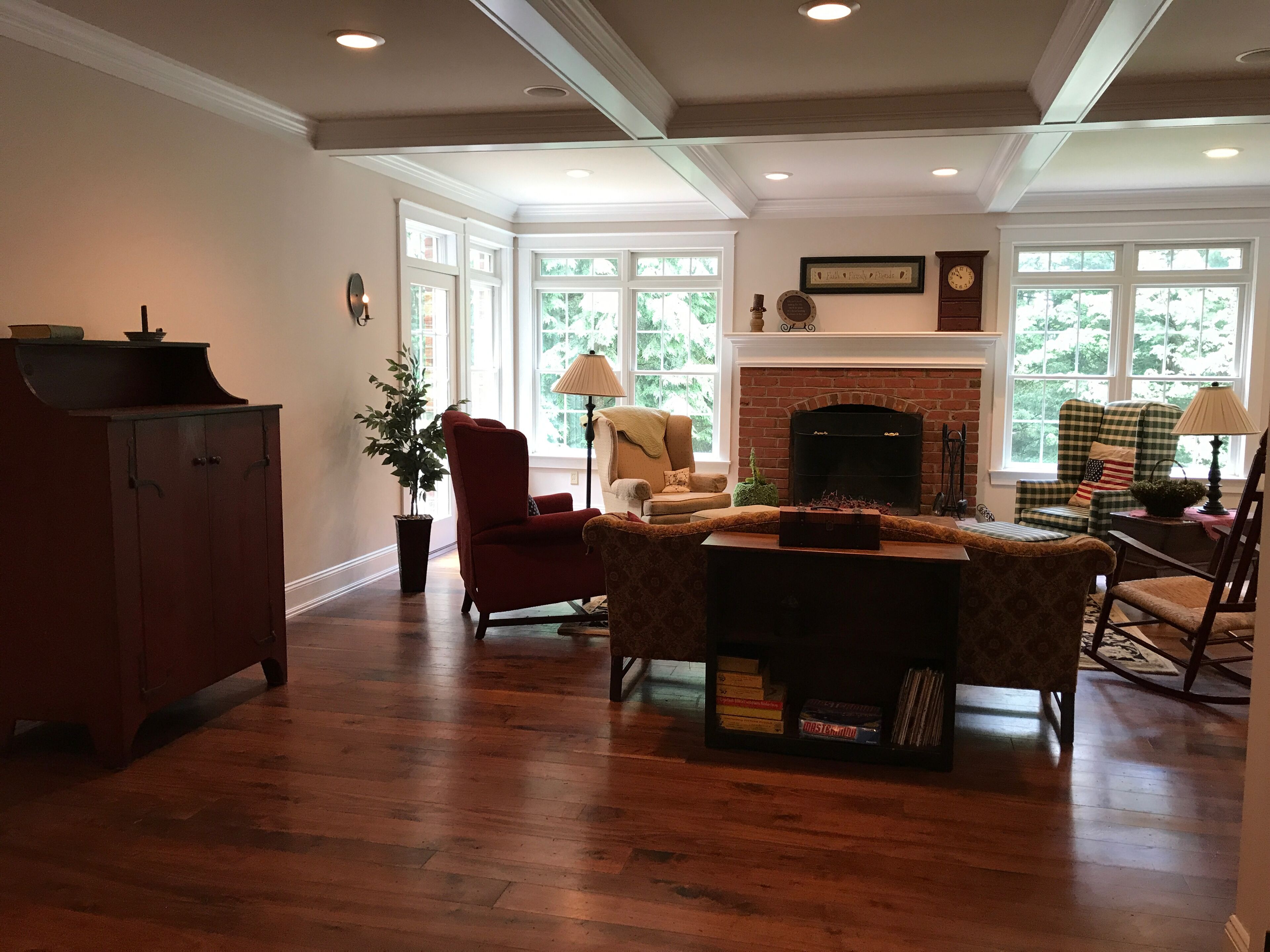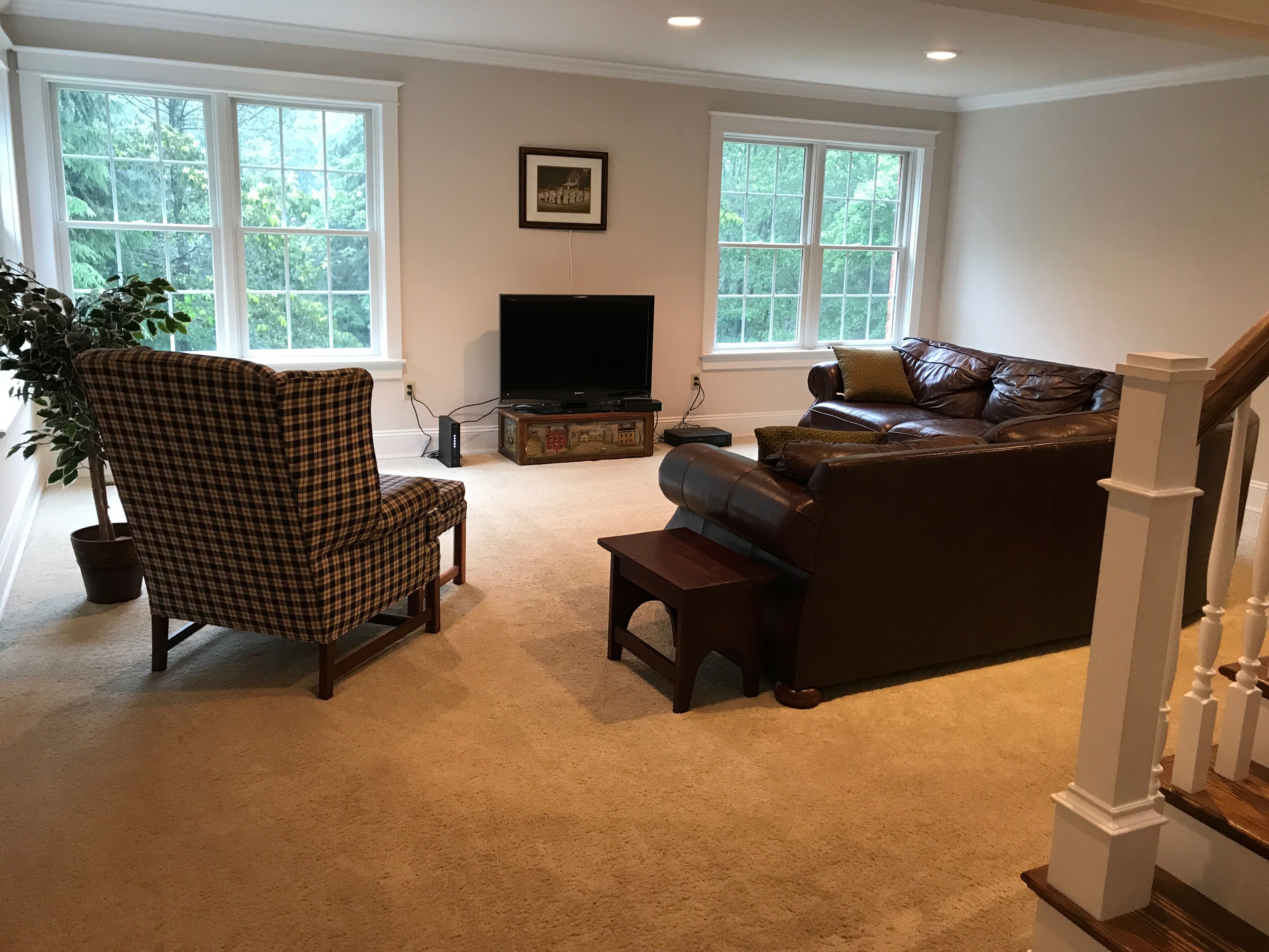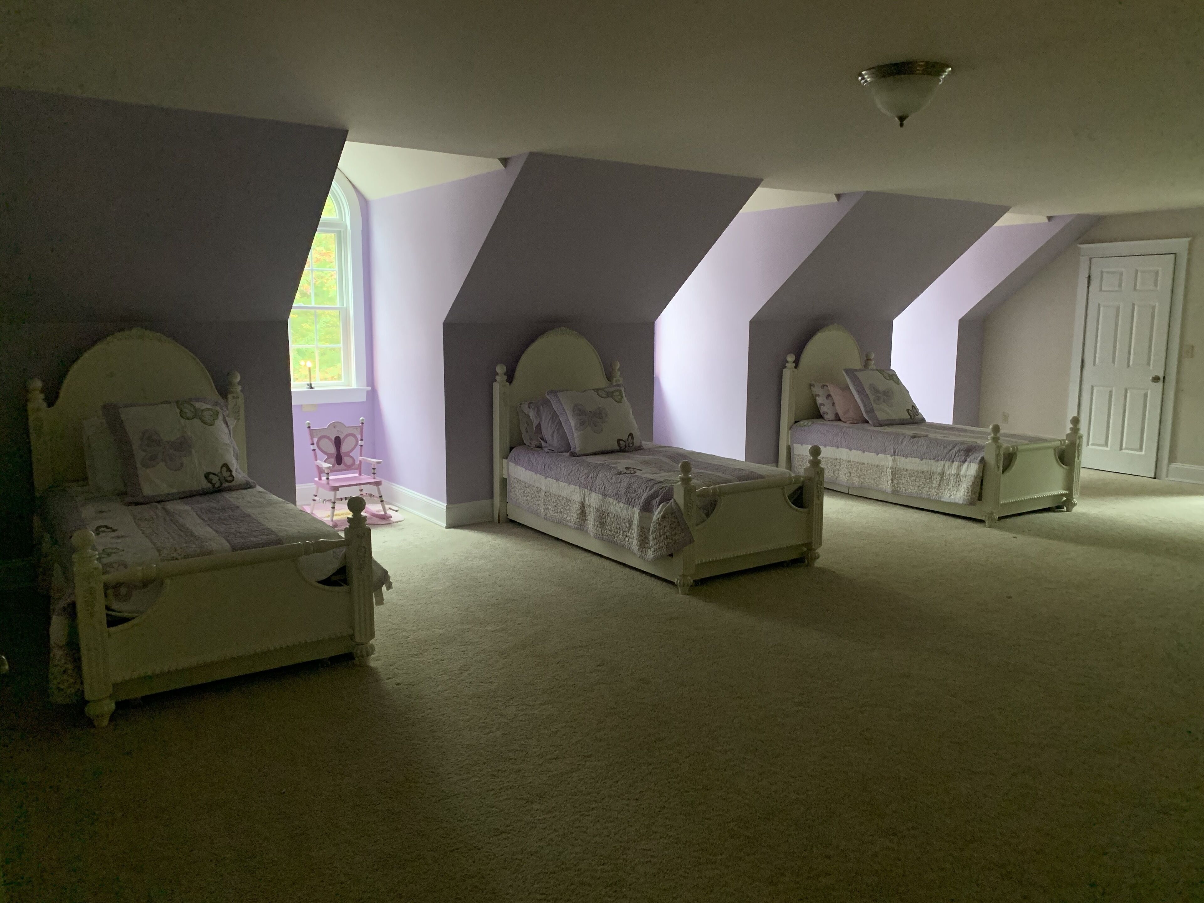 Gorgeous Colonial Home! Great for large family gatherings! Sleeps 25+ Please note- This home was designed and built with large family gatherings in mind. It is in a beautiful, secluded neighborhood where we are thoughtful of our neighbors. While joyful family noise and outdoor play are welcome, it is not to be rented for loud, boisterous, or rowdy partying. NO loud parties allowed. Please do not reserve this home for that purpose. Thank you. The Heritage Prívate. Plenty of space. Perfect. This 10 year-old, red-brick, early-American style home is located in the heart of Pennsylvania. Surrounded by wooded trails, and offering plenty of space indoors and out, this place is a perfect paradise for any get-away or retreat. Minutes from historic Williamsport, The Heritage boasts quick access to Millionaires row, downtown shopping, The International Little League Ballpark and Museum, and the stunning CAC (which often hosts mid-week Broadway shows for less). There are plenty of the most beautiful biking and hiking trails (including the paved path along the Susquehanna River) to enjoy and lots of hunting and fishing available nearby. If one wants to venture an hour or two from the home one finds World's End state park, Rickett's Glen, Eagle's Mere, Bald Eagle state park, Pine Creek, State College, Hershey, historic Harrisburg, Lancaster or "Amish Country", outlet shopping, skiing, and one of the world's best indoor water park in the Poconos. If one wants to venture 3 hours, a day trip to NYC, Washington DC, Philadelphia, Gettysburg, or Palmyra, NY is very doable.Features of the HomeThe kitchen is warm and beautiful with granite countertops, custom-made cabinetry, and distressed walnut flooring. There is plenty of counter space for creating and serving food. The kitchen is well-stocked with everything you need to host a large group or just be comfortable and cozy at home. There is a high chair and booster seat. The bedrooms have cozy carpet. The bathrooms are spacious and clean also with tile flooring & granite countertops throughout the home. There is a main floor washer/dryer and an upstairs washer/dryer that are for your use during your stay. The basement is unfinished except for the one finished bedroom and beautiful bath (with heated flooring!). It's equipped with rolling/riding toys and a stage for children but the best part of the basement is that it houses a full-size indoor slide! There’s a basketball hoop on the large, private driveway waiting for some good games!The home itself welcomes cozy couples or large groups with an inviting bedroom and bath on the main floor, plenty of bedrooms to be filled beyond that, and large areas for groups to comfortably gather. Beyond the main floor bedroom, which holds a queen-size bed and connects to a full bath, there is a bedroom downstairs, with a full-size bed and a gorgeous new bathroom with heated floors next to it. To get to this bedroom, one walks through the unfinished basement which has an indoor slide, toys, and other games available for your group’s enjoyment. Going upstairs instead, there is a second family room with sectional and TV. There are 4 more bedrooms on this floor. Two of the bedrooms are of bright color, girlish design and share a Jack and Jill bathroom and each has a twin size bed with a pull out twin size bed beneath. There are desks in each of these rooms and nice-size closets. One of these bedrooms does not have window coverings because it looks out onto forest and is completely private. Another bedroom on this floor is masculine decor, holds a full-size bed, has a large desk, small couch, and is attached to a full-size bath featuring regular and child-sized sinks. There is a small, charming, feminine room with a full-size bed and a matching crib at the end of the hall that shares that bathroom if needed. There’s a 2nd laundry room on this floor. The largest room in the home is this upstairs master bed room with a king-size bed, desk, couch, and it’s own full-sized bath featuring a jetted garden tub with private views of the forest. If one travels up the stairs from this floor (from the 2nd floor family room) to the “attic”, there is a large, open nursery/playroom with 3 twin size beds in it - each with a pull-out trundle bed (twin size) beneath. There are 2 very large bedrooms off this great room, each holding a full-size bed and a desk. All these upstairs beds share one large full bath in the attic, with a regular and child-size sink. As mentioned previously, there is one room with a crib. There is also a happy camper and a high chair and booster seat available for use- all are stored in the main floor laundry room to be used as needed. A king size blow up bed is also available for additional guests.Despite all it's inviting features, the very best of The Heritage may be the meandering stone patio, the delightful decks out back, and the beautiful windows that captivate visitors year-round with breathtaking, wooded views! Enjoy sunrise from the windows or deck! Take a morning walk on the historic logging trail that begins on the property, or take an evening stroll down the paved street in front of the property to enjoy a beautiful vista and watch sunset! Private. Plenty of space. Perfect. For an outdated, but beautiful, quality video tour google search: "the heritage tour ronin first flight". Patio has been finished since then.