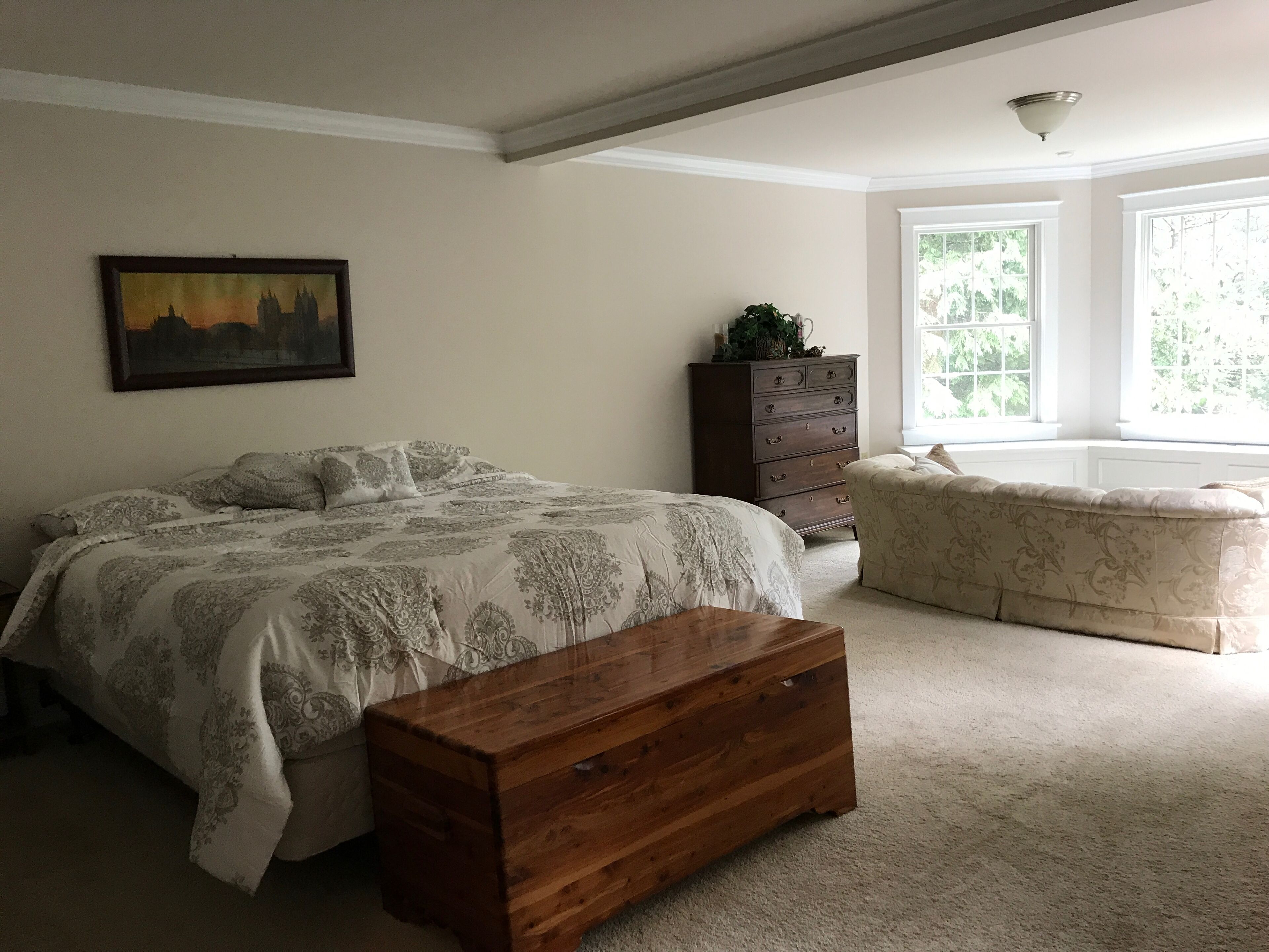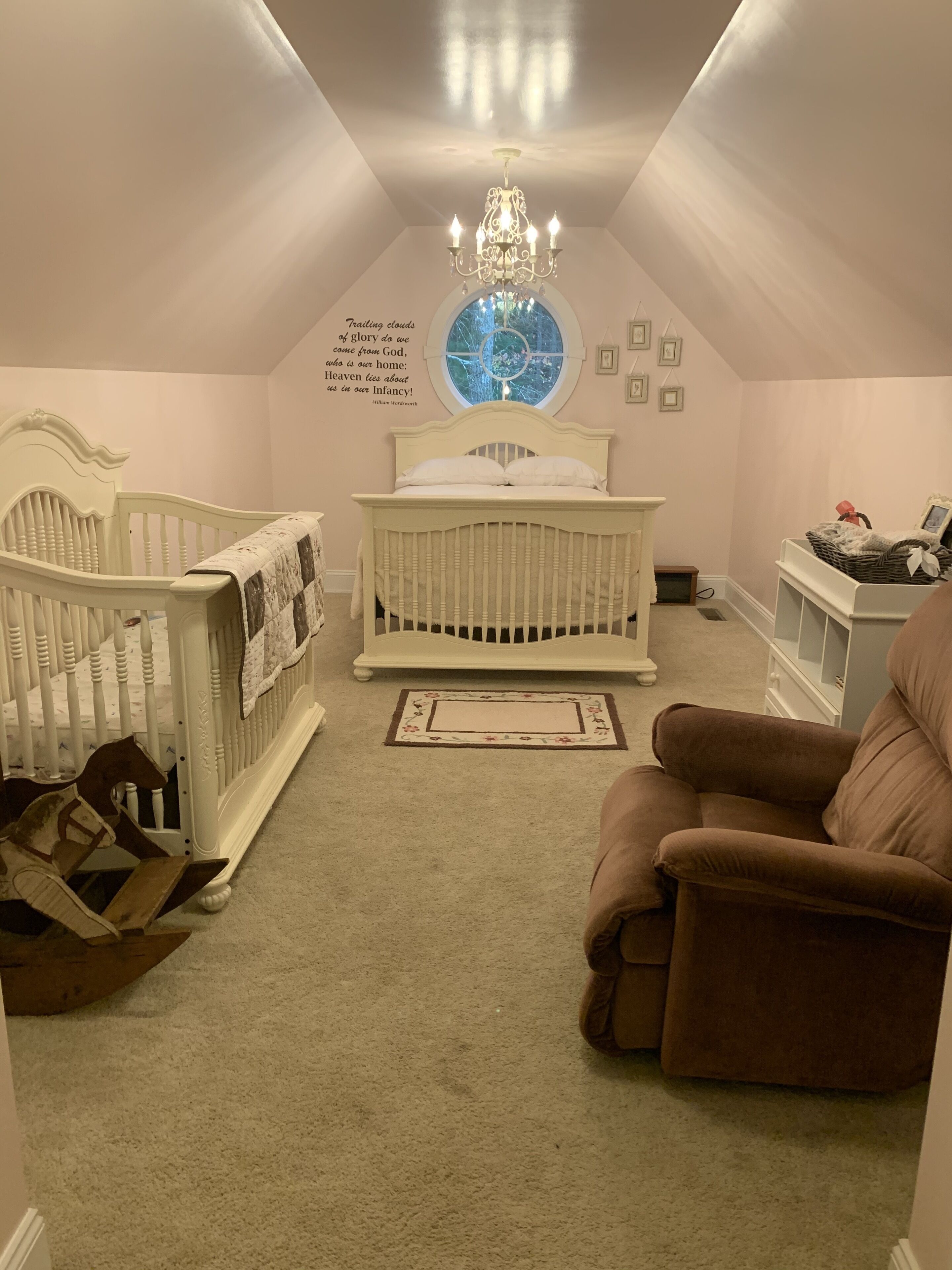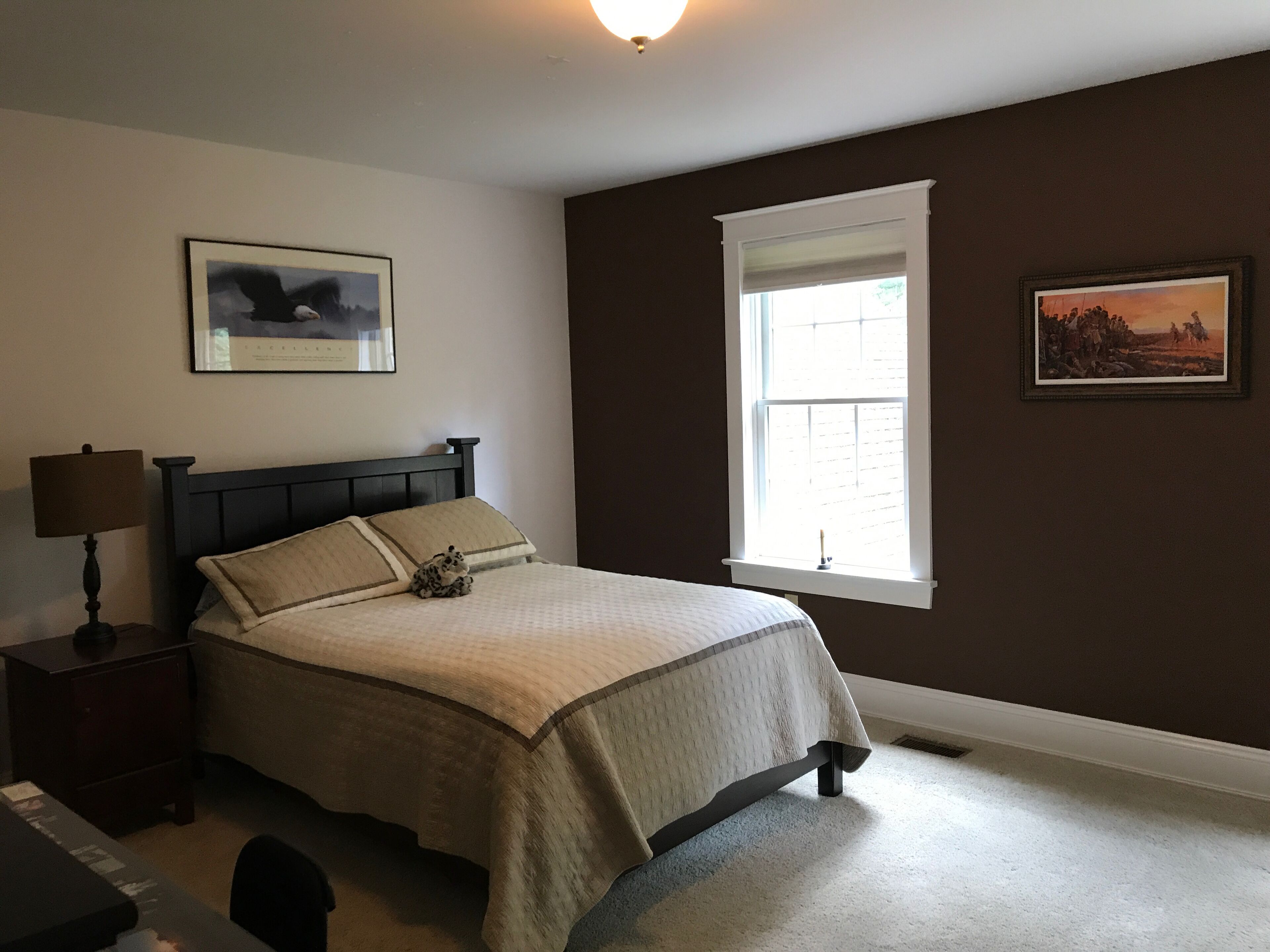 Gorgeous Colonial Home! Great for large family gatherings! Sleeps 25+ Please note- This home was designed and built with large family gatherings in mind. It is in a beautiful, secluded neighborhood where we are thoughtful of our neighbors. While joyful family noise and outdoor play are welcome, it is not to be rented for loud, boisterous, or rowdy partying. NO loud parties allowed. Please do not reserve this home for that purpose. Thank you. The Heritage Prívate. Plenty of space. Perfect. This 10 year-old, red-brick, early-American style home is located in the heart of Pennsylvania. Surrounded by wooded trails, and offering plenty of space indoors and out, this place is a perfect paradise for any get-away or retreat. Minutes from historic Williamsport, The Heritage boasts quick access to Millionaires row, downtown shopping, The International Little League Ballpark and Museum, and the stunning CAC (which often hosts mid-week Broadway shows for less). There are plenty of the most beautiful biking and hiking trails (including the paved path along the Susquehanna River) to enjoy and lots of hunting and fishing available nearby. If one wants to venture an hour or two from the home one finds World's End state park, Rickett's Glen, Eagle's Mere, Bald Eagle state park, Pine Creek, State College, Hershey, historic Harrisburg, Lancaster or "Amish Country", outlet shopping, skiing, and one of the world's best indoor water park in the Poconos. If one wants to venture 3 hours, a day trip to NYC, Washington DC, Philadelphia, Gettysburg, or Palmyra, NY is very doable.Features of the HomeThe kitchen is warm and beautiful with granite countertops, custom-made cabinetry, and distressed walnut flooring. There is plenty of counter space for creating and serving food. The kitchen is well-stocked with everything you need to host a large group or just be comfortable and cozy at home. There is a high chair and booster seat. The bedrooms have cozy carpet. The bathrooms are spacious and clean also with tile flooring & granite countertops throughout the home. There is a main floor washer/dryer and an upstairs washer/dryer that are for your use during your stay. The basement is unfinished except for the one finished bedroom and beautiful bath (with heated flooring!). It's equipped with rolling/riding toys and a stage for children but the best part of the basement is that it houses a full-size indoor slide! There’s a basketball hoop on the large, private driveway waiting for some good games!The home itself welcomes cozy couples or large groups with an inviting bedroom and bath on the main floor, plenty of bedrooms to be filled beyond that, and large areas for groups to comfortably gather. Beyond the main floor bedroom, which holds a queen-size bed and connects to a full bath, there is a bedroom downstairs, with a full-size bed and a gorgeous new bathroom with heated floors next to it. To get to this bedroom, one walks through the unfinished basement which has an indoor slide, toys, and other games available for your group’s enjoyment. Going upstairs instead, there is a second family room with sectional and TV. There are 4 more bedrooms on this floor. Two of the bedrooms are of bright color, girlish design and share a Jack and Jill bathroom and each has a twin size bed with a pull out twin size bed beneath. There are desks in each of these rooms and nice-size closets. One of these bedrooms does not have window coverings because it looks out onto forest and is completely private. Another bedroom on this floor is masculine decor, holds a full-size bed, has a large desk, small couch, and is attached to a full-size bath featuring regular and child-sized sinks. There is a small, charming, feminine room with a full-size bed and a matching crib at the end of the hall that shares that bathroom if needed. There’s a 2nd laundry room on this floor. The largest room in the home is this upstairs master bed room with a king-size bed, desk, couch, and it’s own full-sized bath featuring a jetted garden tub with private views of the forest. If one travels up the stairs from this floor (from the 2nd floor family room) to the “attic”, there is a large, open nursery/playroom with 3 twin size beds in it - each with a pull-out trundle bed (twin size) beneath. There are 2 very large bedrooms off this great room, each holding a full-size bed and a desk. All these upstairs beds share one large full bath in the attic, with a regular and child-size sink. As mentioned previously, there is one room with a crib. There is also a happy camper and a high chair and booster seat available for use- all are stored in the main floor laundry room to be used as needed. A king size blow up bed is also available for additional guests.Despite all it's inviting features, the very best of The Heritage may be the meandering stone patio, the delightful decks out back, and the beautiful windows that captivate visitors year-round with breathtaking, wooded views! Enjoy sunrise from the windows or deck! Take a morning walk on the historic logging trail that begins on the property, or take an evening stroll down the paved street in front of the property to enjoy a beautiful vista and watch sunset! Private. Plenty of space. Perfect. For an outdated, but beautiful, quality video tour google search: "the heritage tour ronin first flight". Patio has been finished since then.