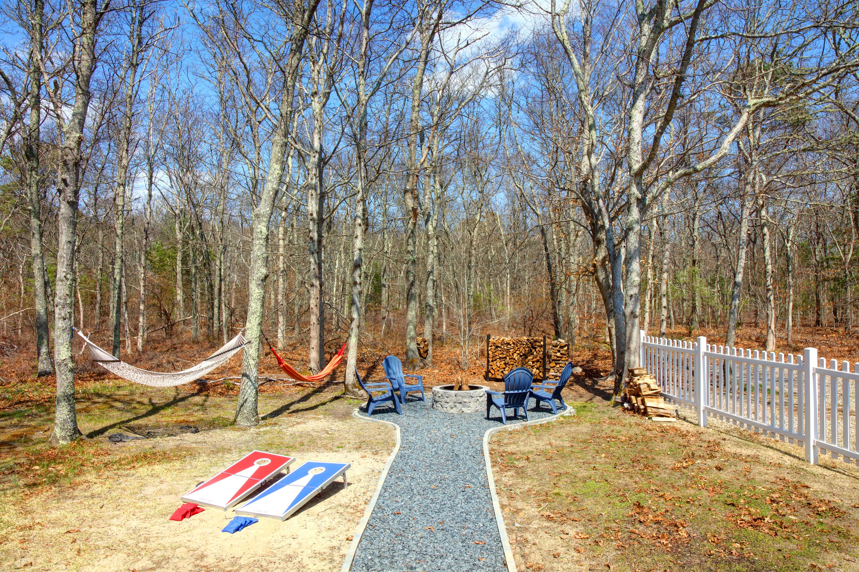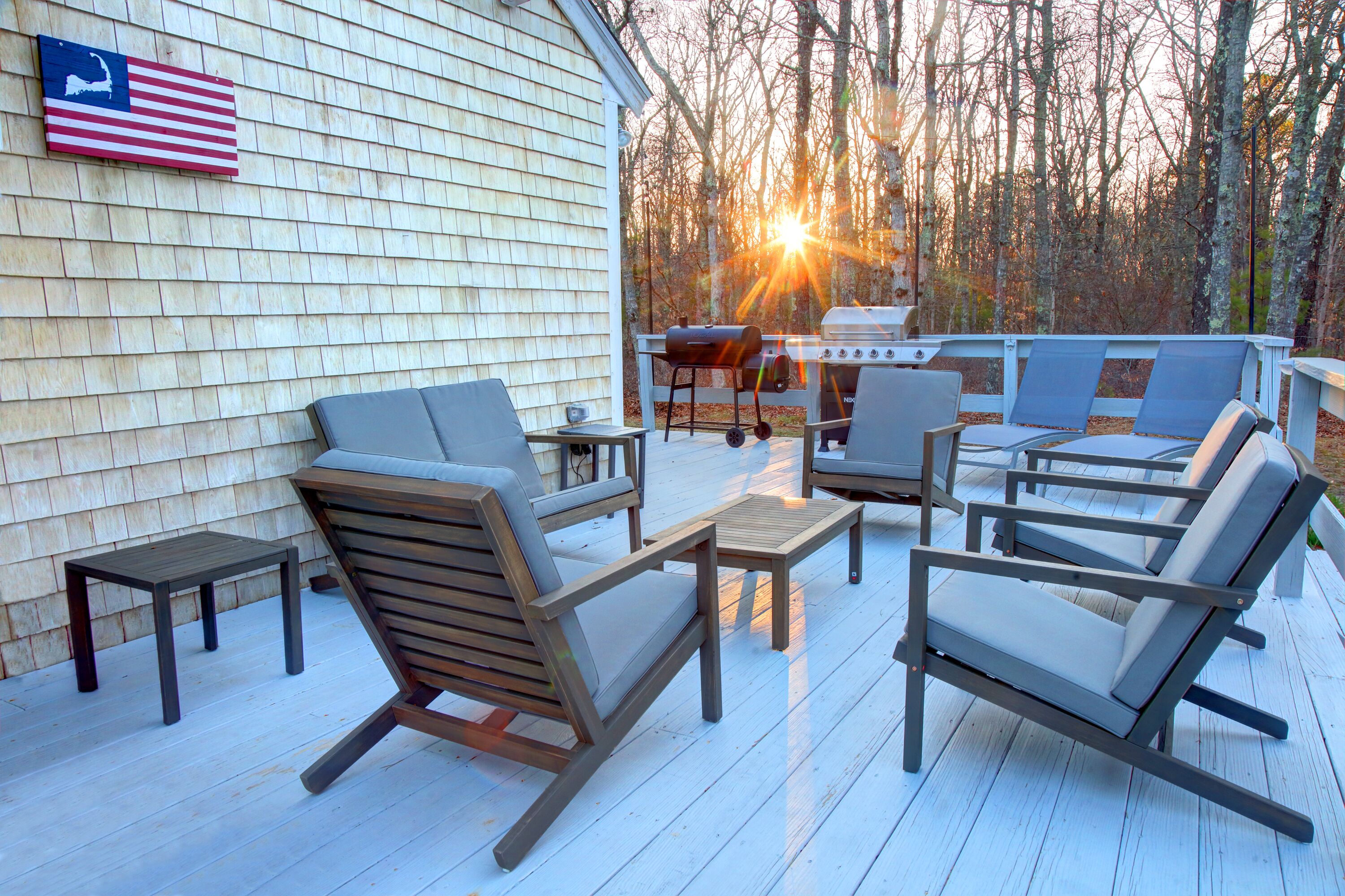 Cape House -Large private backyard with fire pit, hammocks, and walking trails directly from backyard-Large deck with plenty of seating-Charcoal and gas grill -Game room with air hockey, ping pong, darts, foosball, NBA Jam arcade, poker table-Fast WIFI-Fully equipped kitchen-Outdoor shower-Central air conditioning-3 large screen TVs including cable (sports and movies), blue ray players, XBox-Plenty of outdoor and indoor games-Beach chairs / towels / linens/ soap/shampoo/- Great central locationCute and cozy house at the end of a quiet cul-de-sac in Mashpee on Cape Cod. The home sits on a half acre of property bordering conservation land giving you plenty of privacy.Great central location to all Cape Cod attractions. Only minutes to some of the best ponds and hiking trails on Cape Cod. The award winning Mashpee Commons upscale shopping center with its top notch restaurants are only minutes away. Easy access to beaches on Cape Cod Bay (7 miles), Atlantic (10 miles), and Buzzards Bay (15 miles). Centrally located between Hyannis and Falmouth making it convenient to the Nantucket and Marthas Vineyard ferry terminals and entertainment.Saturday to Saturday rentals in summerPolicies- Quiet hours from 9pm to 9am. Please be respectful of neighbors and neighborhood- Must be at least 25 years old to book- Maximum occupancy of 6 guests- Fireplace is not permitted from May-October- Firepit should not be left burning unsupervised. Fires shall not be conducted on windy days- Do not flush anything other than toilet paper- Renter is liable for any damage or theft to propertyFor Checkout- Please leave property clean to help enable the cleaning crew as much as possible.- Clean grills with grill brush- Clean dishes and place trash in bins outside