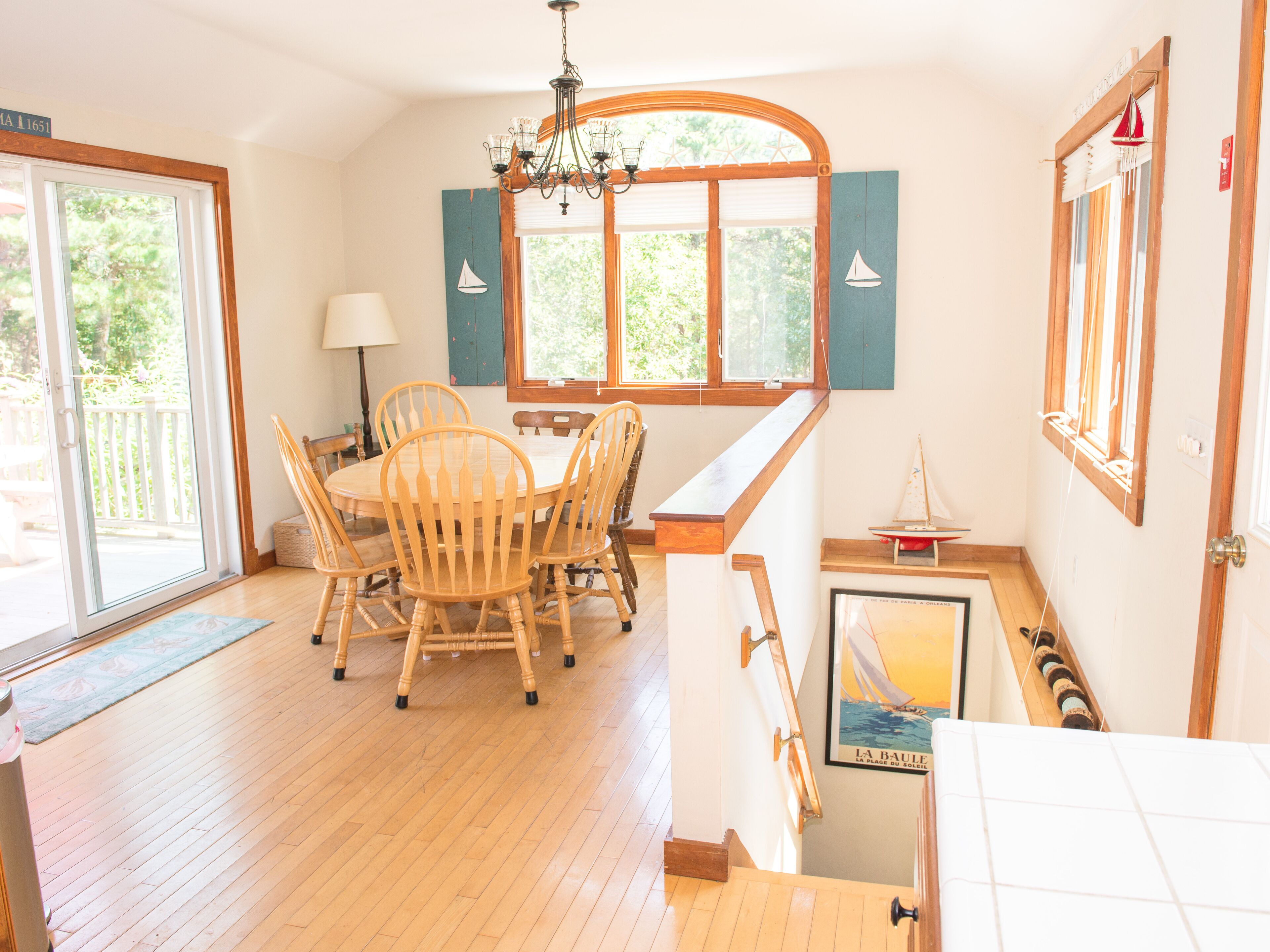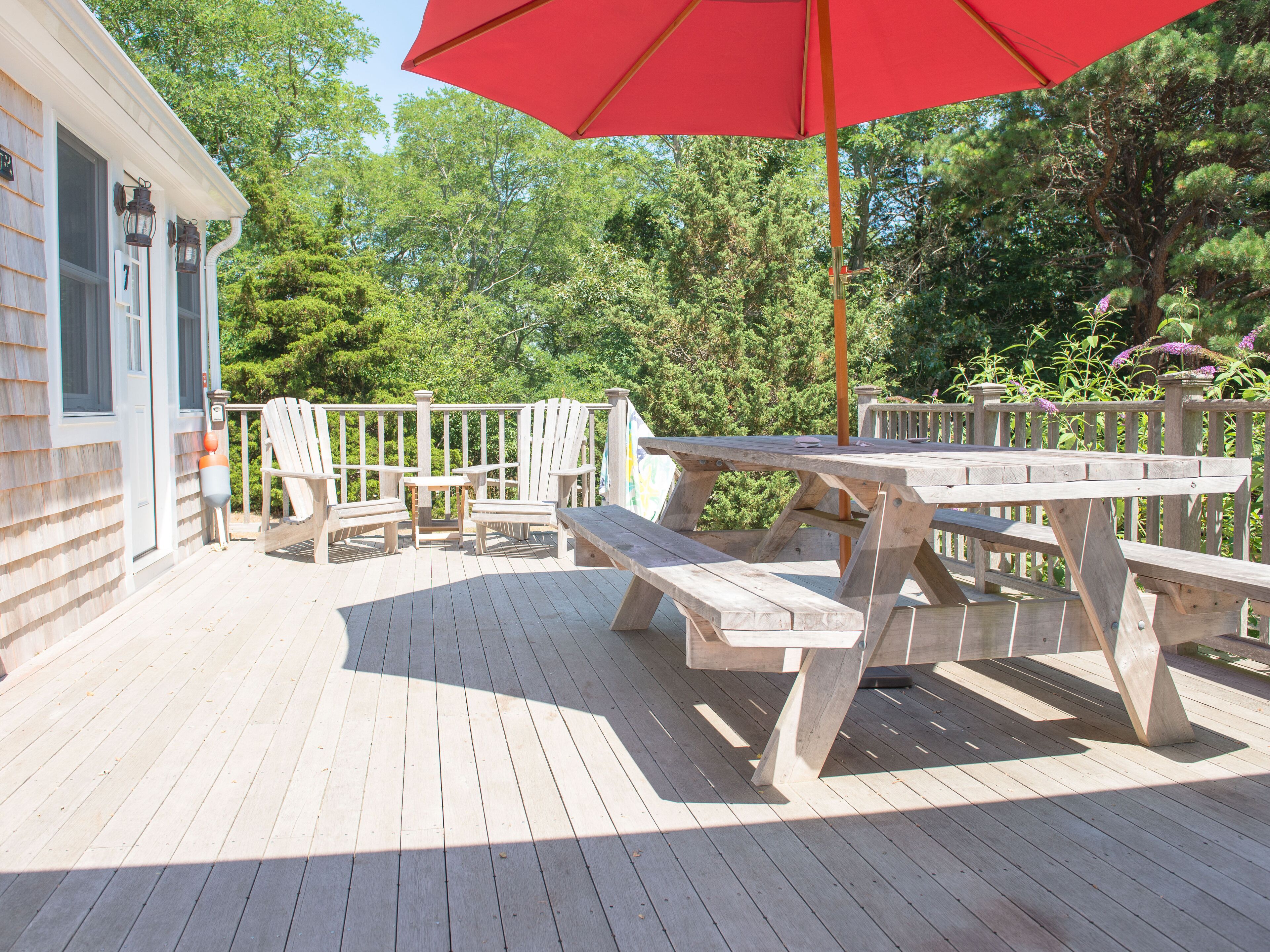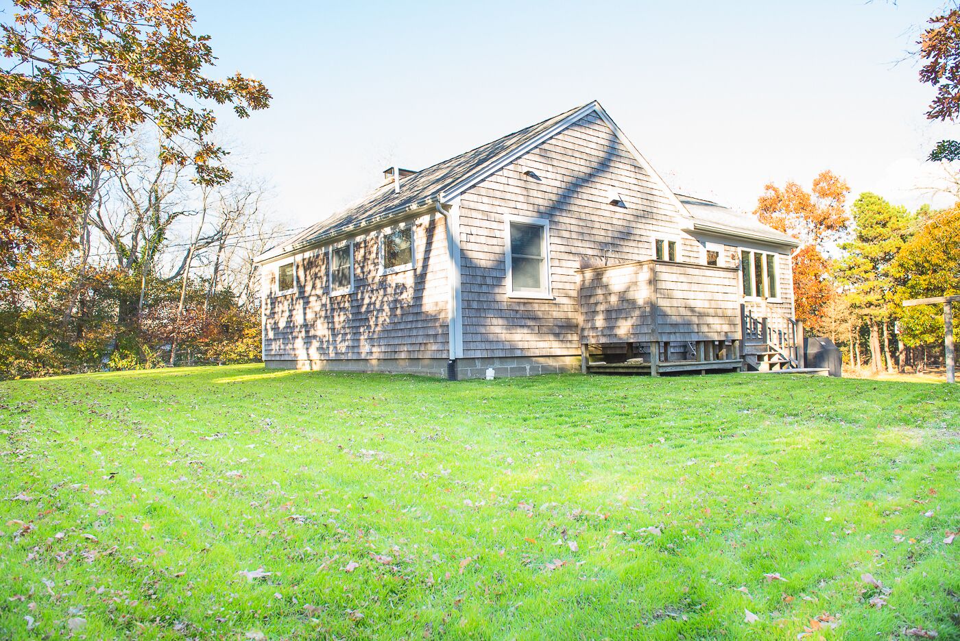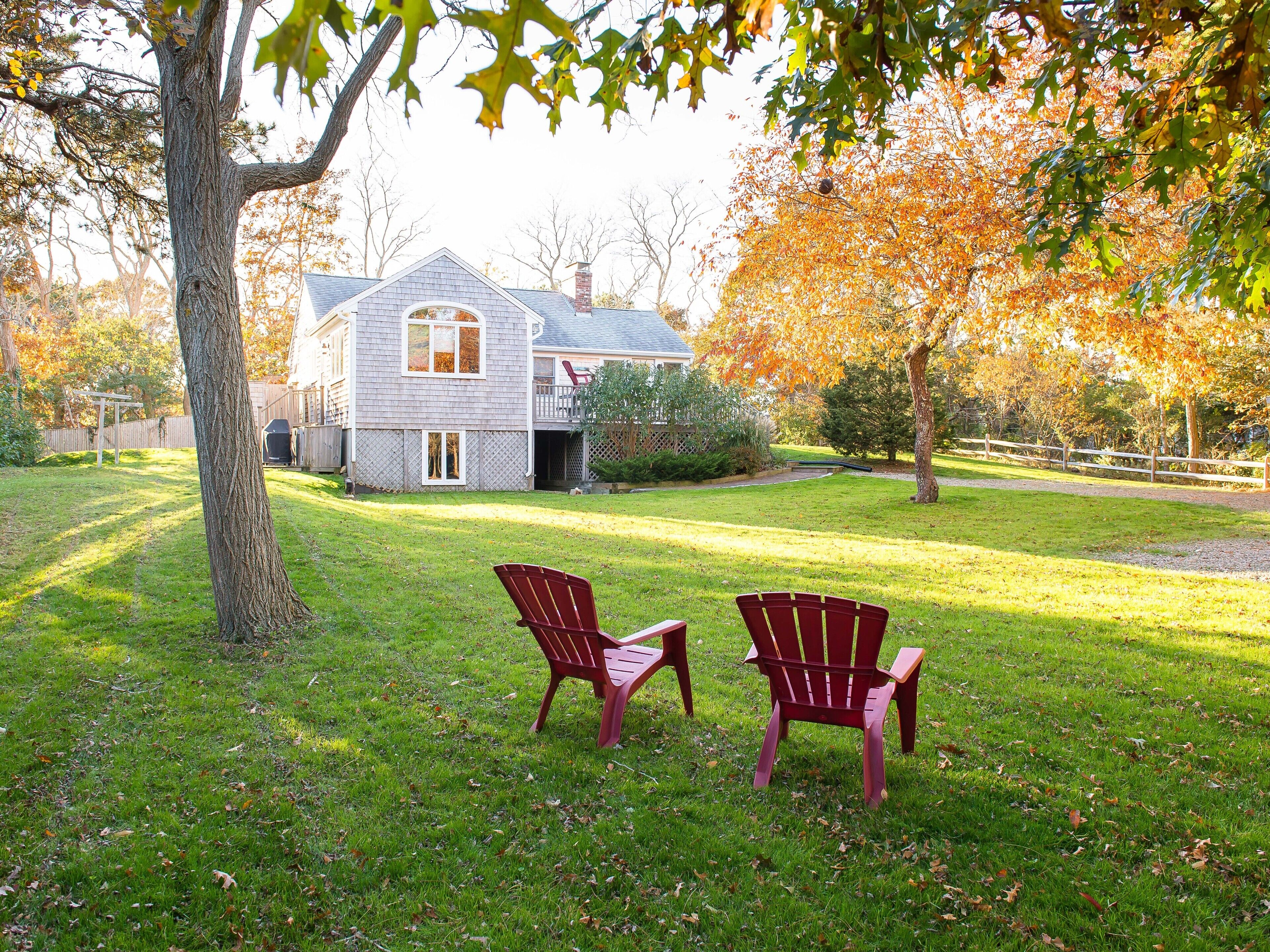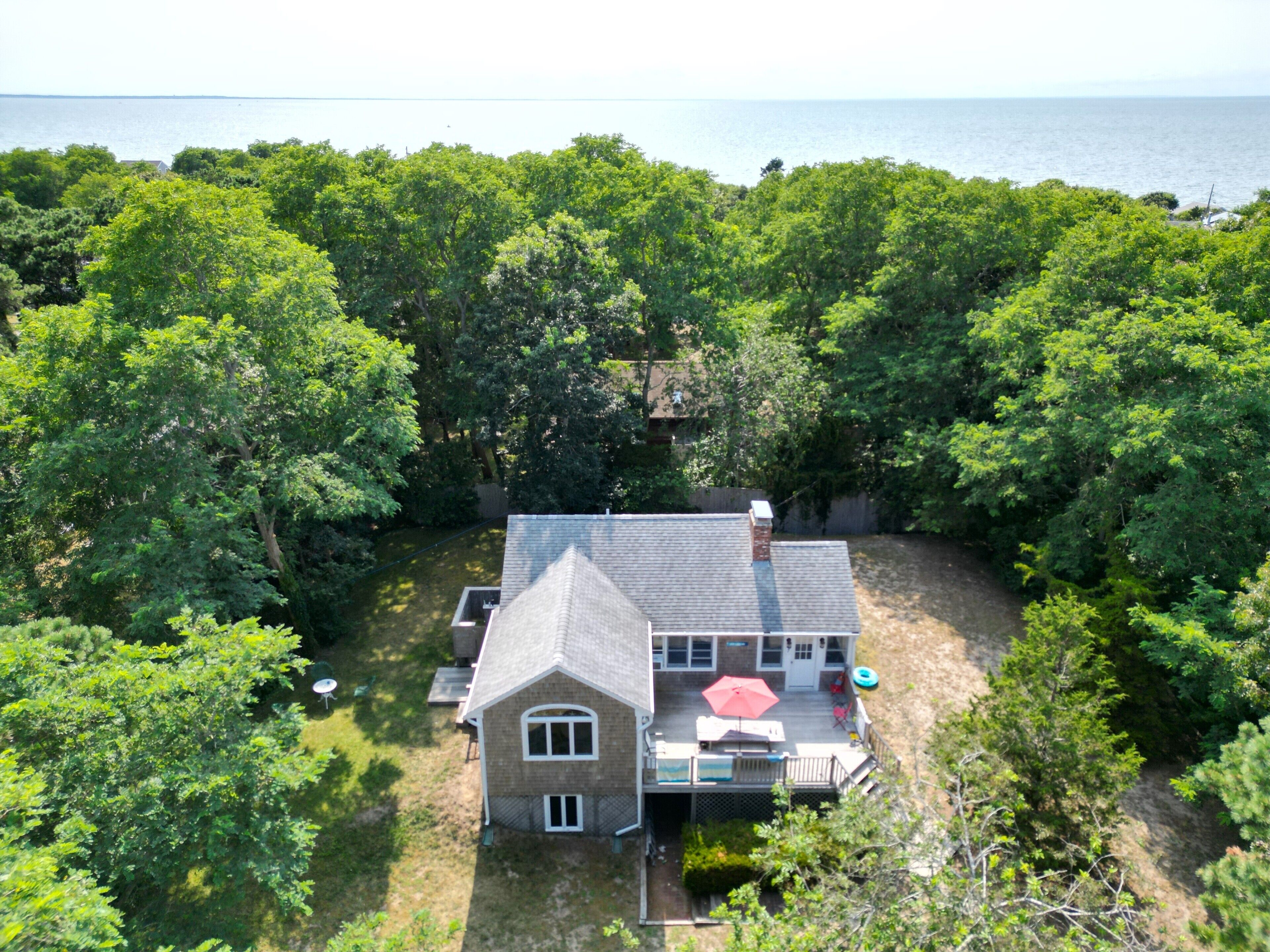 Cape Cottage with a Peek of the Bay - Just Steps To Beach Old Cape Cod and modern amenities come together in this adorable, immaculate and updated cottage with a peek of Cape Cod Bay in North Eastham. Just steps down a sandy path to the water this 3-bedroom, 2-bath cottage sits on one half-acre of private land, a short walk to the water. Features include: 1 queen bedroom, 2-twin bedroom, bunk room, sun room, fireplace, oversize tub, large eat-in kitchen, spacious outdoor shower, Wi-Fi, Cable TV, washer/dryer, dishwasher, picnic table. The large mahogany deck overlooks a yard big enough for whiffle ball, a barbeque and hide and seek! The perfect mix of sunshine and shade afford plenty of opportunity for relaxing at home after a day of swimming and shell-seeking at the beach. Walk barefoot with your beverage for stunning sunsets over the Bay each night. Spectacular ocean beaches are a short drive away, and Provincetown, Chatham, Orleans and Brewster are all within striking distance for golf, restaurants, spas, Cape Cod Baseball League games, shopping, antiquing, art galleries and cultural events. Take the house kayak for a paddle on the bay or on the ocean side at Town Cove.Ready to make your Cape Cod memories? NO PETS, NO SMOKING!Includes standard cleaning feeLinens not includedDriveway entrance on Townsend Road.
