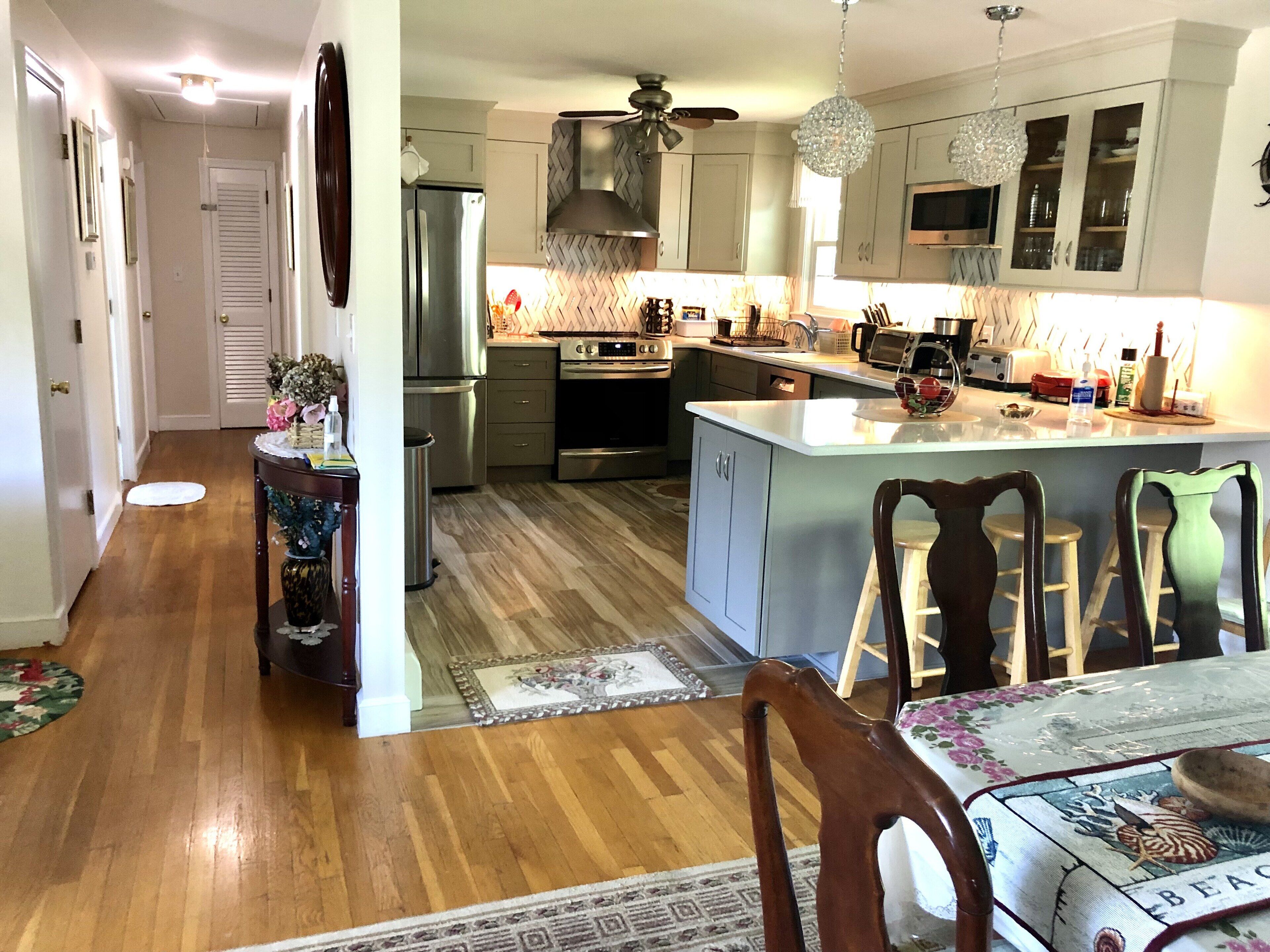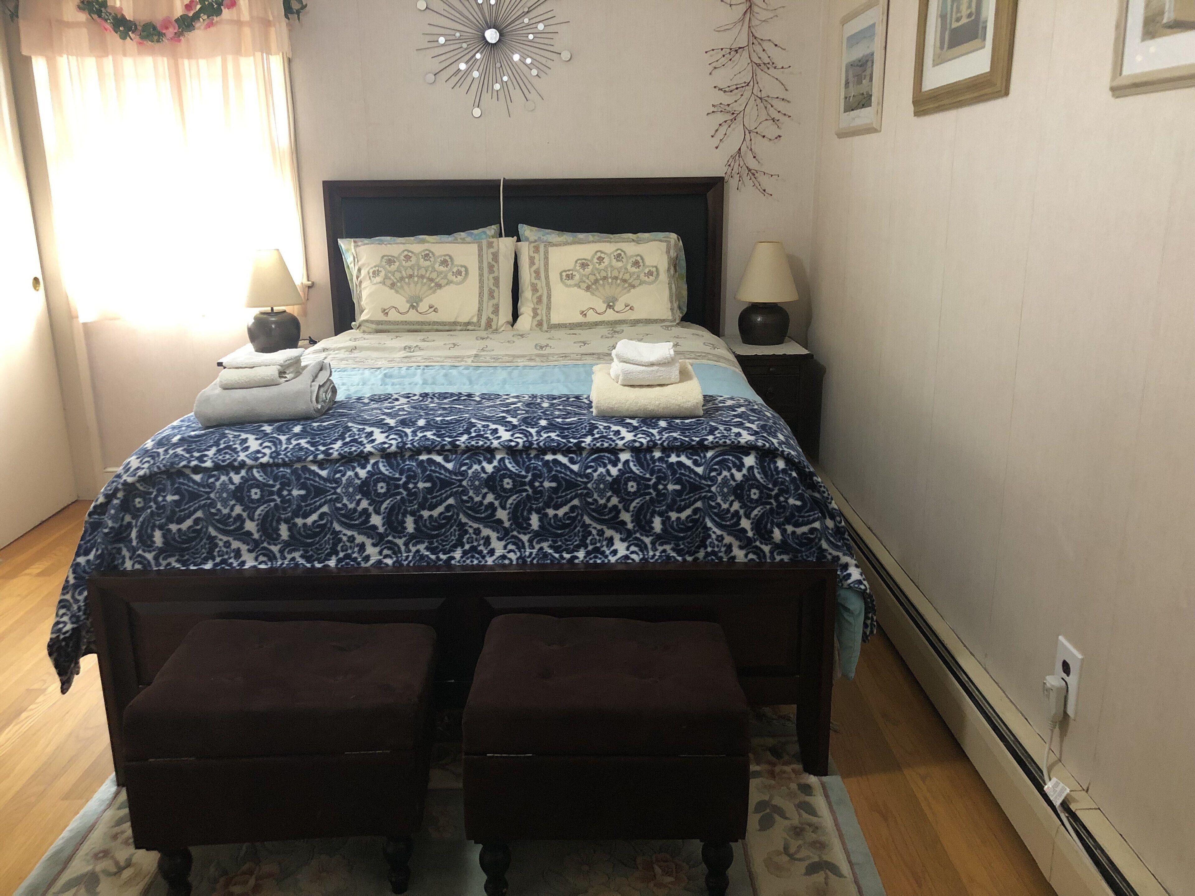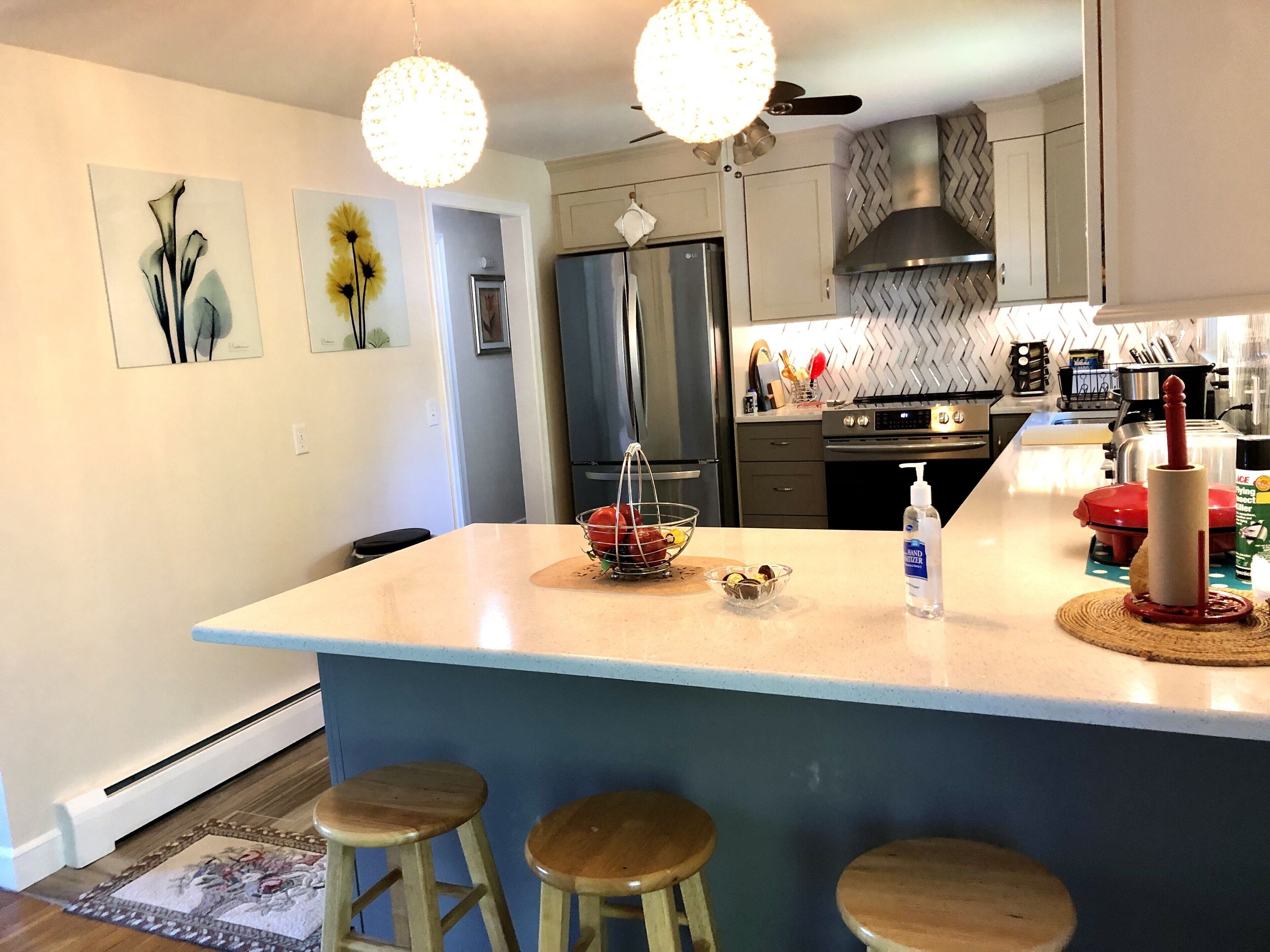 Raised Split Ranch Single House in South Dennis. Raised Split Ranch in South Dennis. Two master bedrooms with two brand new queen-size beds. There are a children or guest bedroom with two twin-size beds and another extra bedroom with wood fireplace in it and two brand new futons full-size. Two full bathrooms. Very sunny living room with picture window attached by a dining room and a big brand new kitchen (eat in kitchen). Beside the dining room is attached a nice leveled back deck, covered by white-blue striped canvas, including outdoor glass table, 8 plastic chairs, plastic bed and gas grill with tank. There is a garage, outdoor shower covered with curtain, shed and very beautiful front and back yards. There is one refrigerator, electric stove with oven, dishwasher, Foreman grill, coffeemaker + filters, toaster, microwave, lobster pot and lots of pots and pans.The house is located close to the Mayfair Boat, walking distance to Follins Pond of the Bass River, where you can launch for kayaking, canoe etc.Main beaches of Dennis like; Mayflower, Corporation, Cold storage and West Dennis beaches are nit in walking distance but 6-8 minutes drive from the house. Nearby is the Dennis Rail Trail for walking and biking in the beautiful areas of Dennis, Brewster, Harwich, and Chatham. It's close to the Highland Golf Courses, Cape Cod Playhouse, restaurants, playgrounds, Scargo Lake, tennis court, soccer, basketball, baseball, football fields etc.Half of the rental charges is going to be paid with the signed rental agreement, which is refundable only 30% of it in case of any cancellation before a month ago from the date of occupancy, otherwise you lose it if you do not replace it with other tenants. The other half of rental charges and security deposit should be paid two weeks in advance before the occupancyKeywords: Raised Ranch 2 Story Split Single House(good for sharing 2 families and can be rented out as well as during week days, from Monday to Friday too, if you desire so, or can be owner's right occupy with discounts)