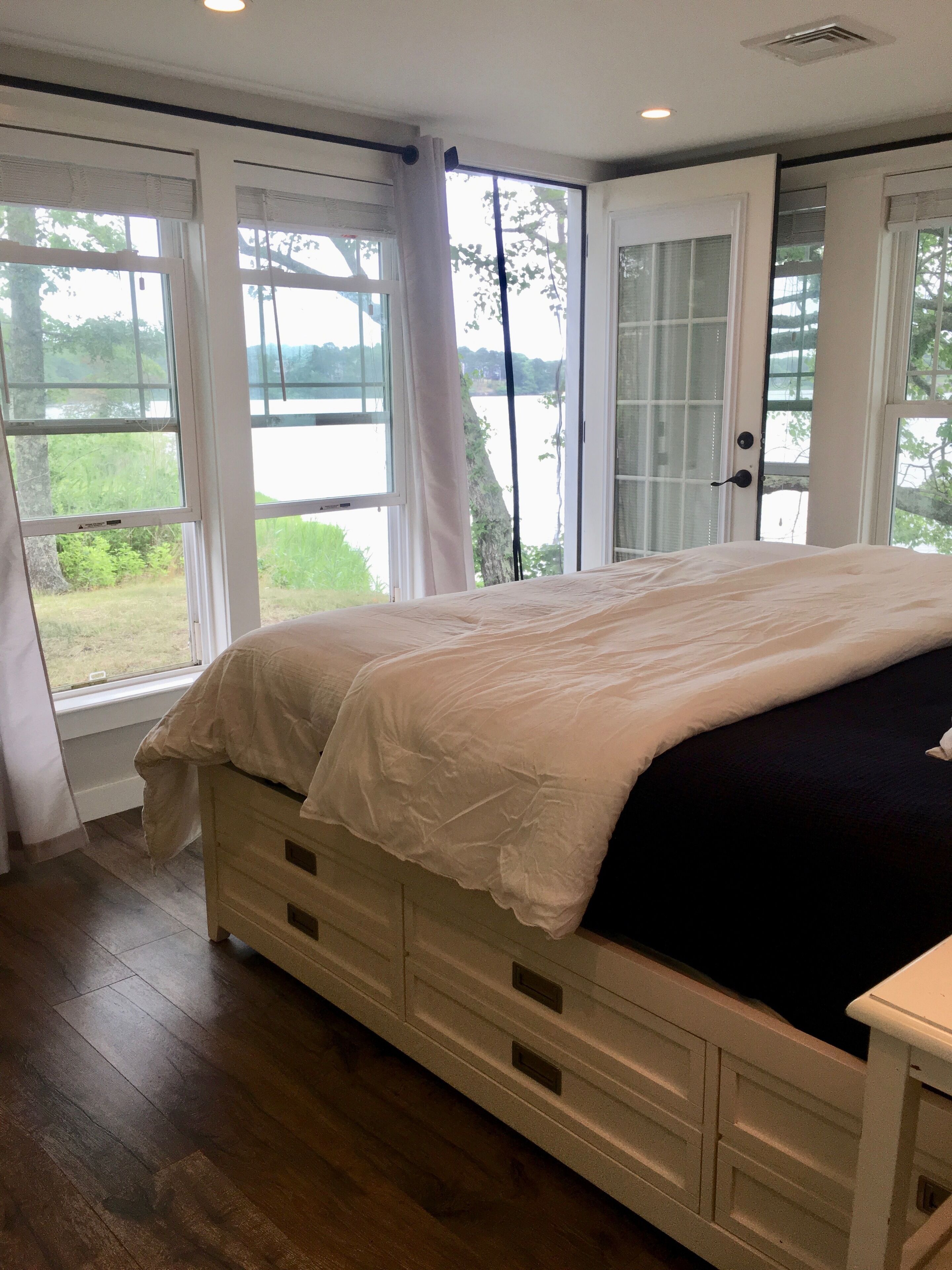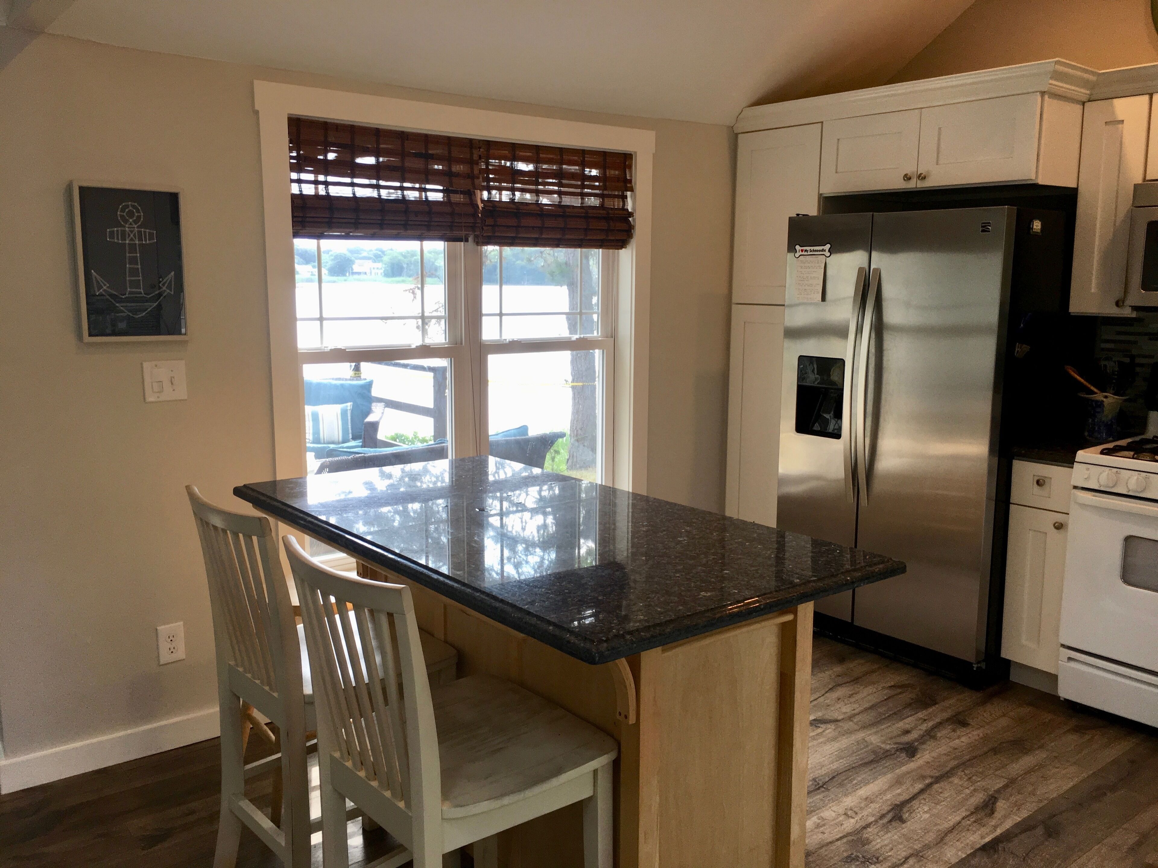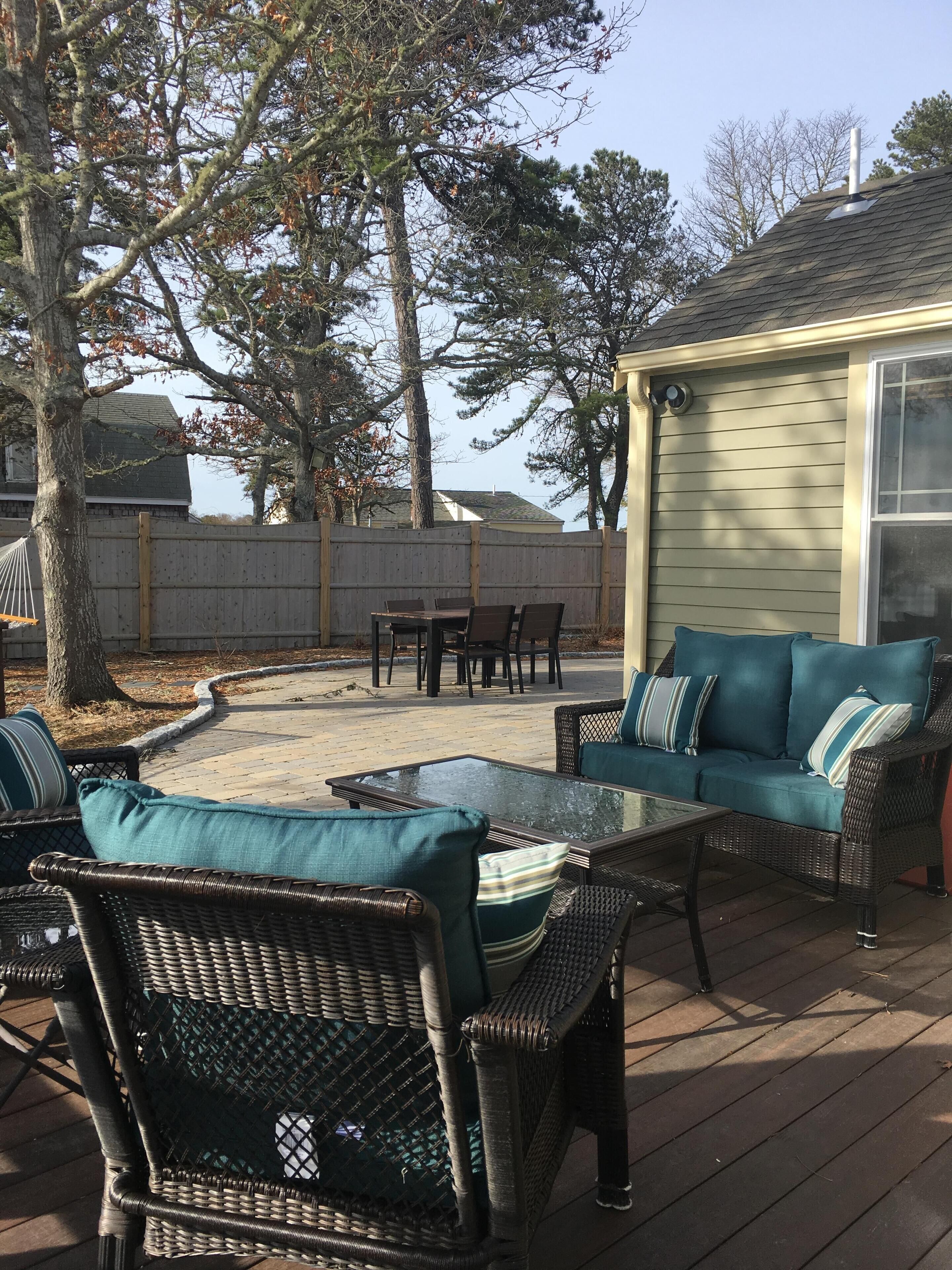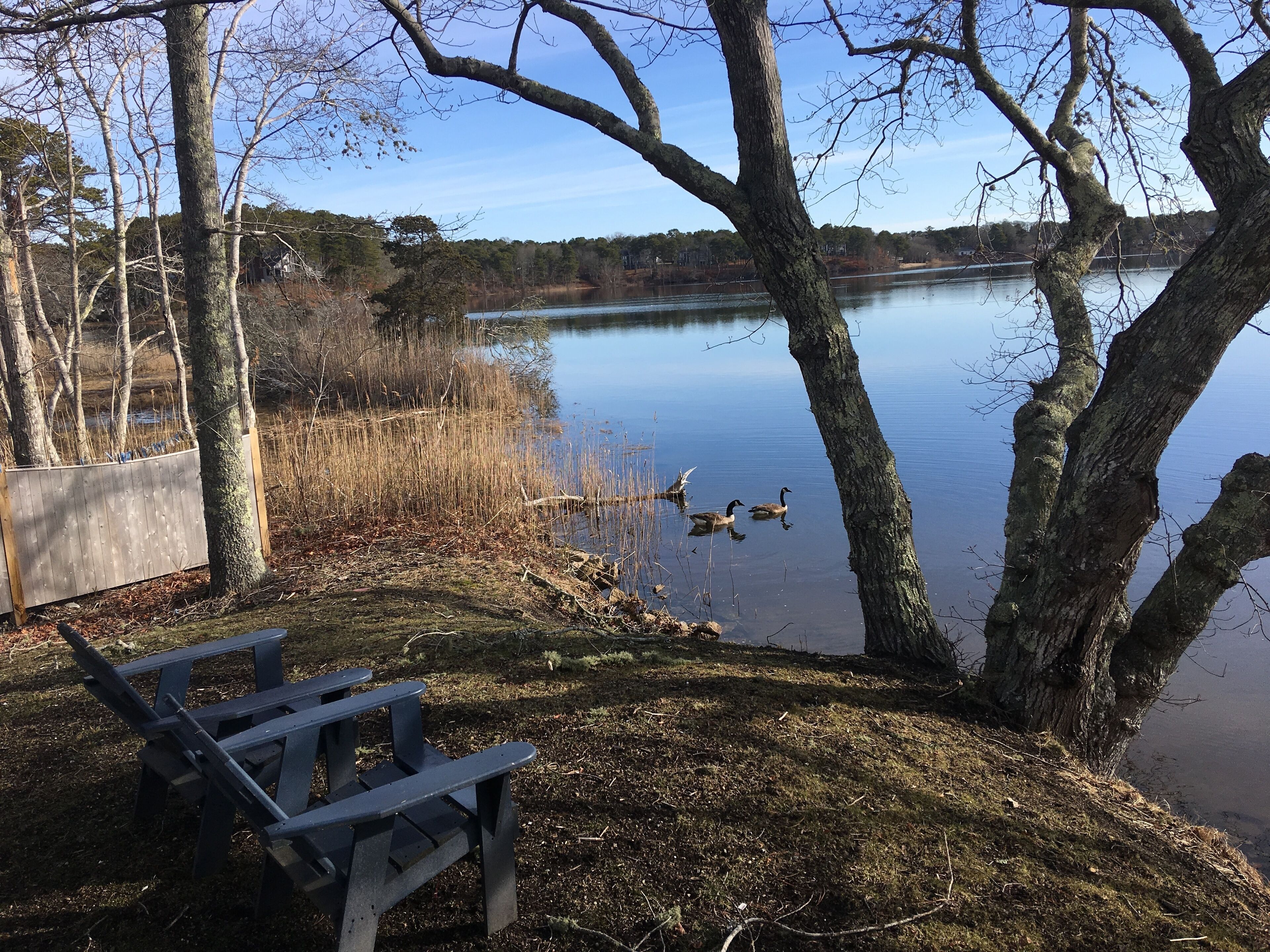 Swan Pond Cottage, Waterfront Central A/C, Open Floor Plan Bring your kayaks and paddle boards to enjoy this renovated open floor plan, 2 bedroom cottage on Swan Pond. Paddle 2 miles down Swan Pond River to Nantucket Sound or take it easy and explore Great Island a short distance away! Great location! All of the conveniences when you exit the highway, then escape to the sound of the wind whispering through the trees. Osprey and Swans call this place home! A short distance to the bike trail and hiking trails. Double french doors open to a spacious deck with beautiful views of Swan Pond. Table with 4 chairs on a paved patio for a wonderful outdoor dining experience. One king bed, 2 twin beds, 3 seat sofa, full futon. Fully equipped kitchen with Keurig coffee maker! Internet and extended cable with flat screen TV. New refrigerator and stackable washer and dryer. Gas grill with propane, beach chairs, umbrella and cooler. Plenty of parking!