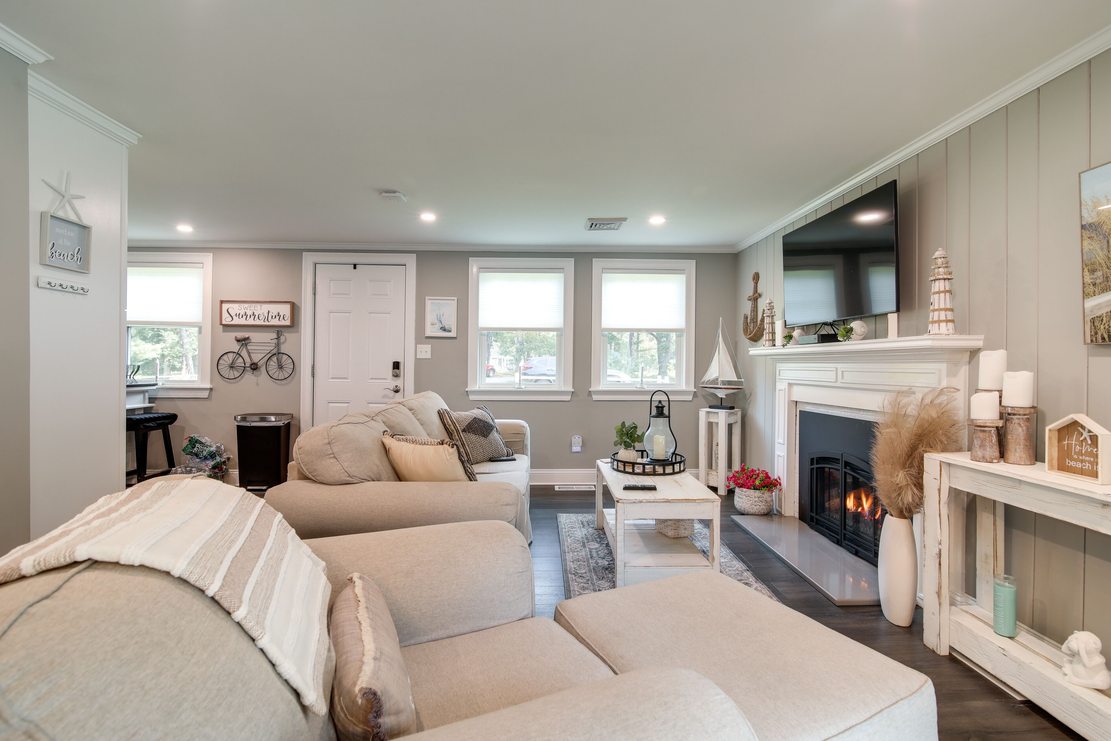 Lovely Dennis Cottage - Walk to Beach! Experience the picturesque town of South Dennis at this charming 3-bedroom, 1-bath cottage! Located within walking distance of the beach and near the Cape Cod Rail Trail, this vacation rental offers the perfect blend of relaxation and adventure. Unwind on the deck after a day of exploring the picturesque seashores, then cozy up by the fireplace with a good bo...