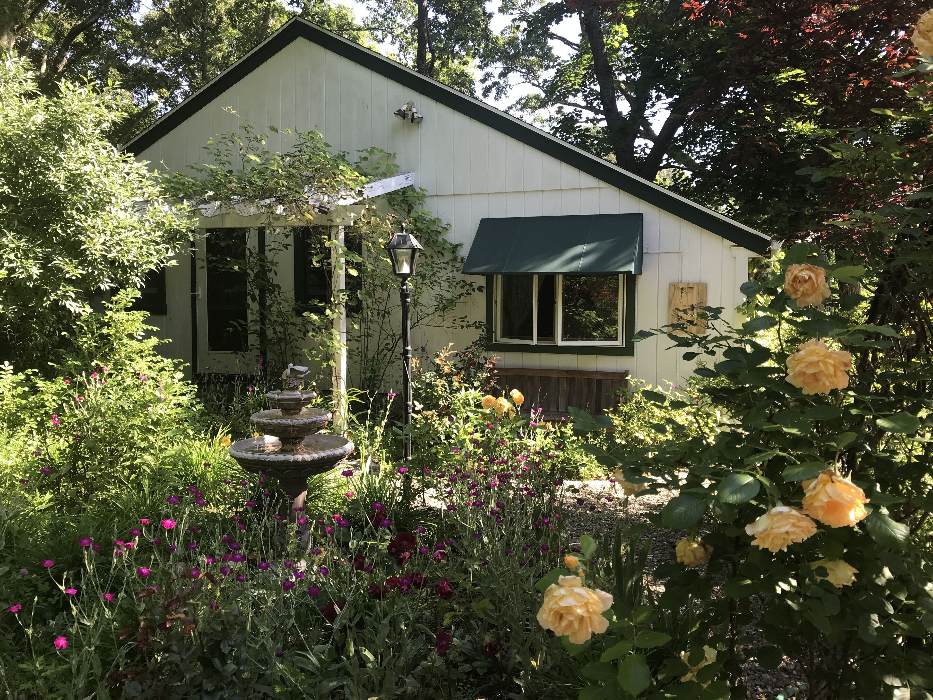 Oak bluffs cottage Fills up quickly, make reservation early! Fully equipped cottage behind the main house,Private, available all year round! Perfect romantic get away! Many guests have gotten engaged here. BackPatio with wooded landscape. Quiet.Fountain and rose garden in front.LR, DR, Kitchen,master bedroom, 2 twinBeds room, bathroom w/shower. In at 3pm, unless otherwise arranged, out by 11am.B...