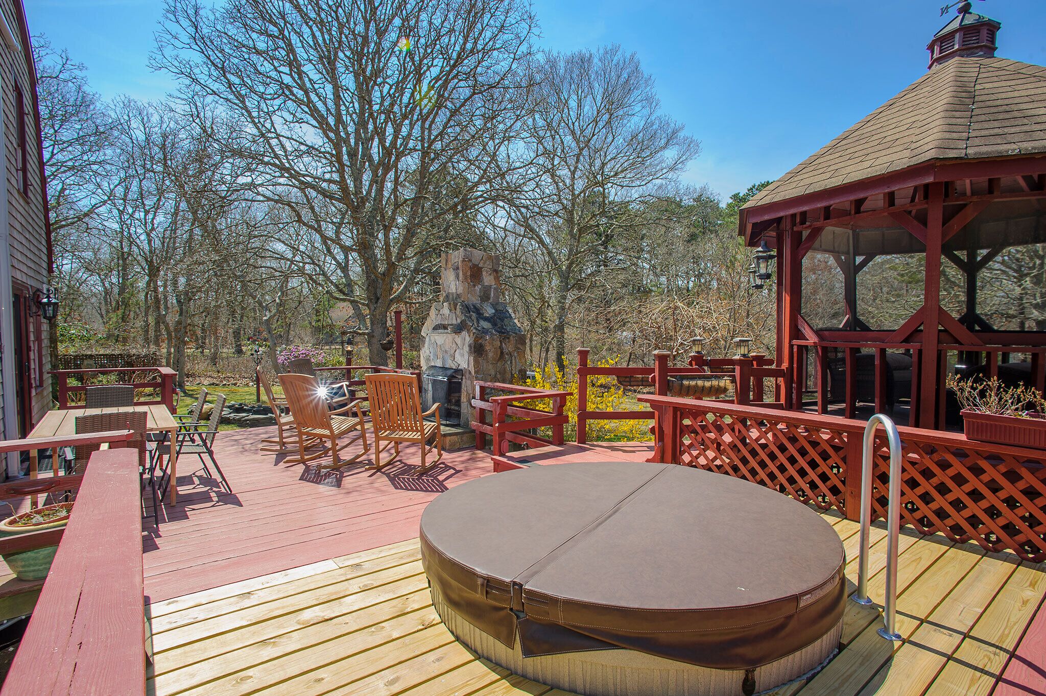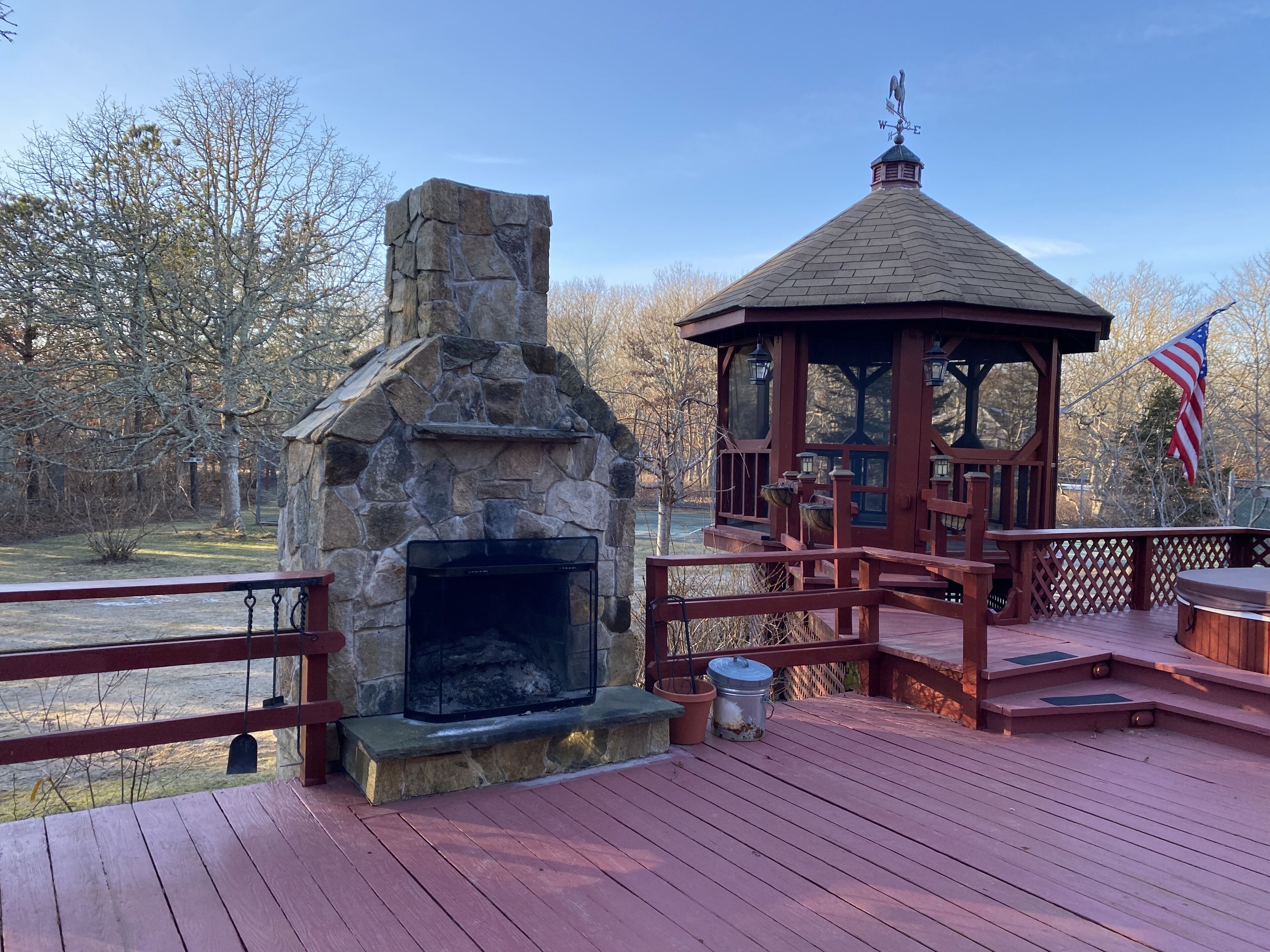 “Oakhaven” Private Island Oasis, w/ HOT TUB, Lambert’s Cove Beach Access & More! Three lovely bedrooms (1 queen, 2 full, and 1 twin beds), 2 baths and outdoor shower. One Queen sleeper in the living room. Sleeps 7 MAX. Inviting patio, HOT TUB (avail. 3rd week of May - mid of Oct), & screened gazebo w/ fan/light. Enjoy al fresco dining on the deck near the outdoor fireplace. Linen, bath towels, and beach gear are provided.*** We offer weekday check-in and departures to accommodate Steamship Authority ferry ticket availability for those traveling with cars.Amenities include FREE WiFi, smart TV, fully equipped kitchen, microwave, dishwasher, coffee maker, outdoor shower, BBQ grill and washer/dryer, private patio for al fresco dining, outdoor wood burning fireplace, screened gazebo with light/fan, hammock, beach chairs, beach towels and umbrella. Bike rentals are available for delivery to the property. All adults must be 25 and over. No parties.Please use our energy efficient mini-split A/C / heat pump system for heating and cooling the house. Look for the WHITE SAMSUNG REMOTE CONTROL in each room to operate the units which is very user friendly. Use of the electric baseboard heaters may result in additional fees.Guest AccessGuests have full use of the entire house, patio, hot tub, screened gazebo, private driveway and parking area, outdoor shower, BBQ grill and deck. The garage, guest house and outbuildings are private.LocationLess than 10 minutes from Vineyard Haven Ferry. Away from the crowds and traffic, Oakhaven is a short drive to Oak Bluffs and Edgartown while also providing convenient access to Chilmark and Aquinnah. Approximately 3 miles to Lambert’s Cove Beach, one of the most beautiful white sand beaches on the island (walk-on beach stickers are available from Parks and Recreation for a small fee); a short walk to State Forest hiking and bike trails, minutes to West Tisbury Center and Martha’s Vineyard airport. Our professional cleaning protocol includes a 10-point sanitation checklist of surfaces such as knobs/handles, switches, railing, counters, sinks, tub, appliances, etc. Imagine a quiet, peaceful night’s sleep and waking to the sight of white-tailed deer prancing outside your window. You are not dreaming - you’re at Oakhaven! Enjoy local beaches, listening to crashing waves and breathing fresh sea air. Drive on back roads and stop for turkeys, not traffic lights. Go back in time and walk past Captain's houses, wander through the historic Campgrounds and marvel at the colorful and charming gingerbread cottages. Visit the five light houses, the Arboretum and Lake Tashmoo. Make lasting memories taking in breathtaking sunsets. Following a day at the beach (with sandy feet) and sightseeing, put your your feet up and relax in front of the warm fireplace. Minutes to no market and dining options. Peaceful, quiet and private yet close to everything on Martha's Vineyard. You will fall in love. This property has a security doorbell monitoring the front door.