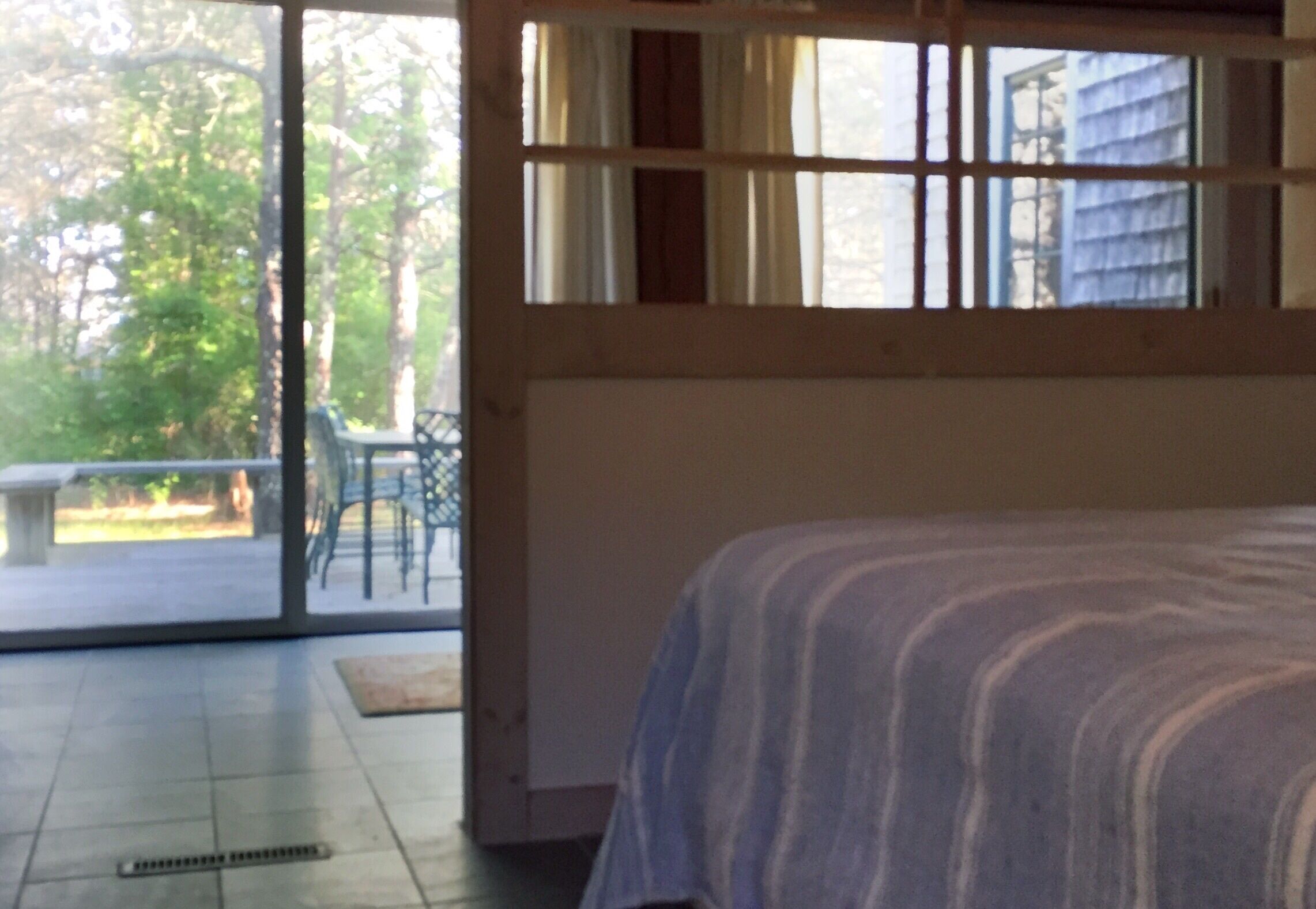 Serene Post & Beam Construction/Pet Friendly/Near Bike Path & Sherriff's Meadow Our cozy, post and beam Vineyard home was built in 1984 by a renowned architect who designed several homes in Nat's Farm. The peaceful, wooded setting is a refreshing option from the busy townships. There is a large first-floor Master Suite, plus two bedrooms upstairs (1 queen, 1 w/twin bunks plus a trundle). The downstairs bathroom has a walk-in shower and there is a spacious private outdoor shower easily accessible from the master bedroom. The upstairs bathroom contains a tub/shower. All bedrooms are private from the main living space. The fully stocked kitchen/living area is open with vaulted ceilings, large fireplace and comfortable furniture. Outdoor amenities include a large deck with gas grill for outdoor dining, outdoor shower, and lots of lawn for games or relaxation. The property is adjacent to the state forest and bike paths that connects you to much of the island. It is very convenient to many of the Vineyard's beautiful beaches and towns for shopping, galleries, and dining. Several wonderful hiking trails, through much of the island's conservation land, are within four miles of our home.FERRY PASSES: If you book prior to the start of the Steamship Authority’s Headstart reservation window (generally beginning of January), you will receive the form to reserve tickets prior to ticket release to the general public.
