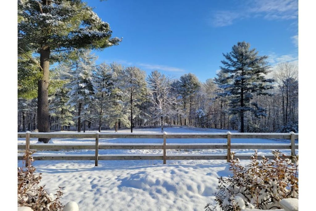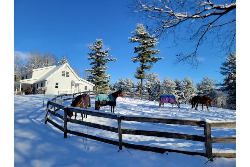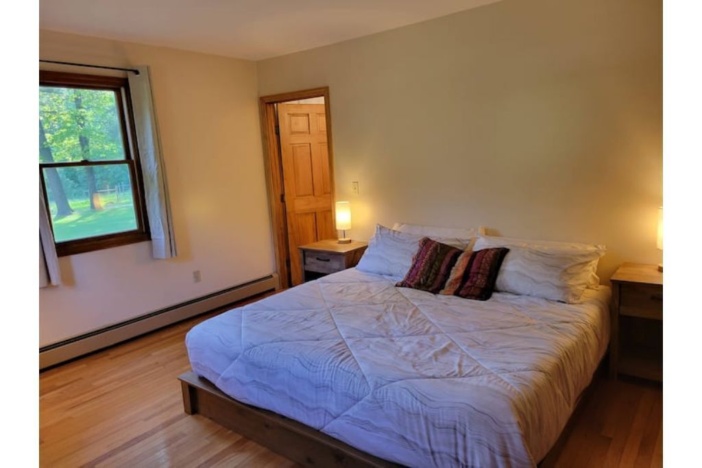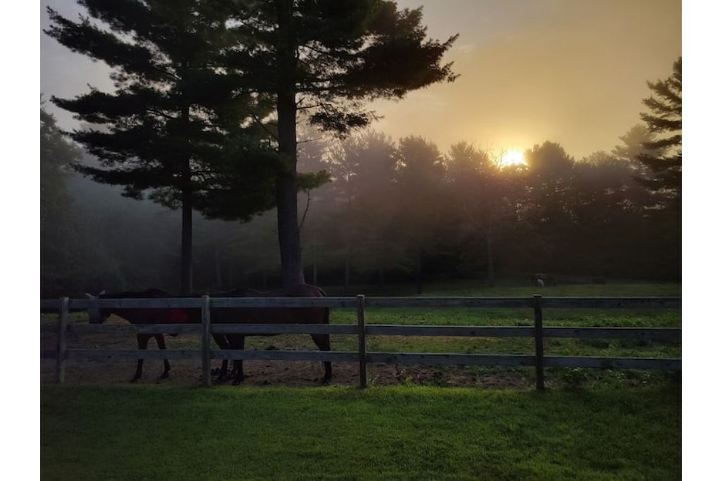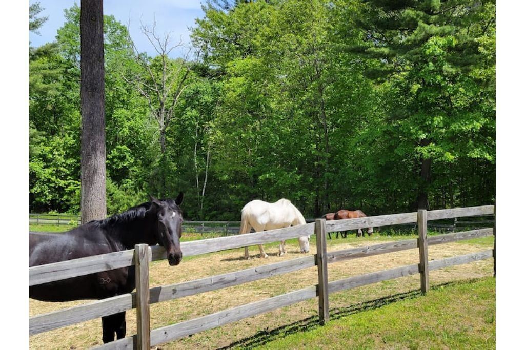 Serene 1-bedroom suite on 65 acre horse property Enjoy nature while staying in a quiet 1 bedroom attached suite. It includes a full kitchen with one bathroom, 1 king bed plus a queen futon and a dedicated workspace that is great for remote workers. The unit is set on a 65 acre horse property with it's own trail system perfect for easy nature strolls or trail rides. We have up to 20 horses on the property. You might even notice a few outside your front window!It's set back in the woods about a third of a mile, however it is a convenient location close to Amherst, Hampshire, UMass, Smith and Mt. Holyoke.Guest accessThere is a lovely gazebo and front lawn area with a bistro set and Adirondack chairs to relax in while taking in the sunrise (if you choose) while overlooking the horse pasture in the front yard.We have a 20 stall horse barn that you're welcome to give yourself a self-guided tour of. Be sure to say hello to my wife if you see her in the barn! She also offers optional horsemanship lessons if you are interested.Additionally there is a trail system on our property that connects with adjacent trails perfect for exploring.Other things to noteWe offer horsemanship, yoga, meditation and life coaching on the property if you are interested.