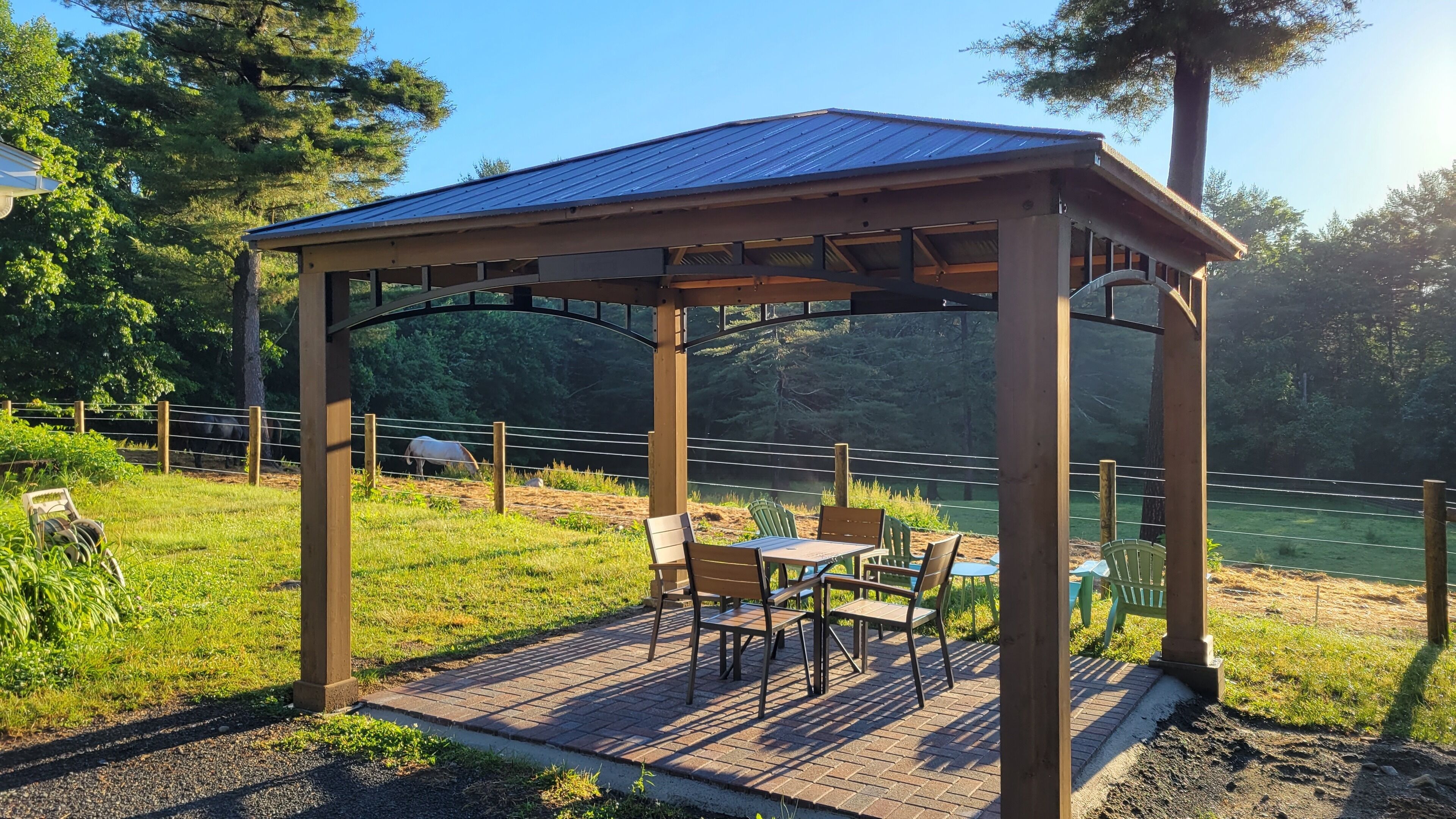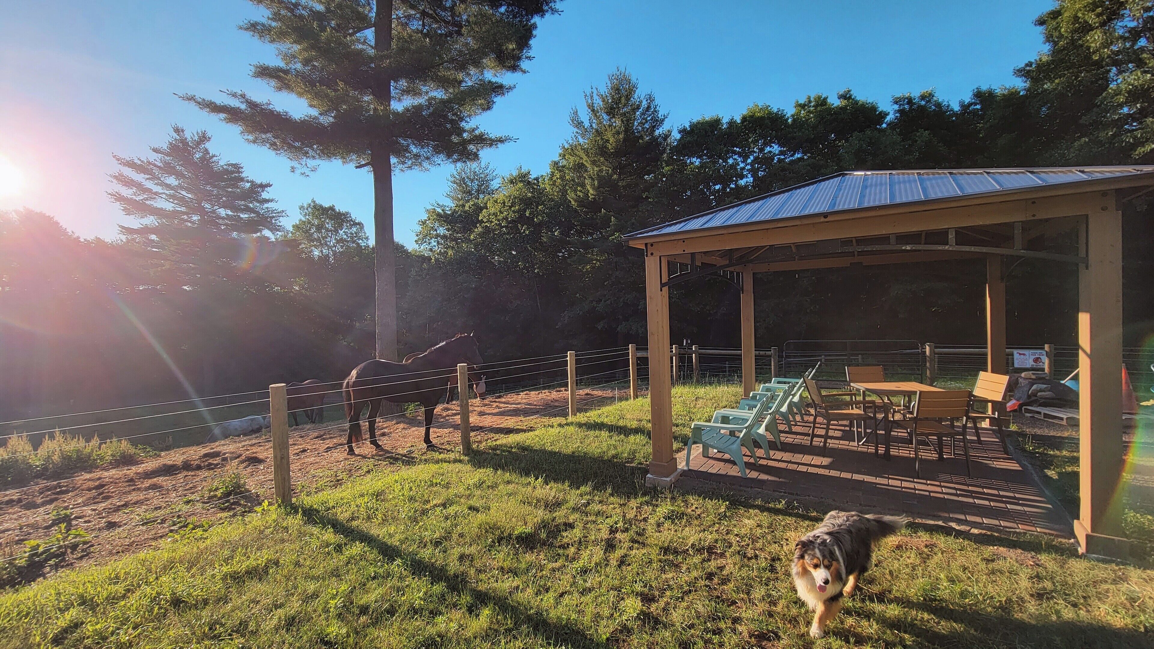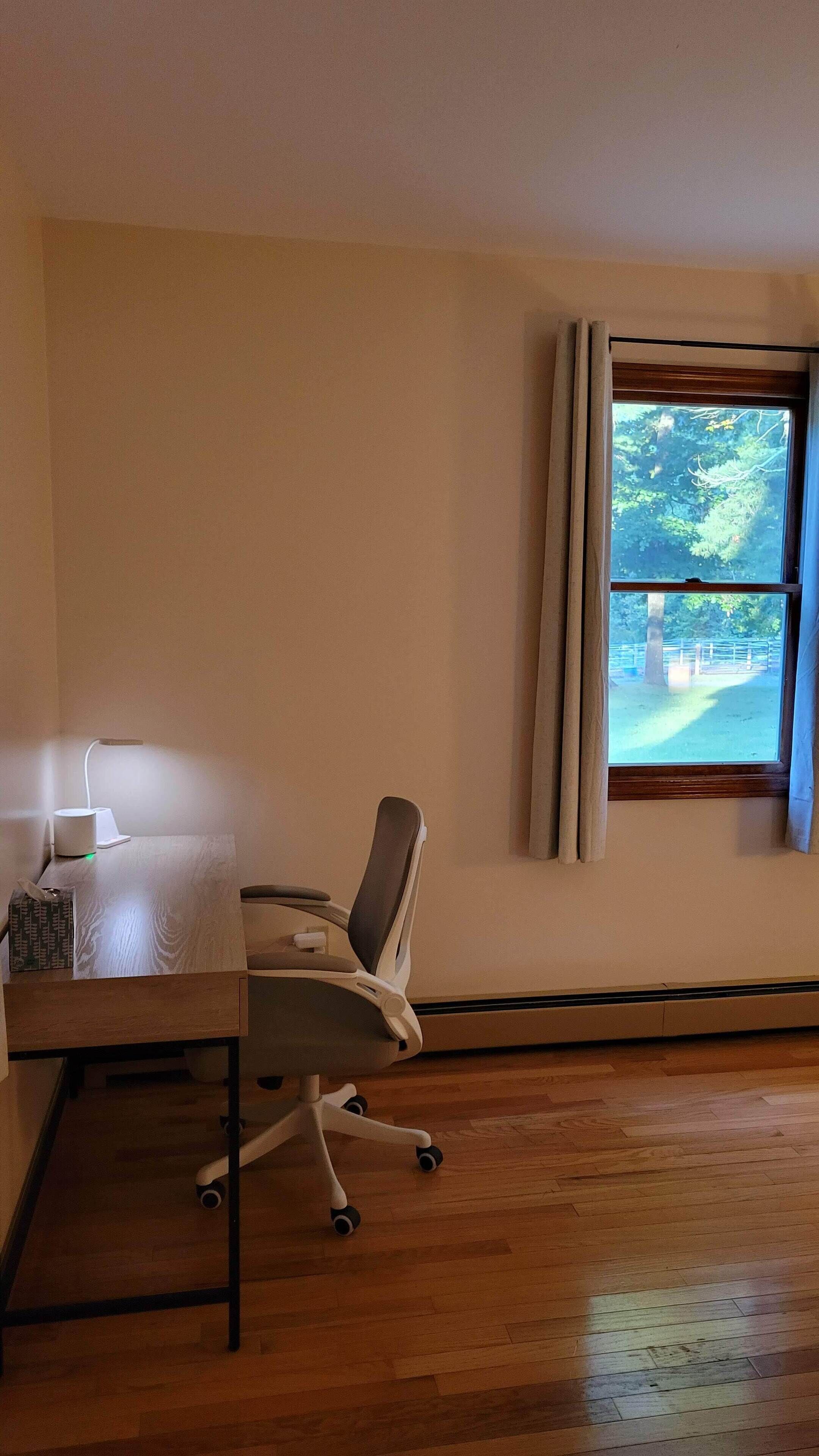 Serene 1-bedroom suite on 65 acre horse property Enjoy nature while staying in a quiet 1 bedroom attached suite. It includes a full kitchen with one bathroom, 1 king bed plus a queen futon and a dedicated workspace that is great for remote workers. The unit is set on a 65 acre horse property with it's own trail system perfect for easy nature strolls or trail rides. We have up to 20 horses on the property. You might even notice a few outside your front window!It's set back in the woods about a third of a mile, however it is a convenient location close to Amherst, Hampshire, UMass, Smith and Mt. Holyoke.Guest accessThere is a lovely gazebo and front lawn area with a bistro set and Adirondack chairs to relax in while taking in the sunrise (if you choose) while overlooking the horse pasture in the front yard.We have a 20 stall horse barn that you're welcome to give yourself a self-guided tour of. Be sure to say hello to my wife if you see her in the barn! She also offers optional horsemanship lessons if you are interested.Additionally there is a trail system on our property that connects with adjacent trails perfect for exploring.Other things to noteWe offer horsemanship, yoga, meditation and life coaching on the property if you are interested.