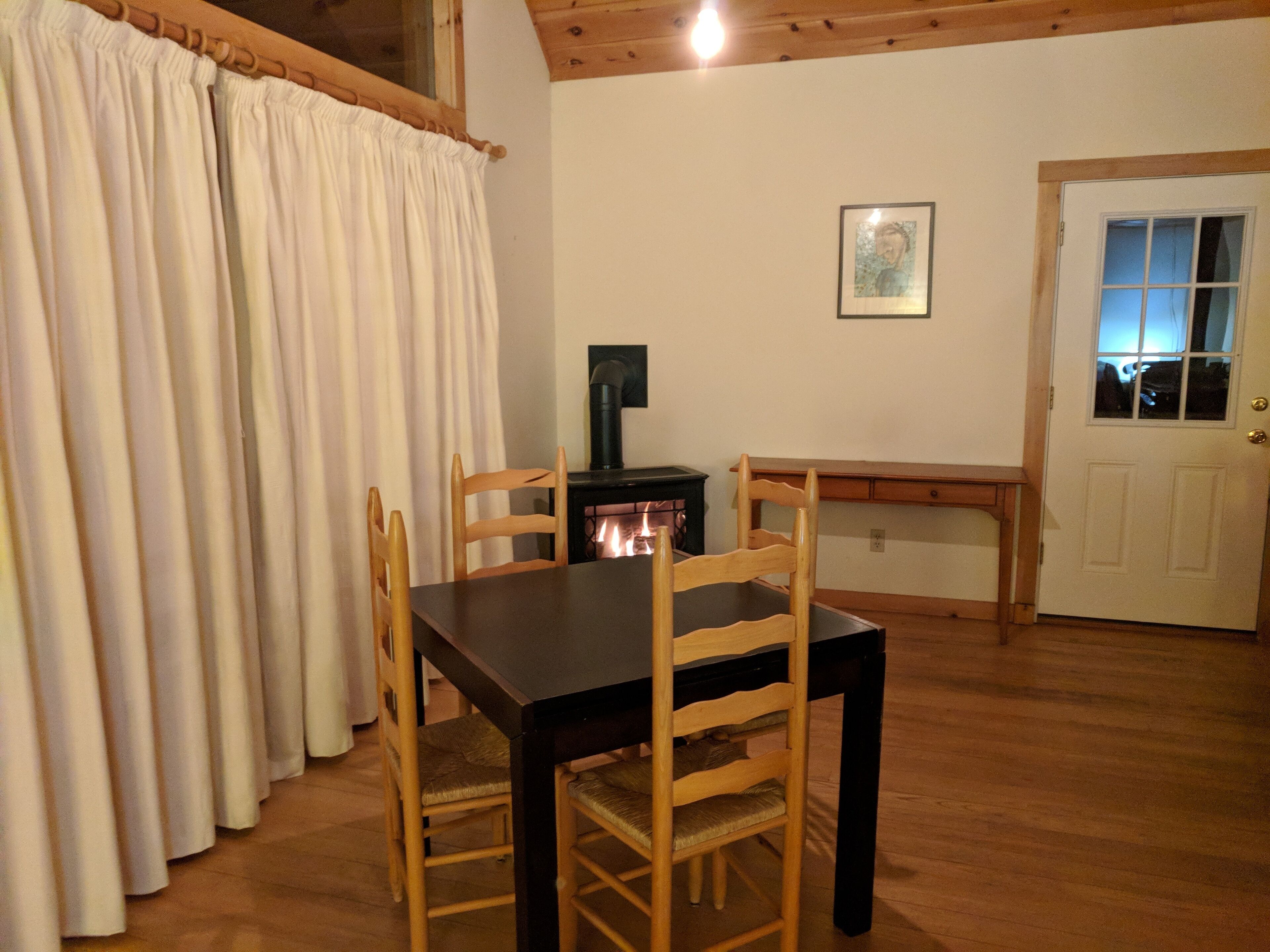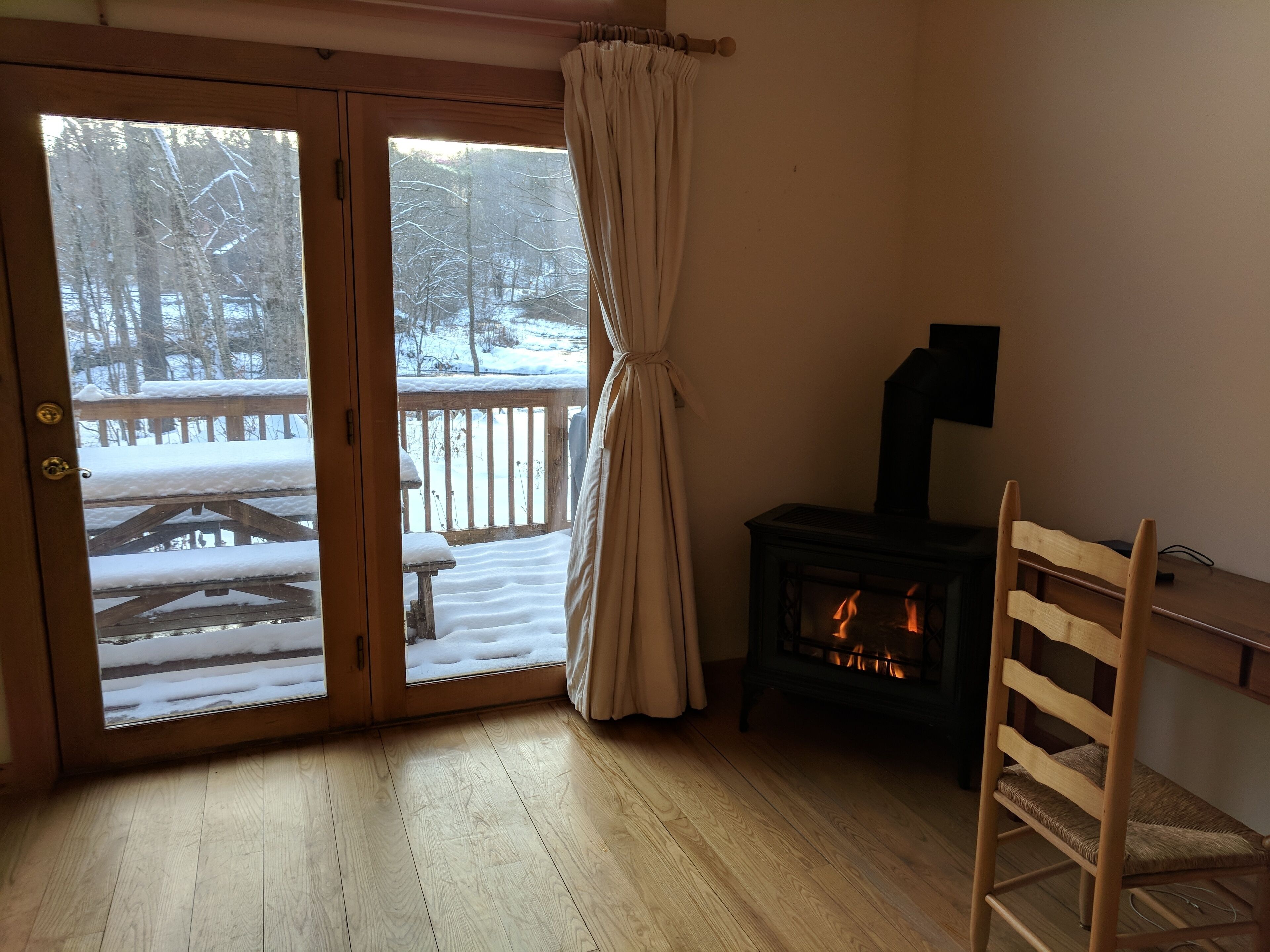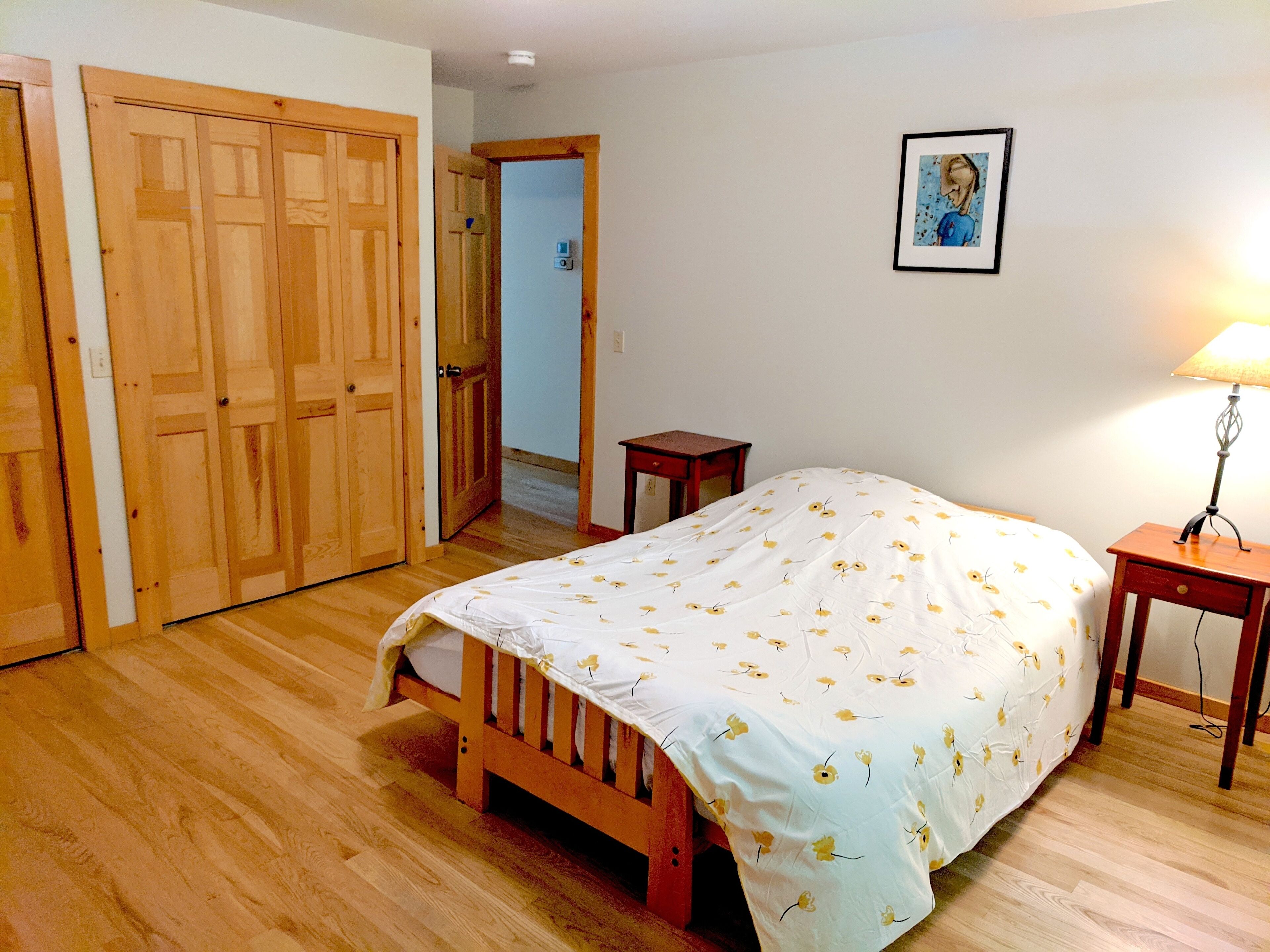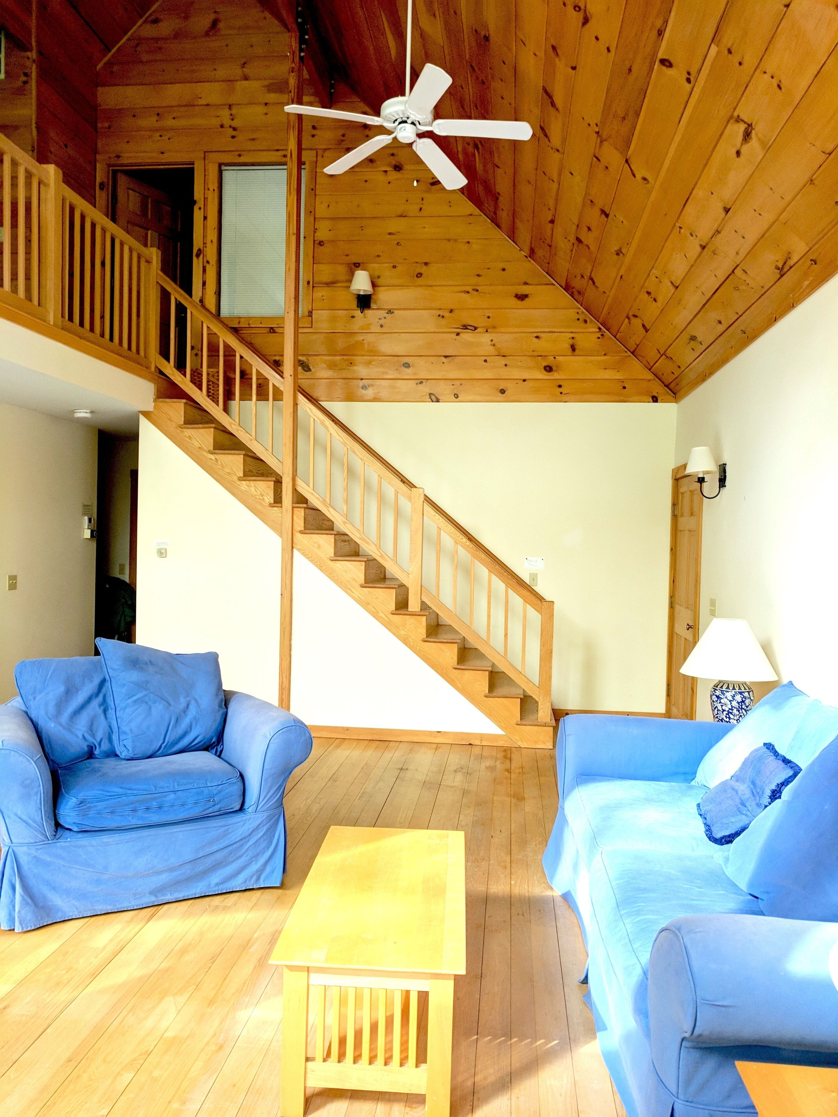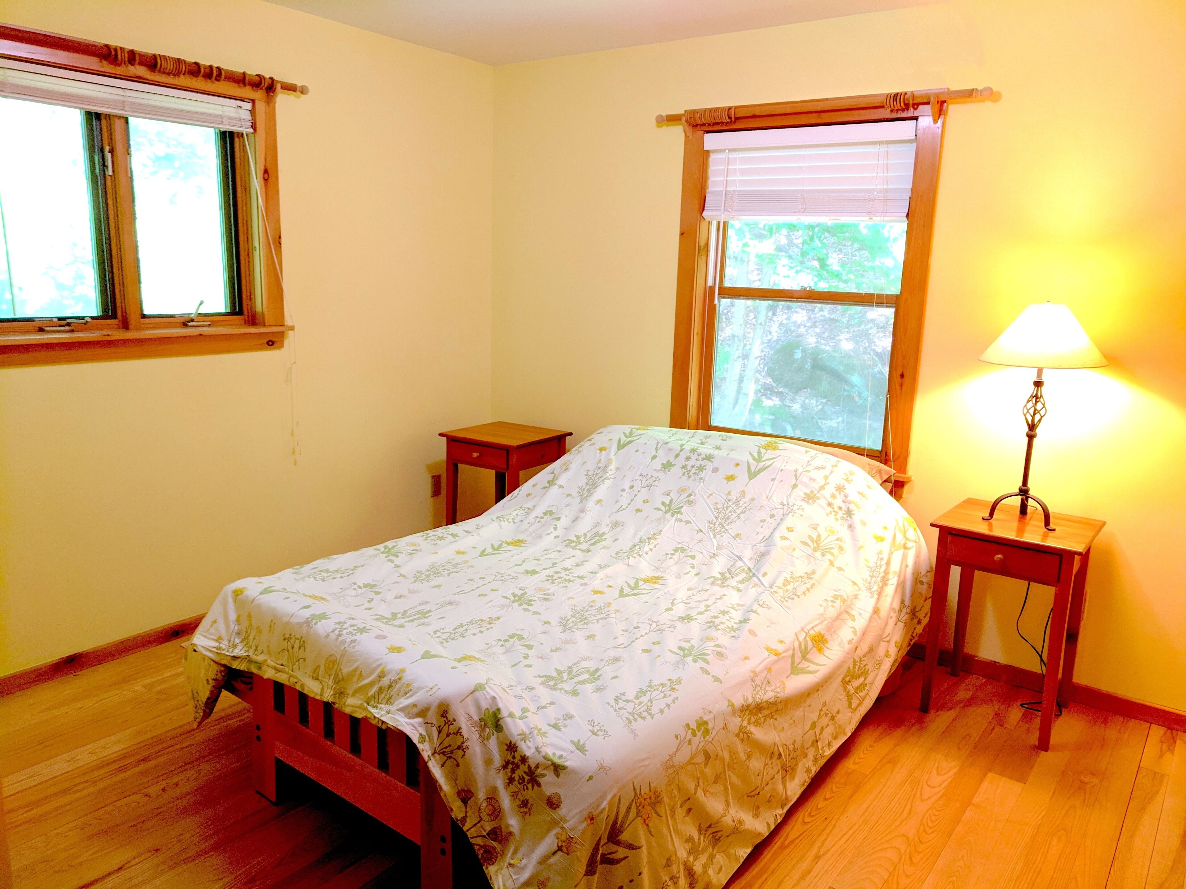 Beautiful 3BR river view, huge glass wall Log House -2200 sq/ft Sunny, specious log house on the river. The home has beautiful forest and river views through huge glass wall which is from 1st floor to 2nd floor ceiling facing towards south. Quiet and peaceful nature around including 44 acre of private forest and 1000 ft of river. Enjoy delicious water from the well, coziness inside and wildness outside of the house. There are 1 master bedroom, 1,5 bathroom and reading/working space upstairs with beautiful view of river and forest. Sunny living/dining/ kitchen, 2 bedrooms and 1 bathroom are down stairs. We have fiber optic cable installed for fast wifi internet connection. You are welcome to use any kitchen equipments including dishwasher, pots and pans, refrigerator, coffee maker, etc. Laundry washer/dryer room is available, too.Please take off your shoes and use slippers that we provide. No smoking, No pet, No party in the property. We hope your stay will be comfortable and relax. Please let us know if you have any questions.