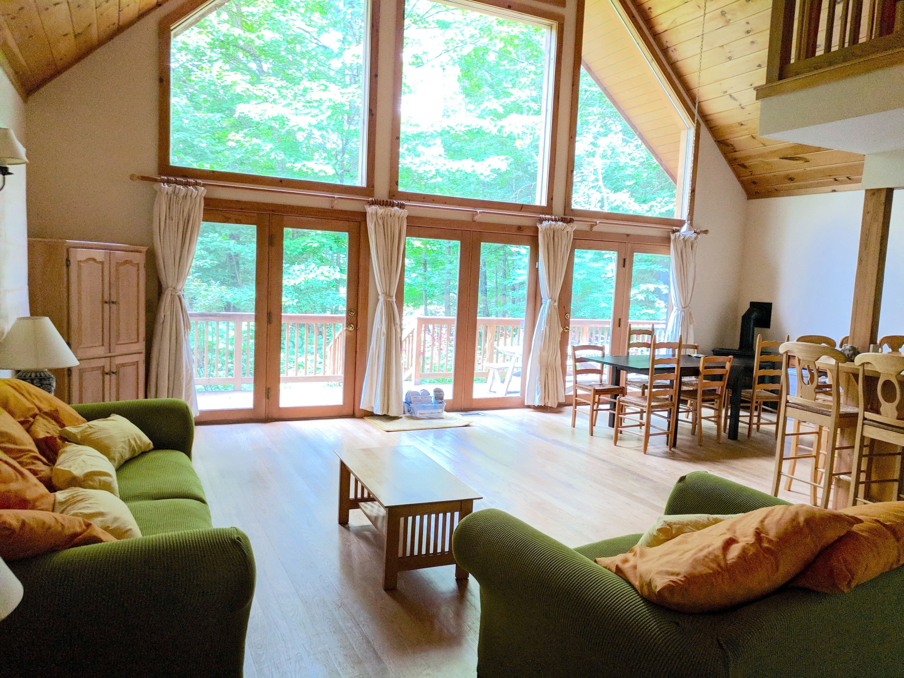 Beautiful 3BR river view, huge glass wall Log House -2200 sq/ft