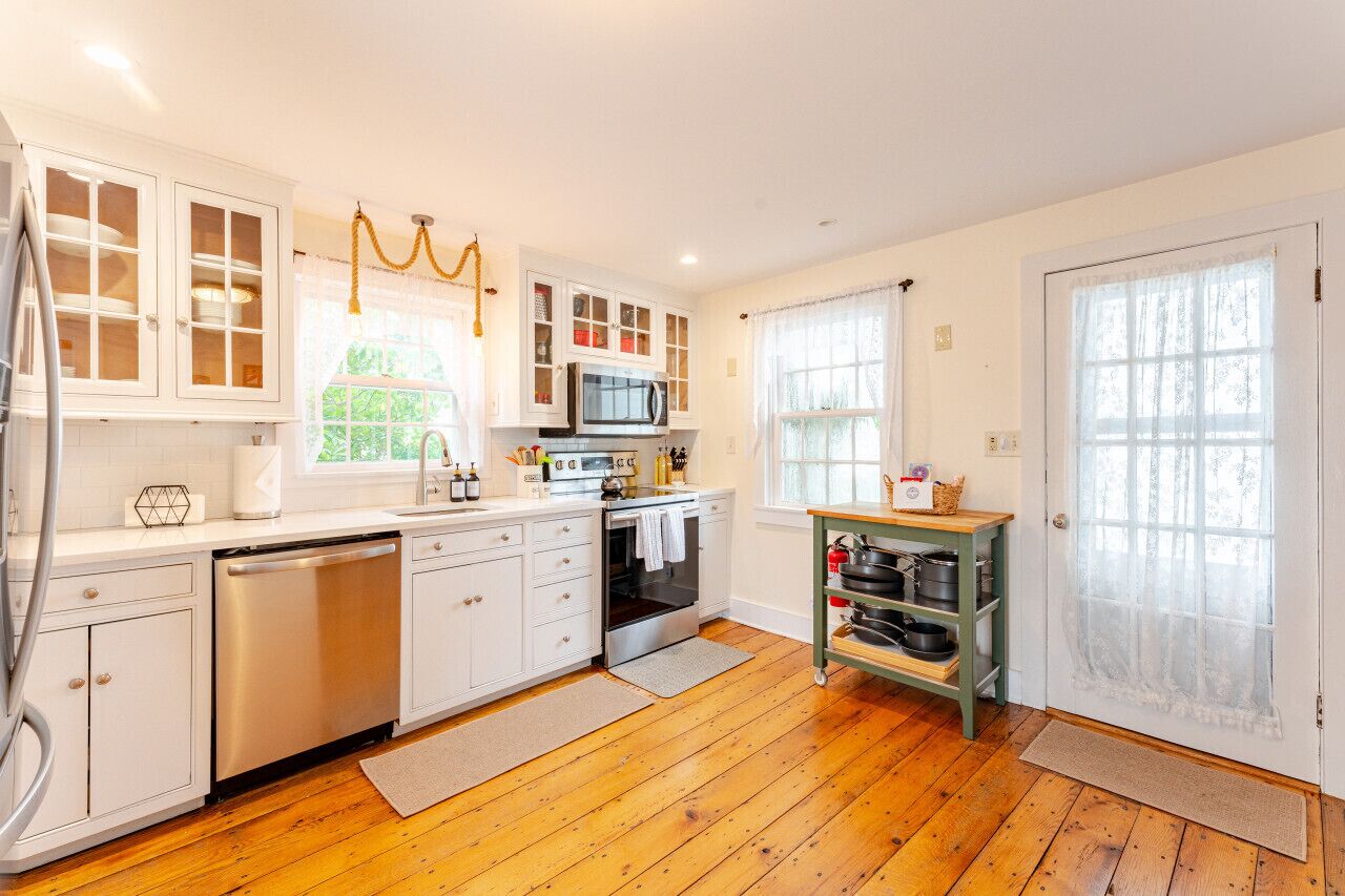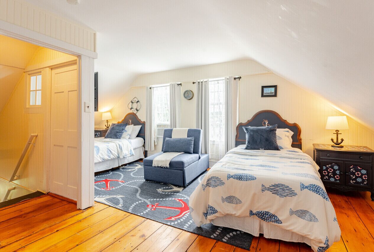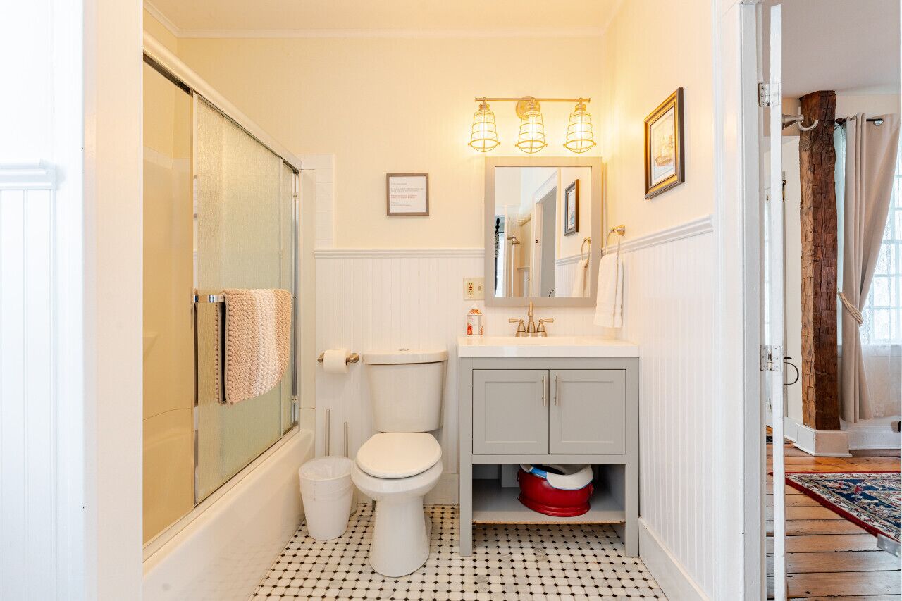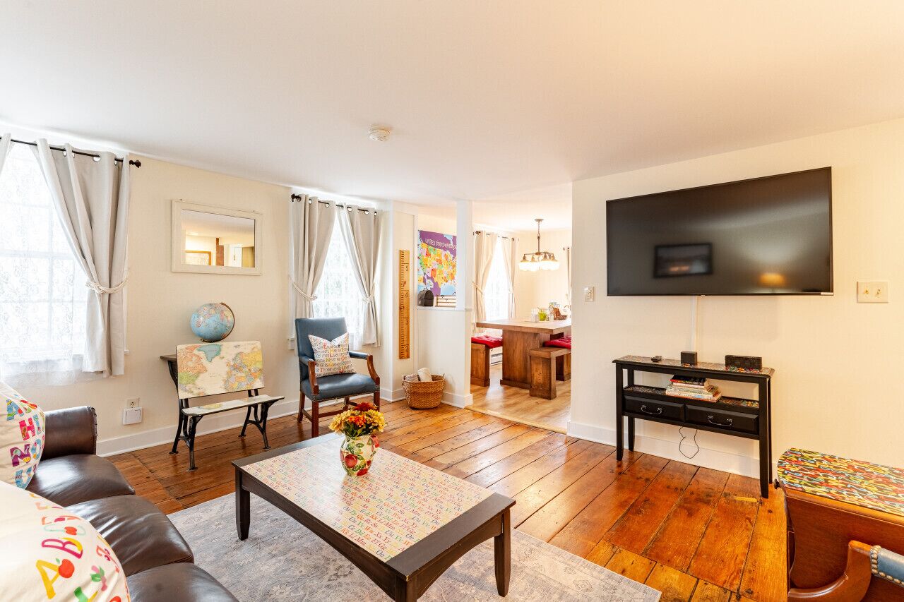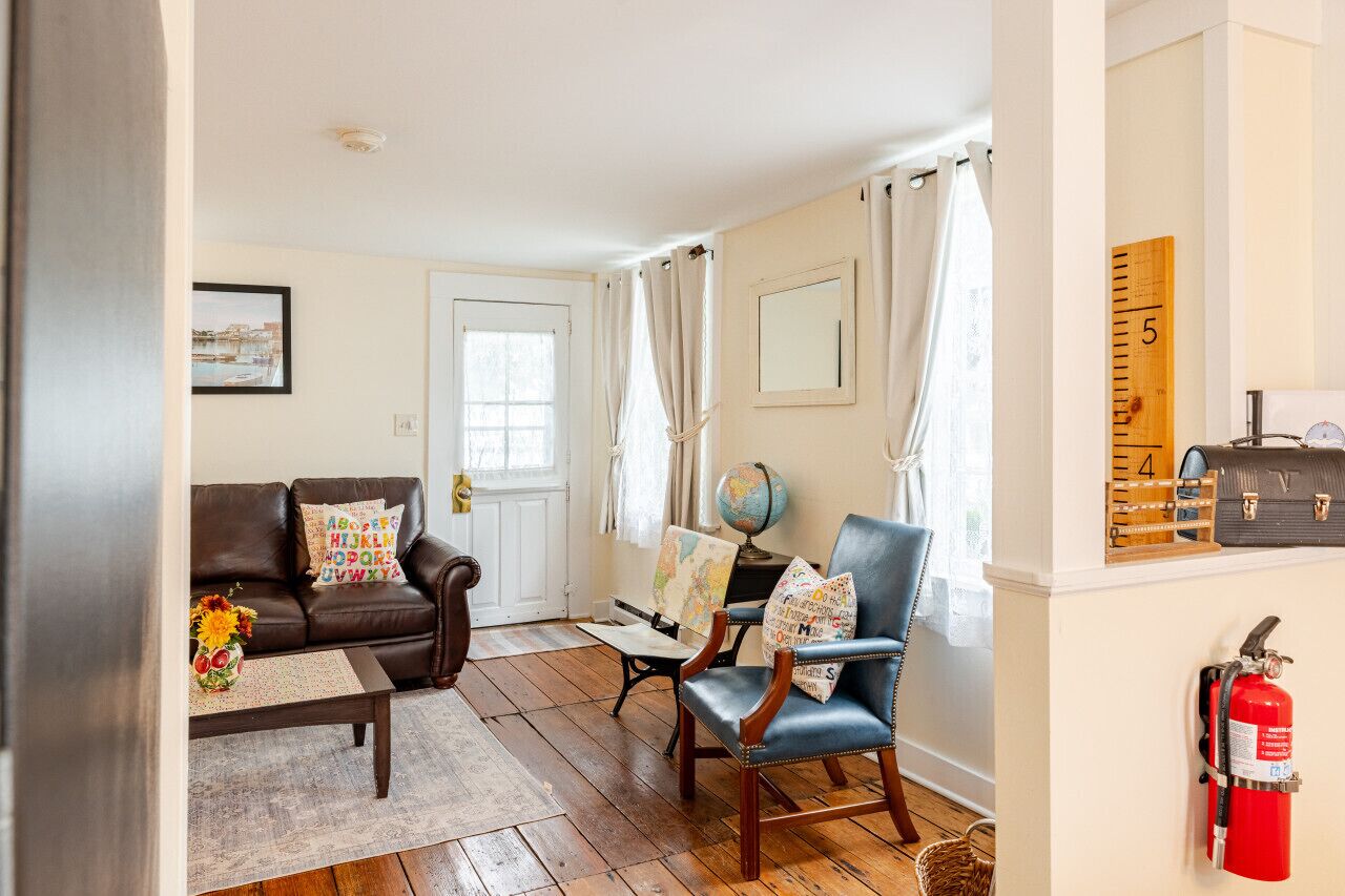 Captain Wolfe House · Captain's House & cottage Breathtaking Water Views This Historic Riverside house was built in 1810, by Captain George Wolfe. It has been renovated, and furnished in keeping with a classic, coastal New England feel. It is well equipped with modern amenities and has a lovely 1 BR/1 BA cottage with a separate kitchen. Just a quick walk from our Historic Downtown, this home offers beautiful river views and easy access to all things Mystic. There is plenty of parking and potential for a fabulous New England getaway.Sure, we're biased. But this house has the best of both worlds: sunlit indoor rooms, meticulously restored and furnished to embrace it’s history with a funky twist, and there is plenty of outdoor space for entertaining, reading, or just lying around. There are great views of the Mystic River. Both kitchens are fully stocked with all the basics and equipment you need. In addition, we have items like, coffee, tea, creamer, and sugar. Plenty of condiments and basics. You have access to the main house and the cottage. The main house (Captain's House) has three bedrooms and two full bathrooms. Separate from the main house you can enjoy our lovely cottage (School House) with a queen size bed and a full bathroom on the second floor. The cottage, a restored, historic school house, also has a fully stocked kitchen and washer/dryer. The entire home has WI-FI, smart TVs, and an Amazon Alexa/Sonos system. The family and dining rooms are spacious and cozy, and a great place to enjoy gathering with family and friends. We are located on the river, across from the Seaport and very near the famous drawbridge. There are three ways to reserve this quintessential coastal New England getaway. The main house, the cottage, or both together. see our Profile page.Guest AccessGuests have access to the entire property, which includes the main house, with three bedrooms and a full bathroom (The Captain's Cabin (Master Bedroom) and full bath on the 1st floor, two bedrooms and a full bathroom on 2nd floor). Guests also have access to the cottage (School House) with one bedroom (queen size bed) and full bath on 2nd floor. The cottage, was a local school house that was moved and added to the main house in 1857. It has a complete kitchen, washer/dryer and a sofa bed. It is the perfect place to put the younger lovers, introverted teenagers, or the in-laws. It makes for a remarkably convenient addition to the already hearty house. Guests also have access to a great outside a large back yard with tables and BBQ grill. We also have bikes and Kayaks that are available to guests as well.