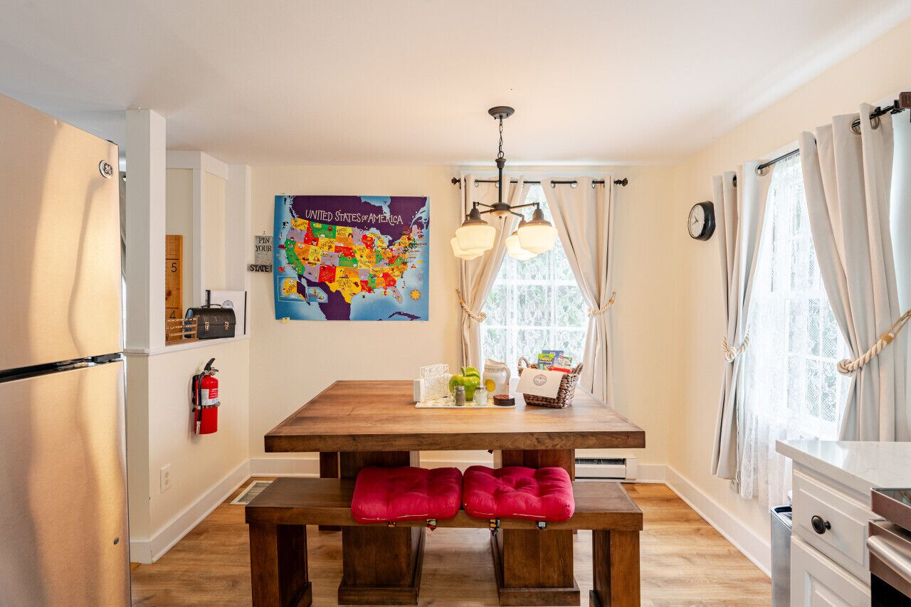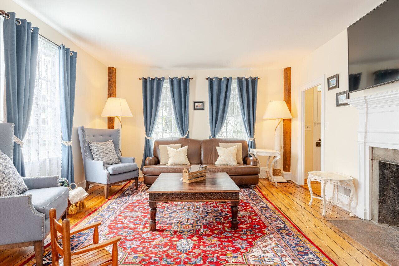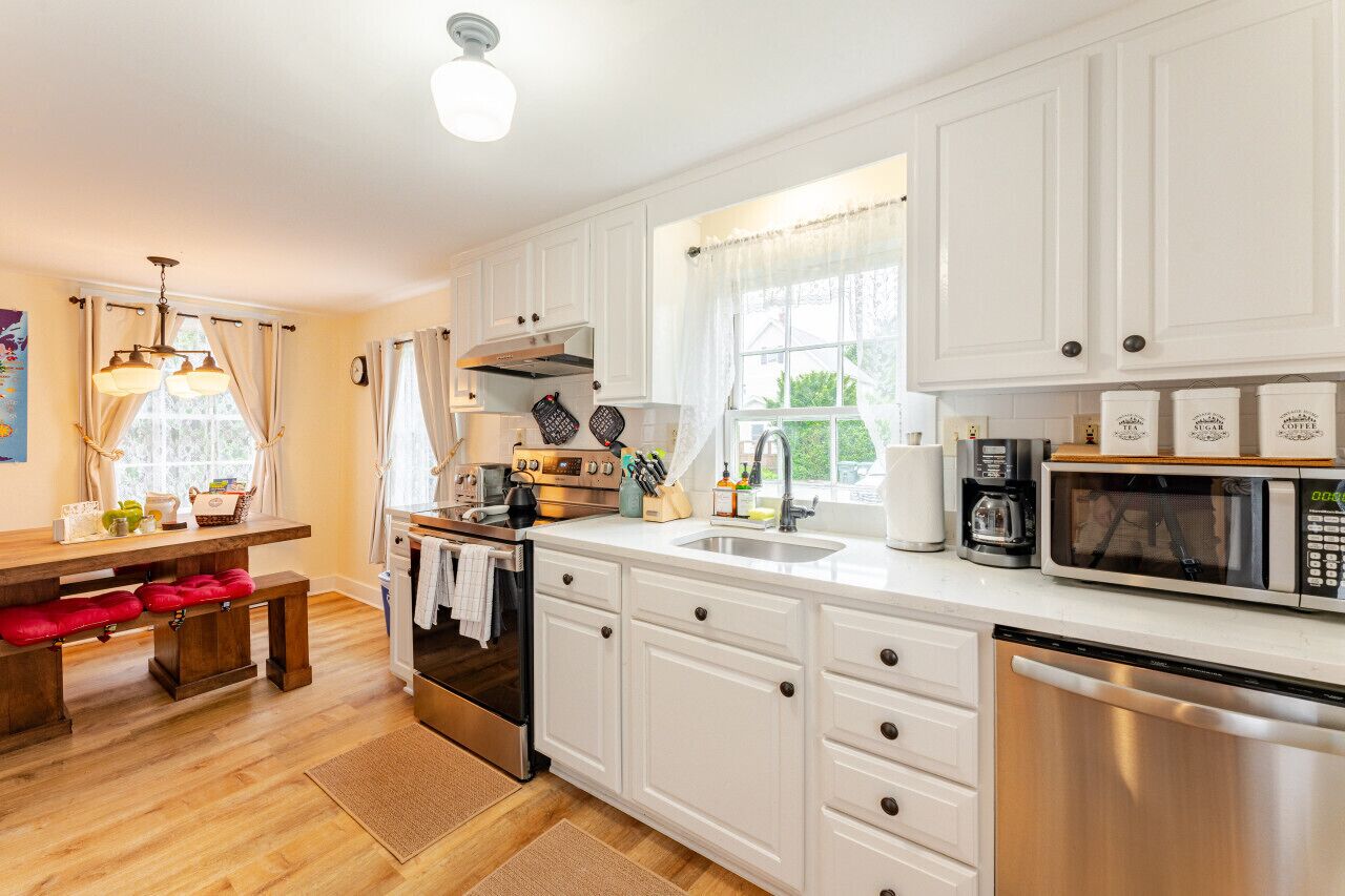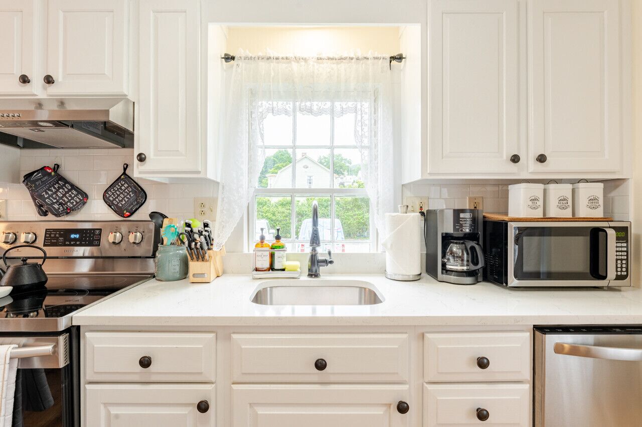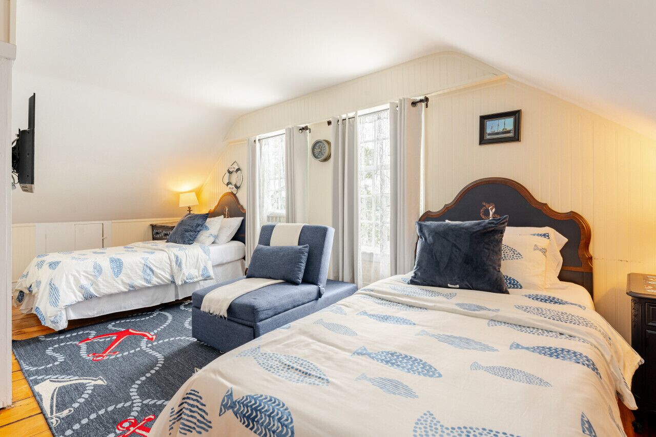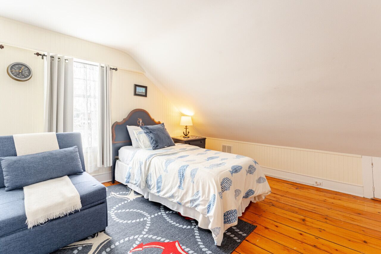 Captain Wolfe House · Captain's House & cottage Breathtaking Water Views This Historic Riverside house was built in 1810, by Captain George Wolfe. It has been renovated, and furnished in keeping with a classic, coastal New England feel. It is well equipped with modern amenities and has a lovely 1 BR/1 BA cottage with a separate kitchen. Just a quick walk from our Historic Downtown, this home offers beautiful river views and easy access to all things Mystic. There is plenty of parking and potential for a fabulous New England getaway.Sure, we're biased. But this house has the best of both worlds: sunlit indoor rooms, meticulously restored and furnished to embrace it’s history with a funky twist, and there is plenty of outdoor space for entertaining, reading, or just lying around. There are great views of the Mystic River. Both kitchens are fully stocked with all the basics and equipment you need. In addition, we have items like, coffee, tea, creamer, and sugar. Plenty of condiments and basics. You have access to the main house and the cottage. The main house (Captain's House) has three bedrooms and two full bathrooms. Separate from the main house you can enjoy our lovely cottage (School House) with a queen size bed and a full bathroom on the second floor. The cottage, a restored, historic school house, also has a fully stocked kitchen and washer/dryer. The entire home has WI-FI, smart TVs, and an Amazon Alexa/Sonos system. The family and dining rooms are spacious and cozy, and a great place to enjoy gathering with family and friends. We are located on the river, across from the Seaport and very near the famous drawbridge. There are three ways to reserve this quintessential coastal New England getaway. The main house, the cottage, or both together. see our Profile page.Guest AccessGuests have access to the entire property, which includes the main house, with three bedrooms and a full bathroom (The Captain's Cabin (Master Bedroom) and full bath on the 1st floor, two bedrooms and a full bathroom on 2nd floor). Guests also have access to the cottage (School House) with one bedroom (queen size bed) and full bath on 2nd floor. The cottage, was a local school house that was moved and added to the main house in 1857. It has a complete kitchen, washer/dryer and a sofa bed. It is the perfect place to put the younger lovers, introverted teenagers, or the in-laws. It makes for a remarkably convenient addition to the already hearty house. Guests also have access to a great outside a large back yard with tables and BBQ grill. We also have bikes and Kayaks that are available to guests as well.