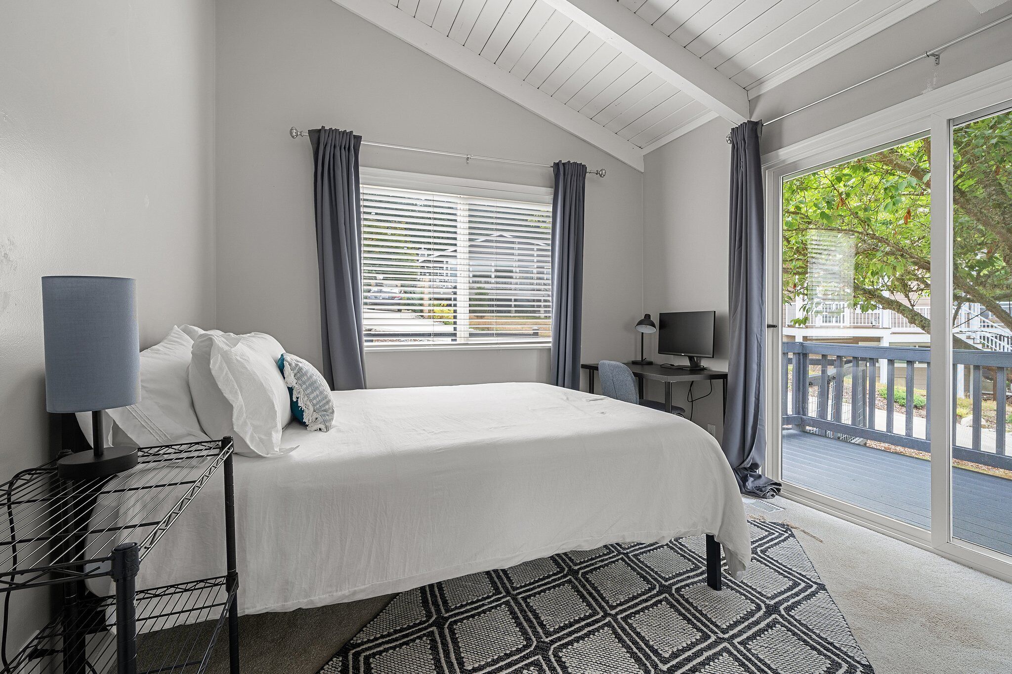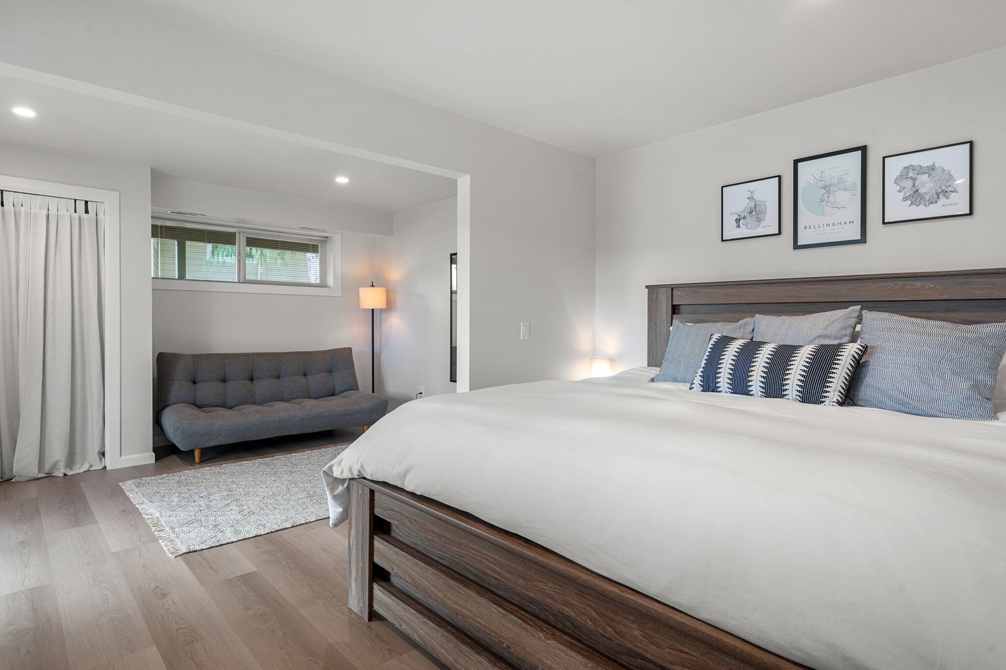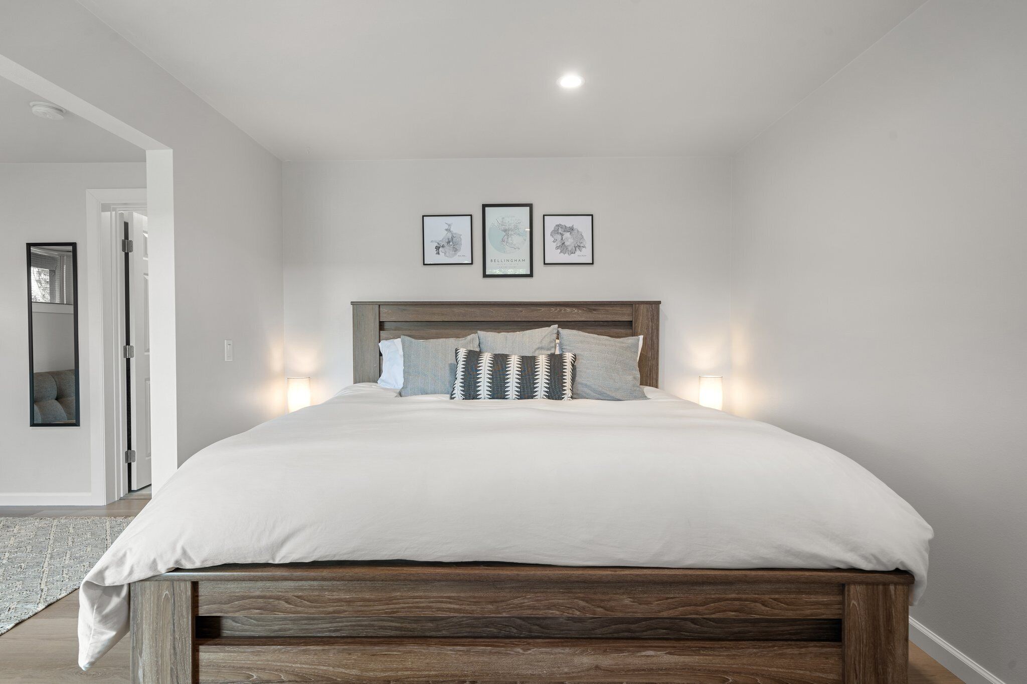 Stylish & Cozy Retreat Steps Away from Lake, Trails & Mt. Baker Skiing Welcome to Lakeview Haven by Gather, a splendid three-bedroom, two-bathroom retreat nestled in picturesque Bellingham, Welcome to Lakeview Haven by Gather, your ideal mountain biking home base in Bellingham, Washington. This bright and stylish home comfortably accommodates up to six guests and offers stunning views of Lake Whatcom, providing a perfect blend of tranquility and adventure in the Pacific Northwest. With easy access to premier biking trails and secured storage for your gear, this home is perfect for those seeking both comfort and outdoor excitement.What we love about Lakeview Haven:* Mountain Biking Hub: Ideally located near world-class mountain biking trails, with secured bike storage that makes it easy to head out for a ride anytime.* Spectacular Lake Views: Enjoy panoramic views of Lake Whatcom from both indoor and outdoor spaces, immersing you in the natural beauty of the Pacific Northwest.* Comfort and Convenience: High-speed Wi-Fi, dedicated workspaces, and cozy living areas create a seamless blend of work, leisure, and relaxation.* Prime Location for Outdoor Adventure: Steps away from bike trails, hiking paths, and beach access, and just a short drive to Mt. Baker for skiing and more outdoor activities.From the moment you enter Lakeview Haven, you’ll be welcomed by bright, airy spaces filled with natural light. The open-concept living area features comfortable seating with a large couch and a projector screen, perfect for relaxing after a day of adventure. Large windows frame picturesque views of the lake, adding to the home’s serene ambiance.The fully equipped kitchen is a focal point of the home, offering everything you need for home-cooked meals. Modern appliances, a spacious breakfast bar with seating for four, and a dining table that accommodates up to eight guests provide a welcoming space for gathering and sharing meals. Whether you’re preparing a hearty breakfast before hitting the trails or enjoying a leisurely dinner with loved ones, this space is both functional and inviting.This home features three private bedrooms, each designed with comfort and relaxation in mind. The primary suite, located upstairs, offers a king bed, stunning lake views, and an en-suite bathroom. The additional bedrooms provide flexible sleeping arrangements, with cozy beds and thoughtful furnishings that ensure a restful night’s sleep. High-speed Wi-Fi and a dedicated workspace make this home ideal for remote work or extended stays.Step outside to discover your gateway to outdoor adventure. The home is perfectly positioned near some of the best mountain biking and hiking trails in the area, and beach access is just down the street. The secured bike storage ensures your gear is safe and ready whenever you are. After a day of exploring, unwind on the deck while taking in the serene lake views, or enjoy an al fresco meal with the sounds of nature as your backdrop.Lakeview Haven is conveniently located just 15 minutes from I-5, providing easy access to downtown Bellingham and nearby attractions. Mt. Baker, with its renowned skiing and hiking trails, is just an hour’s drive away, making day trips a breeze. Whether you’re seeking outdoor adventures or a peaceful retreat, this home offers the perfect base for exploring everything the Pacific Northwest has to offer.Lakeview Haven by Gather is your ultimate escape for comfort, adventure, and breathtaking scenery. Book your stay today and experience the perfect blend of modern amenities and outdoor excitement in beautiful Bellingham.Please note that this property is equipped with exterior security cameras.