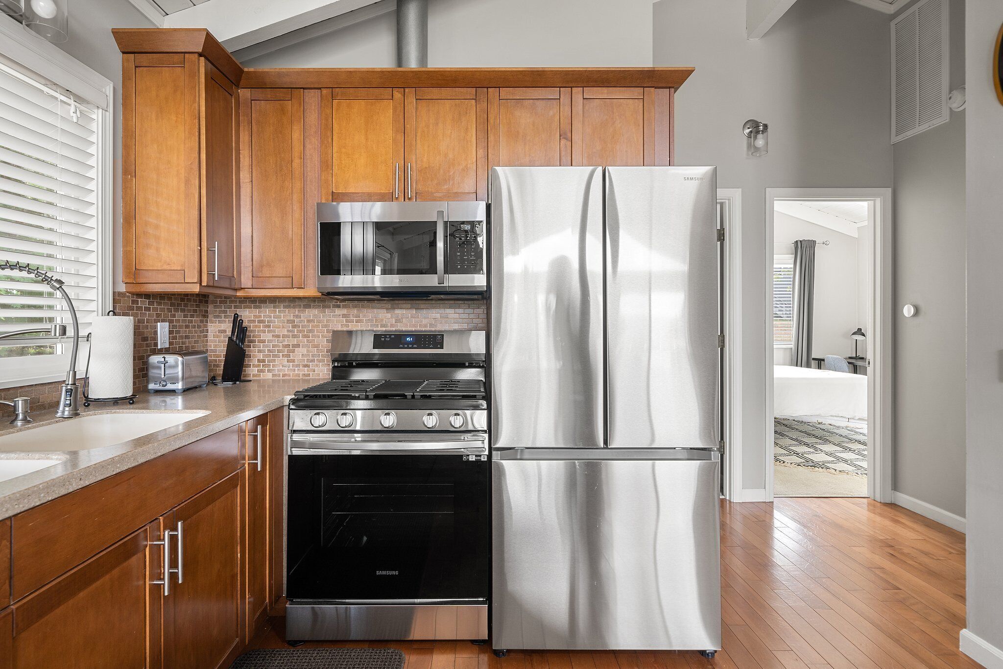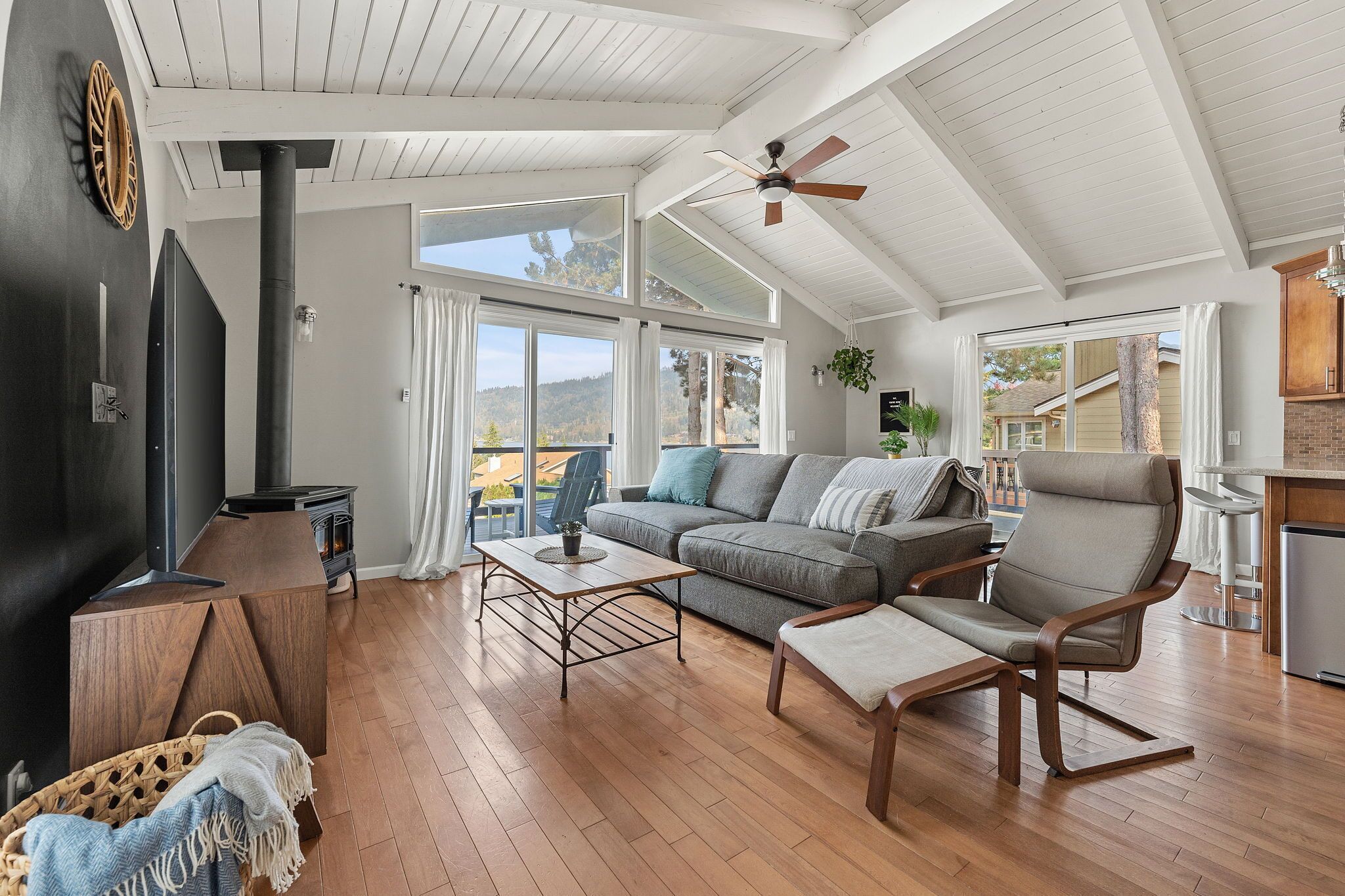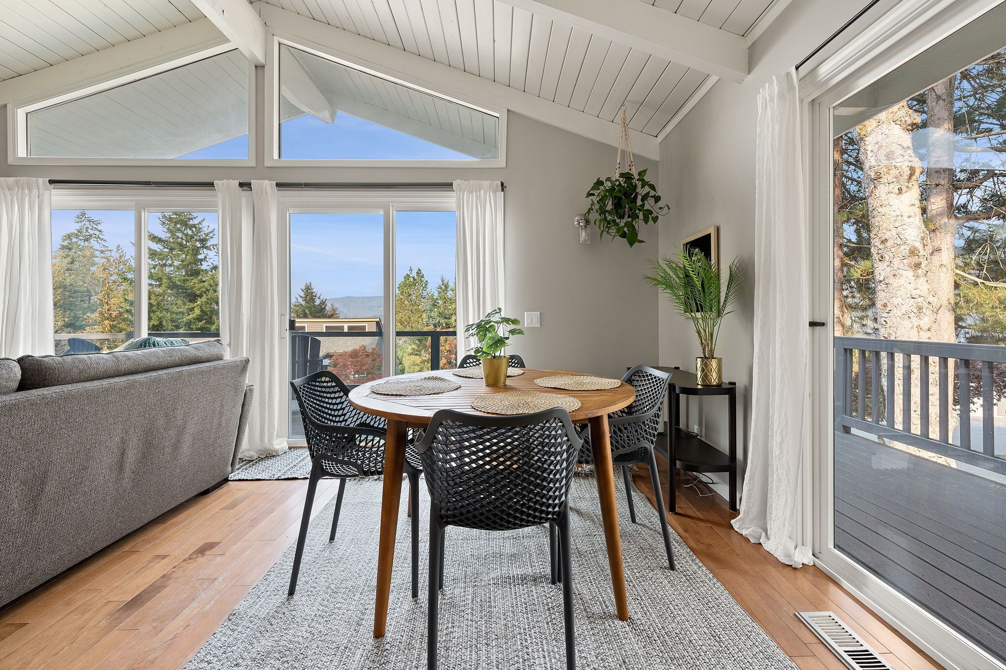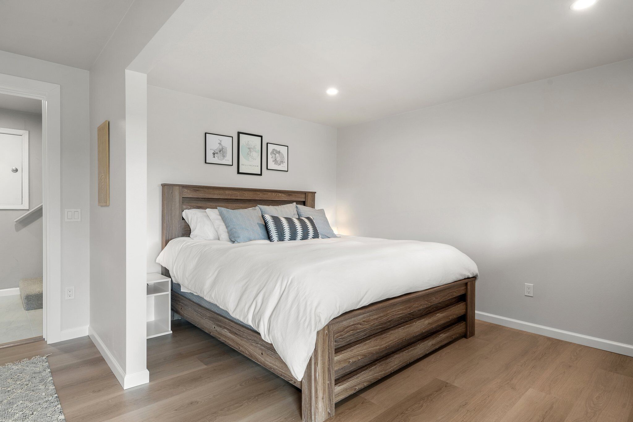 Stylish & Cozy Retreat Steps Away from Lake, Trails & Mt. Baker Skiing Welcome to Lakeview Haven by Gather, a splendid three-bedroom, two-bathroom retreat nestled in picturesque Bellingham, Welcome to Lakeview Haven by Gather, your ideal mountain biking home base in Bellingham, Washington. This bright and stylish home comfortably accommodates up to six guests and offers stunning views of Lake Whatcom, providing a perfect blend of tranquility and adventure in the Pacific Northwest. With easy access to premier biking trails and secured storage for your gear, this home is perfect for those seeking both comfort and outdoor excitement.What we love about Lakeview Haven:* Mountain Biking Hub: Ideally located near world-class mountain biking trails, with secured bike storage that makes it easy to head out for a ride anytime.* Spectacular Lake Views: Enjoy panoramic views of Lake Whatcom from both indoor and outdoor spaces, immersing you in the natural beauty of the Pacific Northwest.* Comfort and Convenience: High-speed Wi-Fi, dedicated workspaces, and cozy living areas create a seamless blend of work, leisure, and relaxation.* Prime Location for Outdoor Adventure: Steps away from bike trails, hiking paths, and beach access, and just a short drive to Mt. Baker for skiing and more outdoor activities.From the moment you enter Lakeview Haven, you’ll be welcomed by bright, airy spaces filled with natural light. The open-concept living area features comfortable seating with a large couch and a projector screen, perfect for relaxing after a day of adventure. Large windows frame picturesque views of the lake, adding to the home’s serene ambiance.The fully equipped kitchen is a focal point of the home, offering everything you need for home-cooked meals. Modern appliances, a spacious breakfast bar with seating for four, and a dining table that accommodates up to eight guests provide a welcoming space for gathering and sharing meals. Whether you’re preparing a hearty breakfast before hitting the trails or enjoying a leisurely dinner with loved ones, this space is both functional and inviting.This home features three private bedrooms, each designed with comfort and relaxation in mind. The primary suite, located upstairs, offers a king bed, stunning lake views, and an en-suite bathroom. The additional bedrooms provide flexible sleeping arrangements, with cozy beds and thoughtful furnishings that ensure a restful night’s sleep. High-speed Wi-Fi and a dedicated workspace make this home ideal for remote work or extended stays.Step outside to discover your gateway to outdoor adventure. The home is perfectly positioned near some of the best mountain biking and hiking trails in the area, and beach access is just down the street. The secured bike storage ensures your gear is safe and ready whenever you are. After a day of exploring, unwind on the deck while taking in the serene lake views, or enjoy an al fresco meal with the sounds of nature as your backdrop.Lakeview Haven is conveniently located just 15 minutes from I-5, providing easy access to downtown Bellingham and nearby attractions. Mt. Baker, with its renowned skiing and hiking trails, is just an hour’s drive away, making day trips a breeze. Whether you’re seeking outdoor adventures or a peaceful retreat, this home offers the perfect base for exploring everything the Pacific Northwest has to offer.Lakeview Haven by Gather is your ultimate escape for comfort, adventure, and breathtaking scenery. Book your stay today and experience the perfect blend of modern amenities and outdoor excitement in beautiful Bellingham.Please note that this property is equipped with exterior security cameras.