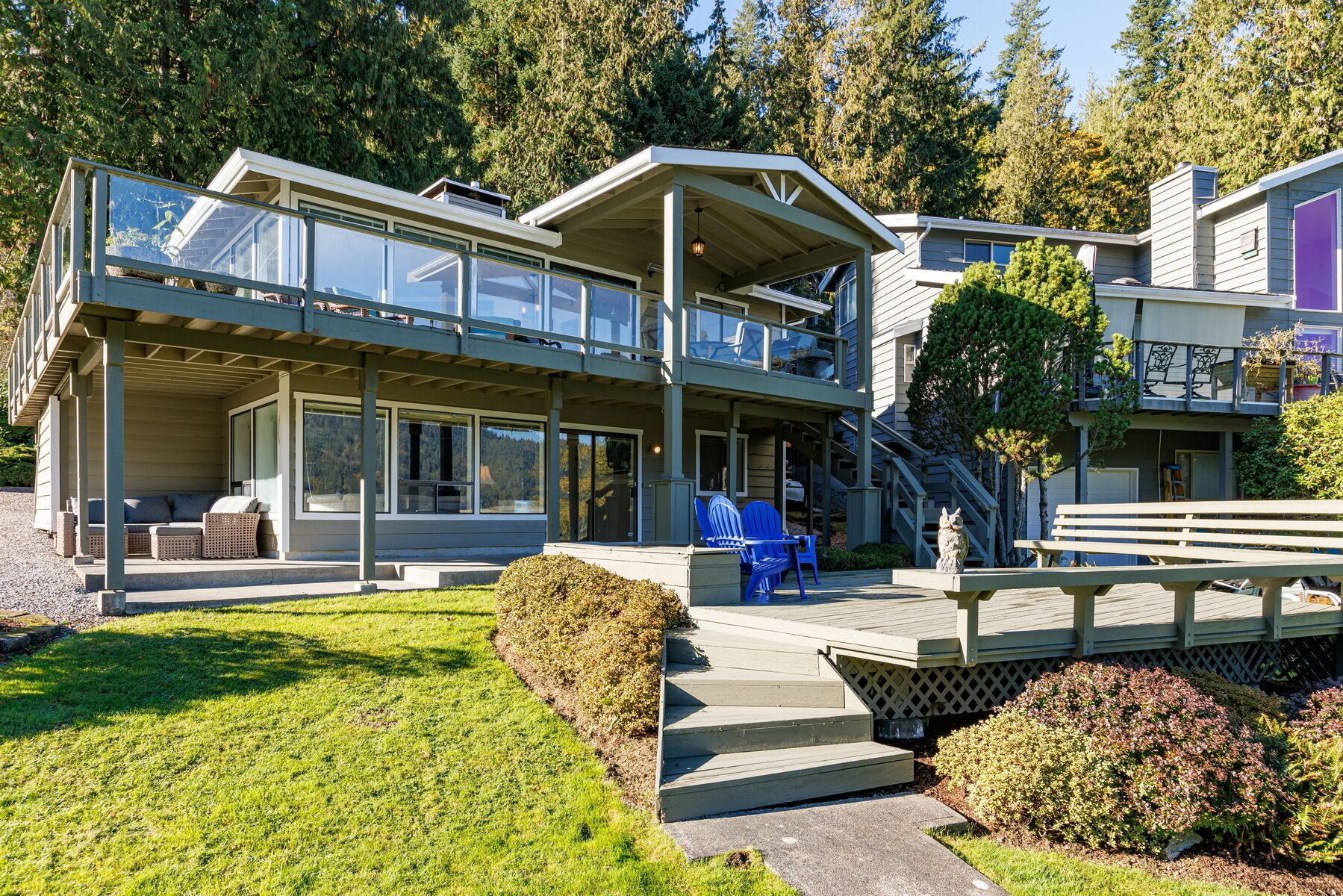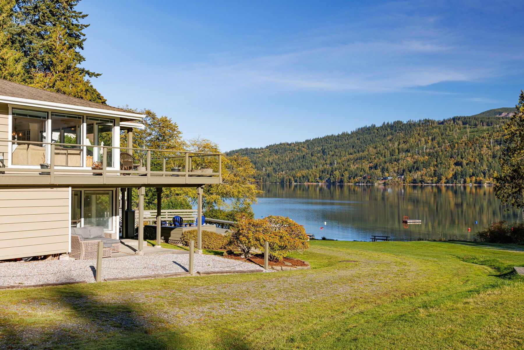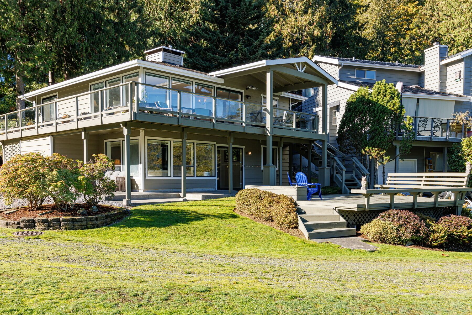 Bellingham Lakefront Retreat - family fun on the lake awaits! Welcome to our charming lakefront retreat on the serene shores of Lake Whatcom in beautiful Bellingham! This spacious and inviting 4-bedroom house is an ideal getaway for families or groups of up to 10 guests. Whether you seek outdoor adventures or leisurely relaxation, this location offers the best of both worlds.Enjoy the convenient location, with Downtown Bellingham 20 minutes away, US/Canada border 35 minutes away, Seattle and Vancouver BC, Canada 1.5 hours away, and 1.5 hours to Mt. BakerWhether you spend your days lounging by the lake or exploring nearby attractions, Bellingham Lakefront Retreat is the ultimate destination for an unforgettable vacation - family-friendly, pet-friendly, and breathtaking lake views! The home is adjacent to Sofield Park, offering a large grassy lawn and a sandy beach perfect for relaxing and swimming - 2 kayaks and 1 paddle board are provided! Walking distance from the Marina, dog park, and a 18-hole championship golf course open to the public. Minutes from world-class mountain biking and hiking trails. There's no shortage of fun & activities here!The Space:The main living area offers comfortable furnishings and large windows with breathtaking, unobstructed views of the lake. Unwind in the living room with plush sofas, a SmartTV and cozy fireplace. The adjacent dining area and fully equipped kitchen make meal times convenient and enjoyable. The lower level offers a second living area with comfortable couches, fireplace and SmartTV - room for the whole family!Bedrooms:The house features four well-appointed bedrooms, each designed for comfort and relaxation. On the upper level there are 2 bedrooms, one with a king bed and the other with a queen-size bed. The lower level you’ll find another queen bedroom, along with a room equipped with 2 bunk beds (4 twin-size beds). Outdoor Delights:Step through the sliding door off the kitchen/dining area to a covered deck overlooking the park and lake with a BBQ and outdoor dining table. The lower level opens up to an expansive deck that terraces down to the grassy public park and takes you all the way to the lakeshore. Take advantage of water activities like swimming, kayaking, or simply basking in the beauty of nature.Guest Access:Guests have full access to the home and all the amenities the Sudden Valley community has to offer, including: lake access, marina, golf course, dog park, seasonal swimming pool (fee required), gym (fee required), BBQ gazebos, playground, tennis court, baseball diamonds, and multiple green spaces.Local Attractions:Located just a short drive from downtown Bellingham, you'll have easy access to an array of attractions. Explore the vibrant arts scene, dine at local eateries, or embark on scenic hikes in the nearby trails.