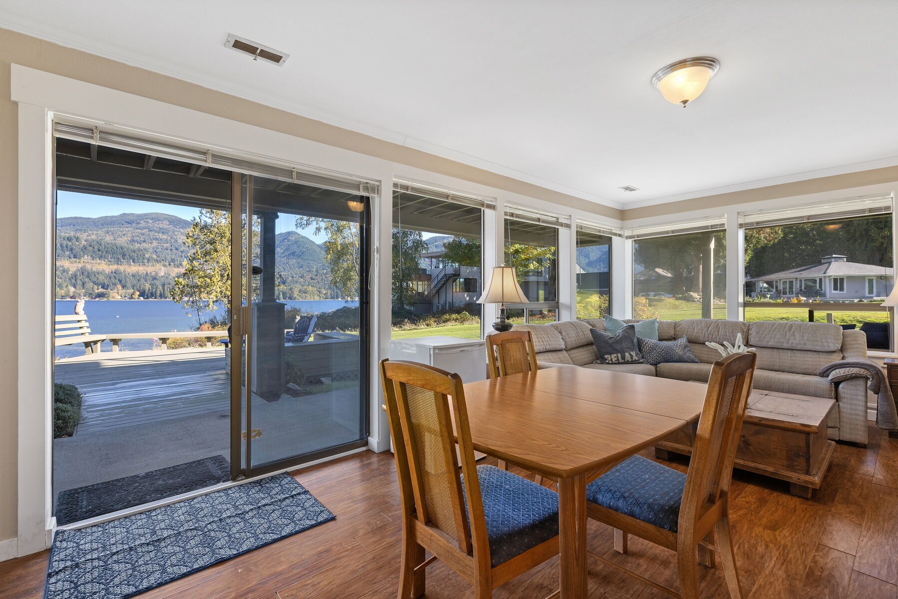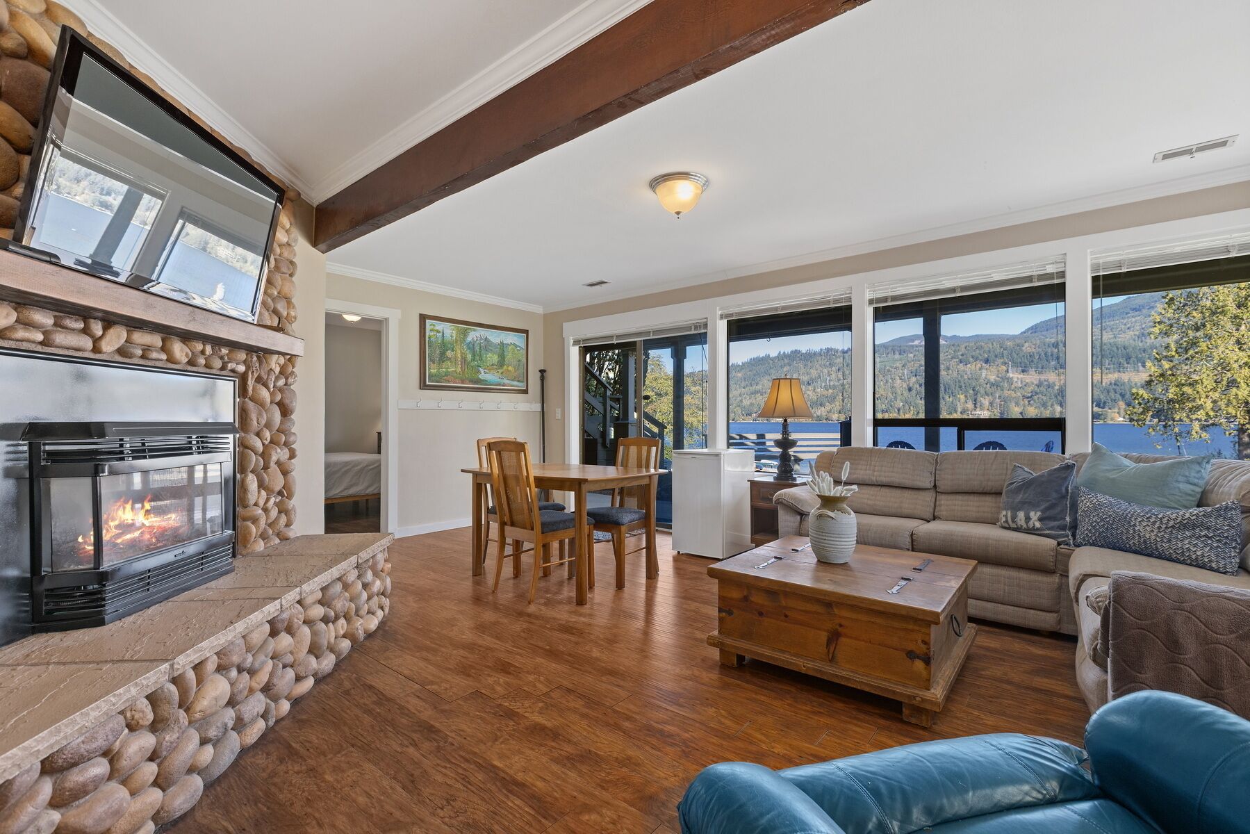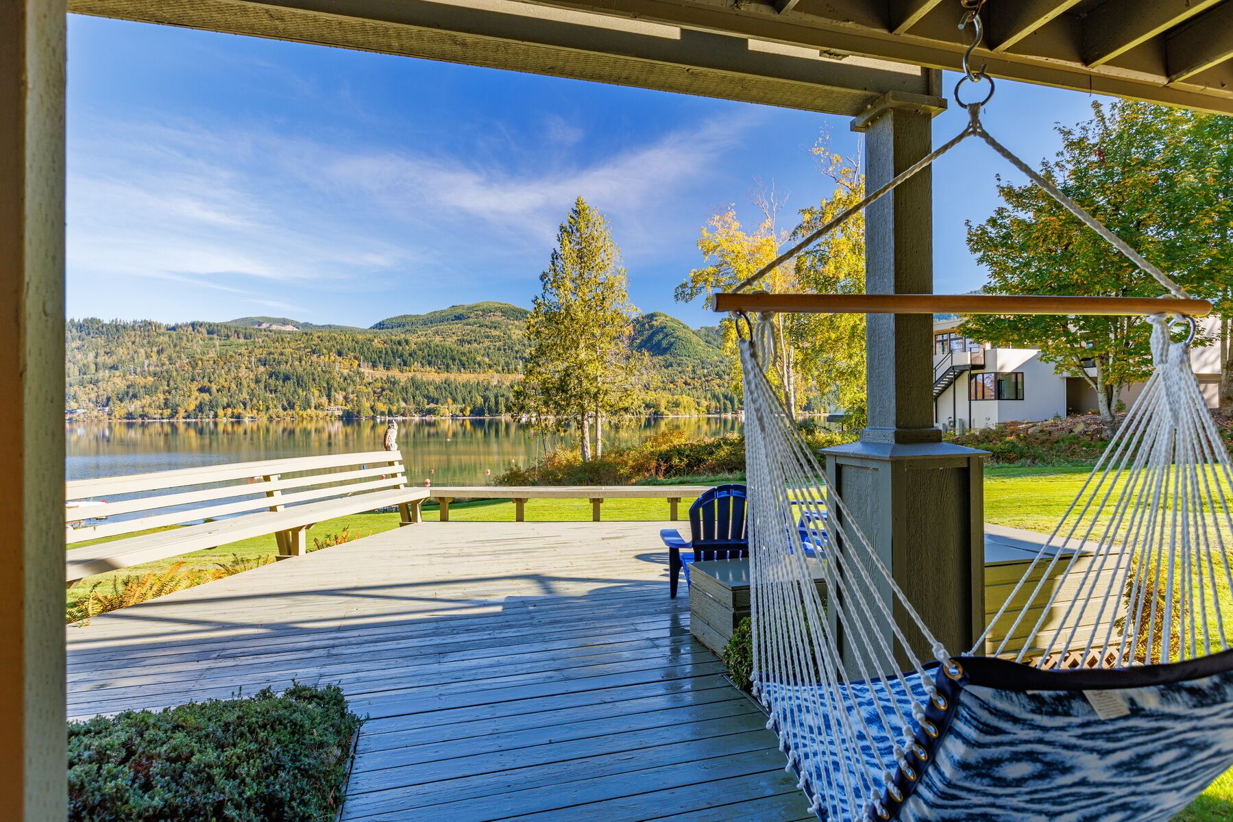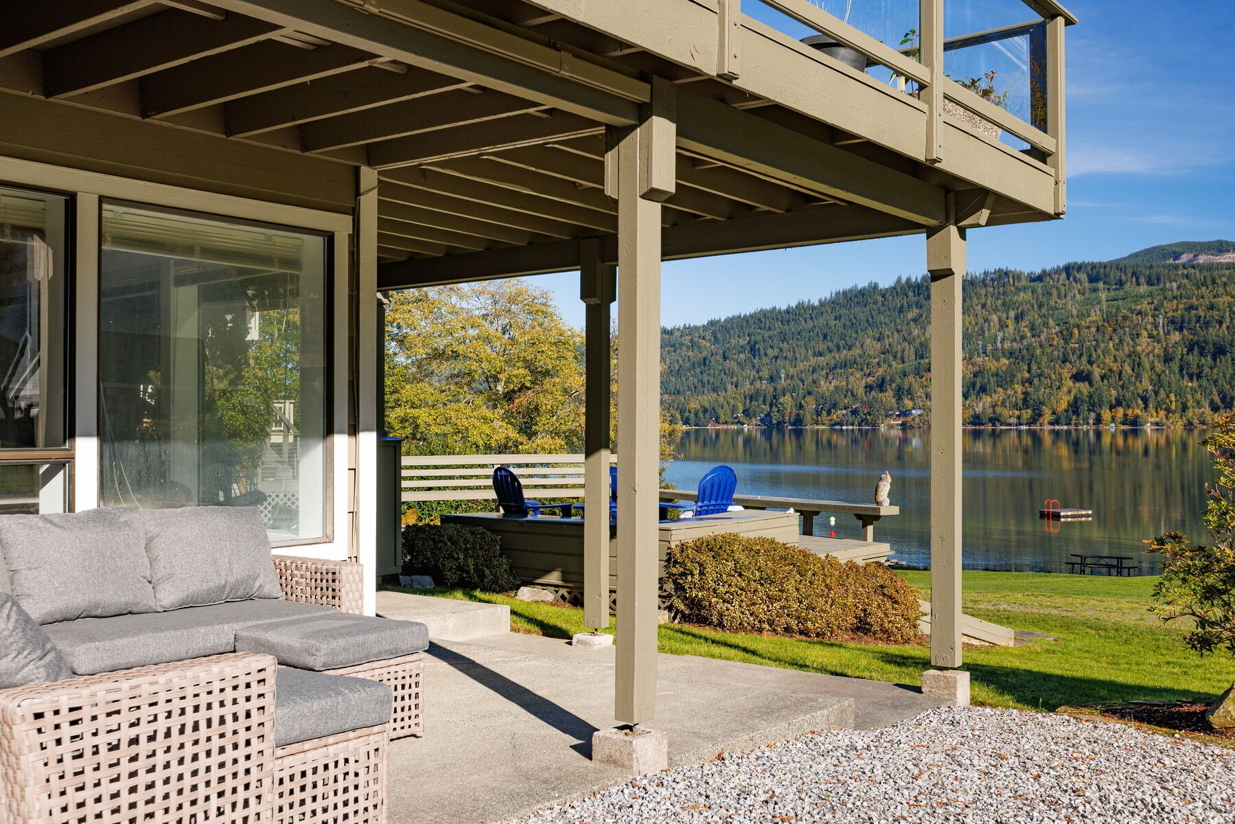 Bellingham Lakefront Retreat - family fun on the lake awaits! Welcome to our charming lakefront retreat on the serene shores of Lake Whatcom in beautiful Bellingham! This spacious and inviting 4-bedroom house is an ideal getaway for families or groups of up to 10 guests. Whether you seek outdoor adventures or leisurely relaxation, this location offers the best of both worlds.Enjoy the convenient location, with Downtown Bellingham 20 minutes away, US/Canada border 35 minutes away, Seattle and Vancouver BC, Canada 1.5 hours away, and 1.5 hours to Mt. BakerWhether you spend your days lounging by the lake or exploring nearby attractions, Bellingham Lakefront Retreat is the ultimate destination for an unforgettable vacation - family-friendly, pet-friendly, and breathtaking lake views! The home is adjacent to Sofield Park, offering a large grassy lawn and a sandy beach perfect for relaxing and swimming - 2 kayaks and 1 paddle board are provided! Walking distance from the Marina, dog park, and a 18-hole championship golf course open to the public. Minutes from world-class mountain biking and hiking trails. There's no shortage of fun & activities here!The Space:The main living area offers comfortable furnishings and large windows with breathtaking, unobstructed views of the lake. Unwind in the living room with plush sofas, a SmartTV and cozy fireplace. The adjacent dining area and fully equipped kitchen make meal times convenient and enjoyable. The lower level offers a second living area with comfortable couches, fireplace and SmartTV - room for the whole family!Bedrooms:The house features four well-appointed bedrooms, each designed for comfort and relaxation. On the upper level there are 2 bedrooms, one with a king bed and the other with a queen-size bed. The lower level you’ll find another queen bedroom, along with a room equipped with 2 bunk beds (4 twin-size beds). Outdoor Delights:Step through the sliding door off the kitchen/dining area to a covered deck overlooking the park and lake with a BBQ and outdoor dining table. The lower level opens up to an expansive deck that terraces down to the grassy public park and takes you all the way to the lakeshore. Take advantage of water activities like swimming, kayaking, or simply basking in the beauty of nature.Guest Access:Guests have full access to the home and all the amenities the Sudden Valley community has to offer, including: lake access, marina, golf course, dog park, seasonal swimming pool (fee required), gym (fee required), BBQ gazebos, playground, tennis court, baseball diamonds, and multiple green spaces.Local Attractions:Located just a short drive from downtown Bellingham, you'll have easy access to an array of attractions. Explore the vibrant arts scene, dine at local eateries, or embark on scenic hikes in the nearby trails.