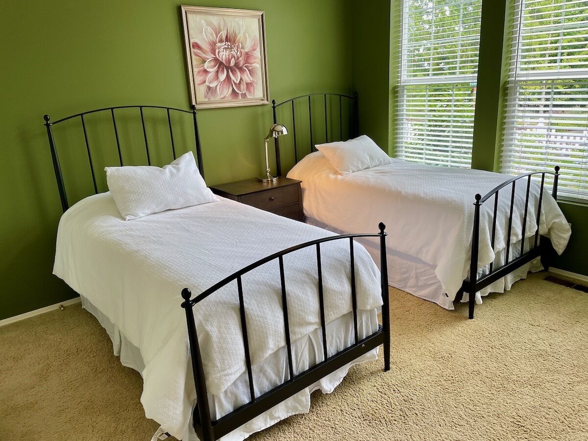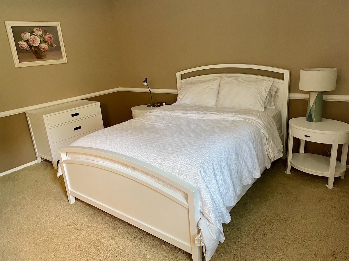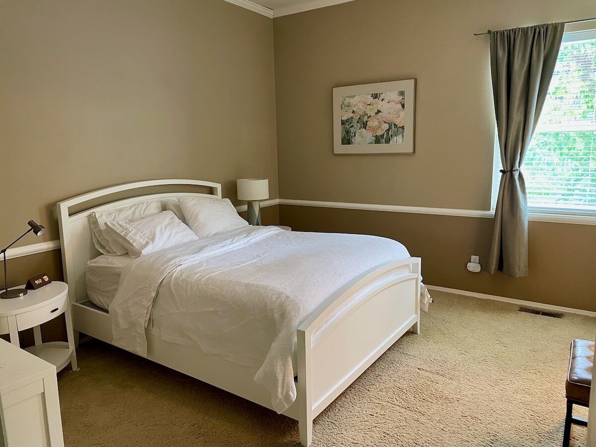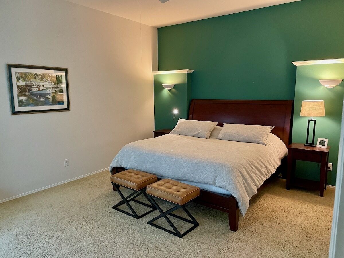 Jewel of Geneva: Tranquil Retreat with Deck and Home Office Discover tranquility in one of Bellingham's safest and quietest neighborhoods. Nestled on a serene dead-end street, this single-story retreat offers unparalleled peace and privacy. Enjoy proximity to Whatcom Lake, where glimpses of serene waters greet you from the kitchen window without the disturbance of passing traffic noise.Sought after for its single-story design, this home ensures ease of movement with no stairs to navigate. The master bedroom boasts a luxurious king-size bed, a flat-screen TV, and an ensuite bathroom complete with a soaking tub, shower, and double sinks. A queen bed graces the second bedroom, while the third bedroom offers twin beds—perfect for families or guests.Experience ultimate comfort with Egyptian cotton bedding and down comforters, ensuring restful nights throughout your stay. Stay productive in the equipped office, featuring a computer screen, printer, and a cozy couch facing the tranquil backyard—ideal for quiet reflection or focused work.Step outside to the large deck, accessible from the living room, master bedroom, and office. Bask in the serene surroundings as you enjoy al fresco dining, morning coffee, or simply unwind amidst the natural beauty of the Pacific Northwest.Additional amenities include a two-car garage and a spacious fenced yard, perfect for outdoor relaxation and play. With landlord approval, pets are welcome to join your retreat. Book your stay for a minimum of two weeks up to one year, with monthly rates available for extended stays. Experience the epitome of comfort and convenience in beautiful Bellingham.