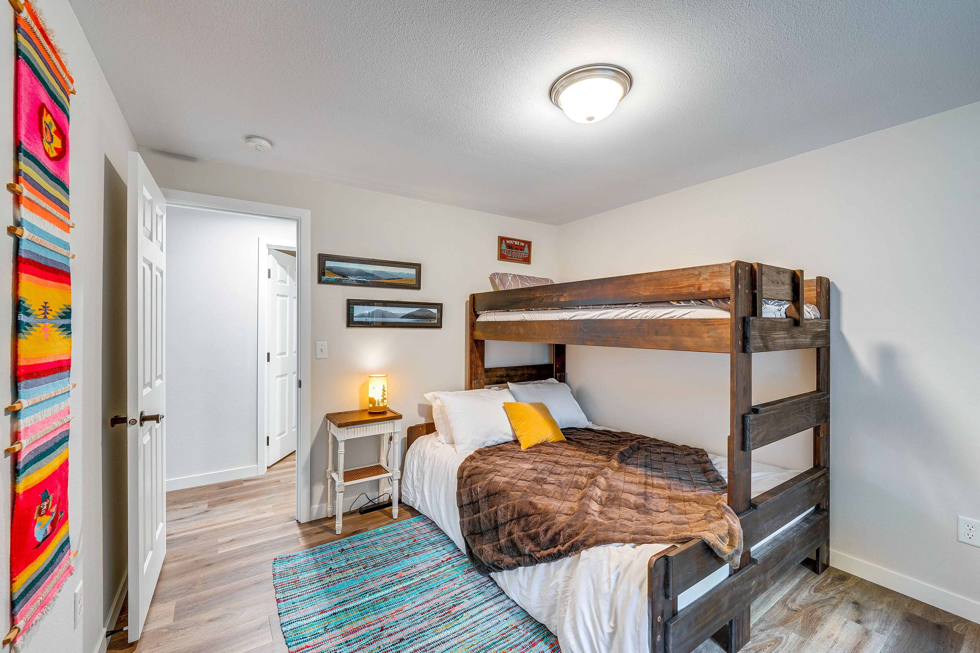 Charming Bellingham Home: Backyard, Walk to Beach! Your cozy PNW getaway awaits at this bright Bellingham vacation rental. With easy access to the beach and the mountains, this 3-bedroom, 2-bathroom home invites you to explore both in one day! Walk to North Point Beach, explore Whatcom Falls Park a short drive away, and discover the vibrant downtown. At day’s end, embrace the home’s warm ambiance while cooking in the modern kitchen, unwinding by the Smart TV, or curling up with a book. Top off the night with a glass of wine on the patio!-- THE PROPERTY --Free WiFi (High Speed) | Office Space | Washer & Dryer | Gas Grill | Community Amenities w/ FeeBedroom Suite: King Bed | Bedroom 2: Queen Bed | Bedroom 3: Twin XL/Queen Bunk BedCOMMUNITY AMENITIES (addt’l fee, paid on-site): Outdoor pool, fitness center, tennis court, playgroundOUTDOOR LIVING: Private backyard, patio, gardenINDOOR LIVING: Smart TV w/ cable, VCR & DVD player, books, board games, dining tables, office (w/ printer & monitor)KITCHEN: Stove/oven, refrigerator, dishwasher, microwave, coffee maker, dishware & flatware, cooking basicsGENERAL: Central A/C & heating, linens/towels, hair dryer, hangers, iron/board, complimentary toiletries, laundry detergent, trash bags/paper towelsACCESSIBILITY: Single-story home, 1 step to enter, 3 steps down to backyardFAQ: Pet fee (paid pre-trip), 2 exterior security cameras (facing out)PARKING: Garage (2 vehicles), driveway (3 vehicles), RV/trailer parking allowed-- THE LOCATION --OUTDOOR ADVENTURE: Lake Whatcom (0.2 miles), Whatcom Falls Park (6 miles), Big Rock Garden Park (8 miles), Lake Padden Park (10 miles), Larrabee State Park (15 miles), Mt. Baker Ski Area (59 miles)HIKE & BIKE: Stimpson Family Nature Reserve Access Trail (2 miles), Galbraith Mountain Bike Park North Entrance (6 miles), Cedar Lake Overlook (13 miles), Lake Whatcom Park (15 miles)HIT THE LINKS: Sudden Valley Golf Course (1 mile), Lake Padden Golf Course (10 miles), Bellingham Golf and Country Club (12 miles)AIRPORTS: Bellingham International Airport (14 miles), Seattle-Tacoma International Airport (98 miles)-- REST EASY WITH US --Evolve makes it easy to find and book properties you’ll never want to leave. You can relax knowing that our properties will always be ready for you and that we’ll answer the phone 24/7. Even better, if anything is off about your stay, we’ll make it right. You can count on our homes and our people to make you feel welcome--because we know what vacation means to you.-- POLICIES --- No smoking- Pet friendly w/ $100 fee per stay (+ fees & taxes, 1 max, dog only) - No events, parties, or large gatherings- Must be at least 25 years old to book- Additional fees and taxes may apply- Photo ID may be required upon check-in- NOTE: This single-story home has 1 step to enter and 3 steps down to the back patio- NOTE: Community amenities are available for an additional fee of $8/day or $50/month, paid for upon arrival- NOTE: The 3rd bedroom is currently locked off and not available for guest use- NOTE: Your safety matters. This property features 2 exterior security cameras. Camera 1 is a doorbell camera facing the front entrance, and camera 2 faces the back entrance. The cameras are outward facing and do not look into interior spaces. The cameras record video and audio when activated by motion or when the doorbell is pressed