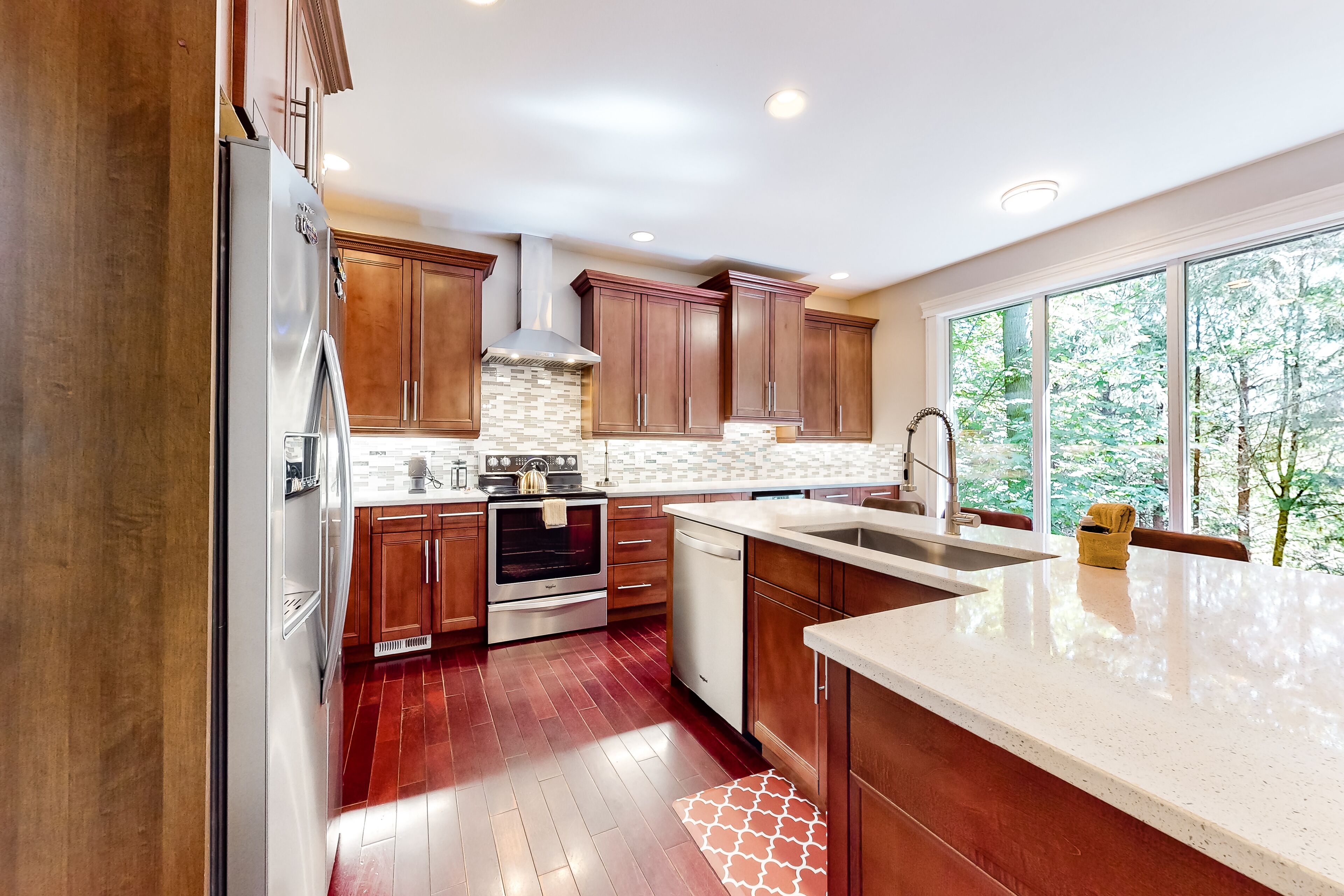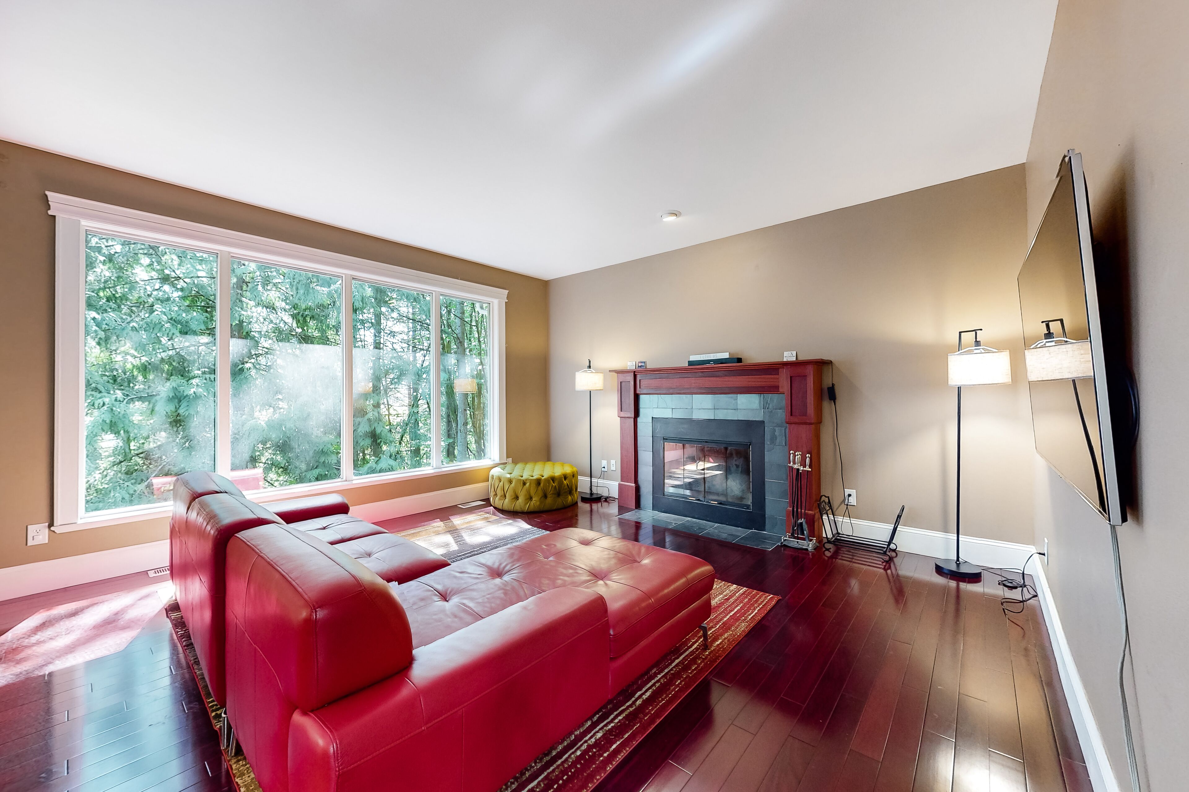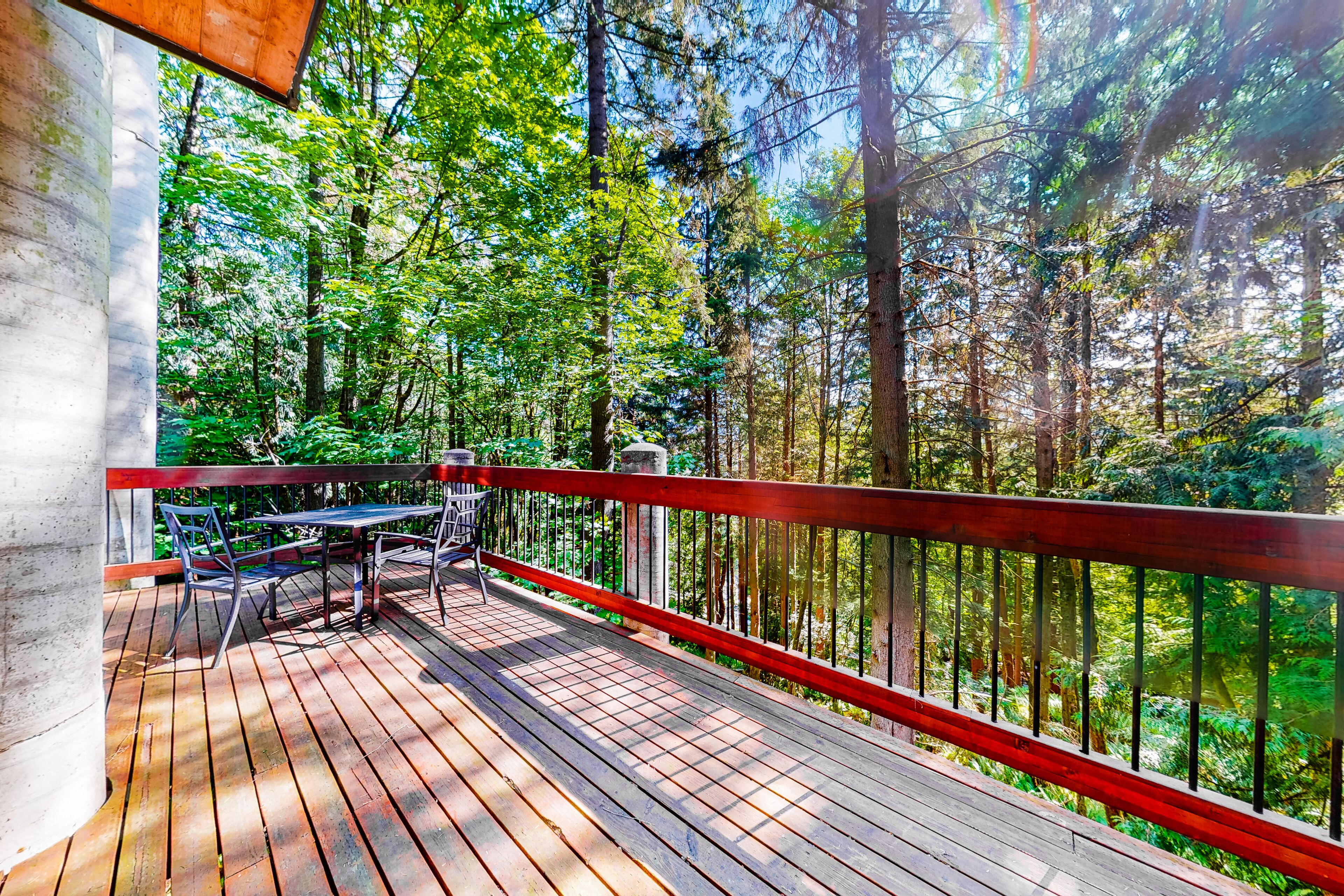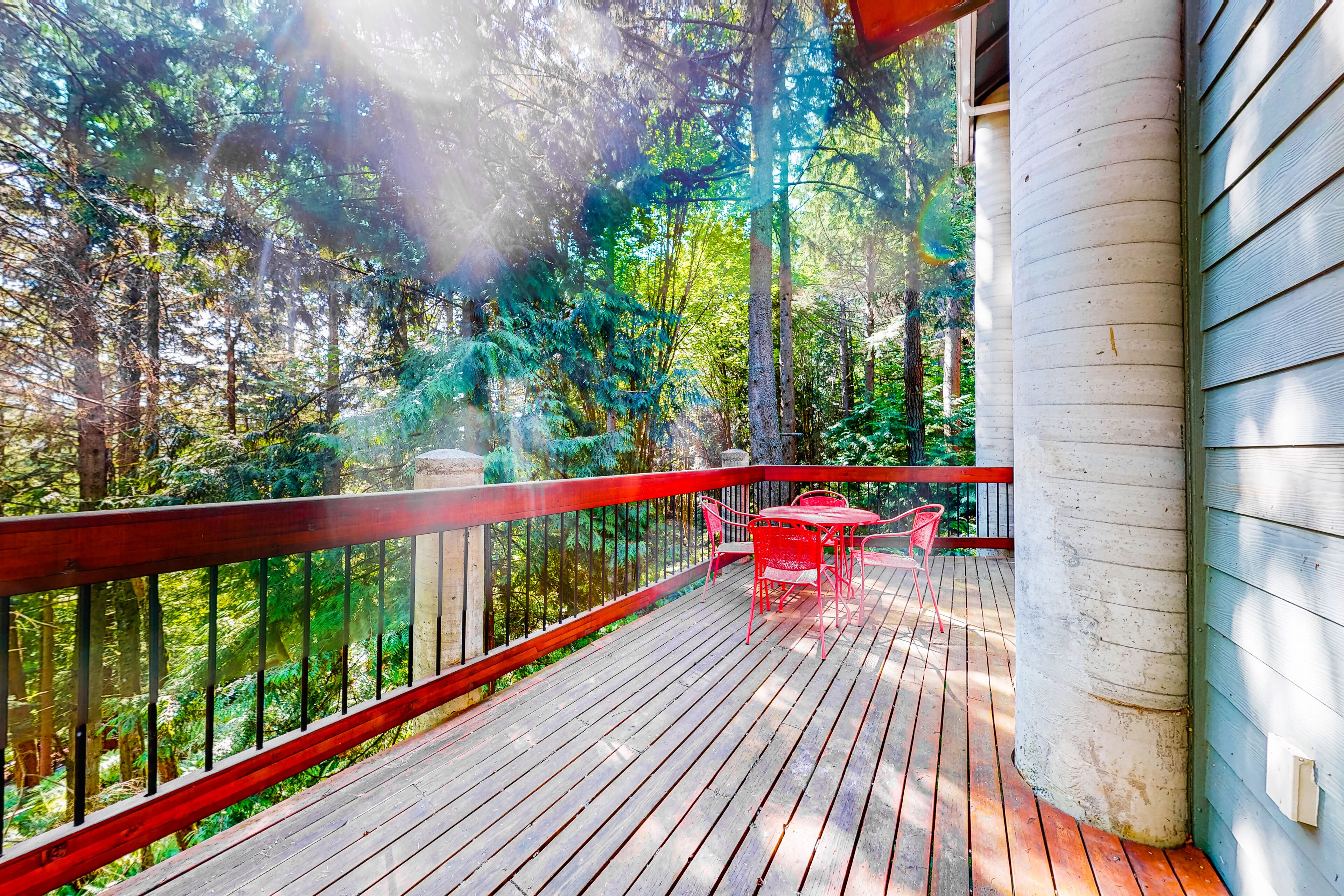Dog-friendly woodland home with 2 decks, golf course, tennis & marina Cascade DreamsOur calendar is updated in real-time & our nightly rates are accurately displayed. Simply enter your desired dates and click 'Book Now!'Tucked into an evergreen grove within the lakeside community of Sudden Valley, this woodland property is a place for families, golfers, tennis players, and watersports enthusiasts to feel at home. Enjoy all sorts of HOA amenities and two levels of beautiful deck space to come home to each day.As part of the Sudden Valley HOA on the western shores of Lake Whatcom, this two-story home enjoys access to facilities throughout the community. There's an 18-hole golf course designed by Ted Robinson (with the front nine on the lakeshore, the back nine in the wooded hills), a marina on the lake, five tennis courts, a basketball court, several parks, a library, and miles of hiking trails along the lake and up in the woods. Downtown Bellingham is just nine miles west.You'll begin and end most days outdoors, breathing in the fresh forest air on one of the decks. There's plenty of space for sipping morning coffee, barbecuing in the afternoons, and dining at sunset with the sunlight filtering through the trees.The main living spaces are on the upper of the two floors, with views of the woods framed by rear walls of glass. Enjoy an elegant kitchen with stainless steel appliances, a formal dining room with a live-edge table, and a living room with a TV to watch in the warmth of the fireplace. Families with children will feel incredibly welcome, thanks to the playroom full of toys (and even an indoor ropes gym) downstairs.Of the bedrooms, one is on the main floor, offering a desk workspace. The downstairs primary suite has deck access, as is a kids' room stocked with books, toys, and games. Central air-conditioning, a washer/dryer, and complimentary WiFi are also provided.COMMUNITY AMENITIES-Ted Robinson-designed 18-hole golf course-Marina-Five tennis courts-Basketball court-Miles of walking trails-Parks-LibraryTHINGS TO KNOWCable and live TV are not provided.The Sudden Valley pool and gym are for homeowners only and are not available to guests.If you are bringing a dog on your trip, the pet fee is already included in your quote when selecting ‘Yes’ to pets. If you would like to add more dogs, please contact us. The pet fee is per stay and ranges between $150 and $200, depending on the bedroom count, and will apply for each additional dog.Parking notes: There is free parking available for 2 vehicles.Security camera details: One over the front door and one over the garagePlease note: this home resides in a noise-sensitive area and the owners participate in our Good Neighbor protection program. Our smart home technology will alert our team if excessive decibel or occupancy levels are detected, allowing us to reach out directly with a reminder of maximum occupancy and quiet hours. This technology is privacy compliant, and only monitors the presence of decibels and devices-not any personal conversation or information. Thank you for supporting our efforts to be good neighbors!Damage waiver: The total cost of your reservation for this Property includes a nightly damage waiver fee, plus tax if applicable (the “Damage Waiver”). (A discount may be applied for stays of 28 nights or longer, if permitted.) The Damage Waiver covers you for up to $3,000 of accidental damage to the Property or its contents (such as furniture, fixtures, and appliances) as long as you report the incident to the host prior to checking out. The Damage Waiver fee eliminates the need for a traditional security deposit.More information can be downloaded from the "Rental Agreement" on the checkout page.Due to local laws or HOA requirements, guests must be at least 21 years of age to book. Guests under 21 must be accompanied by a parent or legal guardian for the duration of the reservation.