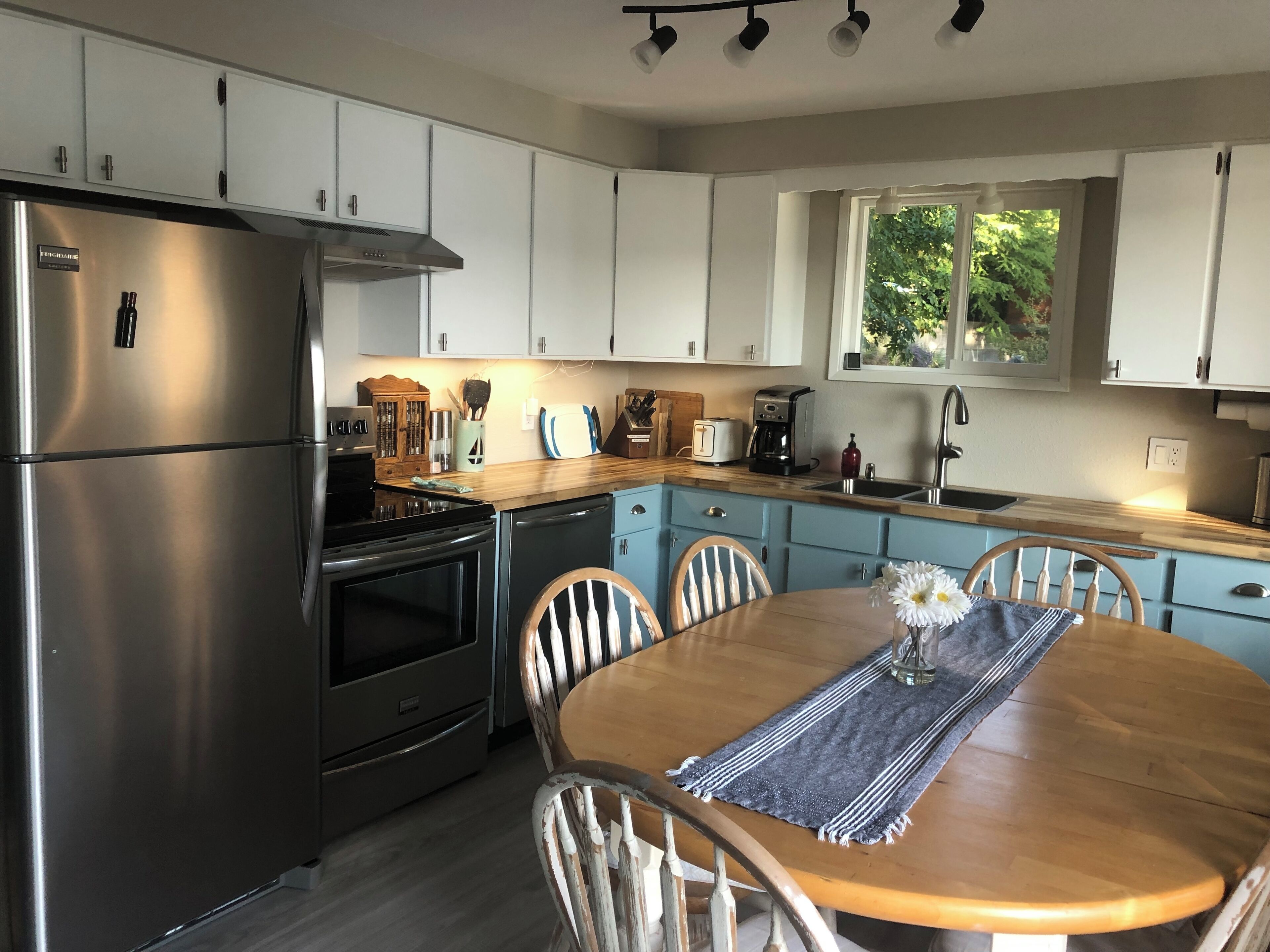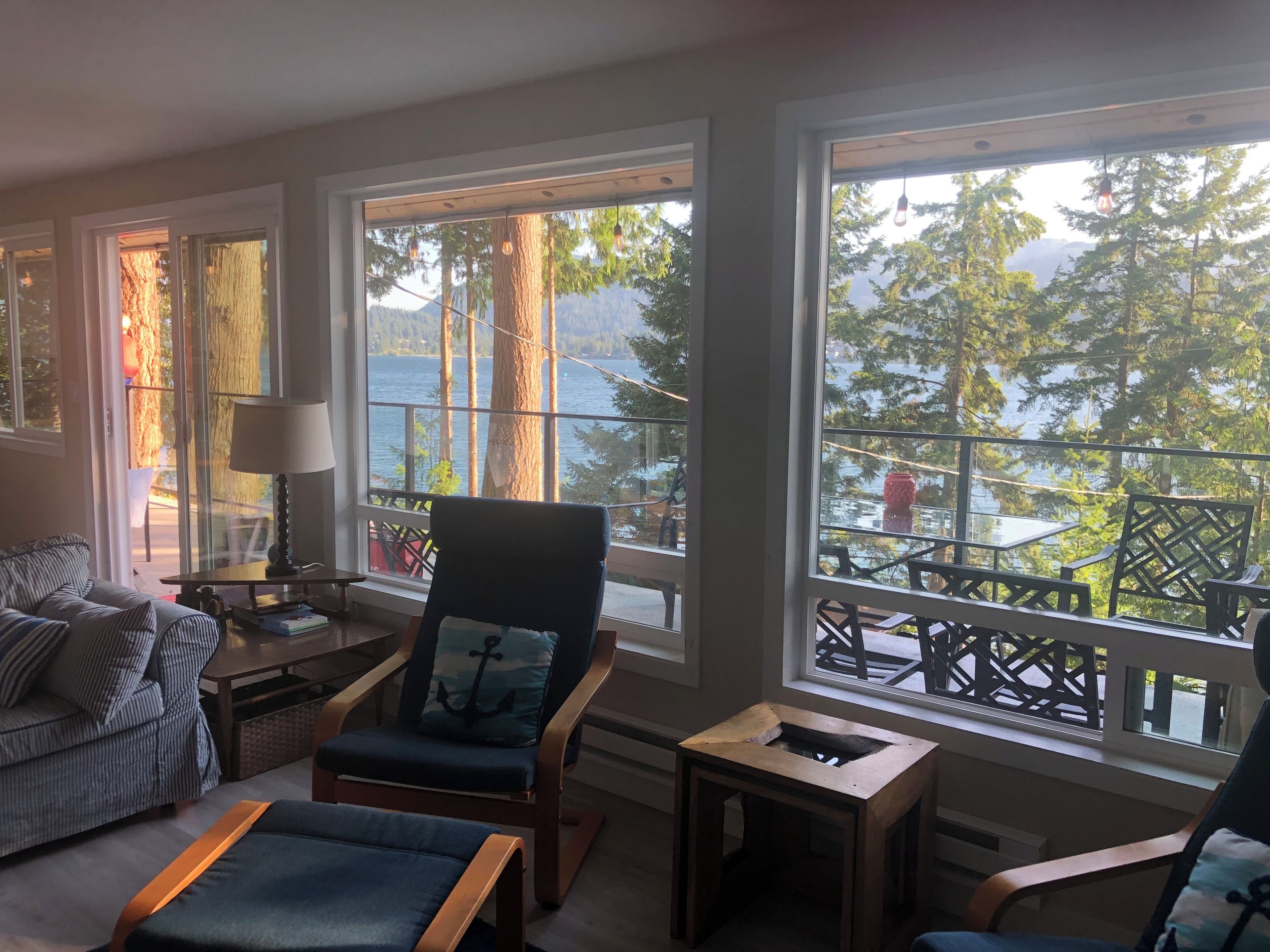 Lake Whatcom Summer home, 100' private beach, paddle boards and kayaks! Spacious lake front property on one of western Washington's most beautiful lakes. Situated on 1/2 acre of woodland with its own 100 ft private lake front, separated by Northshore Rd. Our cottage has all the amenities you could ask for to have the perfect time away from the busy lives we all lead. The set-up is adaptable for a family with children or couples who are looking for a break by the lake.There is generous living indoors and out, with inside dining for 8, and an additional 6-8 person dining table out on the deck overlooking the lake. There is plenty of dinnerware for both. The kitchen is fully equipped, with the addition of the ubiquitous barbecue grill outside, and if needed a propane patio heater. The lounge includes generous seating for watching movies on the wall mounted, flat panel TV. that has Xfinity WiFi stick and Netflix & Prime and many other streaming apps, or chose from our wide selection of DVD or VHS tapes! Or if you prefer, listen to music from MP3 docking station or Bluetooth enabled soundbar. Save the fridge for food, there is a separate wine fridge. Relax on either the large deck overlooking the lake or in the lounge on one of the comfortable sofas or chairs. The main floor also has the master bedroom (king-size bed), with the main bathroom; the remaining 3 bedrooms and 2nd full bathroom are on the lower level. There is a queen size bed, one twin over full bunk bed and two twin beds, with a second flat panel TV & Amazon Fire-stick and DVD/VCR in the larger twin to save arguing with the children!At the beach there are lawn chairs, picnic table and loungers at your disposal and another fridge in the beach hut for the perfect way to while away the hours lakeside. Make full use of the two adult, two children size kayaks, and two 10' paddle boards, or just relax and sunbathe to your heart's content. Large selection of life vests provided. There is a stone fire pit and we do our best to replenish the wood pile behind the beach hut, however, since there is no cover on the wood and this is the Pacific North West it is open to the elements so may be damp in the spring and fall. Use those scout skills to start your fire so you can finish off your perfect day making s'mores with your favourite tipple.If winter sports are more your bag then use the cabin as a base and drive the 60-75 minutes to Mount Baker, ski or ride all day then come back to dinner at the lake and sit around the fire at the lake re-enacting the day's adventures and near misses! Awake relaxed and ready for another day on the slopes.