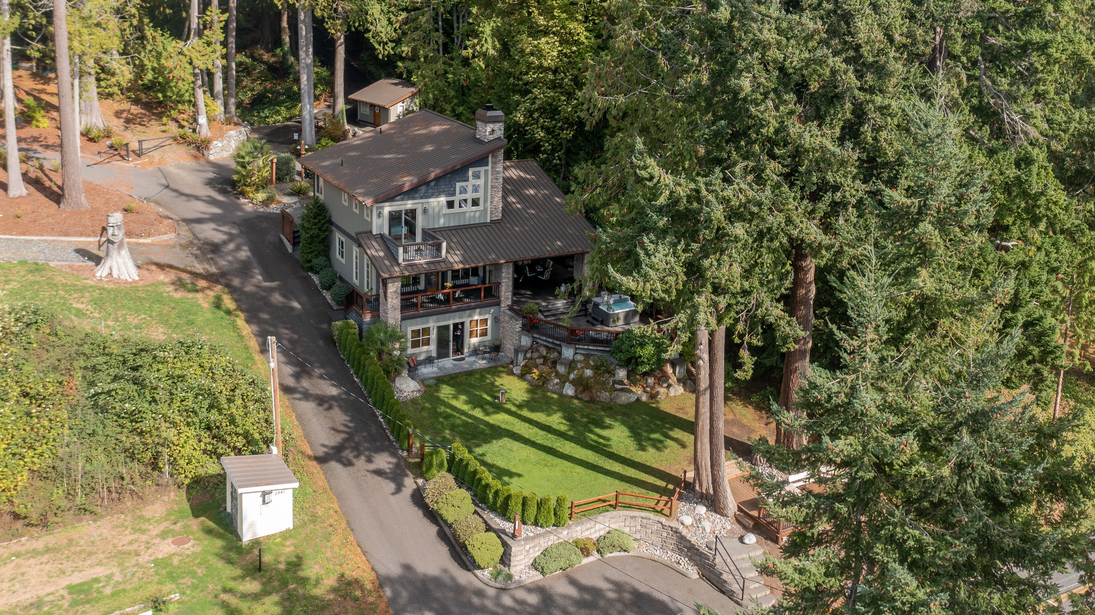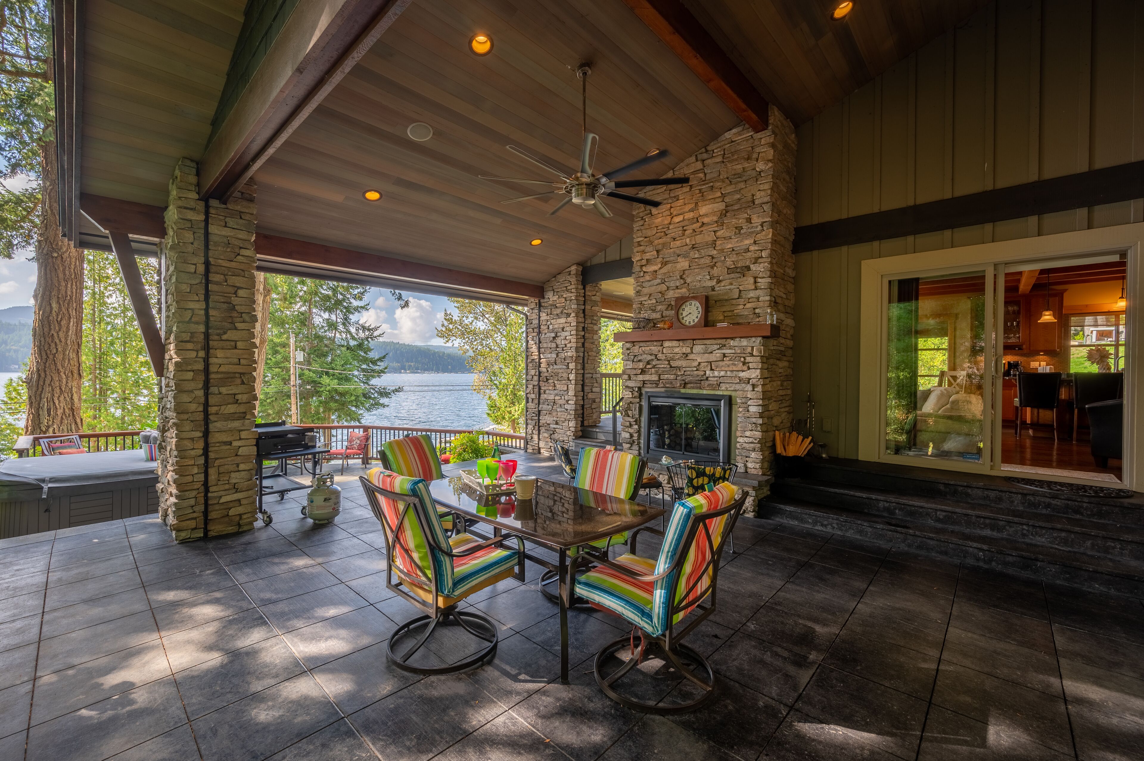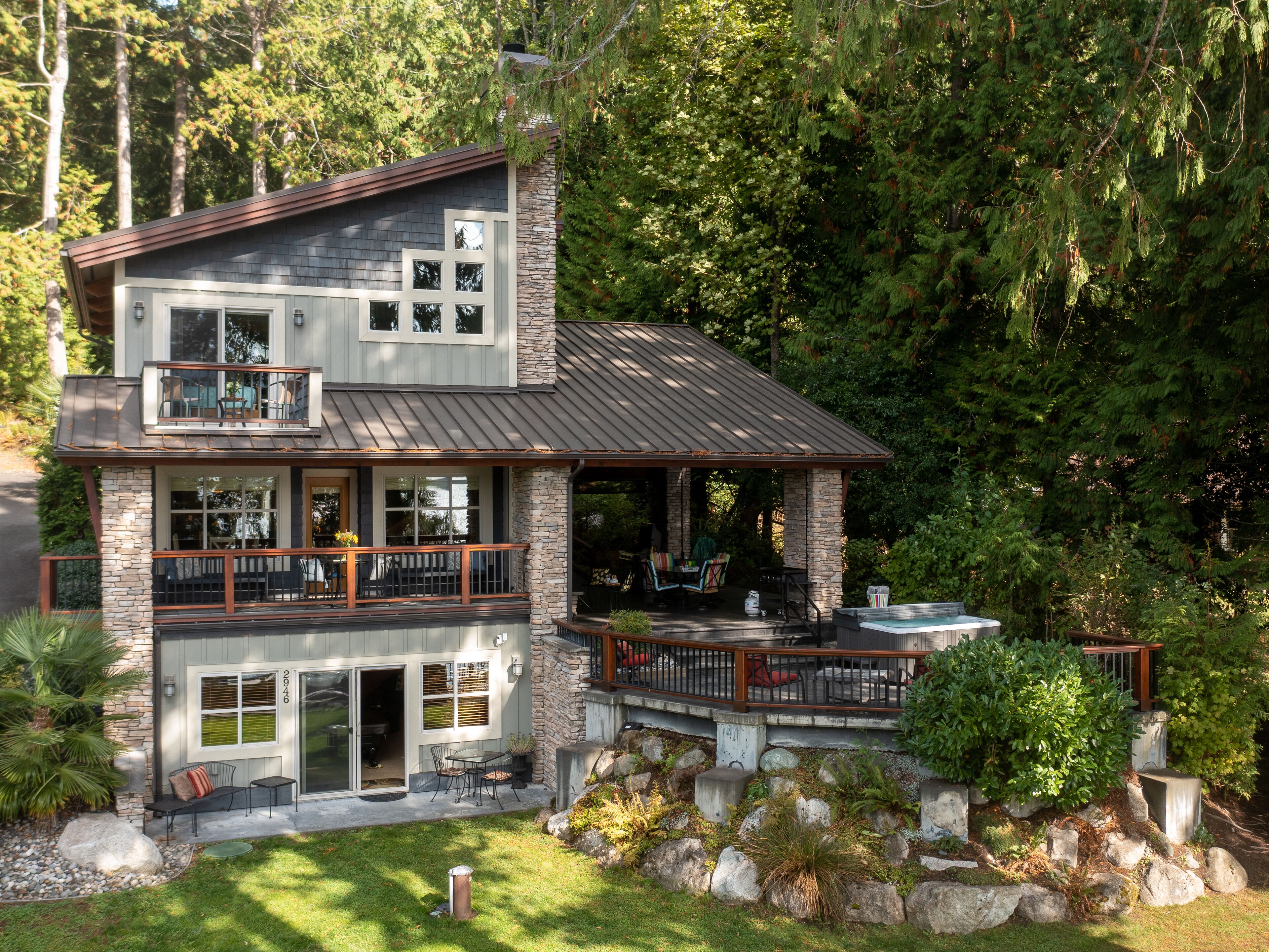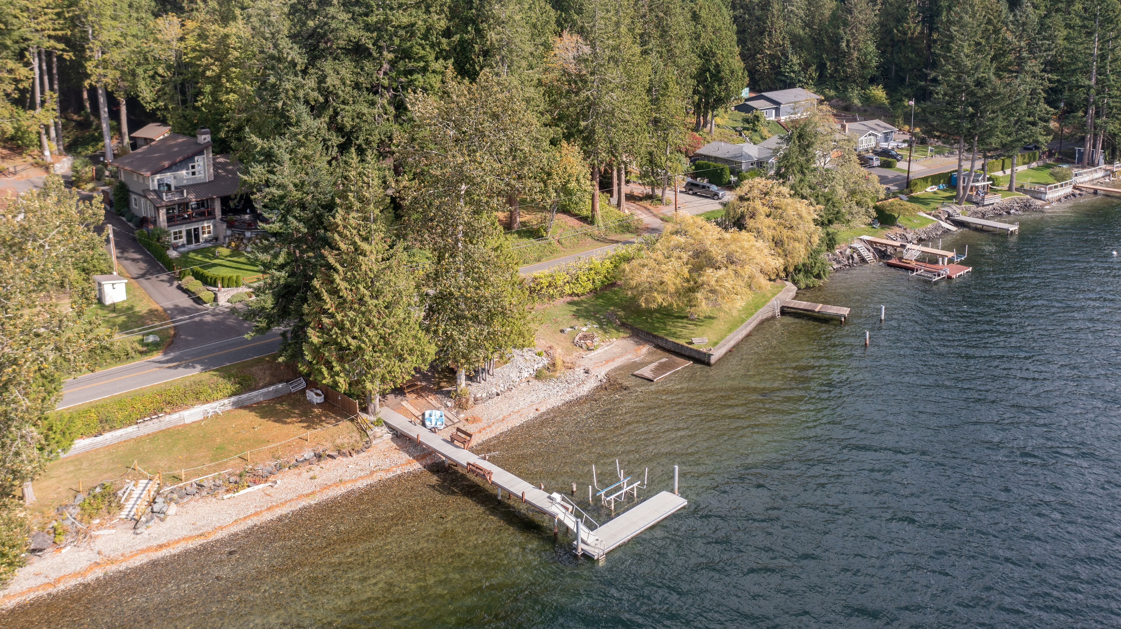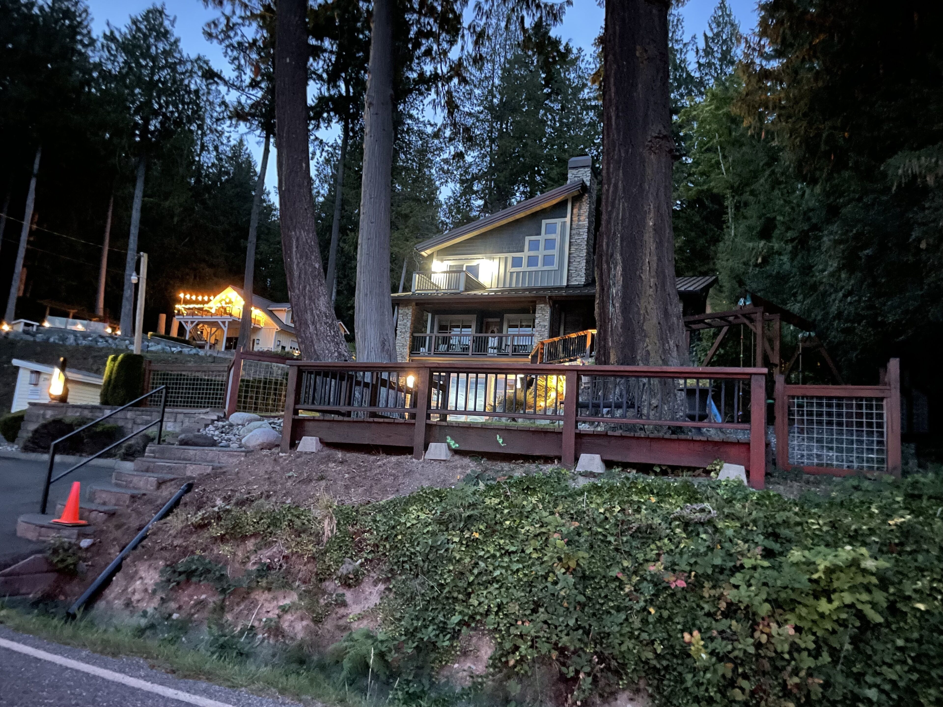Lake Whatcom Water Front/3 Acres/Kayak/Boards/Wood Fireplace Summary:-When thinking about a getaway, it's not just our great home/expansive covered door deck with wood fireplace/3 acres/lake. Bring your fishing rods (we have old ones), and fish for bass off the dock in the evening/bring or bikes or hiking shoes, one mile past the house is Lake Whatcom Park, with a 3 mile long plus back lake trail, or hike Chantrel Trail, up the side of mountain....- During Prime Summer Months: July 1 to September 1: 7 day stays and typically run Friday to Friday, unless we have fill in days, see calendar, or send message.- Pricing is based on 3-night stays, for 2-night stays add $200.00.Note: During high volume times, 3 nights only, no 2 night stays- Pricing is also based on maximum of 6 people. Add $50.00 per night per person. House fits 6 adults comfortably plus children, under 12 years.- Day time guests, typically add $25.00 extra ie: grandma and grandpa visiting for the day. - No Loud or Party Groups. Guest over 35 years. Require names and ages of guests, plus sometimes ID. Quiet time: 10:00 PM.- Pets: $50.00 per night each, restricted to main floor only. No pets in beds or on furniture. No large or vicious dogs.Lake Whatcom Waterfront - 3 Scenic Acres - Creek - Walking Trail2480 Sq. Ft. 3 Bedroom, Loft and Lower-Level Games Room Luxury CabinOver 200 Five Star Reviews - Ideal Family DestinationLarge/loud groups are not permitted. Quiet time: 10:00 PM.Rates change with season.Cross Road to Private Swim Beach. Safe Shallow Water. Dive off the Dock or fish for bass, remember your fishing license.2 Paddle Boards and 2 Kayaks Cabin:1) 2480 sq. ft. 'like new two level and bright walk out basement plan.2) Covered Entertainment Size deck: 25-foot x 13 Foot, wood fireplace, barbeque, roast marshmallows3) Lower-Level Expansive Open Patio with Hot Tub and gas fire table. (Fire table for summer months)2) Home is architecturally designed with fir beams, doors, casings, millwork, vaulted and double height ceilings, open staircase.3) Built with top-of-the-line construction and quality products including oak hardwood flooring and granite counters.4) Set up for families: baby gate, 2 play pens, 1 highchair, outdoor play center/swing set.Main Floor:1) Great room open to gourmet kitchen and lake views.2) Stainless appliances including electric flat top stove, convection microwave, fridge, plus 2nd wine/drink fridge3) Kitchen is fully stocked, table clothes, serving dishes, glass platters, punch bowl, pots, pans, frying pans, turkey pan and platter, automatic coffee pot, tea pots, toaster, outdoor gas barbeque.4) Laundry or Mud Room: sink, cabinets, washer/dryer, iron and board.5) #1 Bathroom: walk in shower, blow dryer. Note: 3 full baths in total, one of each floor.Upper Level:1) #1 bedroom: queen size bed, sundeck with best lake views in home2) #2 bedroom: queen size bed, walk in closet3) Cheater door to main 5-piece bath with tub shower and double shower heads, blow dryer4) Loft: queen mattress, lake views. Access by ladder off back bedroom. Ideal for mature kids and use at your own risk.Lower Level:1) Games and media room walk out to front patio, garden and lake views.2) Pool table, Bar and sink.4) #3 bedroom: 1 Double + 1 Twin Bed. 5) Sectional with pull out double bed, plus twin mattress for floor5) Bathroom: 3 piece includes walk in shower, blow dryer.Electronics:1) 2 flat screen tv’s with full movie channels: great room and lower games room.2) Wi-Fi: wireless and internet hook up in lower-level games room3) Great room stereo with speakers, plus outdoor speakers.4) Phones on main and lower level, free long-distance calls to Canada and USA.Heat, Air Conditioning and Hot Water on Demand:1) Heat pump, air conditioning and furnace.2) Propane fireplaces: main floor great room and games room for winter months Location and Activities:1) Sought after location on Lake Whatcom offering sunshine from dawn to dusk, including evening sunsets.2) Private beach, new dock and float, for boats to tie up. Protected area with shallow water between beach and dock for kids to play. Fishing poles at home for fishing off dock. Most catch bass.3) Quiet side of lake, ideal for water skiing, boarding or tubing in front of home.4) 2 double kayaks, 2 paddle boards. Beach is lit up at night.5) 3 acre parcel of land with nature walks, creek running through property. Evening lights to brighten up property.6) Plenty of parking, 3 spots behind home, 3 spots at street level, room for RV too.7) Beach is 25 feet front door. Cross Road. We like it with the kids, "The front yard is fenced with gates, so the kids can play in yard and on swing set, volleyball or more, or we all cross the road and go to beach together."8) No through street with Lake Whatcom Park, 1 mile south of house, 3-mile lake trail and waterfall, or hike up Chantrell Trail.9) Freeway: 14 minutes, quick and easy to I-5 Sunset or Lakeview Exits10) Shopping/Boat Launch/Corner Store: 8 minutes to the most northern tip of lake: Britton Road, corner store and day park to launch boat, then another 7 minutes to Bellingham Shopping.11) Fork Restaurant: 1 mile north of house. Fine dining, people from Vancouver and US take the time to enjoy the lake drive to this restaurant at Y Road. Great takeout pizza12) Mt Baker: 60 minutes to Mt. Baker with quick easy access to Mt. Baker Hwy. Families like to book to get 1 day of skiing in, then go shopping or visit with family.13) Western Washington University: 25 minutes. We get a lot of parents booking at graduation parties and holiday weekends for their families.14) Skagit Casino: 30 minutes for an evening of fun..15) Burlington Outlet Centers: 40 minutes.Keywords: lake front, lake view, south/west sun, dock, luxury home, luxury cabin, boating, sailing, fishing, Mt. baker, RV Parking, Private Boat Dock, fine dining, wedding, banquet, casinos, biking, walks, lake trails, water falls, paddle boat, kayaks, paddle board