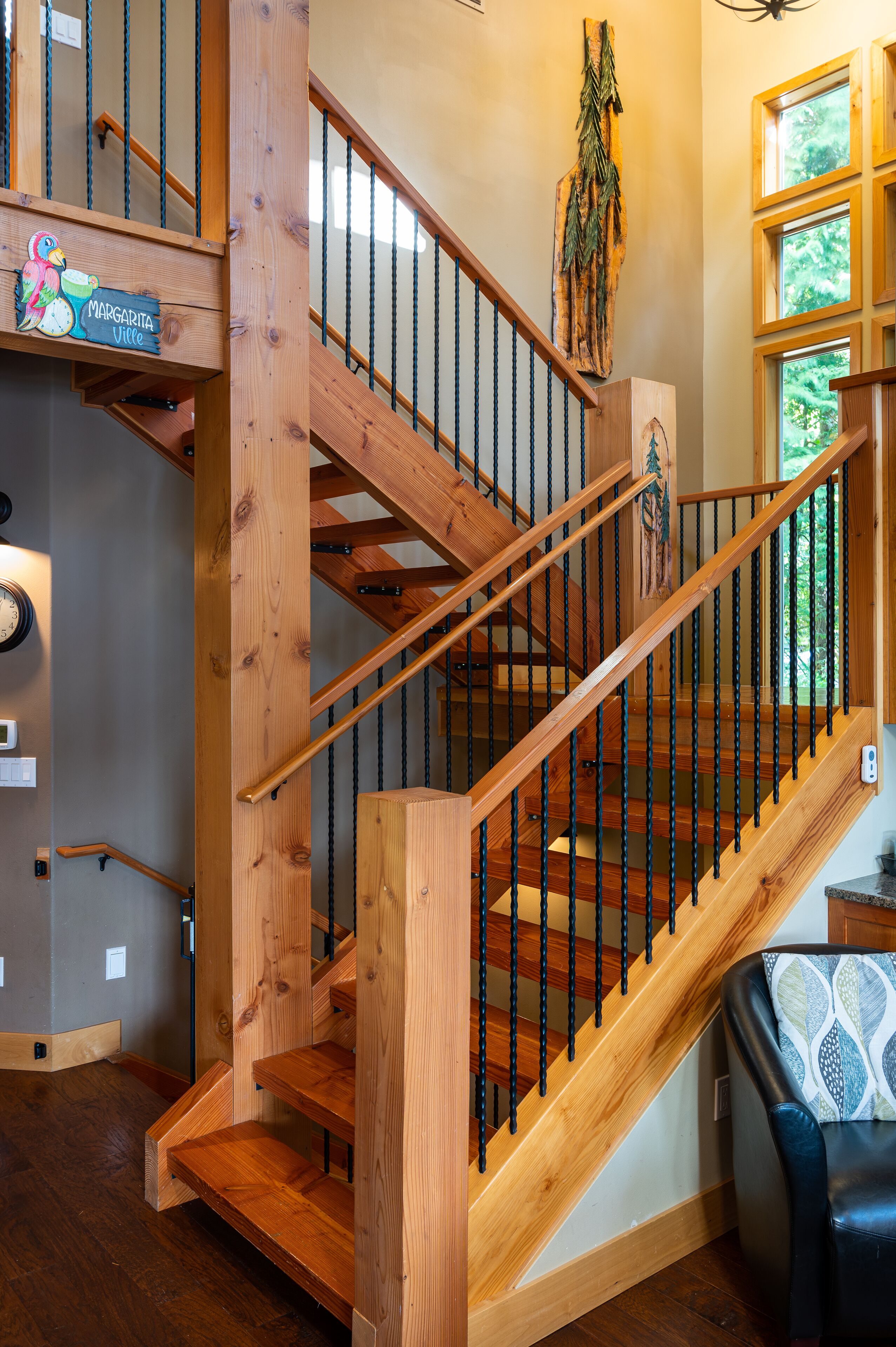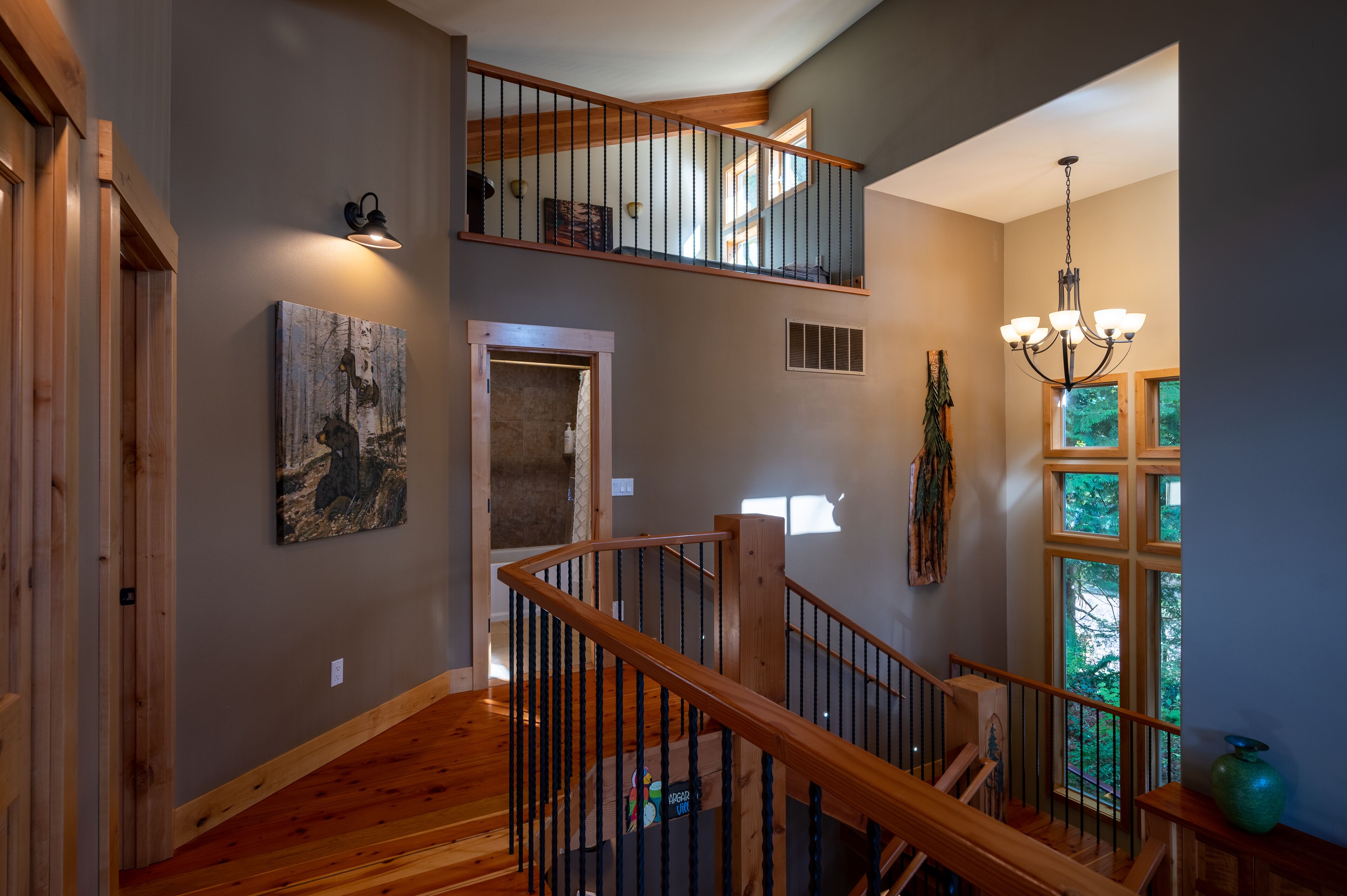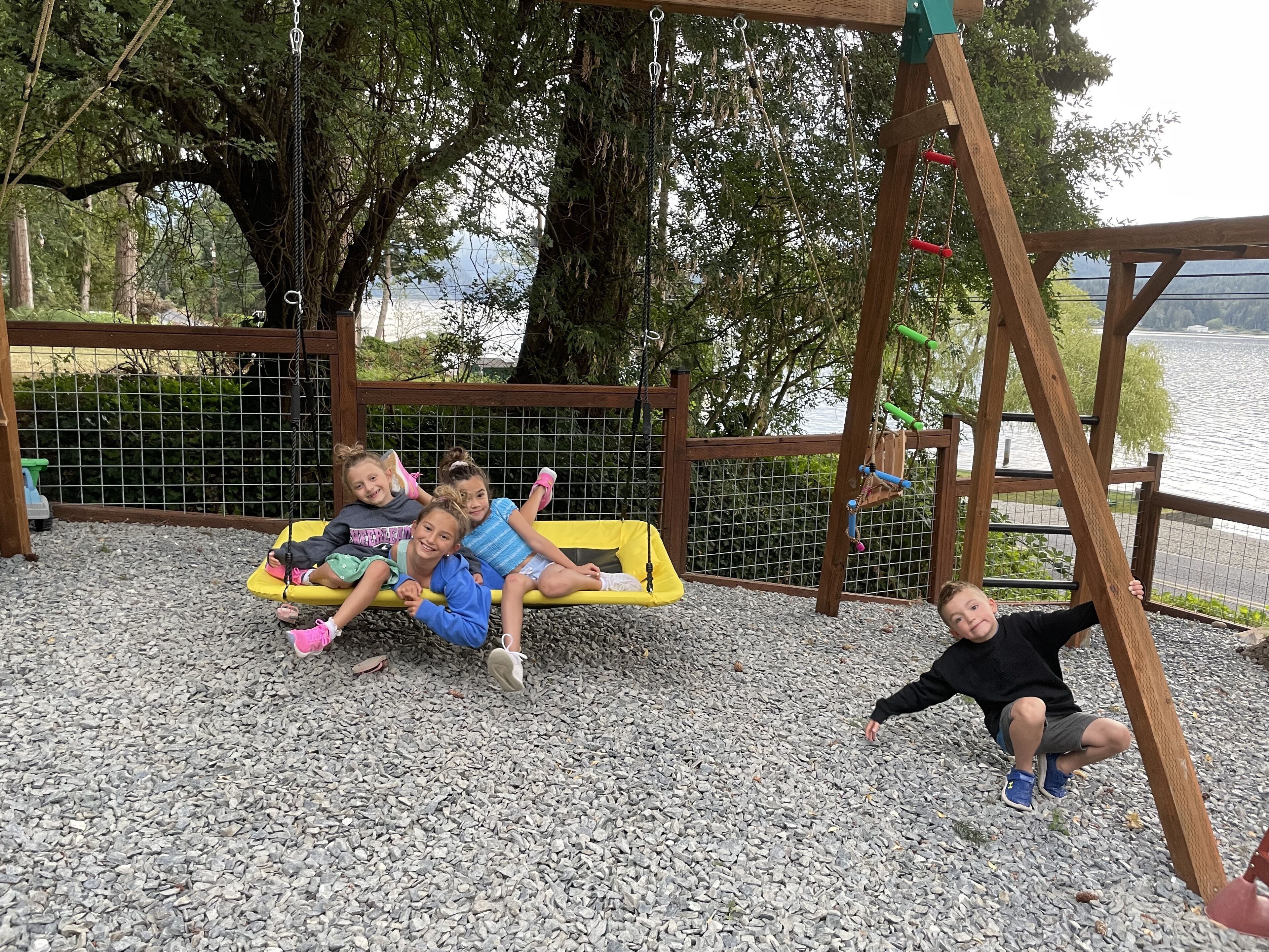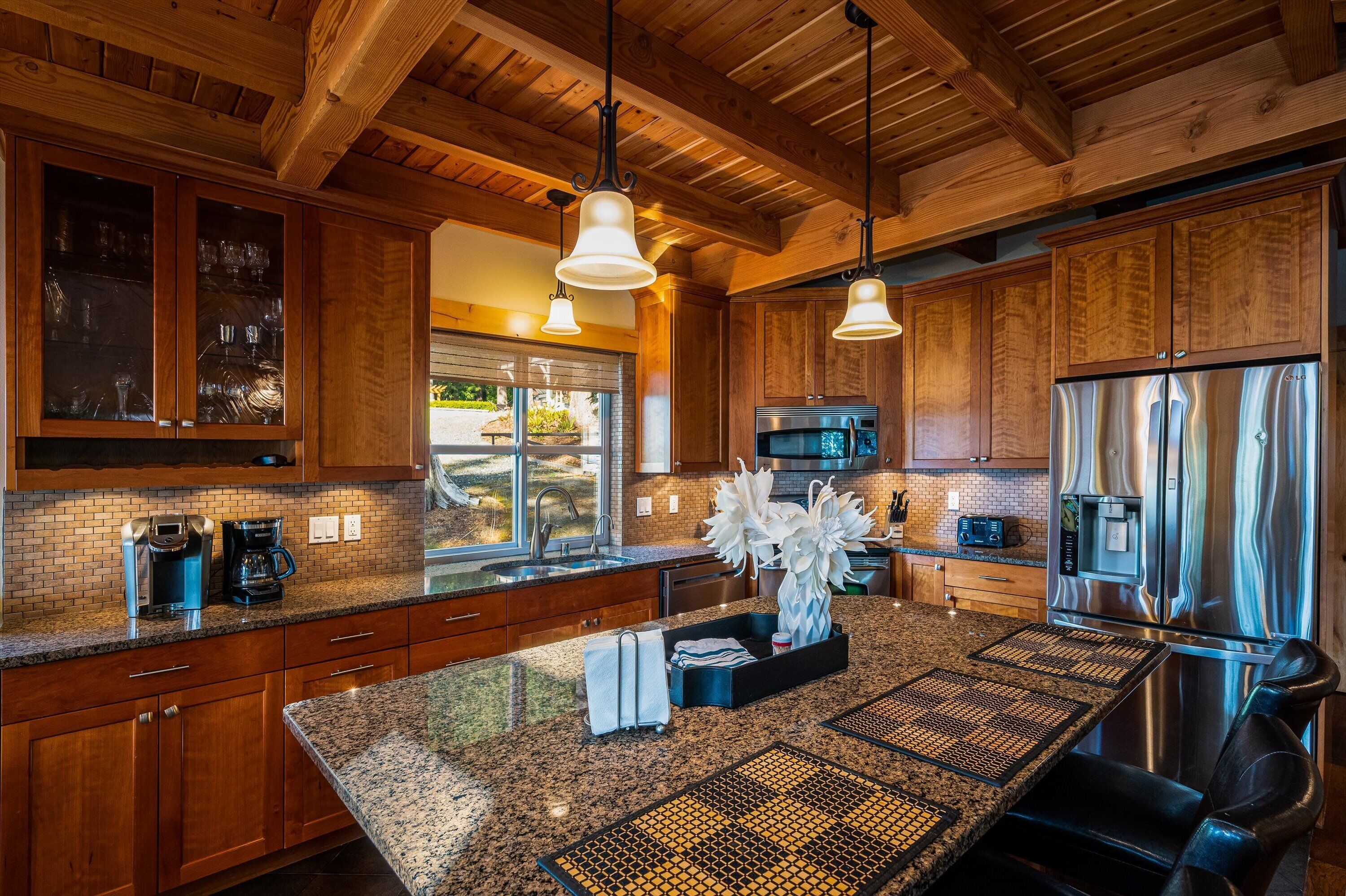 Lake Whatcom Water Front/3 Acres/Kayak/Boards/Wood Fireplace Summary:-When thinking about a getaway, it's not just our great home/expansive covered door deck with wood fireplace/3 acres/lake. Bring your fishing rods (we have old ones), and fish for bass off the dock in the evening/bring or bikes or hiking shoes, one mile past the house is Lake Whatcom Park, with a 3 mile long plus back lake trail, or hike Chantrel Trail, up the side of mountain....- During Prime Summer Months: July 1 to September 1: 7 day stays and typically run Friday to Friday, unless we have fill in days, see calendar, or send message.- Pricing is based on 3-night stays, for 2-night stays add $200.00.Note: During high volume times, 3 nights only, no 2 night stays- Pricing is also based on maximum of 6 people. Add $50.00 per night per person. House fits 6 adults comfortably plus children, under 12 years.- Day time guests, typically add $25.00 extra ie: grandma and grandpa visiting for the day. - No Loud or Party Groups. Guest over 35 years. Require names and ages of guests, plus sometimes ID. Quiet time: 10:00 PM.- Pets: $50.00 per night each, restricted to main floor only. No pets in beds or on furniture. No large or vicious dogs.Lake Whatcom Waterfront - 3 Scenic Acres - Creek - Walking Trail2480 Sq. Ft. 3 Bedroom, Loft and Lower-Level Games Room Luxury CabinOver 200 Five Star Reviews - Ideal Family DestinationLarge/loud groups are not permitted. Quiet time: 10:00 PM.Rates change with season.Cross Road to Private Swim Beach. Safe Shallow Water. Dive off the Dock or fish for bass, remember your fishing license.2 Paddle Boards and 2 Kayaks Cabin:1) 2480 sq. ft. 'like new two level and bright walk out basement plan.2) Covered Entertainment Size deck: 25-foot x 13 Foot, wood fireplace, barbeque, roast marshmallows3) Lower-Level Expansive Open Patio with Hot Tub and gas fire table. (Fire table for summer months)2) Home is architecturally designed with fir beams, doors, casings, millwork, vaulted and double height ceilings, open staircase.3) Built with top-of-the-line construction and quality products including oak hardwood flooring and granite counters.4) Set up for families: baby gate, 2 play pens, 1 highchair, outdoor play center/swing set.Main Floor:1) Great room open to gourmet kitchen and lake views.2) Stainless appliances including electric flat top stove, convection microwave, fridge, plus 2nd wine/drink fridge3) Kitchen is fully stocked, table clothes, serving dishes, glass platters, punch bowl, pots, pans, frying pans, turkey pan and platter, automatic coffee pot, tea pots, toaster, outdoor gas barbeque.4) Laundry or Mud Room: sink, cabinets, washer/dryer, iron and board.5) #1 Bathroom: walk in shower, blow dryer. Note: 3 full baths in total, one of each floor.Upper Level:1) #1 bedroom: queen size bed, sundeck with best lake views in home2) #2 bedroom: queen size bed, walk in closet3) Cheater door to main 5-piece bath with tub shower and double shower heads, blow dryer4) Loft: queen mattress, lake views. Access by ladder off back bedroom. Ideal for mature kids and use at your own risk.Lower Level:1) Games and media room walk out to front patio, garden and lake views.2) Pool table, Bar and sink.4) #3 bedroom: 1 Double + 1 Twin Bed. 5) Sectional with pull out double bed, plus twin mattress for floor5) Bathroom: 3 piece includes walk in shower, blow dryer.Electronics:1) 2 flat screen tv’s with full movie channels: great room and lower games room.2) Wi-Fi: wireless and internet hook up in lower-level games room3) Great room stereo with speakers, plus outdoor speakers.4) Phones on main and lower level, free long-distance calls to Canada and USA.Heat, Air Conditioning and Hot Water on Demand:1) Heat pump, air conditioning and furnace.2) Propane fireplaces: main floor great room and games room for winter months Location and Activities:1) Sought after location on Lake Whatcom offering sunshine from dawn to dusk, including evening sunsets.2) Private beach, new dock and float, for boats to tie up. Protected area with shallow water between beach and dock for kids to play. Fishing poles at home for fishing off dock. Most catch bass.3) Quiet side of lake, ideal for water skiing, boarding or tubing in front of home.4) 2 double kayaks, 2 paddle boards. Beach is lit up at night.5) 3 acre parcel of land with nature walks, creek running through property. Evening lights to brighten up property.6) Plenty of parking, 3 spots behind home, 3 spots at street level, room for RV too.7) Beach is 25 feet front door. Cross Road. We like it with the kids, "The front yard is fenced with gates, so the kids can play in yard and on swing set, volleyball or more, or we all cross the road and go to beach together."8) No through street with Lake Whatcom Park, 1 mile south of house, 3-mile lake trail and waterfall, or hike up Chantrell Trail.9) Freeway: 14 minutes, quick and easy to I-5 Sunset or Lakeview Exits10) Shopping/Boat Launch/Corner Store: 8 minutes to the most northern tip of lake: Britton Road, corner store and day park to launch boat, then another 7 minutes to Bellingham Shopping.11) Fork Restaurant: 1 mile north of house. Fine dining, people from Vancouver and US take the time to enjoy the lake drive to this restaurant at Y Road. Great takeout pizza12) Mt Baker: 60 minutes to Mt. Baker with quick easy access to Mt. Baker Hwy. Families like to book to get 1 day of skiing in, then go shopping or visit with family.13) Western Washington University: 25 minutes. We get a lot of parents booking at graduation parties and holiday weekends for their families.14) Skagit Casino: 30 minutes for an evening of fun..15) Burlington Outlet Centers: 40 minutes.Keywords: lake front, lake view, south/west sun, dock, luxury home, luxury cabin, boating, sailing, fishing, Mt. baker, RV Parking, Private Boat Dock, fine dining, wedding, banquet, casinos, biking, walks, lake trails, water falls, paddle boat, kayaks, paddle board