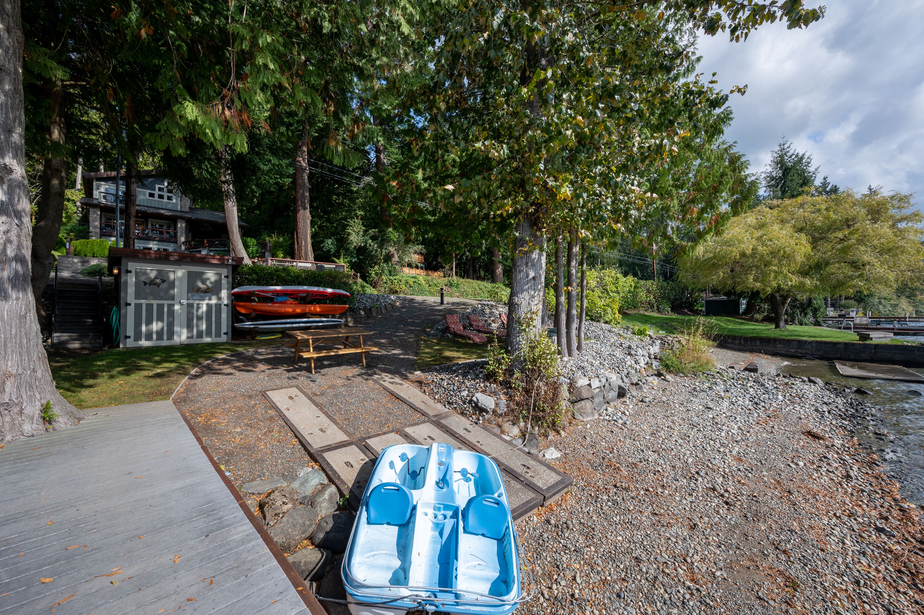 Lake Whatcom Water Front/3 Acres/Kayak/Boards/Wood Fireplace Summary:-When thinking about a getaway, it's not just our great home/expansive covered door deck with wood fireplace/3 acres/lake. Bring your fishing rods (we have old ones), and fish for bass off the dock in the evening/bring or bikes or hiking shoes, one mile past the house is Lake Whatcom Park, with a 3 mile long plus back lake trail,...