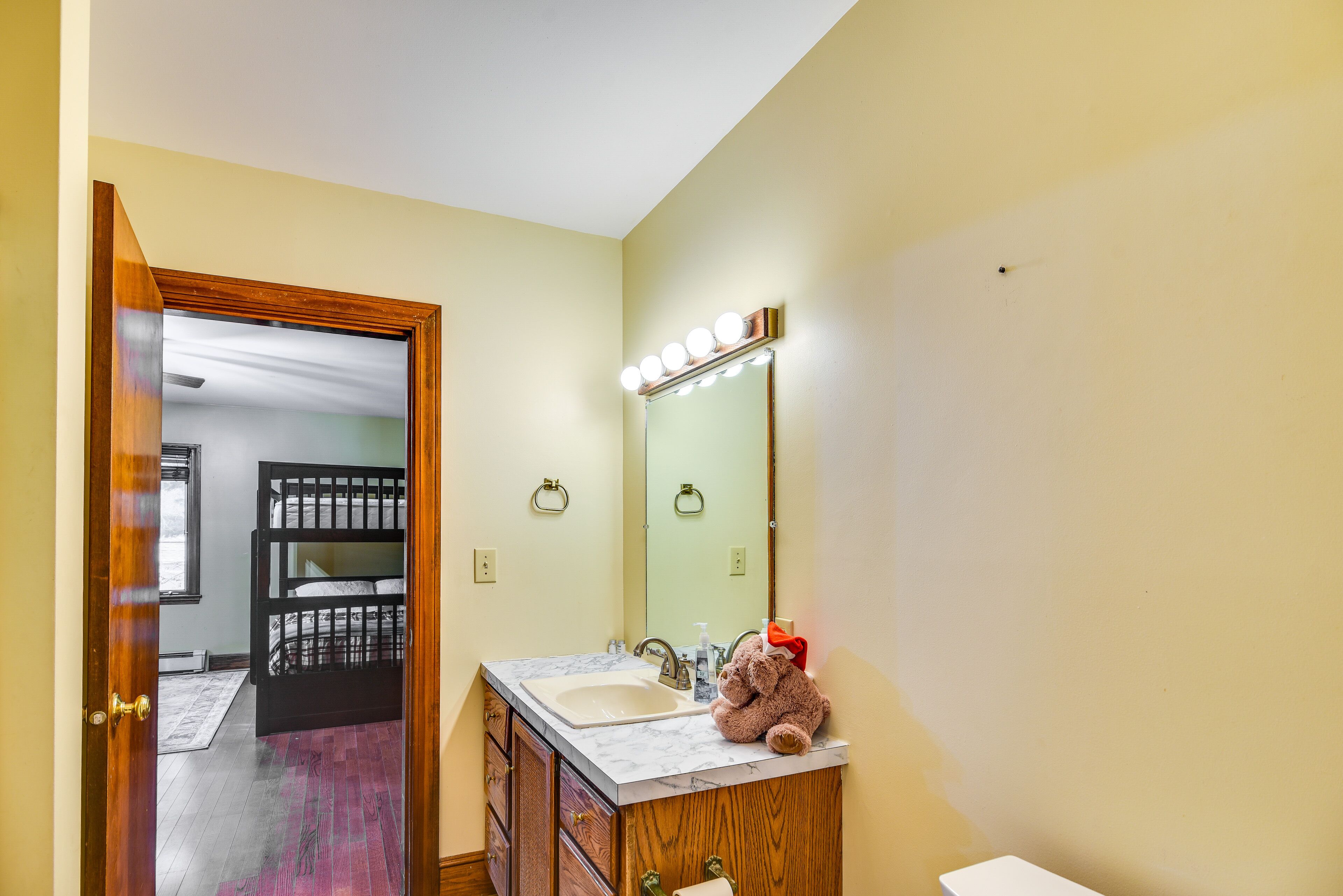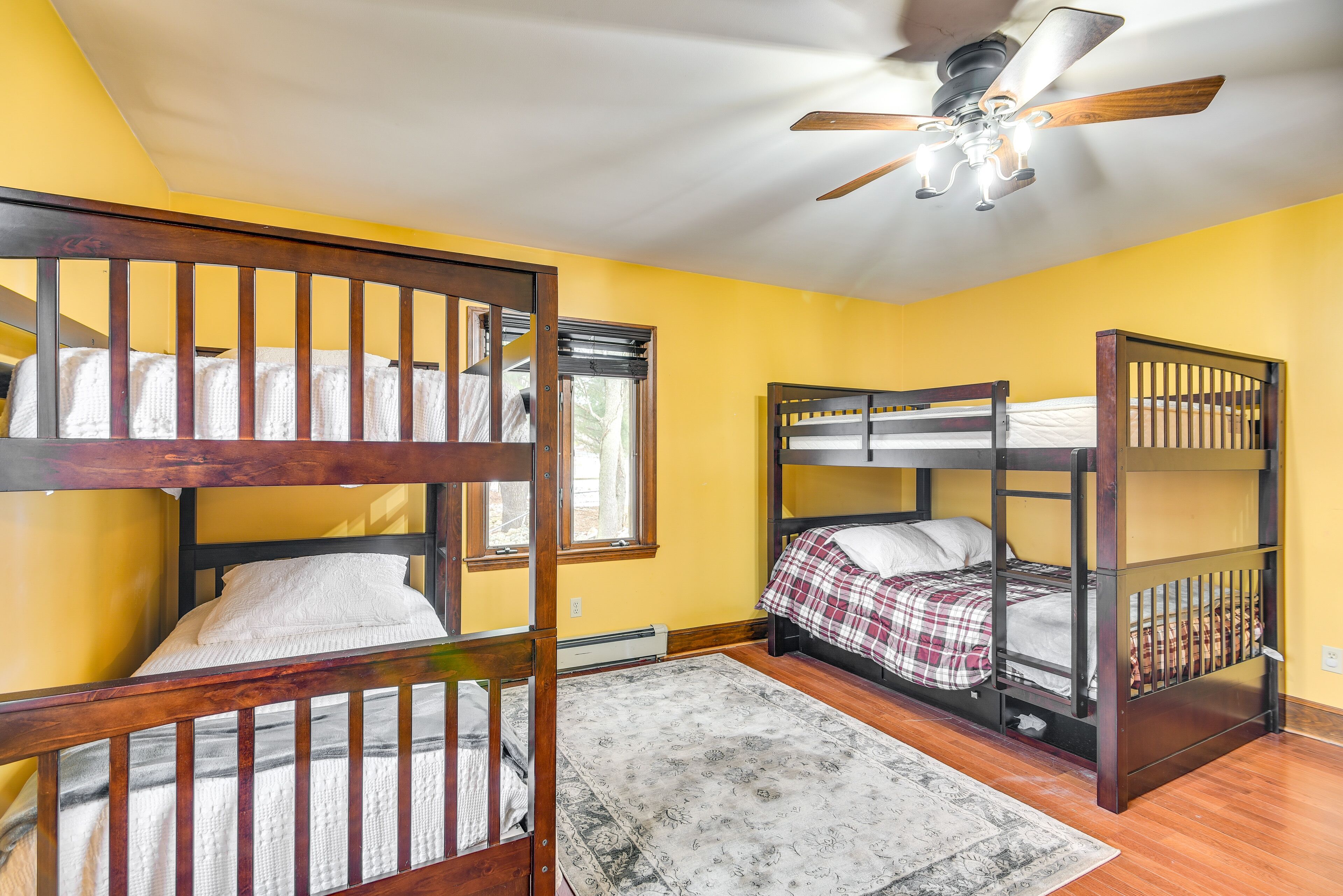 Bellingham Retreat w/ Fire Pit + Lake Access! Escape to the charming town of Bellingham and make unforgettable memories at this spacious 4-bedroom, 2-bath vacation rental. This apartment unit offers unbeatable lake views and canoeing just steps away, allowing you to have an amazing lakeside trip. Relax on Sweatt Beach, get some retail therapy at Crossroads Shopping Center, or venture out to Boston for a day of quintessential New England fun. Then, head inside to watch a movie on the Smart TV and unwind by the cozy fireplace.-- THE PROPERTY --MassTaxConnect ID No. C0392730250 | Sunroom | Fireplace | 2,500 Sq FtBedroom 1: King Bed | Bedroom 2: Queen Bed | Bedroom 3: Queen Bed | Bedroom 4: Full Bunk Bed, Twin Bunk Bed | Living Room: Queen Sleeper Sofa | Additional Sleeping: Crib, 2 Twin Rollaway BedsOUTDOOR LIVING: Lakefront, lake view + access, fire pit, canoes, shared yard, patio furniture, nearby playgroundINDOOR LIVING: Smart TV, board games, books, fireplace, dining tables, bathtub/showerKITCHEN: Keurig coffee maker, dishwasher, microwave, stove/oven, refrigerator, toaster, cooking basicsGENERAL: Linens, towels, complimentary toiletries, keyless entry, free WiFi, central heating, central air conditioningACCESSIBILITY: Single-story apartment, upstairs unit, 3 steps required for entryPARKING: Driveway (6 vehicles), free street parking (first-come, first-served), RV/trailer parkingADDT’L ACCOMMODATIONS: An additional property is available downstairs with a separate nightly rate. If you would like to reserve both rentals, please inquire for more information prior to booking-- THE LOCATION --OUTDOOR FUN: Wadsworth Farm (4 miles), Sweatt Beach (8 miles), Frank Moody State Beach (15 miles), Waterplace Park (19 miles), India Point Park (21 miles), Roger Williams Park Zoo (23 miles)SHOPPING: Olde Colonial Place (1 mile), Crossroads Shopping Center (3 miles), Charles River Center (4 miles), The Walpole Mall (24 miles), Brockton East Shopping Plaza (41 miles)DAY TRIPS: Providence (20 miles), Pawtucket (26 miles), East Greenwich (36 miles), Boston (46 miles), Narragansett (48 miles)AIRPORT: Boston Logan International Airport (48 miles)-- REST EASY WITH US --Evolve makes it easy to find and book properties you’ll never want to leave. You can relax knowing that our properties will always be ready for you and that we’ll answer the phone 24/7. Even better, if anything is off about your stay, we’ll make it right. You can count on our homes and our people to make you feel welcome — because we know what vacation means to you.-- POLICIES --- No smoking- No pets allowed- No events, parties, or large gatherings- Must be at least 25 years old to book- Additional fees and taxes may apply- Photo ID may be required upon check-in- NOTE: This single-story apartment is an upstairs unit of a home and requires 3 steps for entry- NOTE: There is another bookable vacation rental on-site that shares the yard; other travelers may be present during your stay- NOTE: This property sleeps 14 guests in 7 beds and a sleeper sofa, with room for 16 total by using the 2 twin rollaway beds