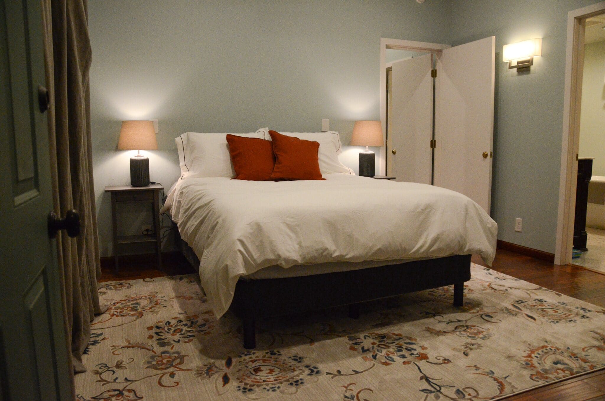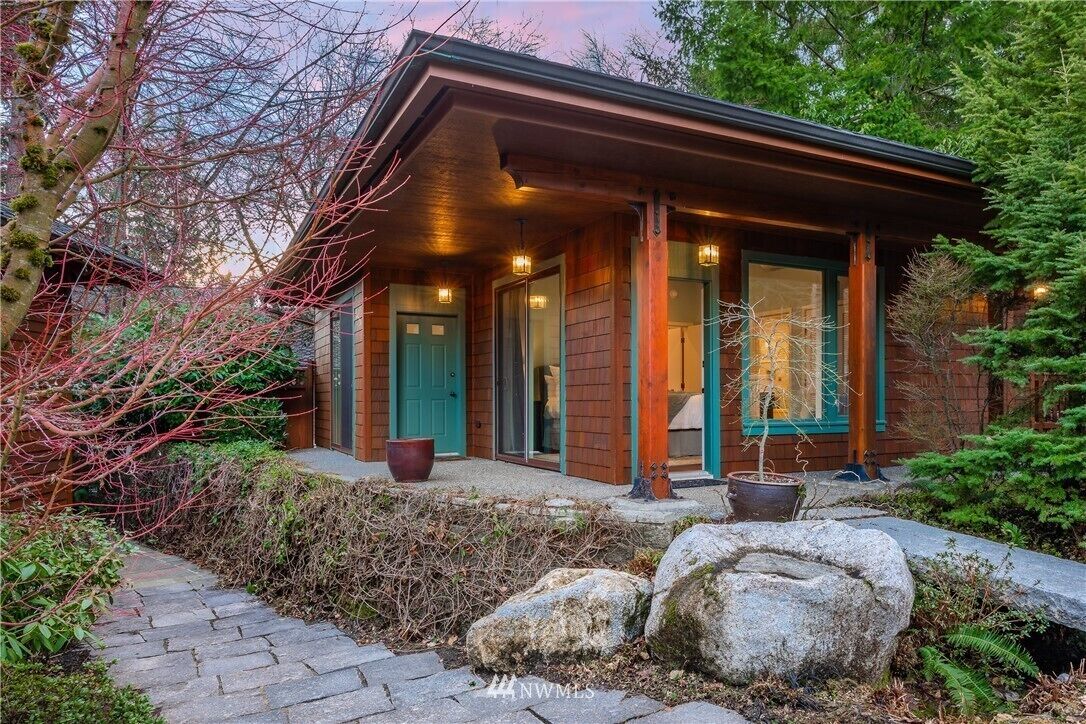 Garden Guesthouse at Lakefront Manor Private and quiet, set back from the main road, this property is on the sunny north shore of Lake Whatcom. A gated path takes you through the garden to the large lakeside lawn. Barbeque, relax, watch the water skiers and enjoy the private dock or shoreline. This unit has free parking, a private entrance, miniature fridge, coffee pods and maker and access to enjoy the grounds of the Manor home on site. 5min to Barkley Village and 15min to Downtown Bellingham.Two bedrooms, each with a queen sized bed, side tables and a comfortable lounge chair, separated by hotel suite style double doors. The rooms share a large bathroom. Each room has its own exterior entrance, door to the shared bathroom and small closet with hangers.As noted in the description and amenities list there is not a full kitchen in this unit, there is a mini fridge, microwave and pod style coffee maker.Hot Tub AND Pool on property, available Memorial Day weekend through Labor Day weekend, open to Bungalow guests but shared with guests staying in the Manor!