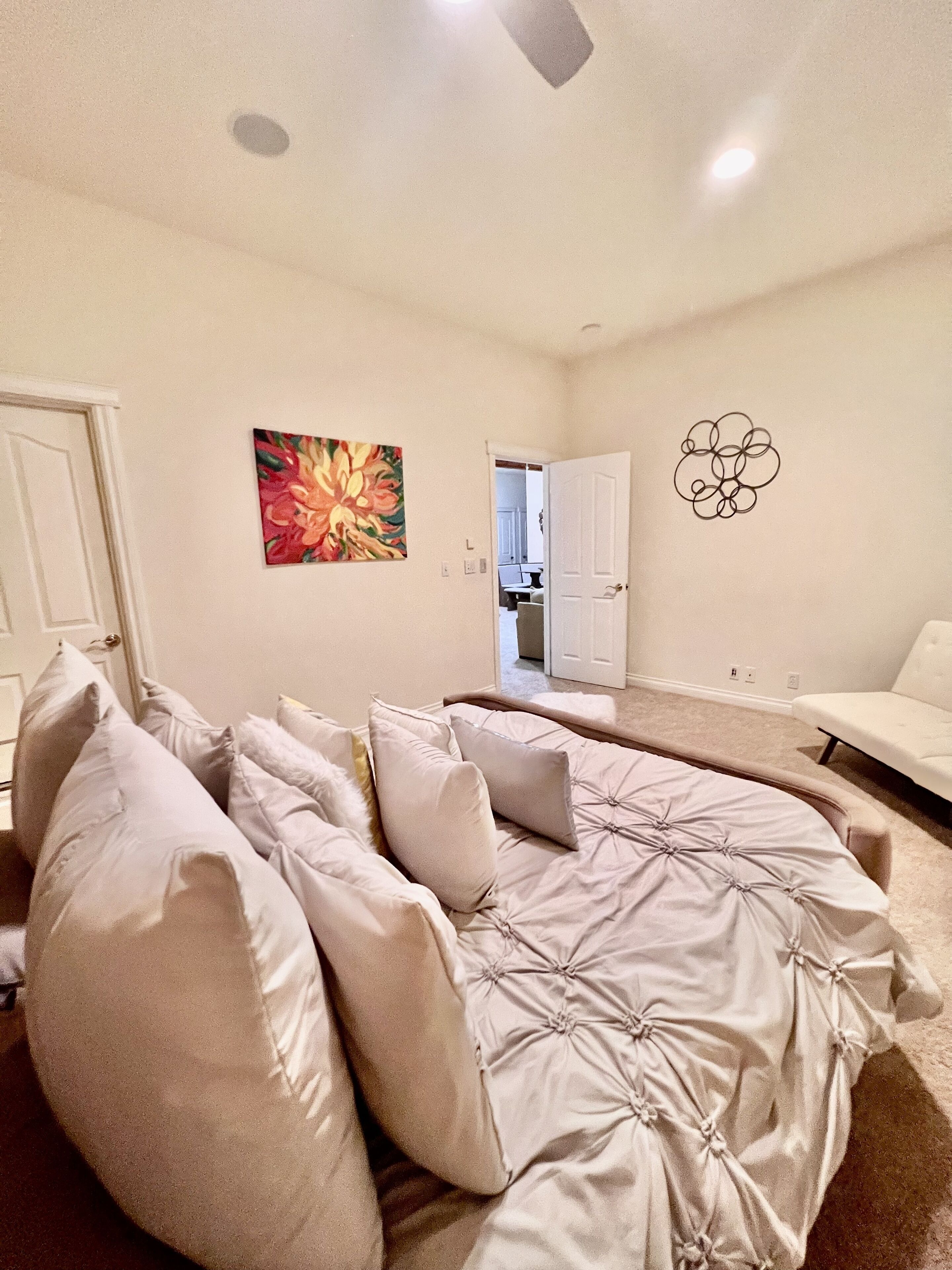 The most desirable rental home, and view inside the Sudden Valley community. This VRBO rental property is 3200 square feet and is the first level of a 5000 square foot multi-million-dollar home directly on the Sudden Valley golf course with the most beautiful views of Lake Whatcom and foothills, this property is currently the largest and most desirable home inside the Sudden Valley community. This beautifully decorated rental property is completely private with absolutely NO shared spaces, with private entrance and parking. The rental space has very high,13-foot ceilings, two large bedrooms with walk in closets, two full bathrooms, fitness room, private movie theater with surround sound and reclining lounge chairs, SONOs sound system throughout the rental property, controlled by mounted IPAD or your smartphone. This property offers the BEST view of Lake Whatcom and the Sudden Valley golf course from every room in the property. This rental space has a kitchen area with everything a family needs to prepare meals, including a two burning electric stove top, instant pot, microwave oven, hot plate, George Forman indoor/outdoor grill, outdoor BBQ, two large toaster ovens, three coffee makers, slow cooker/electric pot and a toaster. There is one medium size refrigerator, one large mini refrigerator inside the exercise room and a mini freezer inside the storage space, along with a washer and dryer. The rental property is located on Lake Whatcom offering 12 miles of clean, glacier fed water and is perfect for paddle boarding, kayaking, canoeing, jet skiing, sailing, boating and fishing. The rental property is also perfect for that winter ski getaway, with just a short drive to Mt. Baker. The rental property also overlooks the first green of one of the most beautiful and scenic golf courses in the state of Washington, the Sudden Valley Golf Course. The front nine of Sudden Valley is relatively open and flat and borders the shores of Lake Whatcom. Fairway landing areas are relatively generous, and the greens are large. However, the back nine follows a ridge uphill with narrow evergreen-fringed fairways and smaller greens that have more character. (Please See Video Link) The Sudden Valley community offers activities for all ages, amenities included parks, playgrounds, tennis courts, basketball courts, pickle ball courts, fitness center, two pools, four beaches, two off leash dog park and miles of hiking and biking trails. The Community Center recreation area includes a state-of-the-art fitness center and outdoor Olympic size swimming pool with lifeguard for all ages and an adult pool with sauna for adults only. Sudden Valley is one of the most beautiful places to stay, live and vacation in the Pacific Northwest and this rental property has everything your family needs to have the best vacation ever.