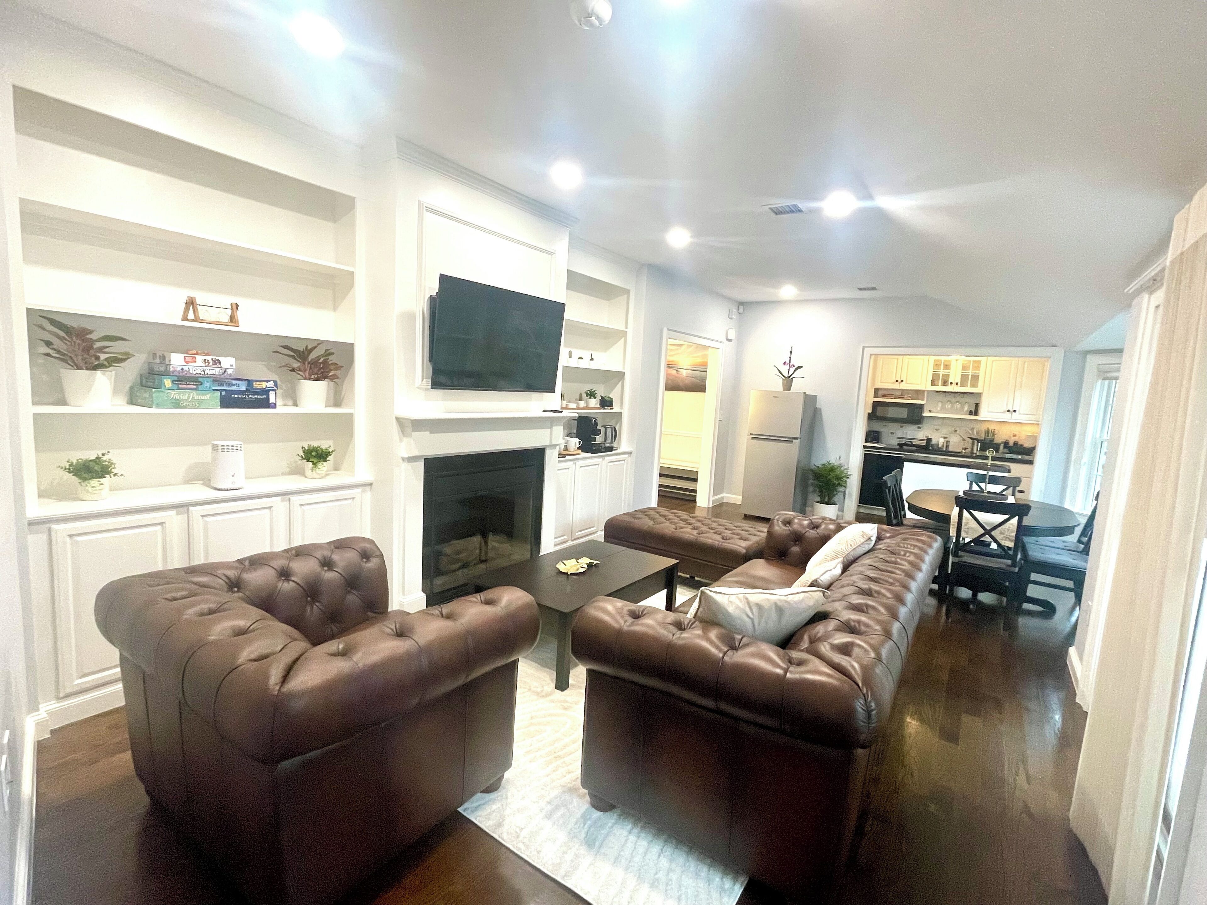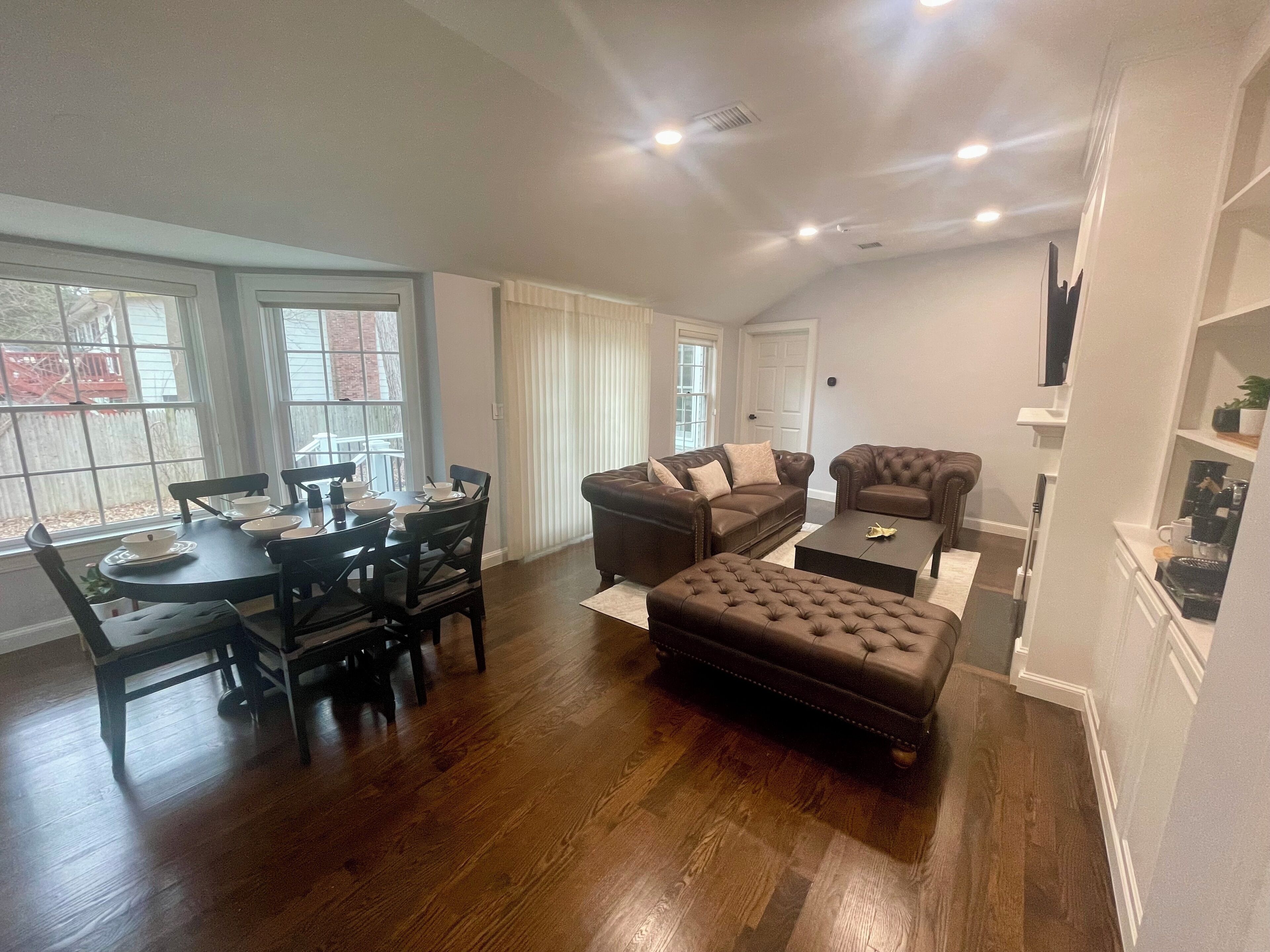 Elegant Guest Suite Wellesley Enjoy a stylish experience at this centrally-located guest suite (attached to owners's main house), 5 min drive to Babson & Wellesley College. 15 mins walk to Linden Square /Whole Foods. Private smart access. Huge Backyard/Garden. Patio, fast WiFi, 1 covered garage, central AC /Heating with separate zone. 1 BR with Queen size bed, kingsize sofa bed and working station plus walk-in closet with washer & dryer. 2 full Bathrooms. Living room, smart TV, dinning table and full functioning kitchenette.