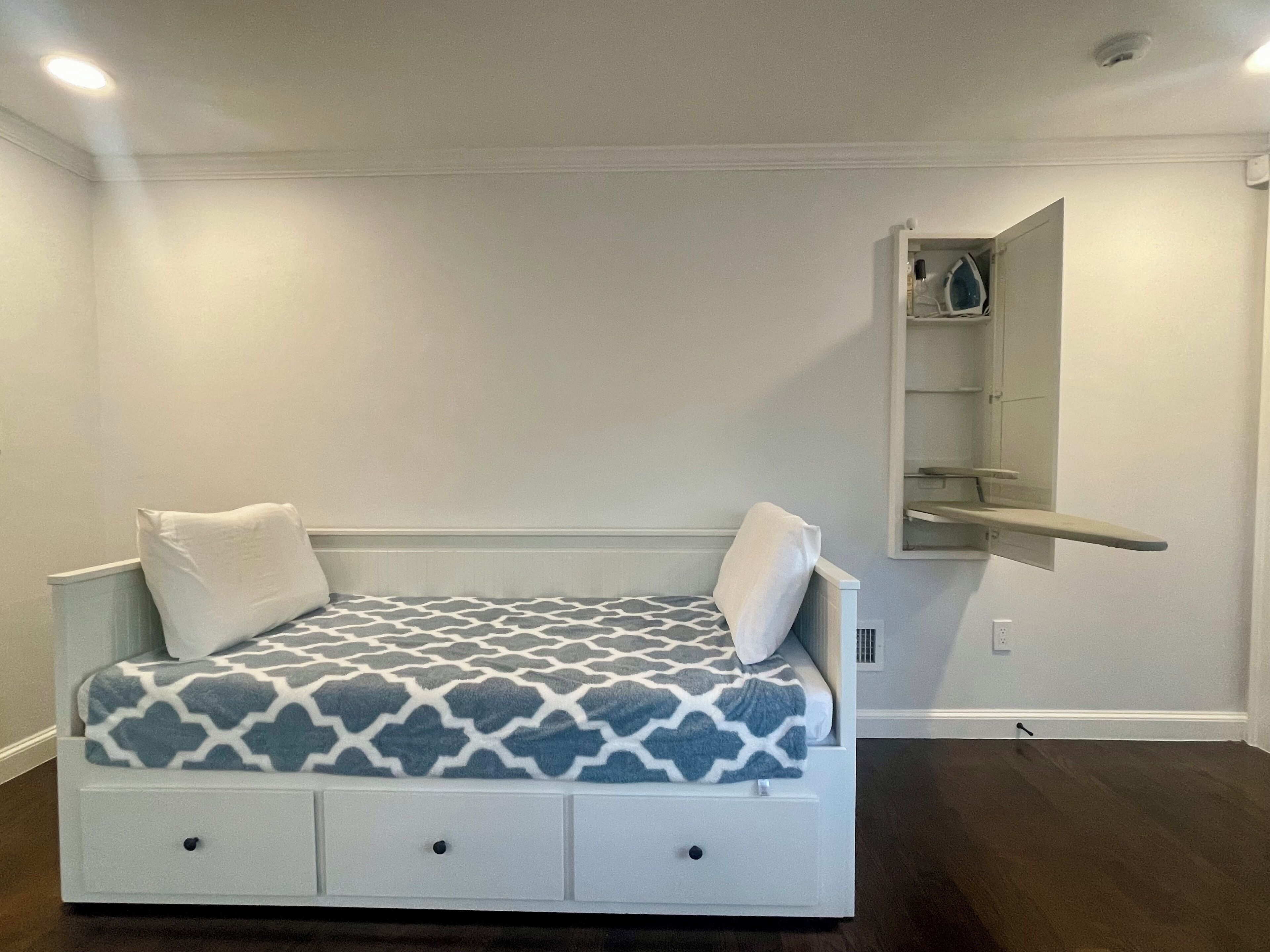 Elegant Guest Suite Wellesley Enjoy a stylish experience at this centrally-located guest suite (attached to owners's main house), 5 min drive to Babson & Wellesley College. 15 mins walk to Linden Square /Whole Foods. Private smart access. Huge Backyard/Garden. Patio, fast WiFi, 1 covered garage, central AC /Heating with separate zone. 1 BR with Queen size bed, kingsize sofa bed and working station...
